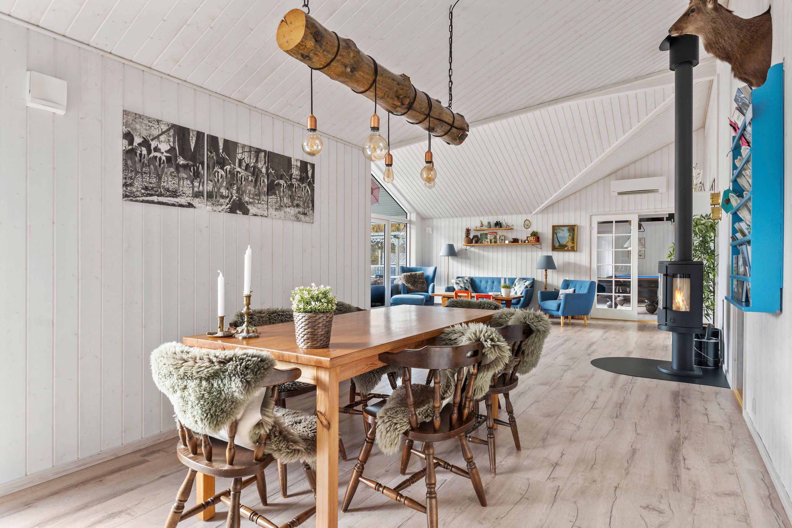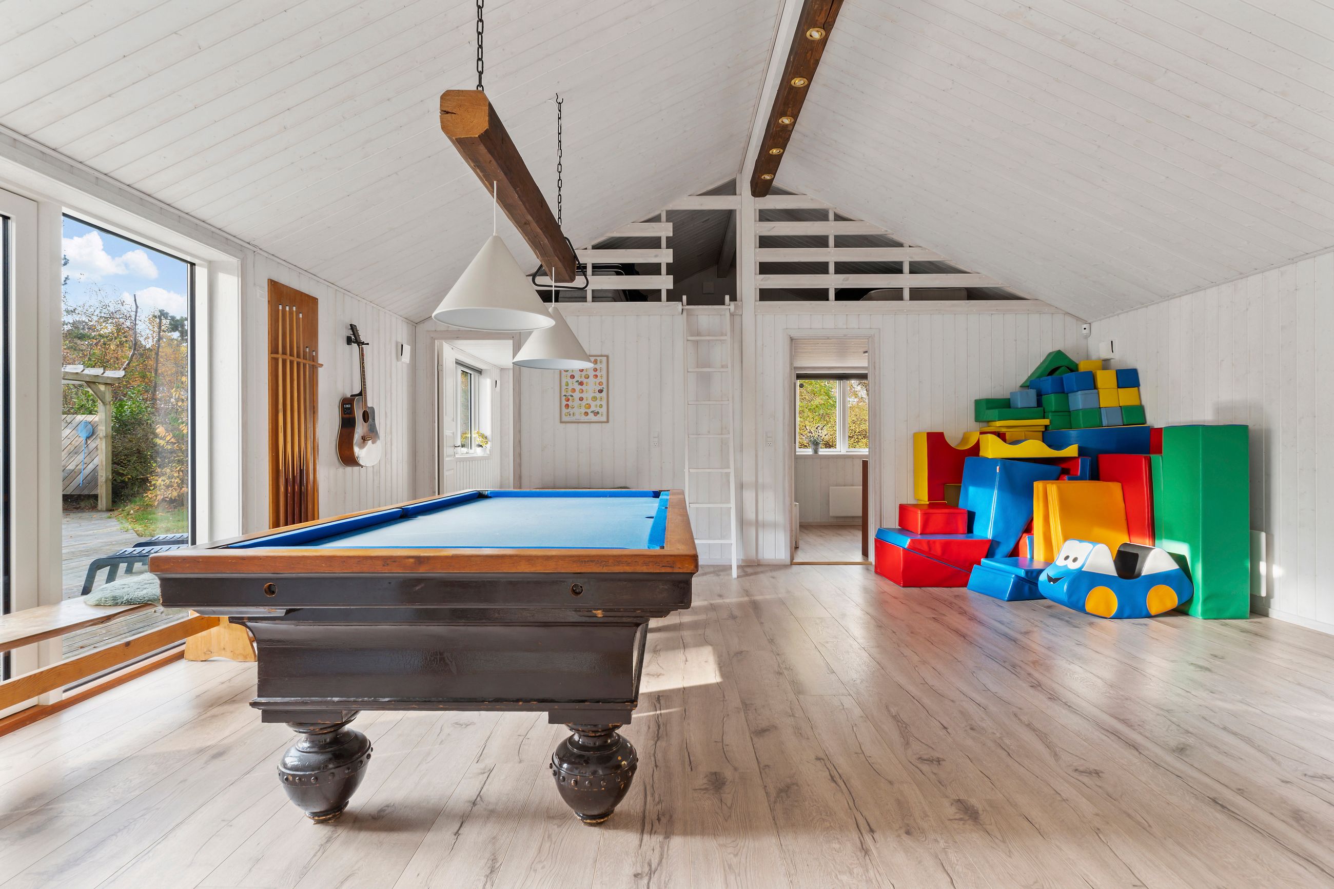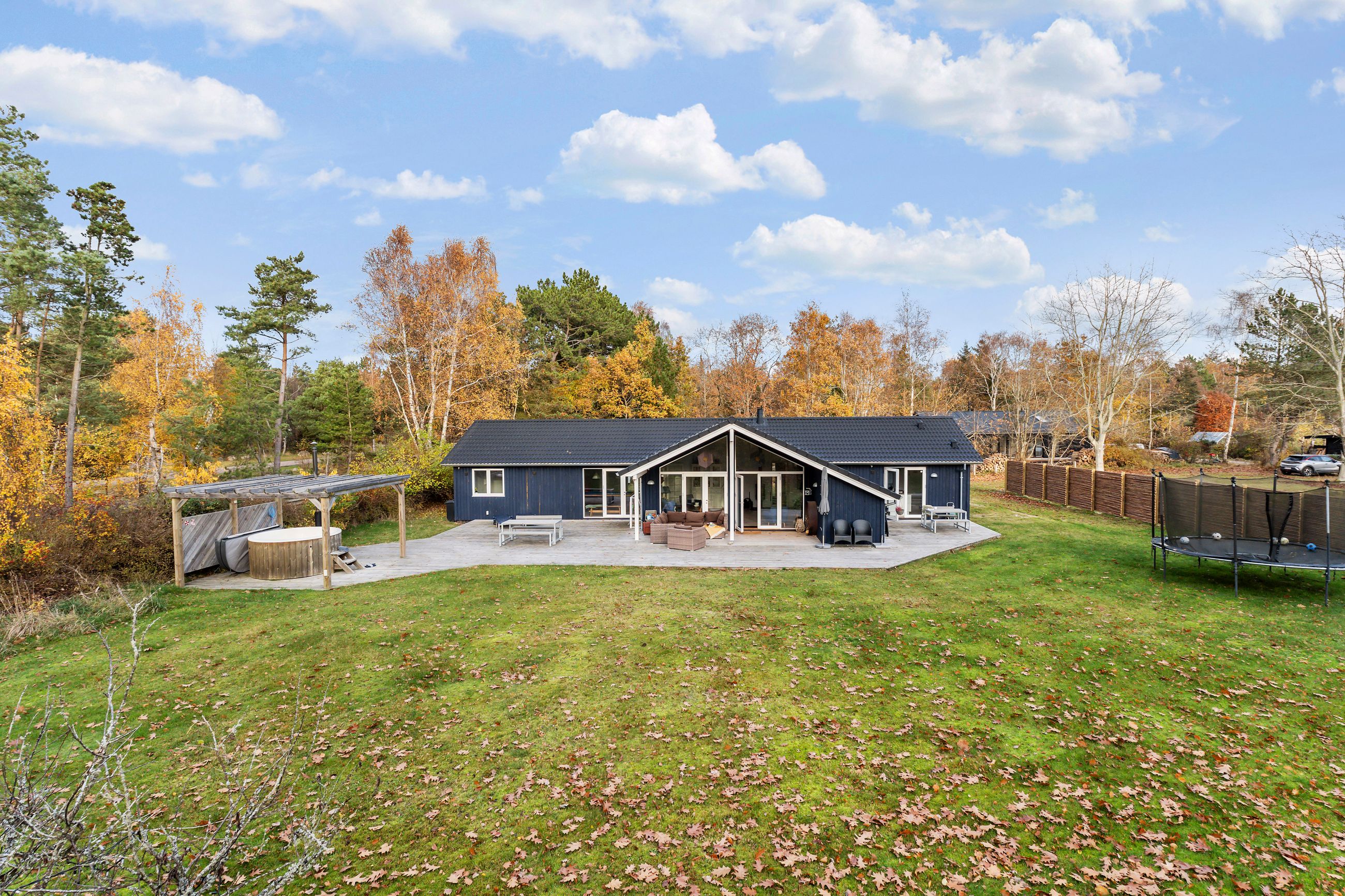 På Ågårdsvej 24 i Ellinge Lyng står et sommerhus så spritnyt som fra 2018. Med 169 m2 er det et stort og generøst sommerhus med hems, spa og shelter i haven og en stor terrasse vendt mod øst, syd og vest. Det står fuldt møbleret, alt lige fra service til billardkøer følger med, så alt er lige til at flytte ind i. Et fristed til den store familie, hvor der også er plads til venner på besøg. Grunden er på 2.310 m2, og så er der bare 8-10 minutter til stranden.
