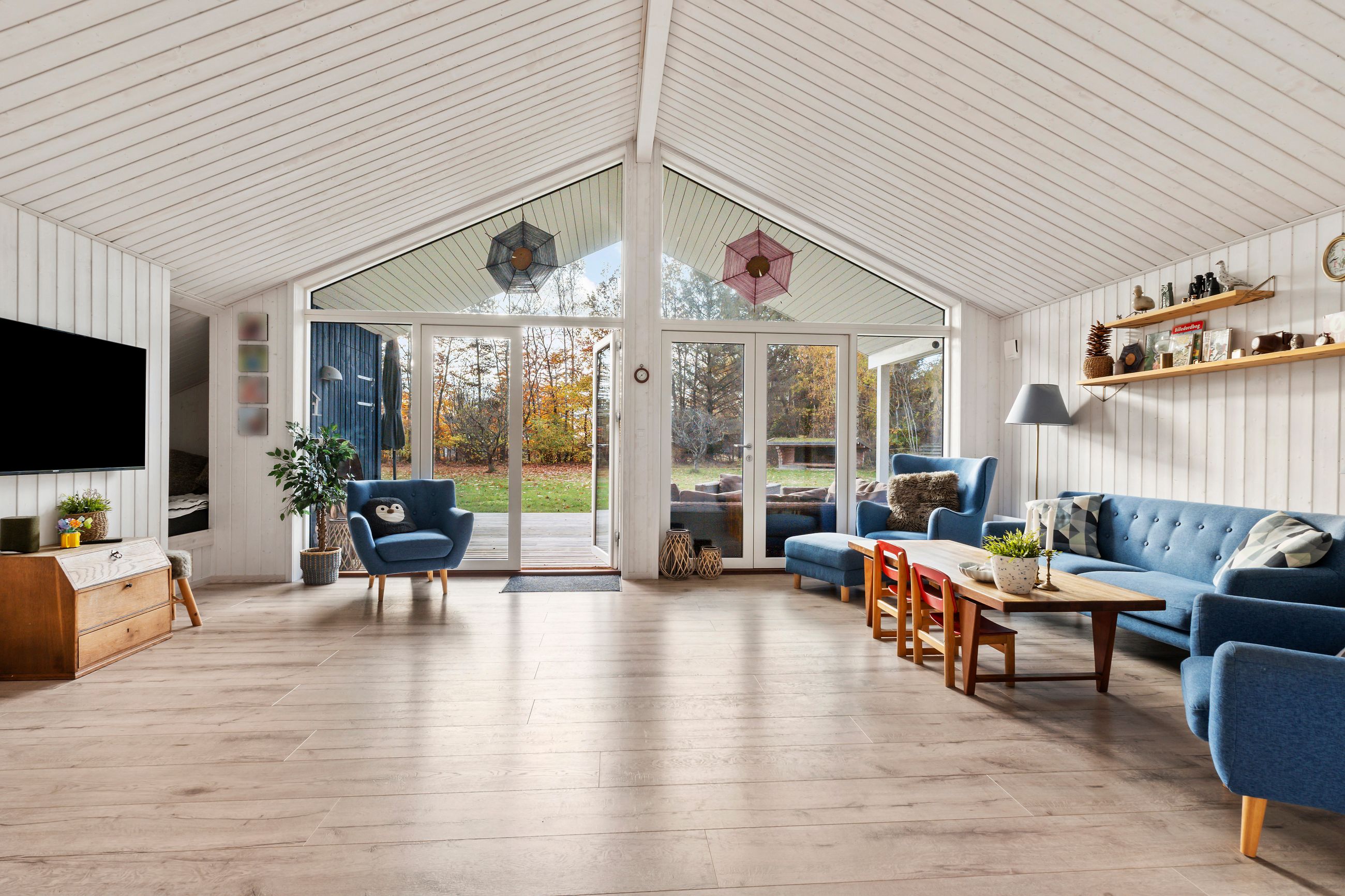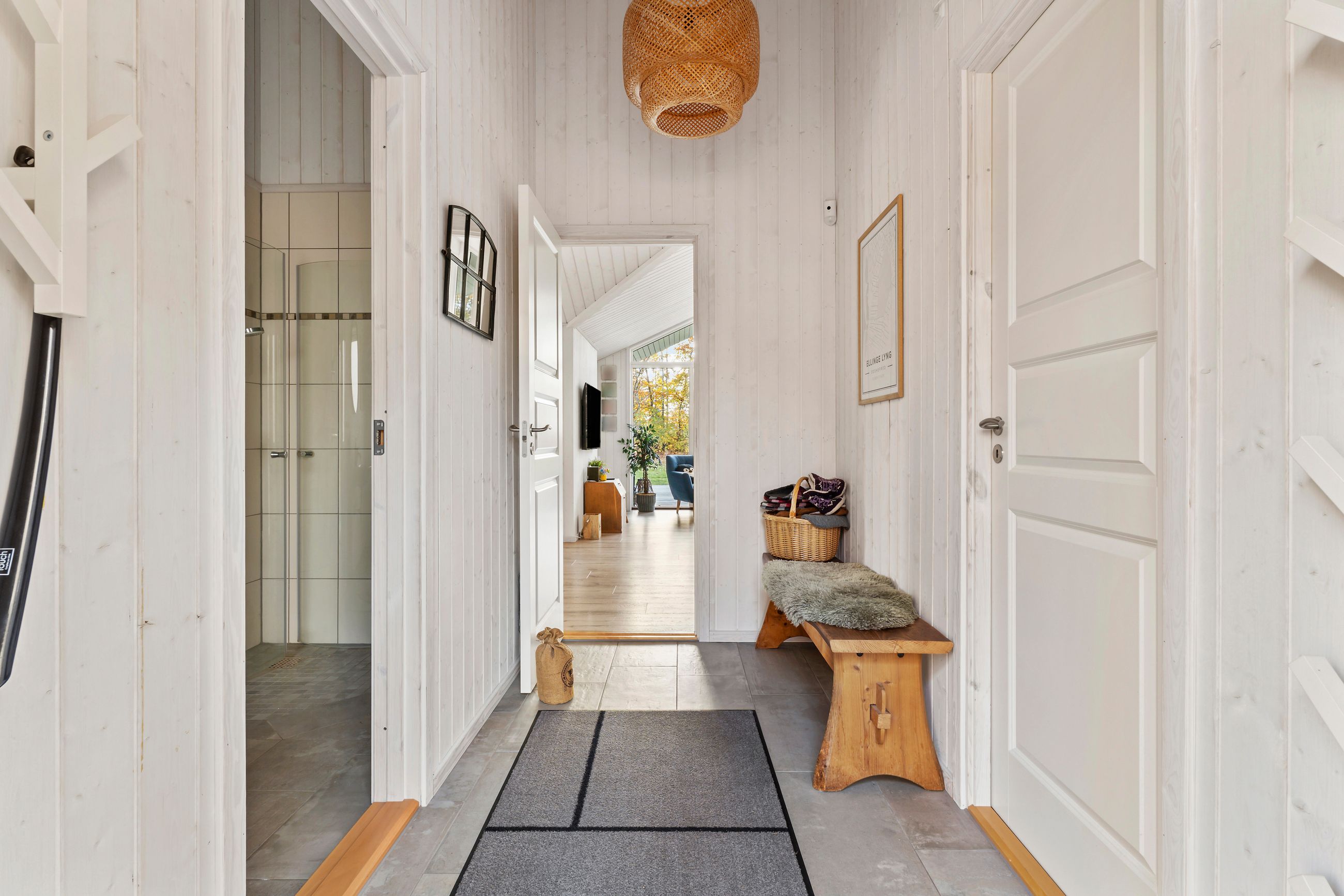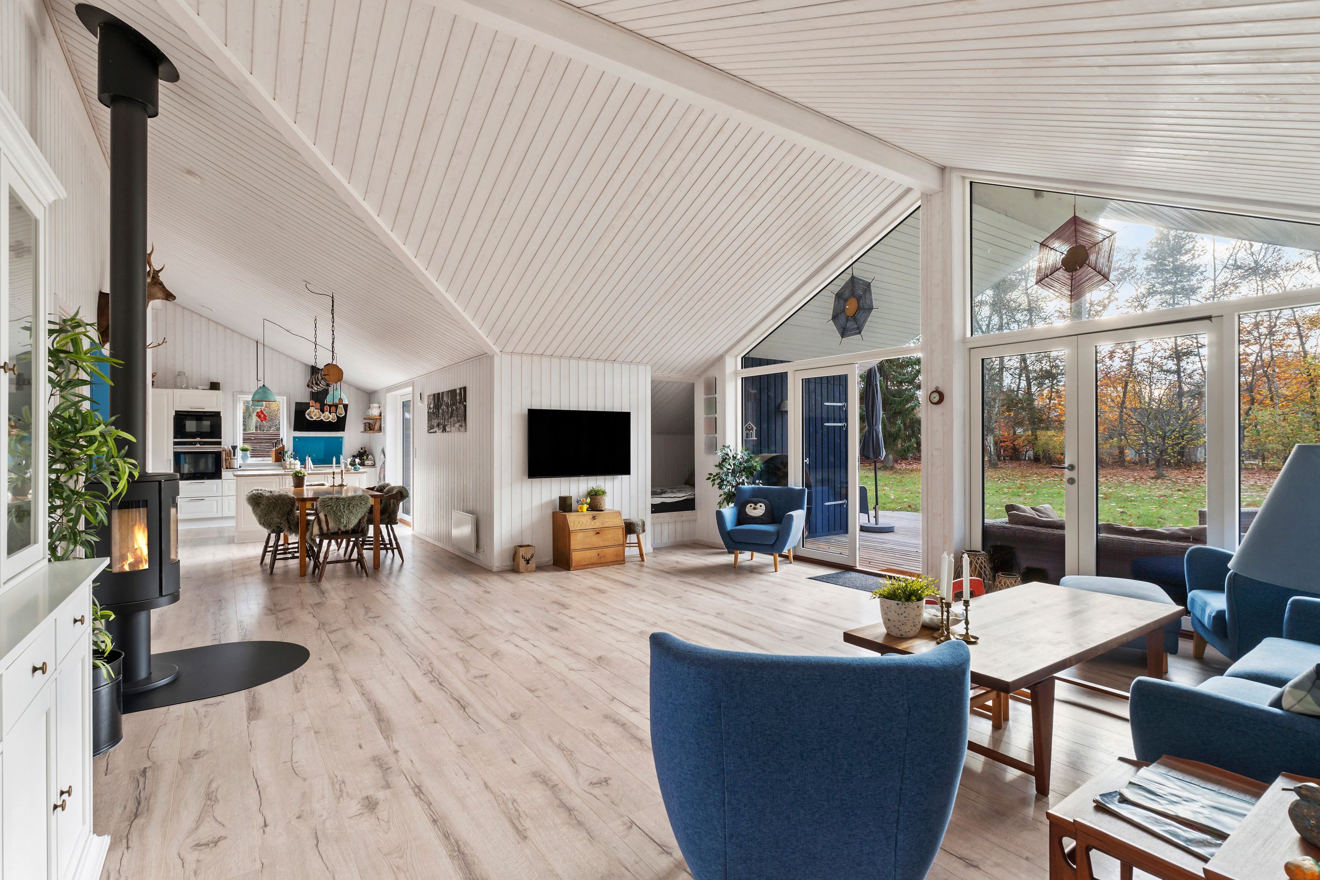 På Ågårdsvej 24 i Ellinge Lyng står et sommerhus så spritnyt som fra 2018. Med 169 m2 er det et stort og generøst sommerhus med hems, spa og shelter i haven og en stor terrasse vendt mod øst, syd og vest. Det står fuldt møbleret, alt lige fra service til billardkøer følger med, så alt er lige til at flytte ind i. Et fristed til den store familie, hvor der også er plads til venner på besøg. Grunden er på 2.310 m2, og så er der bare 8-10 minutter til stranden.