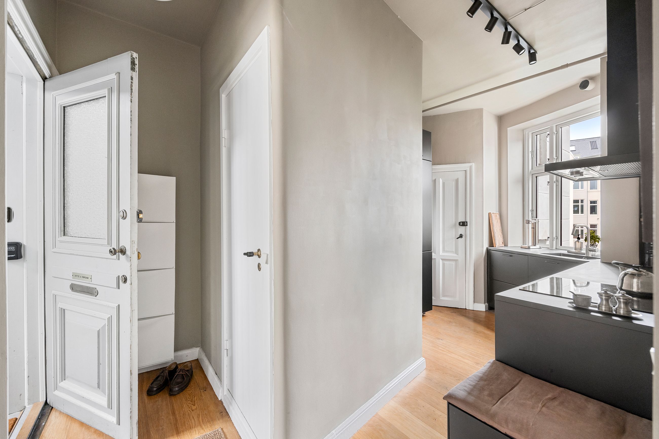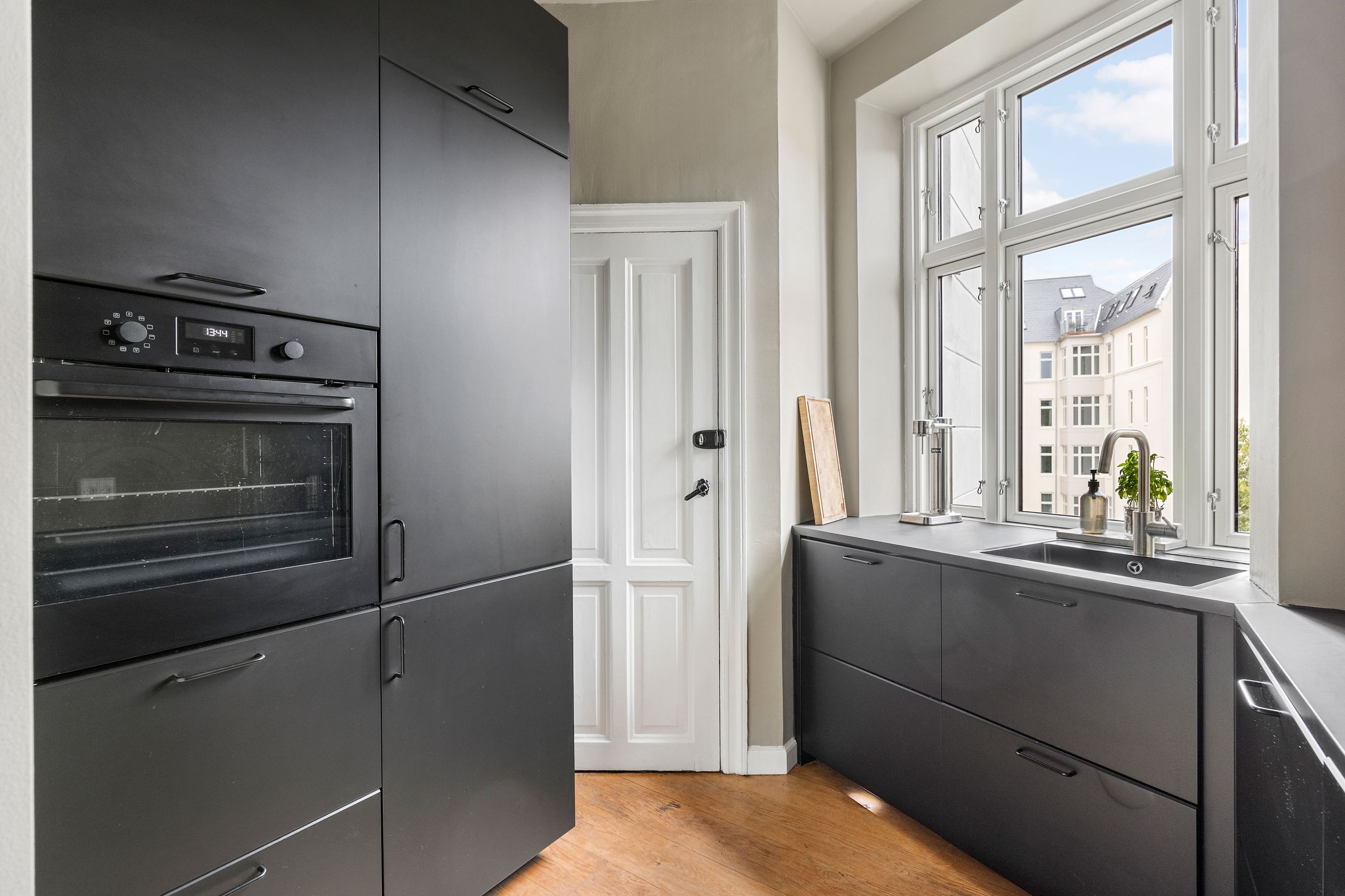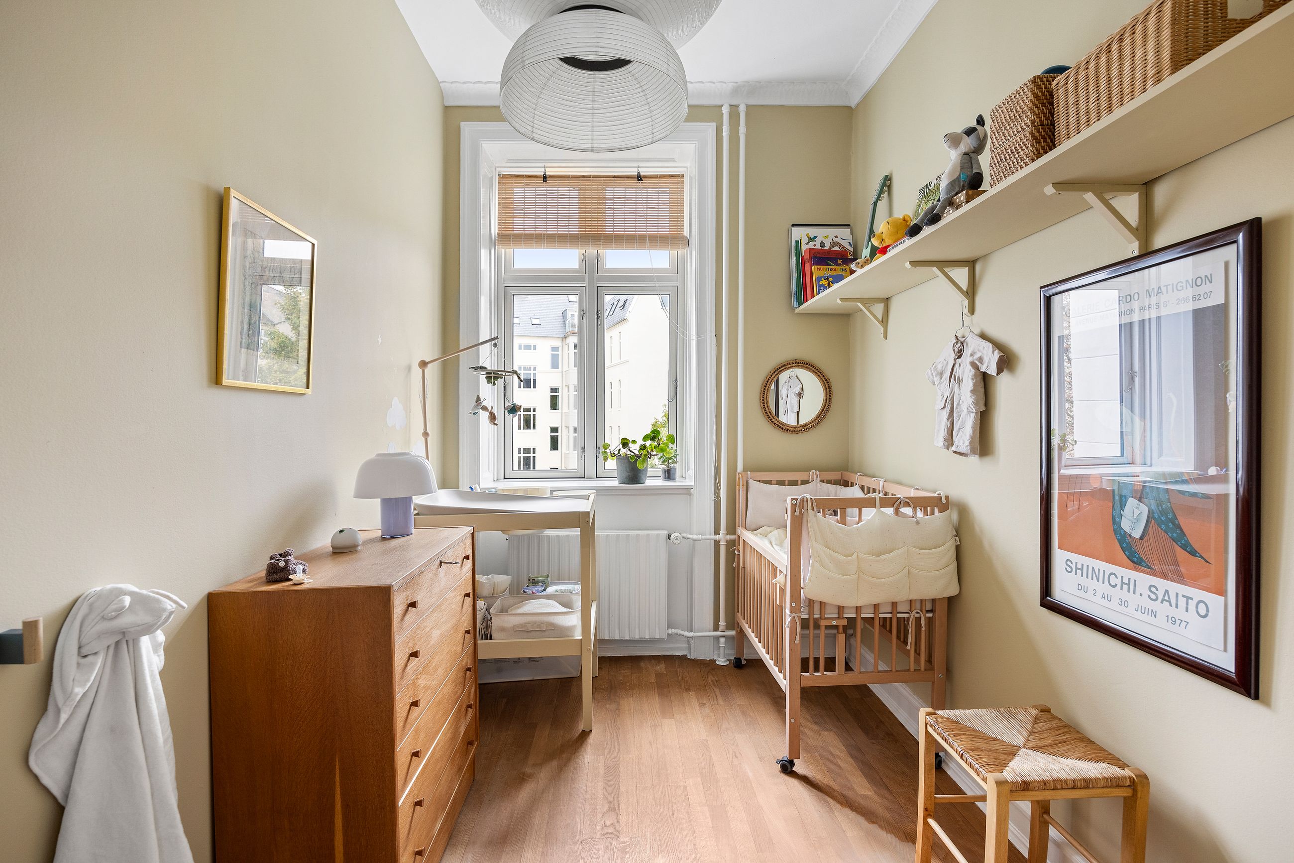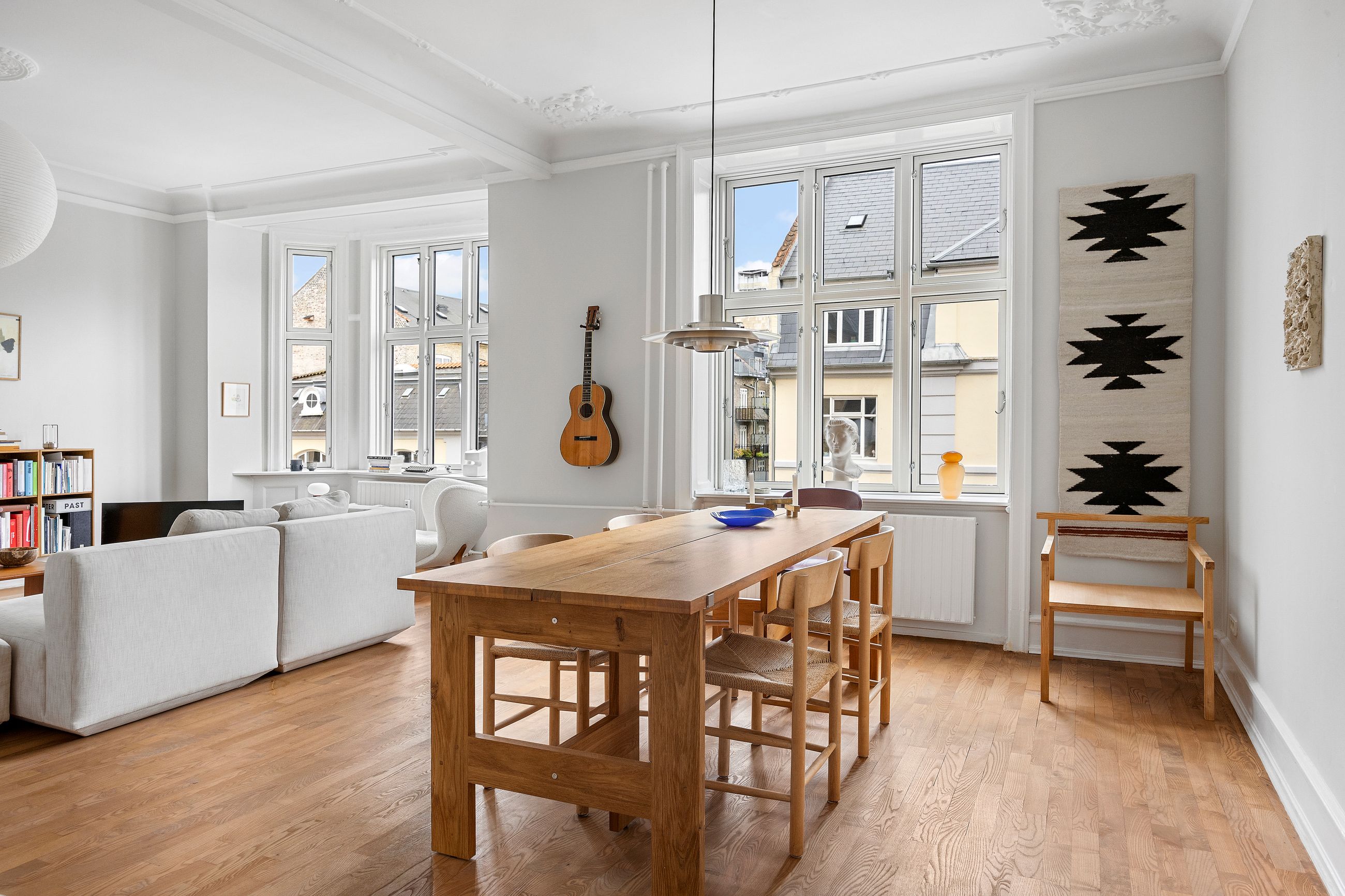 Den tidligere matematiker og politiker Adolph Steen er manden bag vejskiltet Adolph Steens Allé. Vejene i kvarteret er opkaldt efter videnskabsmænd, eller videnskabspersoner, som man med et overbærende smil på læben siger i dag. Vejen er lille og stille, ikke meget trafik her. Selvtak. Ejendommen Adolph Steens Allé 5 er fra 1905, altså fra begyndelsen af perioden Bedre Byggeskik, som var et opgør med tidens pyntesyge og dårligt byggede ejendomme. Typisk for facaderne i Bedre Byggeskik er den ærlige, røde mursten med farvede gesimser. Lejligheden på 3. sal er på 90 m2 med det smukkeste lysindfald fra den skeløjede karnap, hvor man kan se både til højre og venstre. Lejligheden har udsigt til grønne træer og det fine tårn på det gamle radiohus. Skøn gårdhave med græs og terrasse.