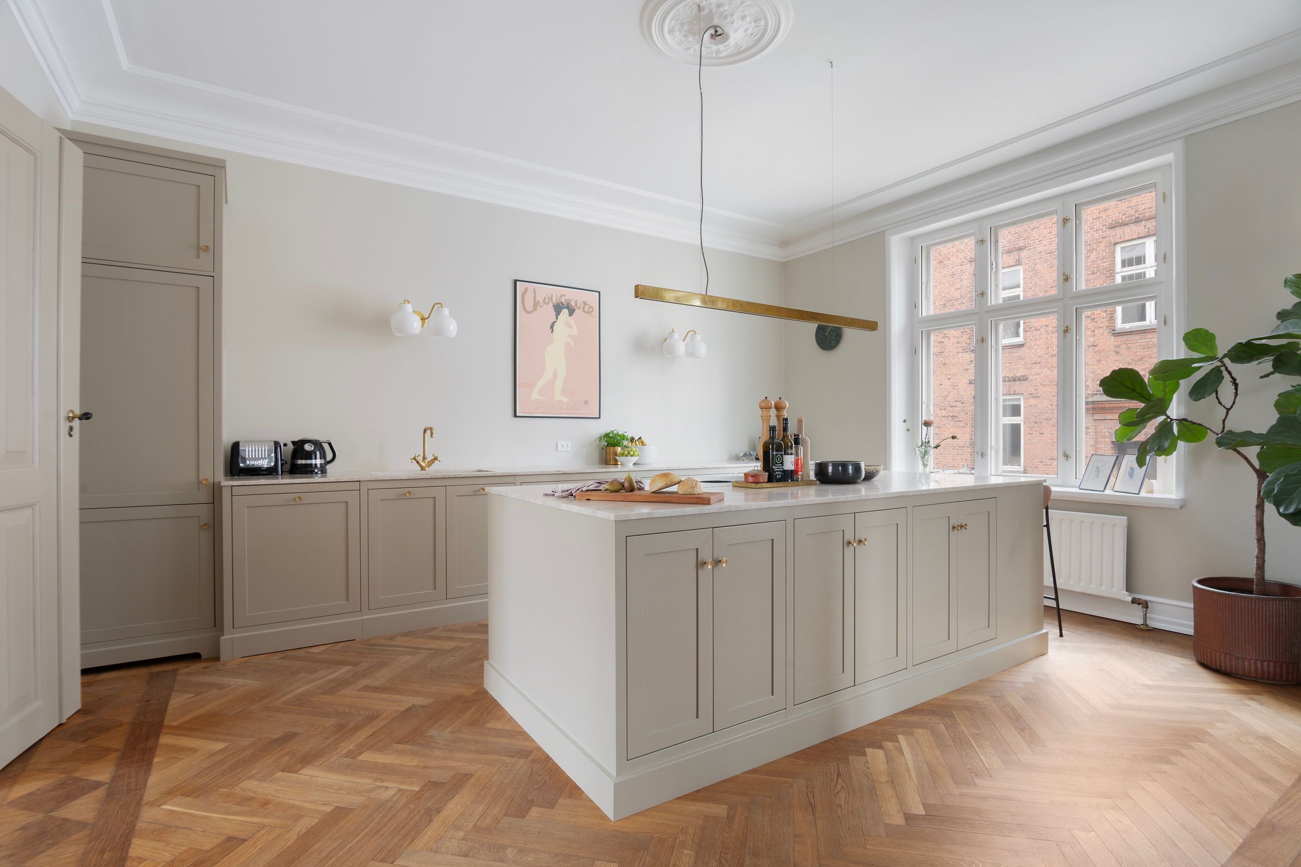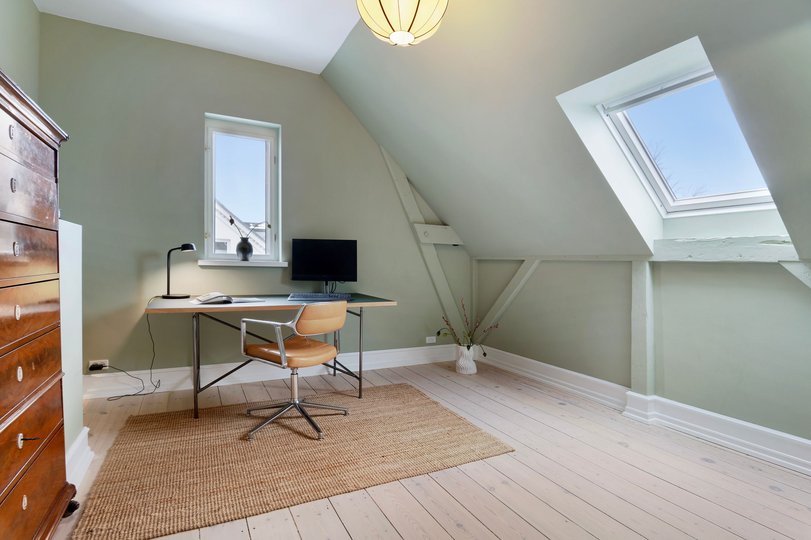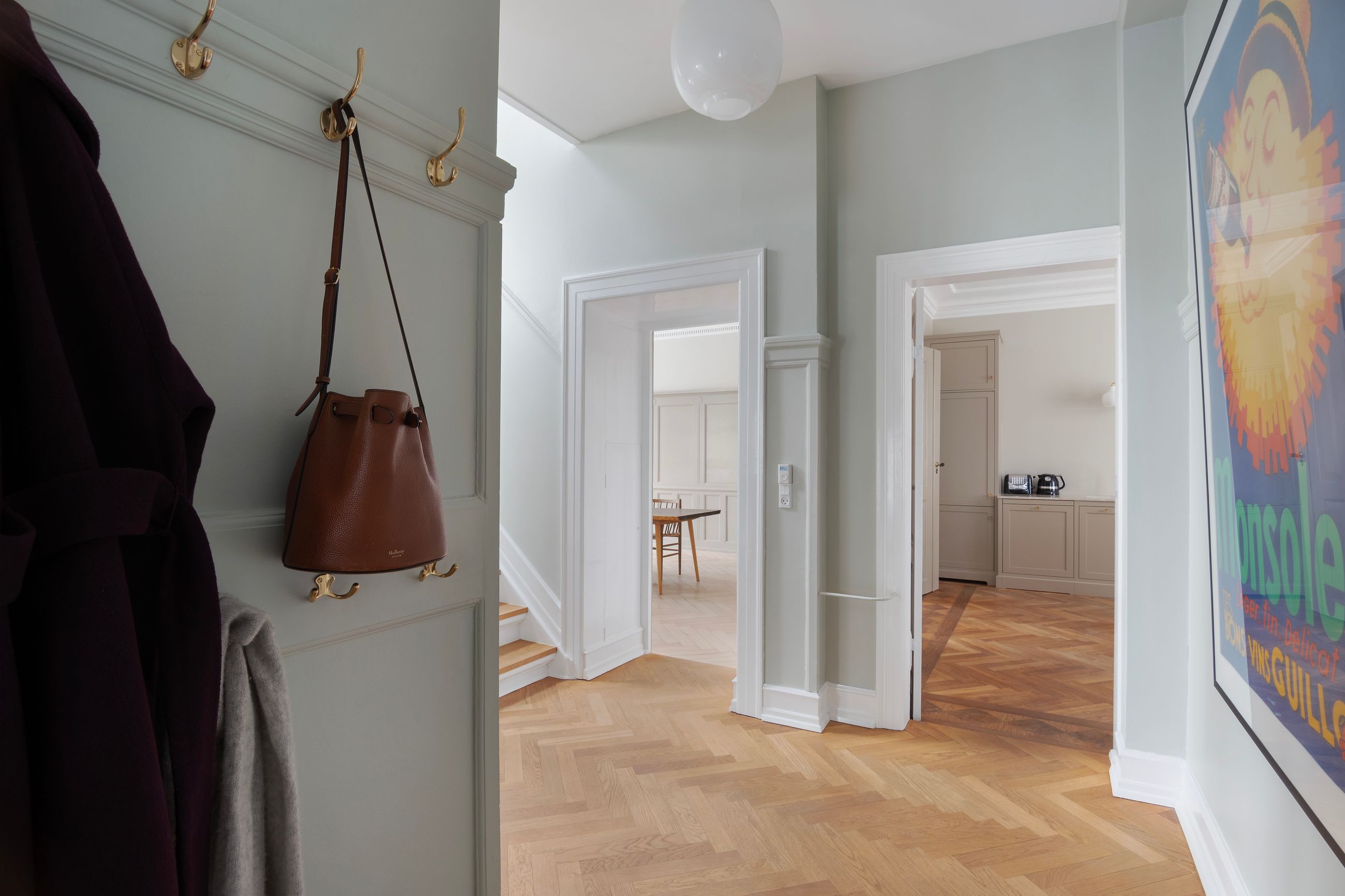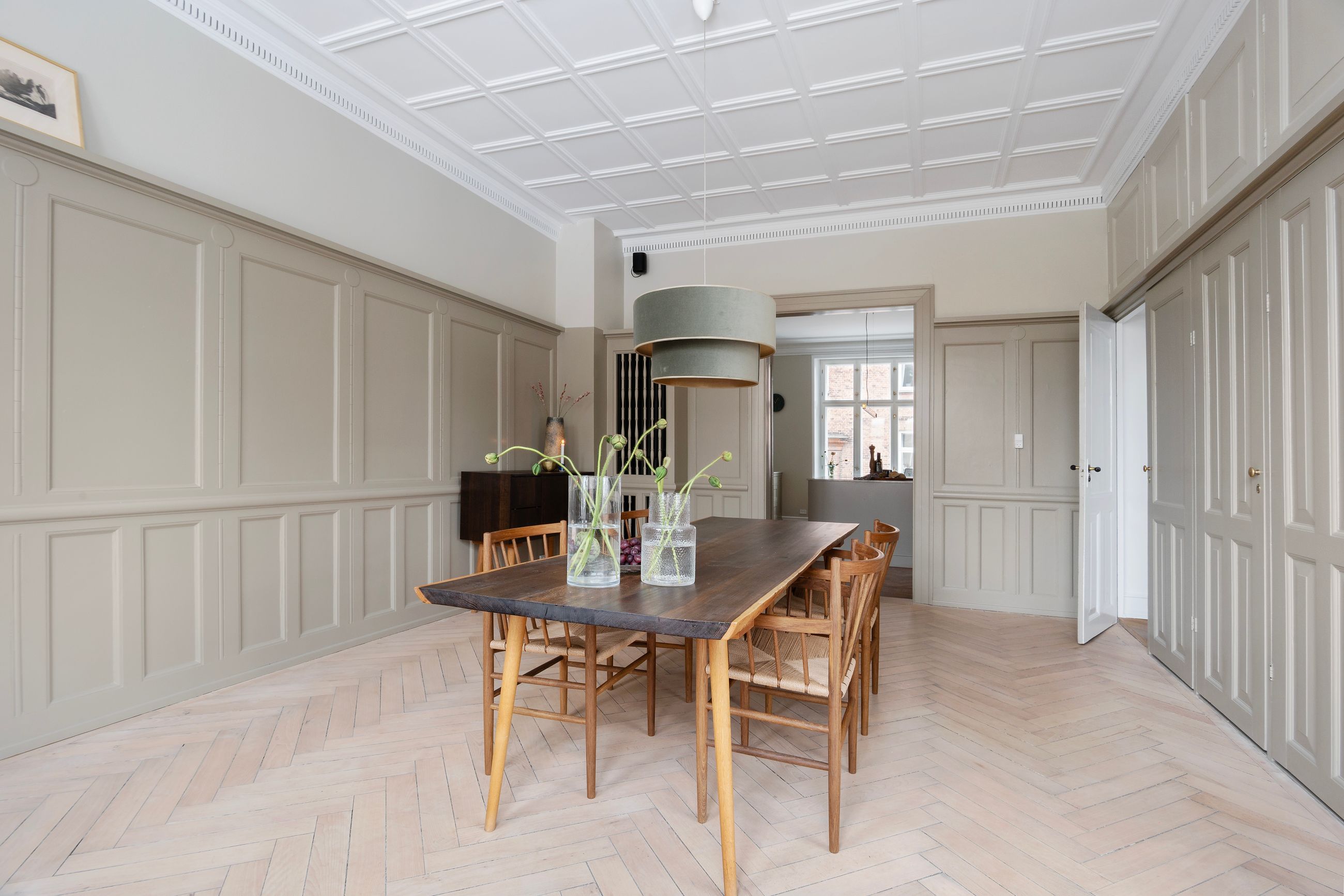 Midt i Roskilde bare små 300 meter fra Domkirken står et byhus fra 1895. Det er bygget af en snedker til snedkeren selv, og huset har været brugt som showroom for det arbejde, hvor snedkeren præsenterede sit mesterskab: gulvene. Små 130 år efter ligger de her endnu, gulvene, smukt designet i parket i hver sit rum til inspiration og eftertid. Det er til at forstå, for æstetik og kvalitet har det med at holde meget længere end de mennesker, der byggede det. Alt er renoveret, det smukkeste Kvänumkøkken, det fineste badeværelse med ’Made a Mano’ håndmalede klinker, alt er lækkert. Her er ikke meget vedligeholdelse de næste mange år. 349 etagemeter, hvor de 121 m2 ligger i underetagen. Værsartig, som vi siger på gammeldansk, når vi betror noget til en anden.