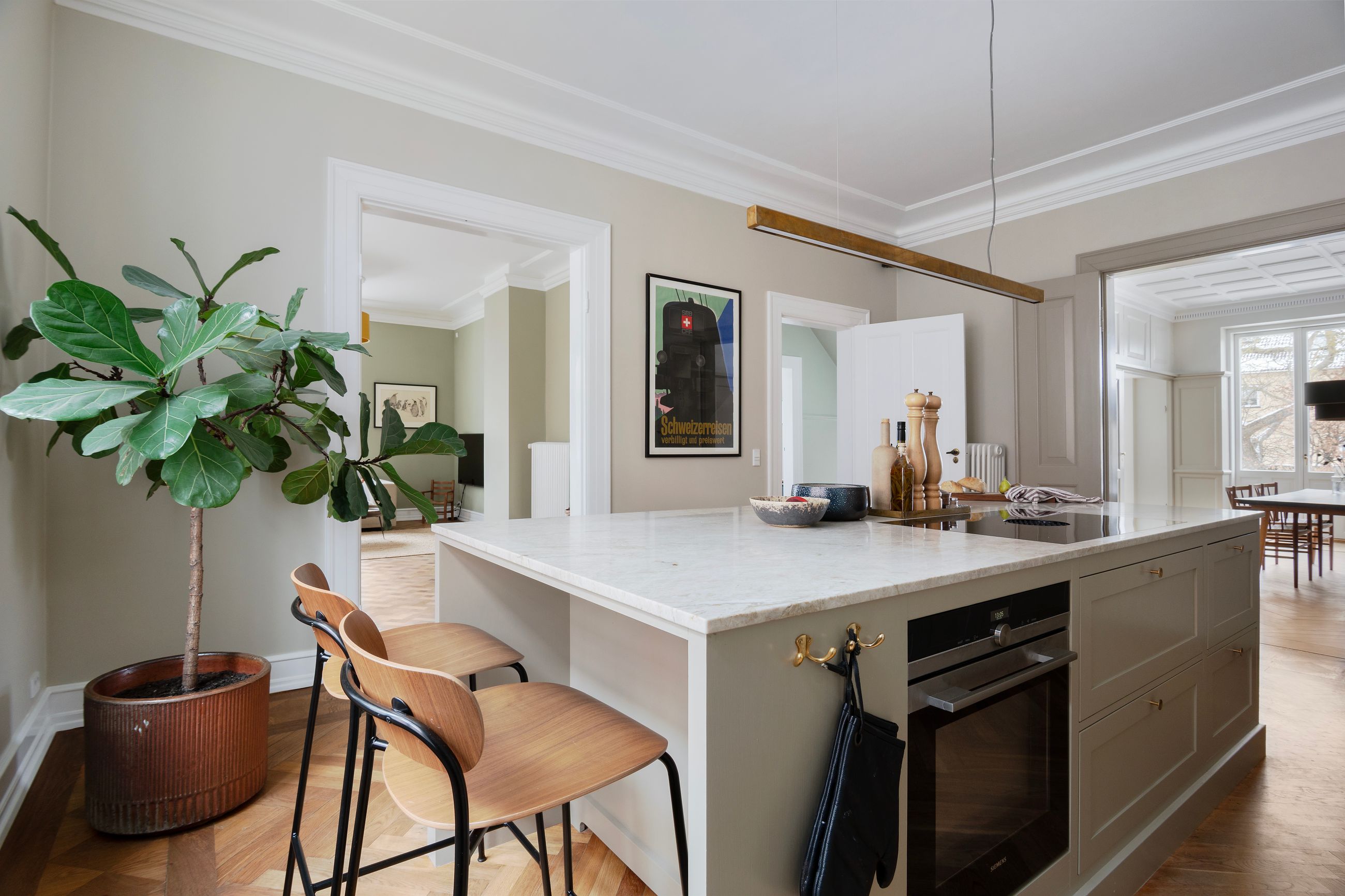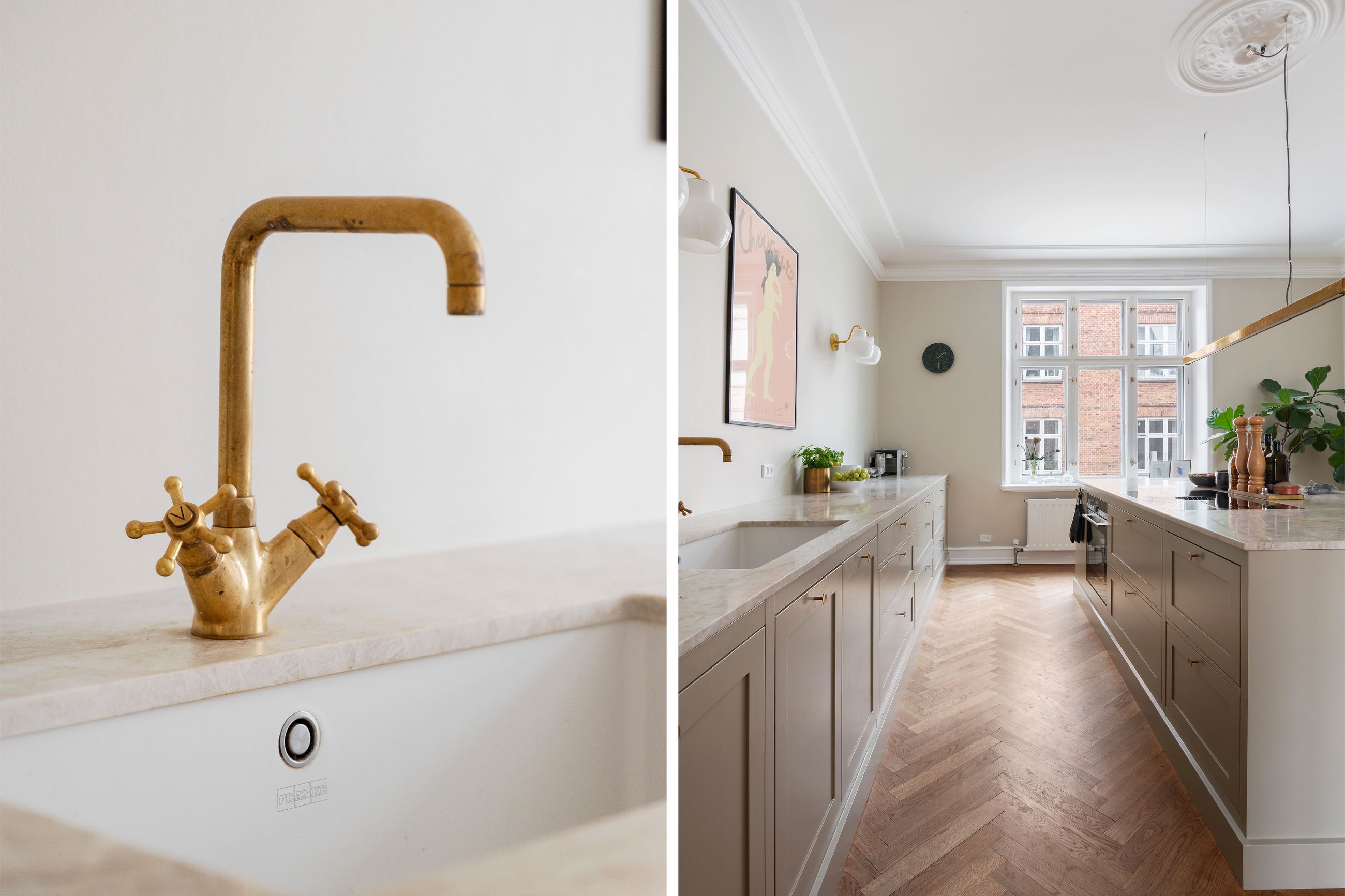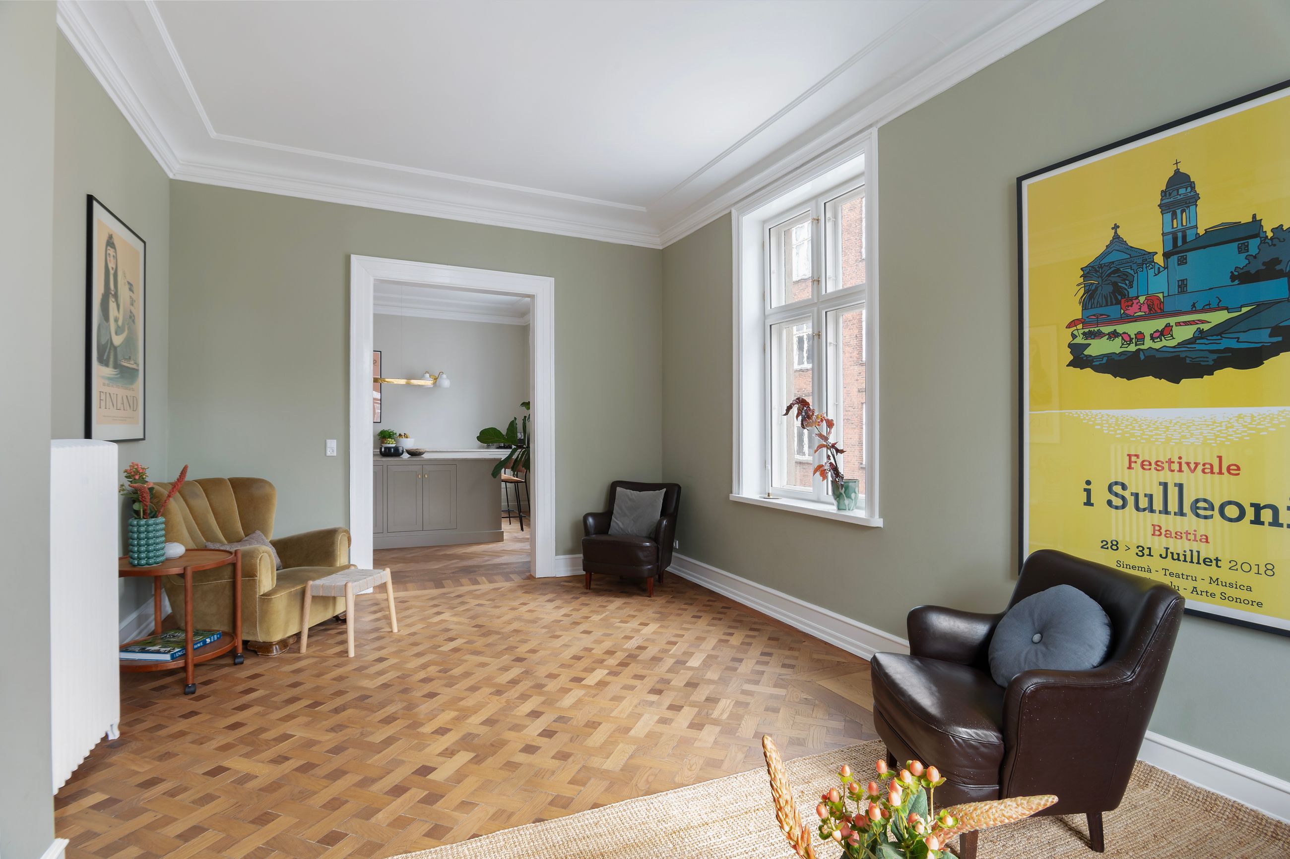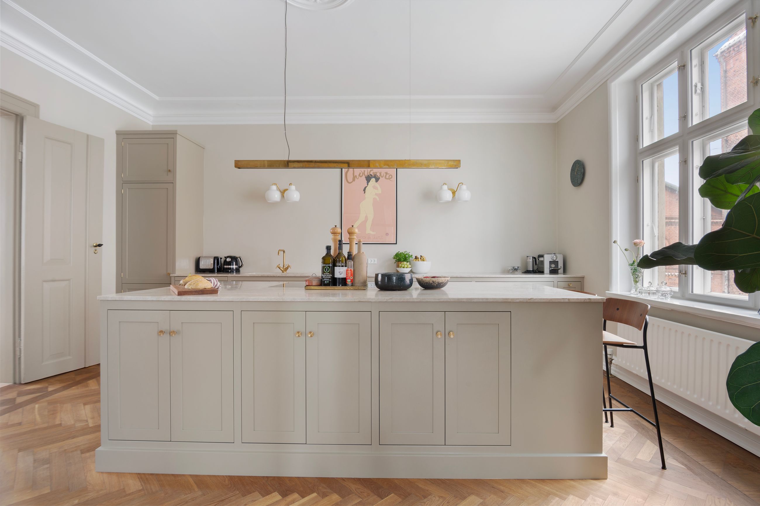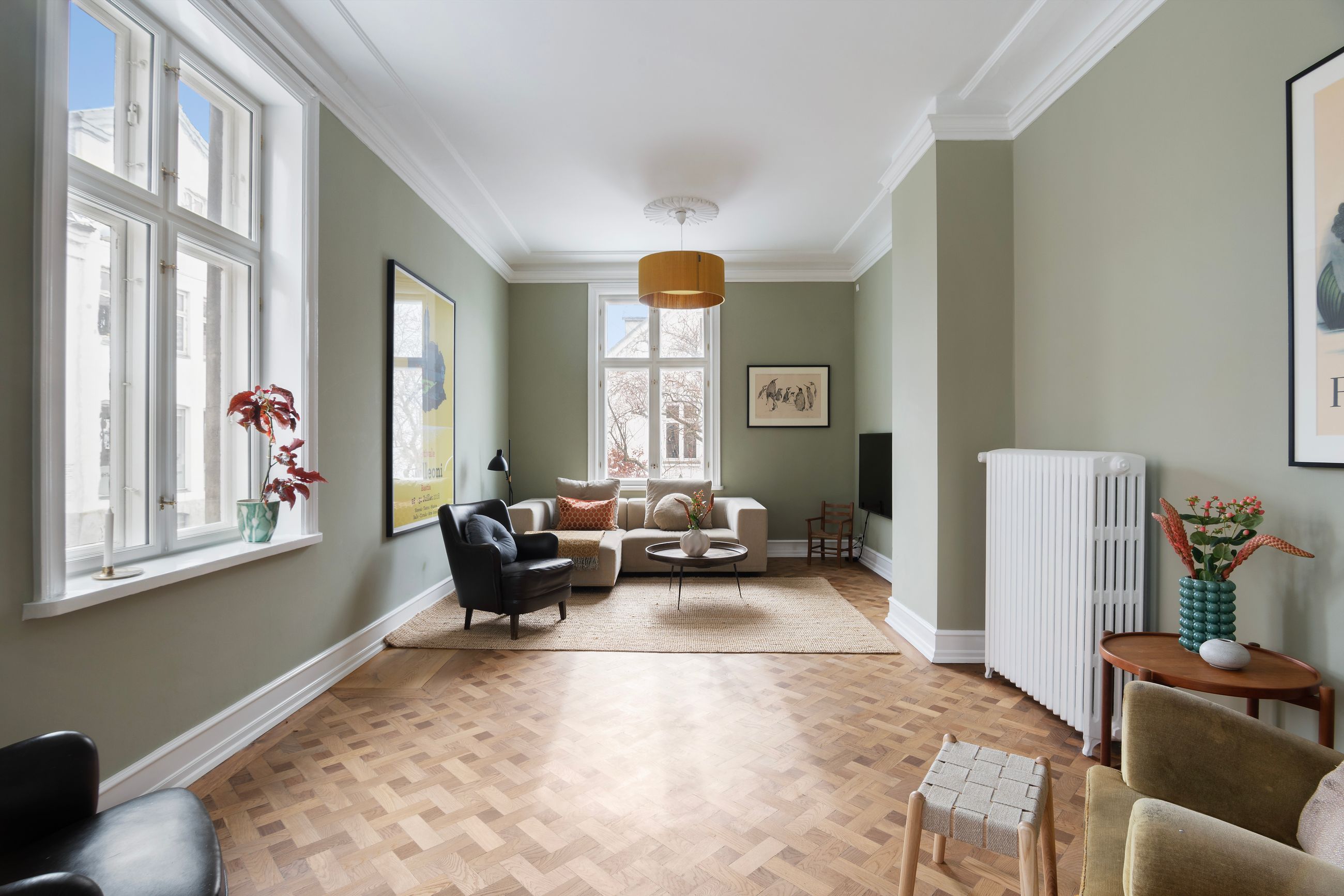 Midt i Roskilde bare små 300 meter fra Domkirken står et byhus fra 1895. Det er bygget af en snedker til snedkeren selv, og huset har været brugt som showroom for det arbejde, hvor snedkeren præsenterede sit mesterskab: gulvene. Små 130 år efter ligger de her endnu, gulvene, smukt designet i parket i hver sit rum til inspiration og eftertid. Det er til at forstå, for æstetik og kvalitet har det med at holde meget længere end de mennesker, der byggede det. Alt er renoveret, det smukkeste Kvänumkøkken, det fineste badeværelse med ’Made a Mano’ håndmalede klinker, alt er lækkert. Her er ikke meget vedligeholdelse de næste mange år. 349 etagemeter, hvor de 121 m2 ligger i underetagen. Værsartig, som vi siger på gammeldansk, når vi betror noget til en anden.