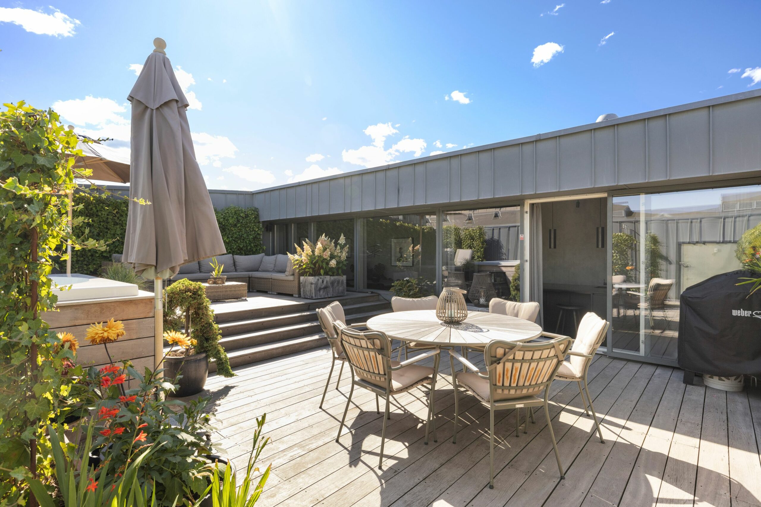 Penthouselejligheden på Amerika Plads 16 ligger oppe på 6. sal. Som alle nyere penthouselejligheder har den nogle fordele, hvor udsigt til Marmorkirken er én af dem. Elevator fra parkeringskælderen direkte op i lejligheden er en anden, og så er der selvfølgelig ugenertheden, altså muligheden for at slikke sol det meste af dagen. Men hør lige, hvor finder man en penthouse med udgang til terrassen fra køkkenet til spa, loungemiljø med sofaer, spisestue, liggestole og et haveskur til opbevaring af møbelpuder og andet, som bedre kan lide tørvejr end regnvejr? Rigtigt, det gør man her. Terrassen er en terrasse, der både kan og vil noget. Mageløst er det hele, bare mageløst, alt er lækkert og renoveret i 2021. Her er masser af lys og himmelkig. Ejendommen er fra 2007, og lejligheden er på 153 m2.