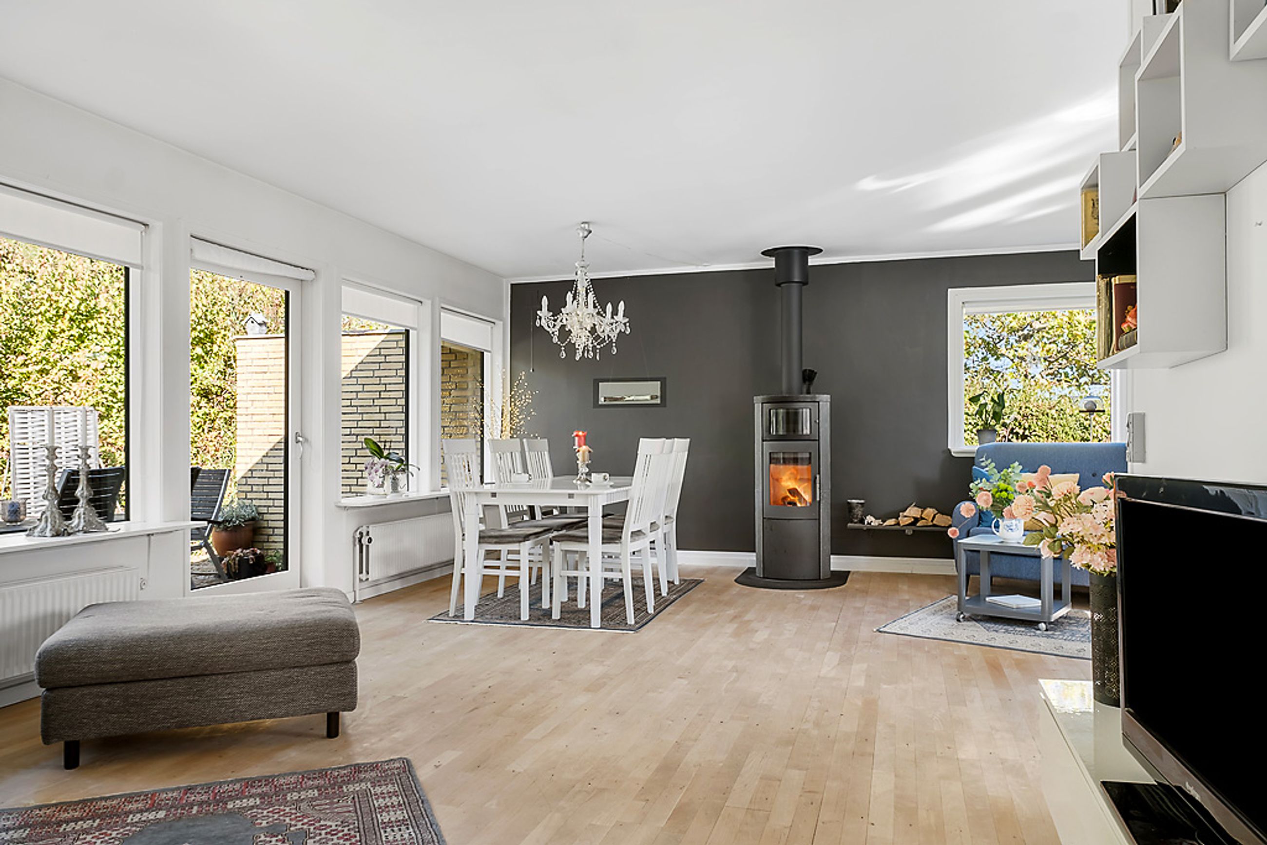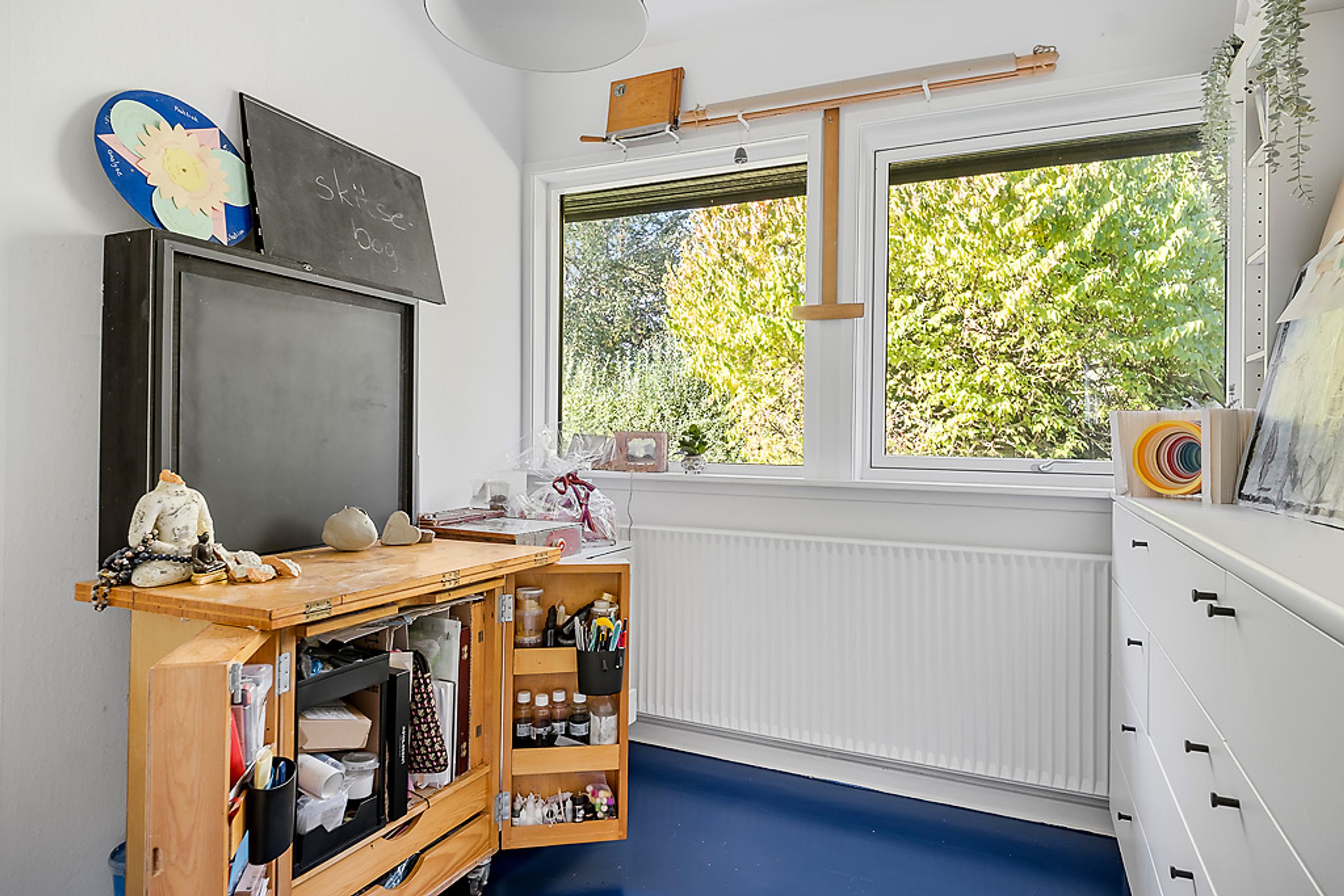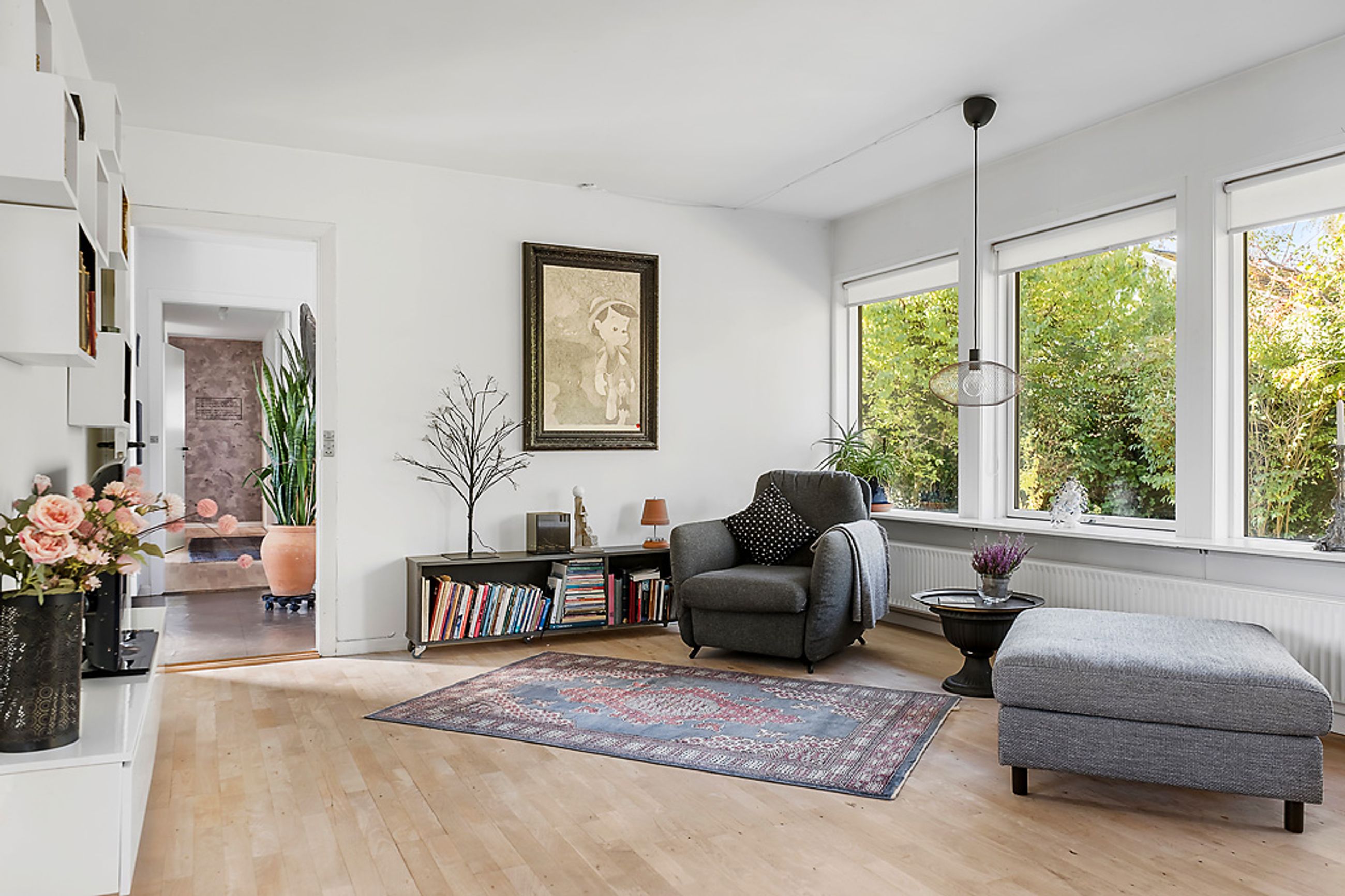 1969’er parcelhuset på Anders Larsensvej 14 er et samtidstypisk hus på 125 m2. Hver en m2 er så optimalt udnyttet, at her er plads til en familie med flere børn. Ja, er man kunstner, og har brug for et værksted, så står det som en selvstændig bygning på den 727 m2 store grund. Kan man lide haver og havekunst, så ligger Holbæk Kirkegård lige om hjørnet. Her kan man gå ture og sætte sig på en bænk og glæde sig over at bo i Holbæk. Muhaa, spøgelser tror vi ikke på mere, derfor er der kunstudstillinger i det gamle kapel. Børnene kan gå til skole, de kan gå og cykle til byen, til sport og til toget. Familien med børn får det godt her. Det er et velholdt hus lige til at flytte ind i.