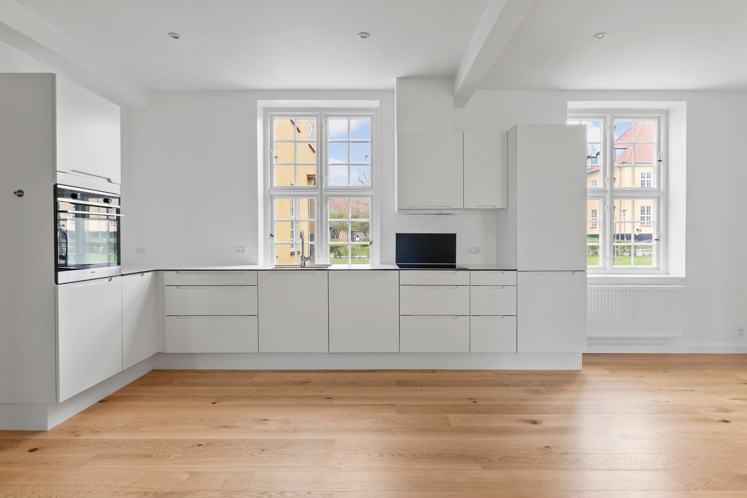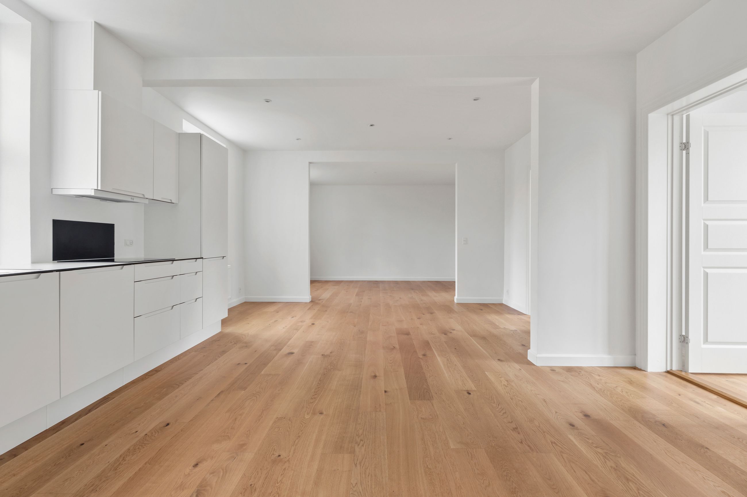 Lejlighederne er fordelt på 3 forskellige ejendomme og består af 2, 3 – og 4 værelses lejligheder fra 90 – 120m2. Bygningerne er nyrenoveret indenfor de seneste år, og fremstår i dag som moderne og tidssvarende boliger med opdaterede køkken- og badefaciliteter, indbydende adgangsforhold og elevator flere steder. Hver lejlighed har sin egen P-plads og der medfølger også et kælderrum.