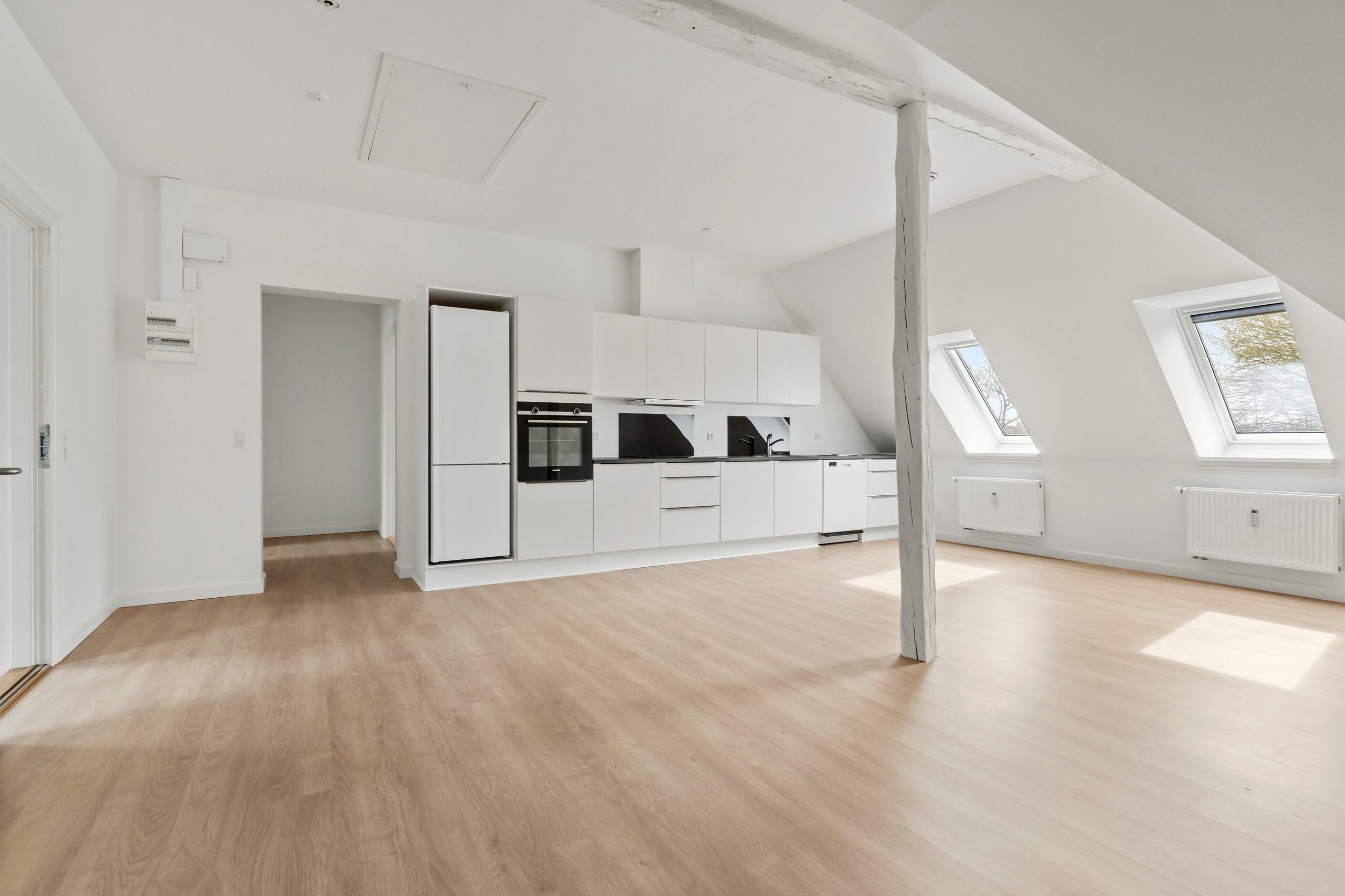 Lejlighederne er fordelt på 3 forskellige ejendomme og består af 2, 3 – og 4 værelses lejligheder fra 90 – 120m2. Bygningerne er nyrenoveret indenfor de seneste år, og fremstår i dag som moderne og tidssvarende boliger med opdaterede køkken- og badefaciliteter, indbydende adgangsforhold og elevator flere steder. Hver lejlighed har sin egen P-plads og der medfølger også et kælderrum.
