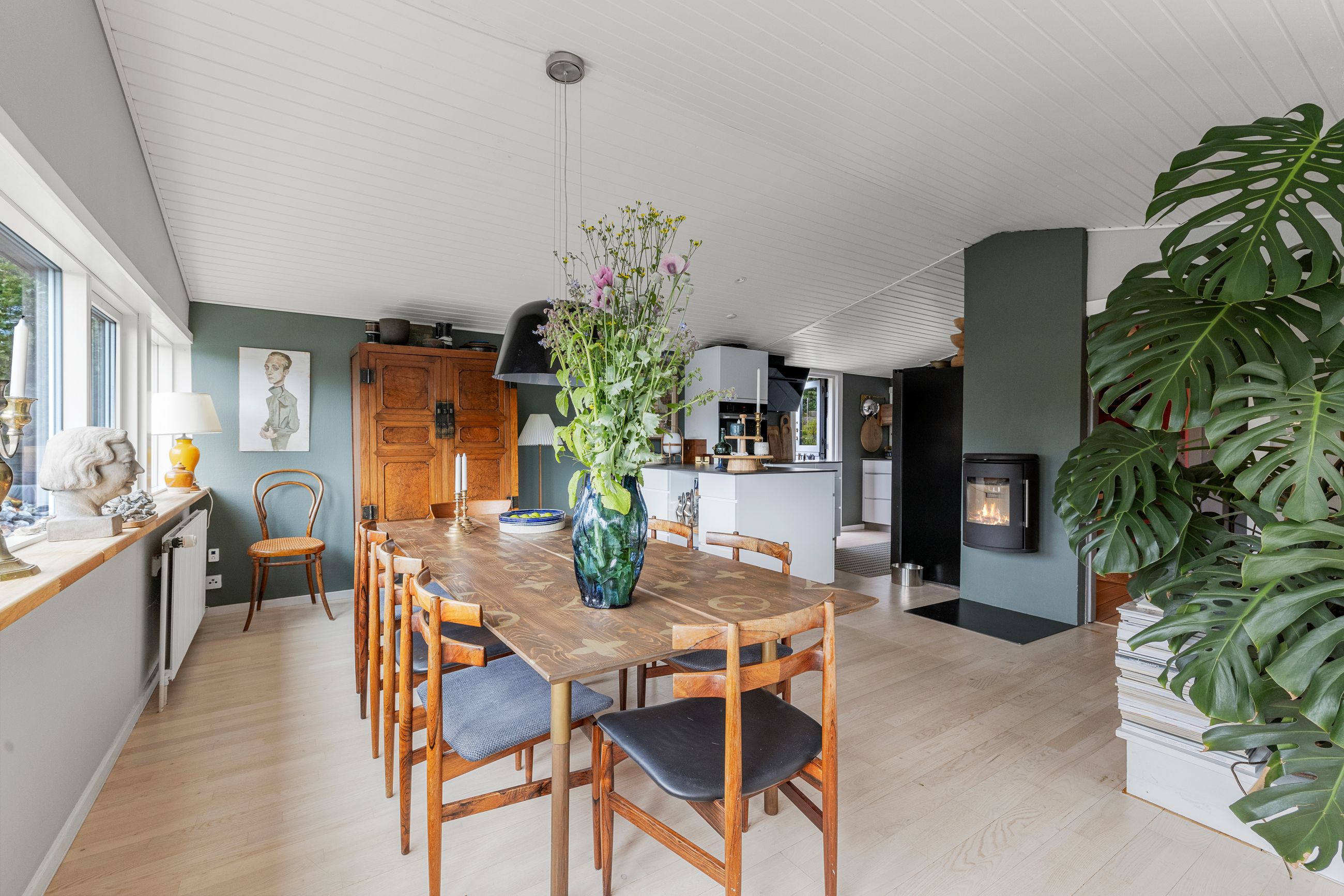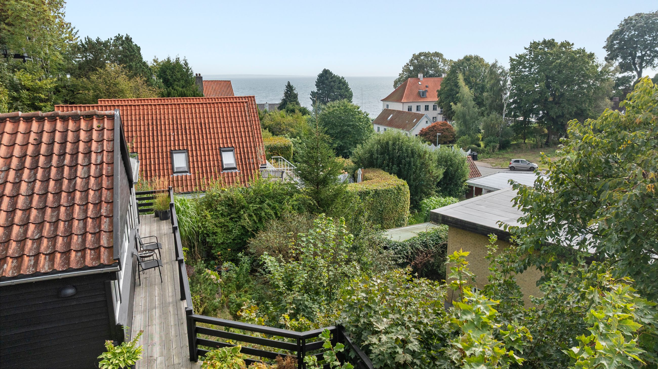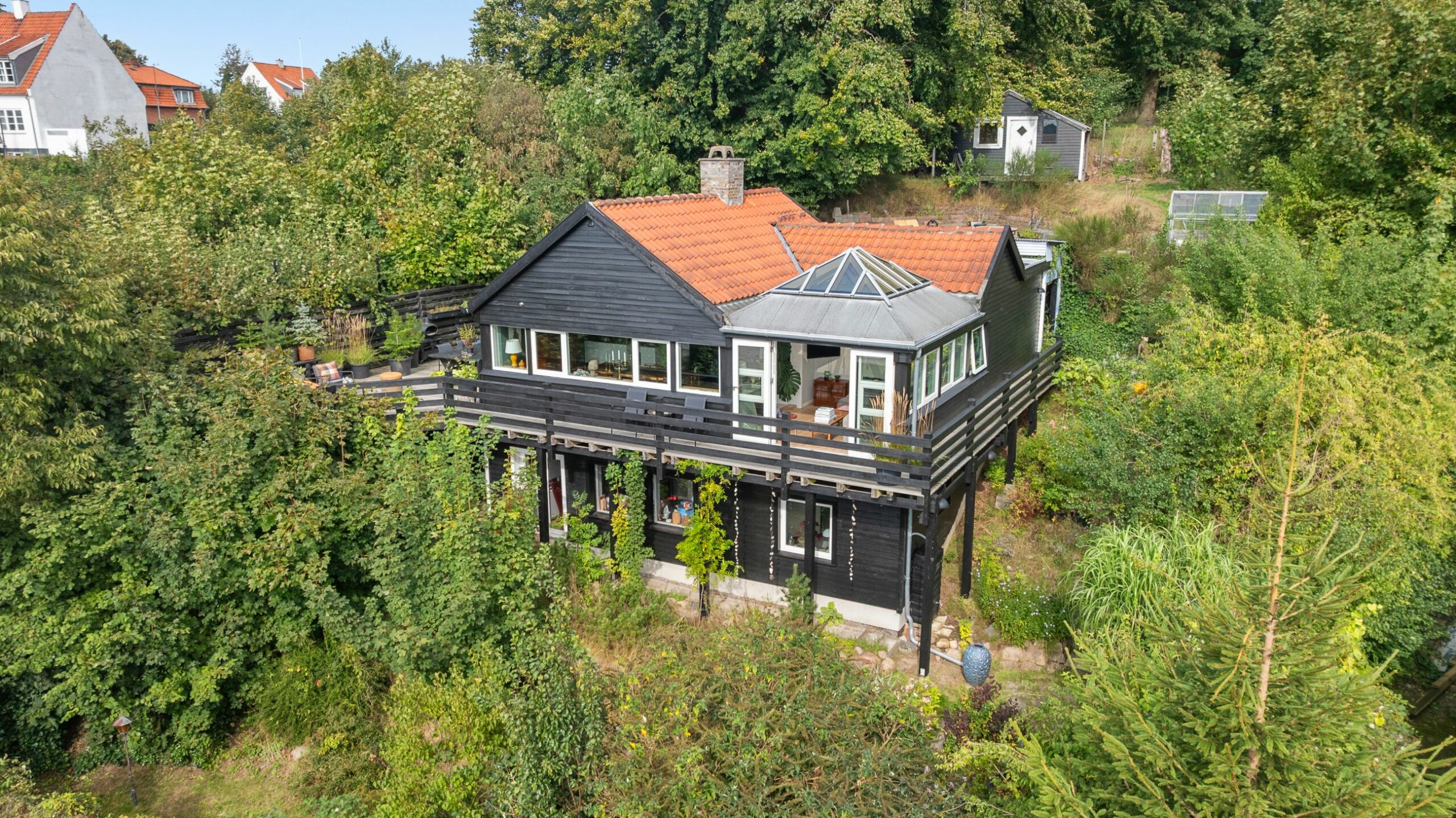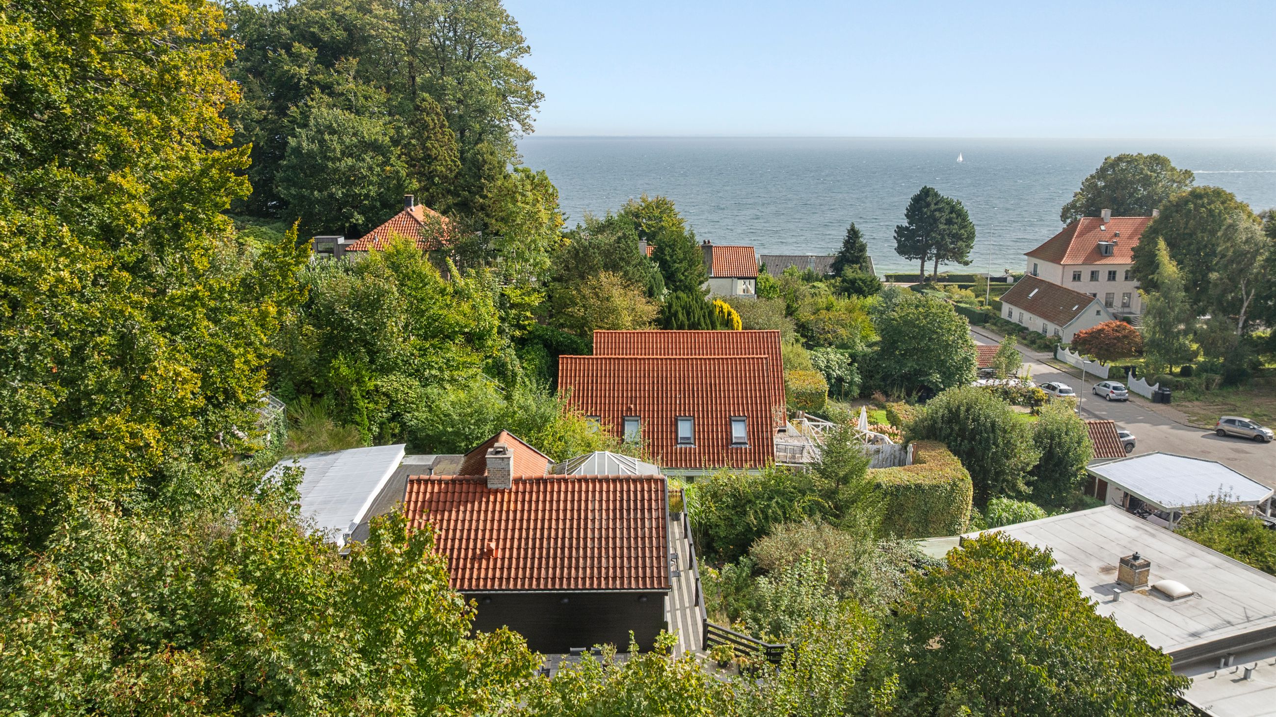 Bergmansdalsvej ligger som en lille stikvej til Søndre Strandvej. Huset i nummer 12 ligger højt i terrænet, så her er der både udsigt til vandet i Øresund, til vandtårnet i Landskrona i Sverige og masser af aftensol på terrassen. Det er et helt vidunderligt hus indrettet lækkert med lydisolerede vinduer. Ja, man kan naturligvis høre hinanden og selvfølgelig kanariefuglen, når den trækker vejret. Her er 132 m2 bolig med masser af glæde for øje og sind, her er stemning, varme og lys med en twist af sommerhus på en kæmpe terrasse mod øst, syd og vest. Invitér bare 40-50 venner til middag, der er plads til dem. Huset er oprindelig fra 1949, men det er ombygget og renoveret i bund til en moderne bolig anno 2025.