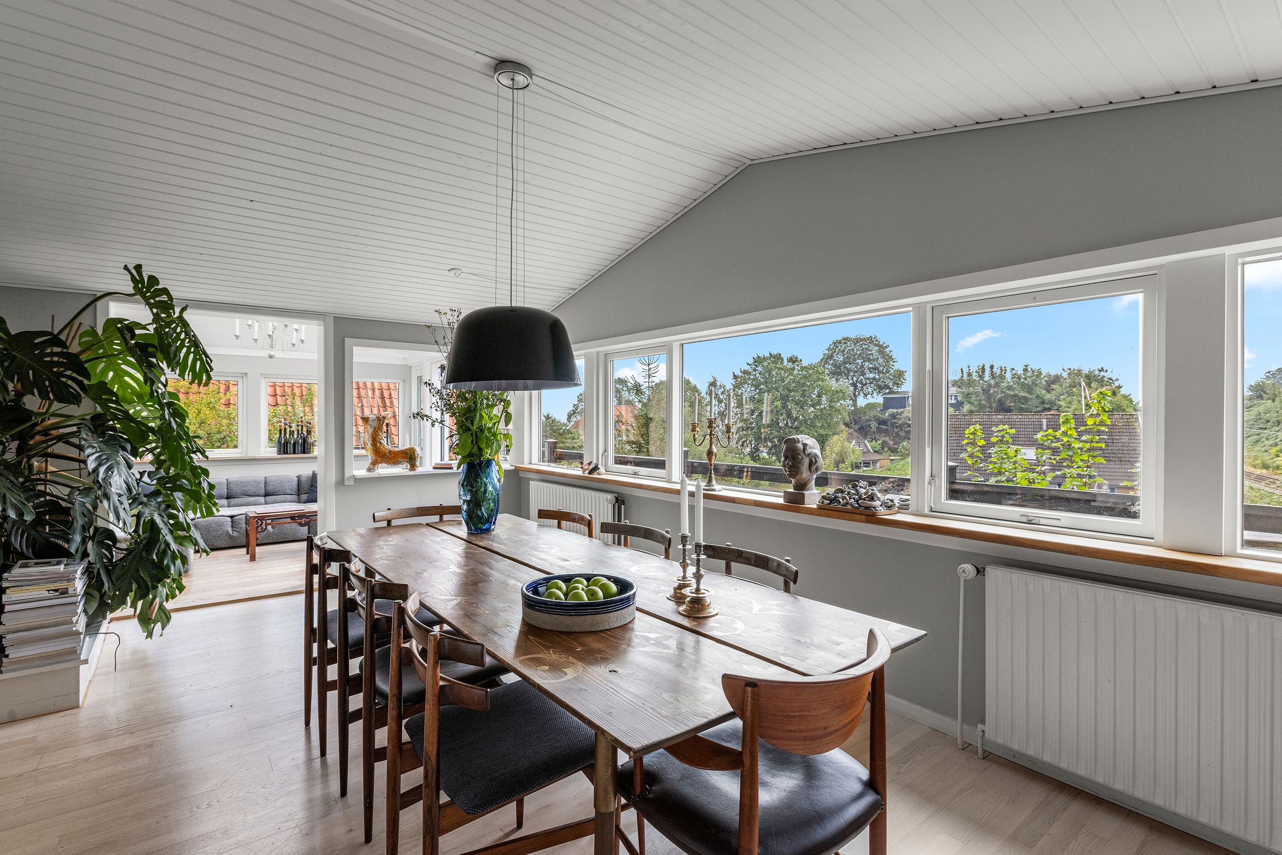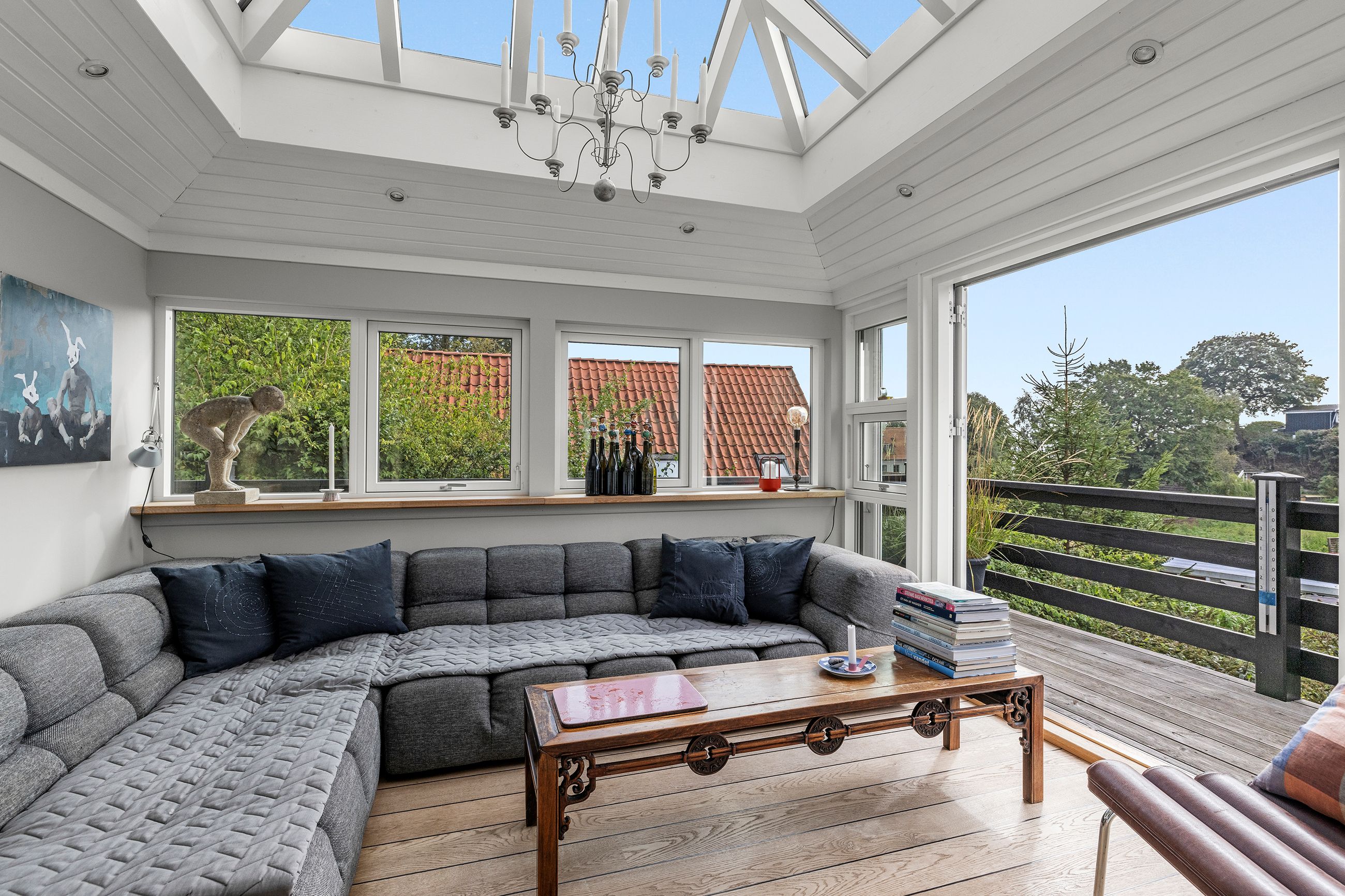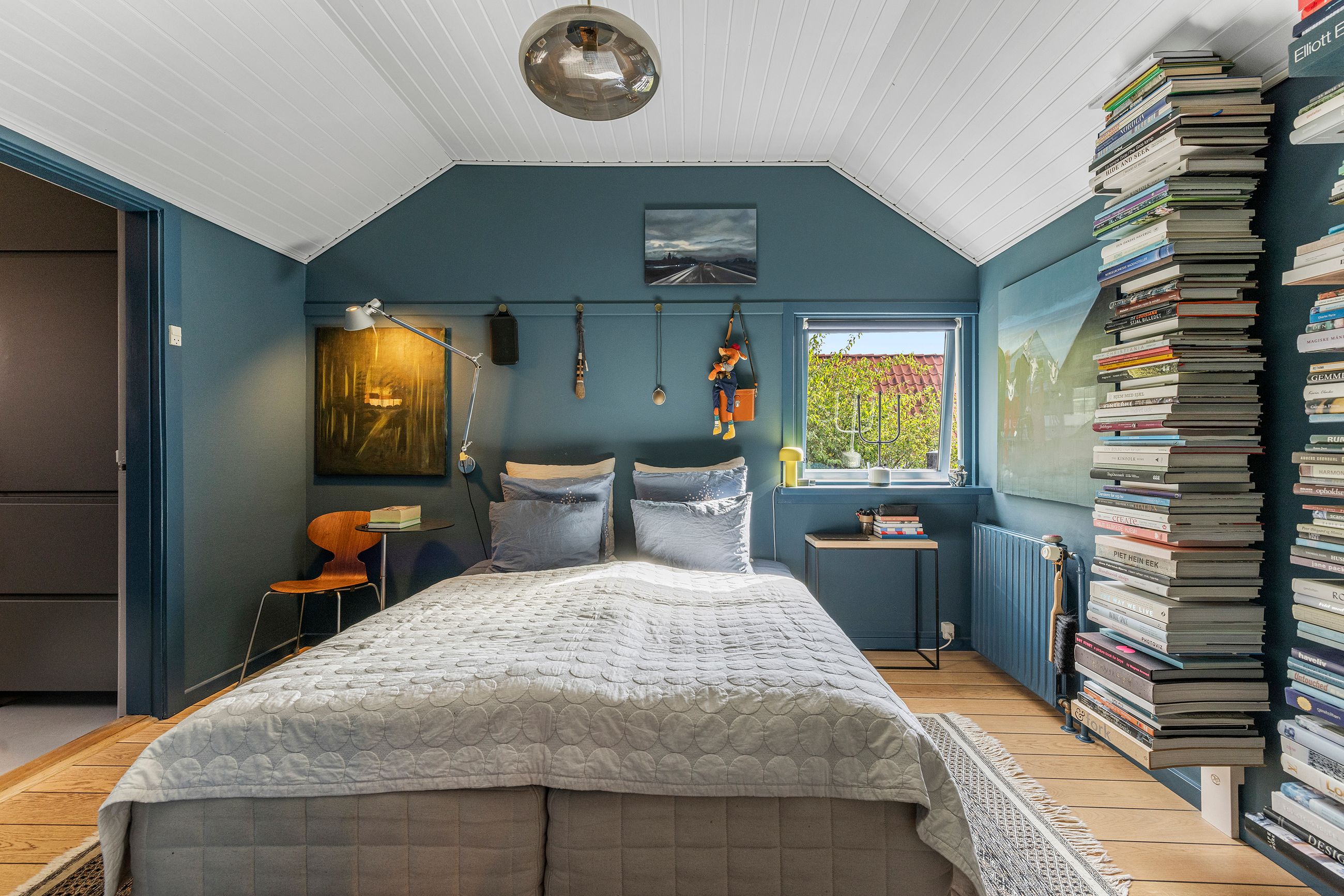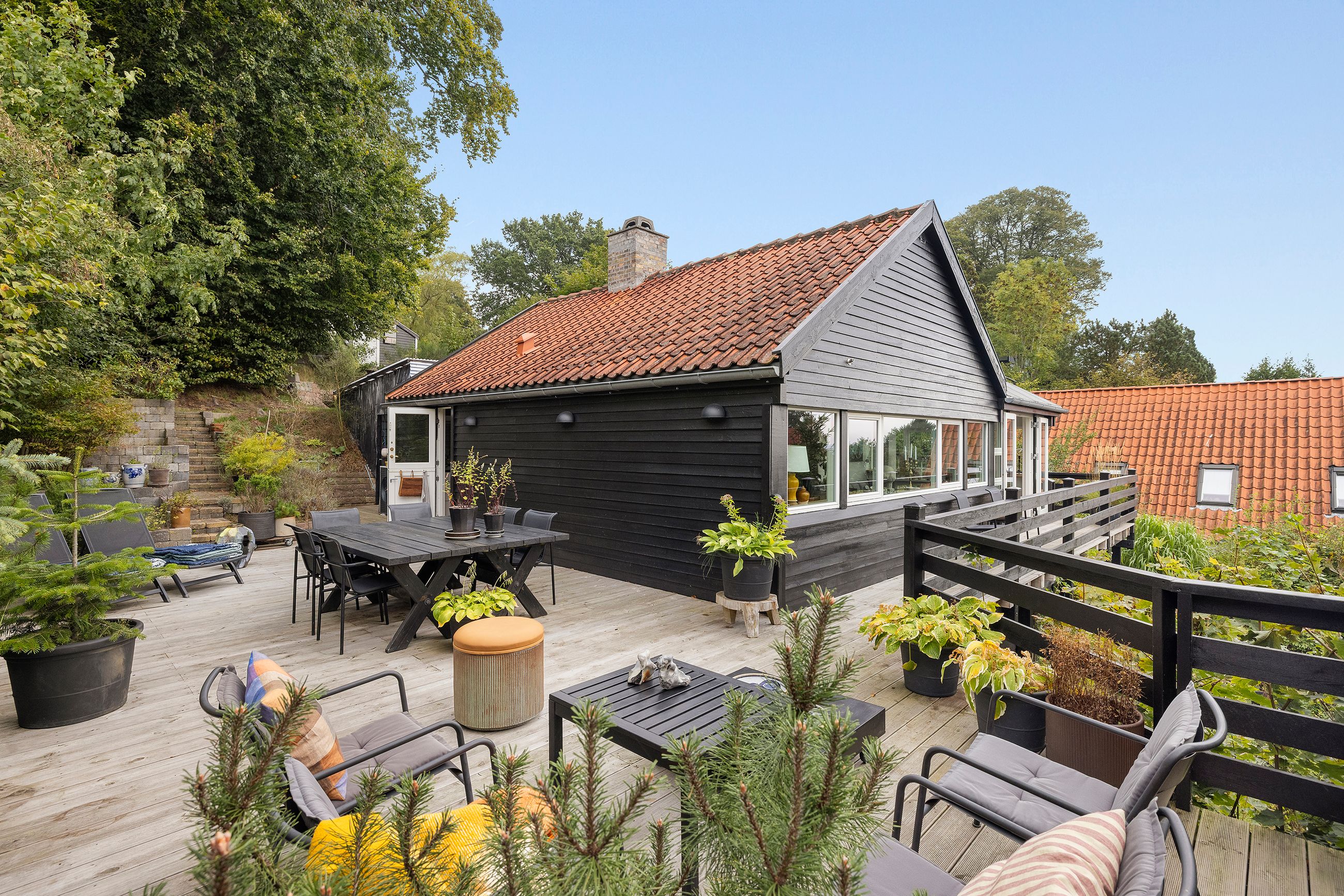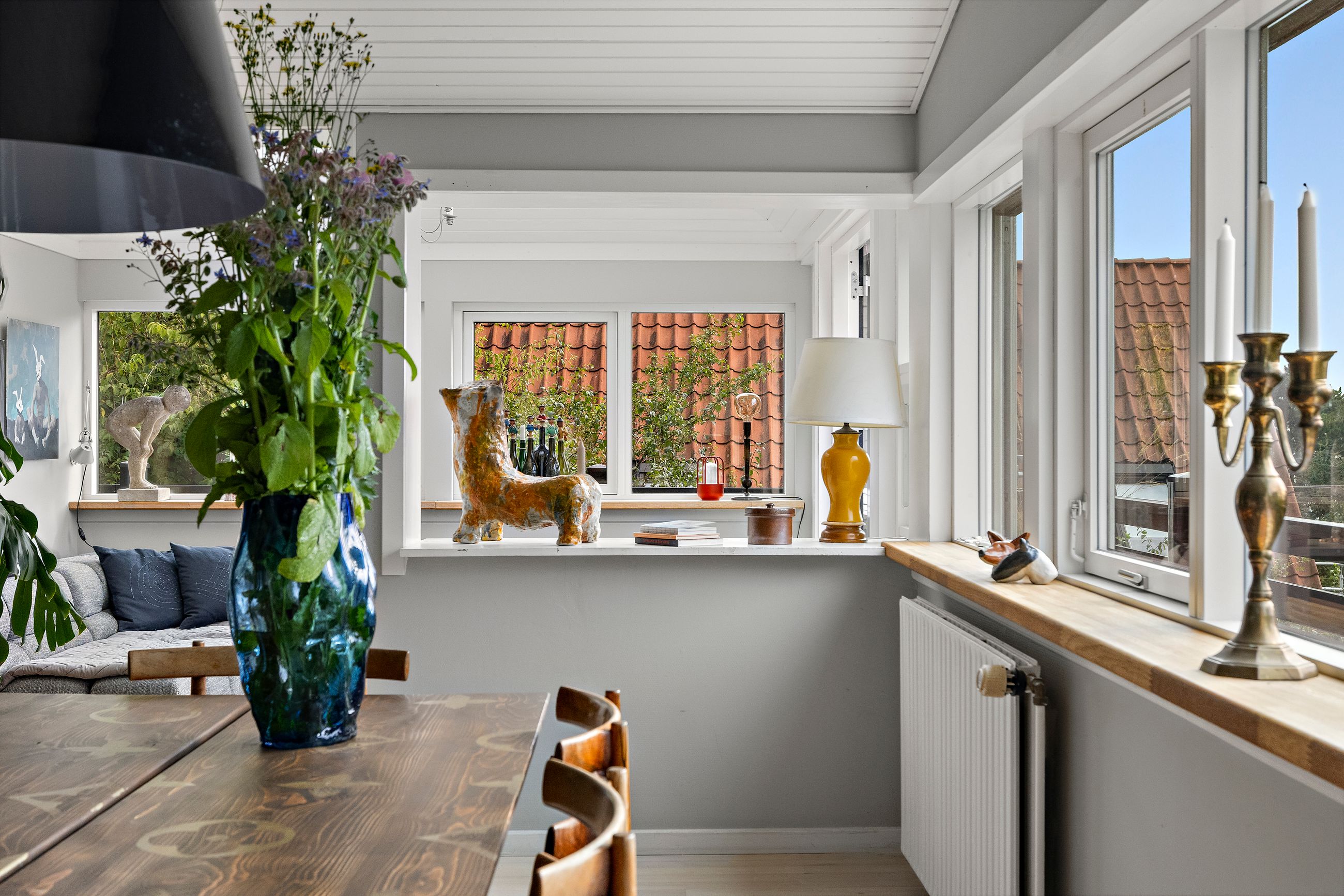 Bergmansdalsvej ligger som en lille stikvej til Søndre Strandvej. Huset i nummer 12 ligger højt i terrænet, så her er der både udsigt til vandet i Øresund, til vandtårnet i Landskrona i Sverige og masser af aftensol på terrassen. Det er et helt vidunderligt hus indrettet lækkert med lydisolerede vinduer. Ja, man kan naturligvis høre hinanden og selvfølgelig kanariefuglen, når den trækker vejret. Her er 132 m2 bolig med masser af glæde for øje og sind, her er stemning, varme og lys med en twist af sommerhus på en kæmpe terrasse mod øst, syd og vest. Invitér bare 40-50 venner til middag, der er plads til dem. Huset er oprindelig fra 1949, men det er ombygget og renoveret i bund til en moderne bolig anno 2025.
