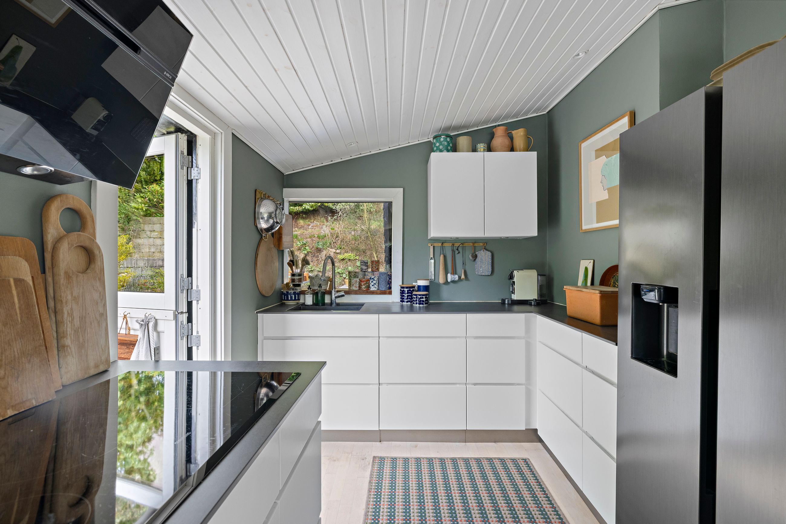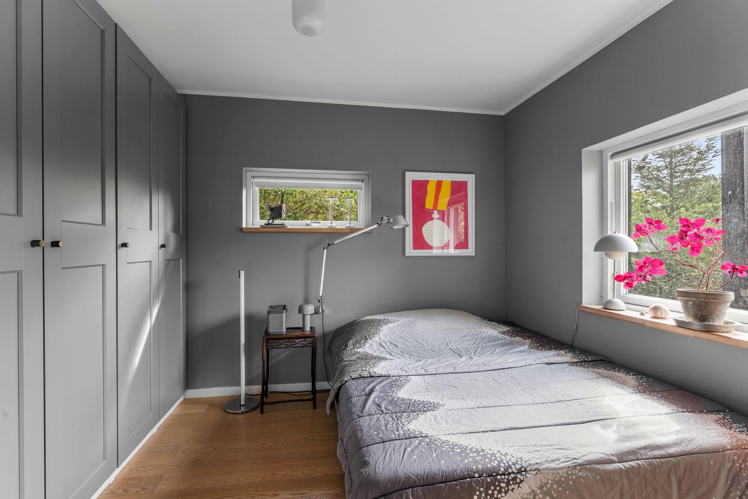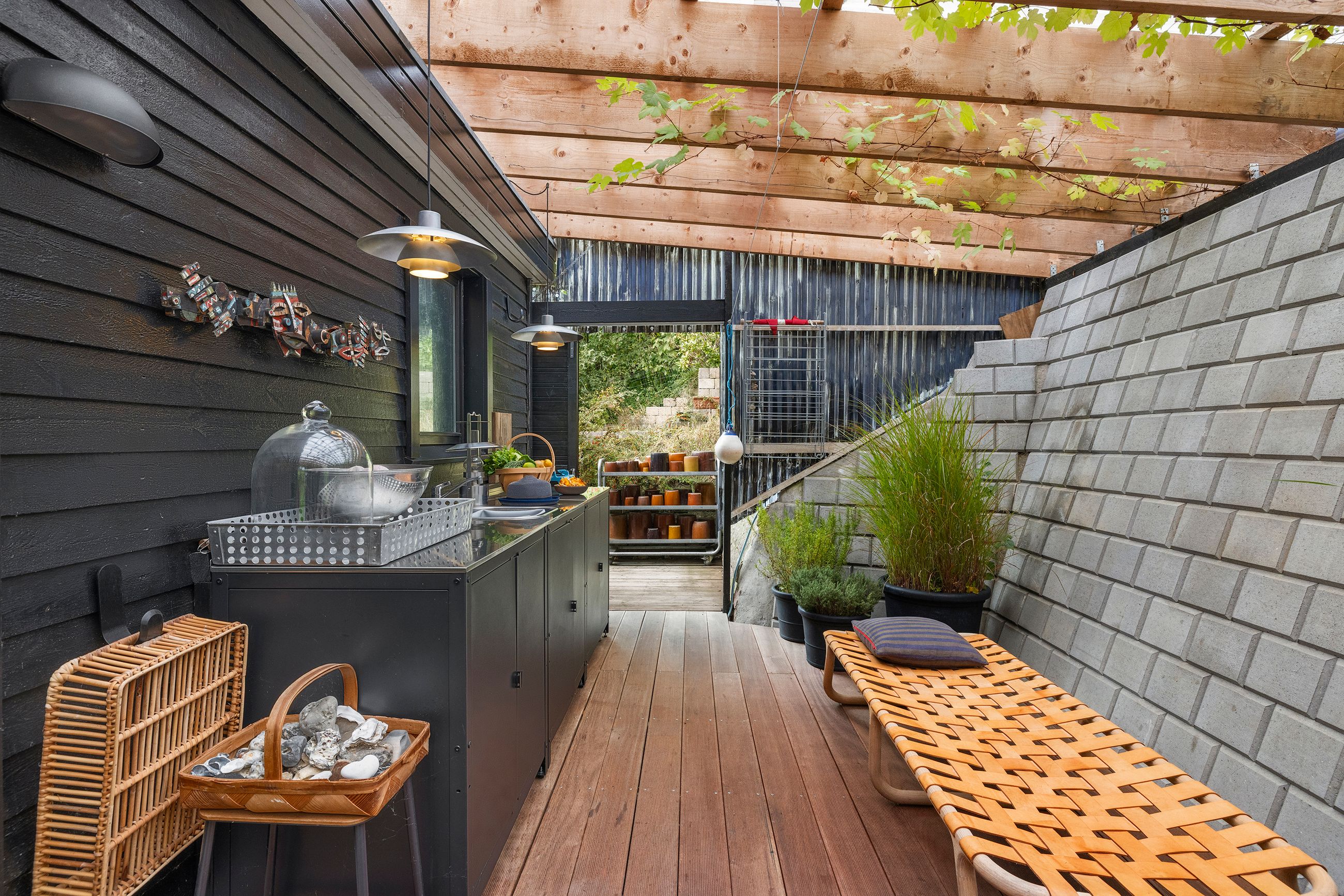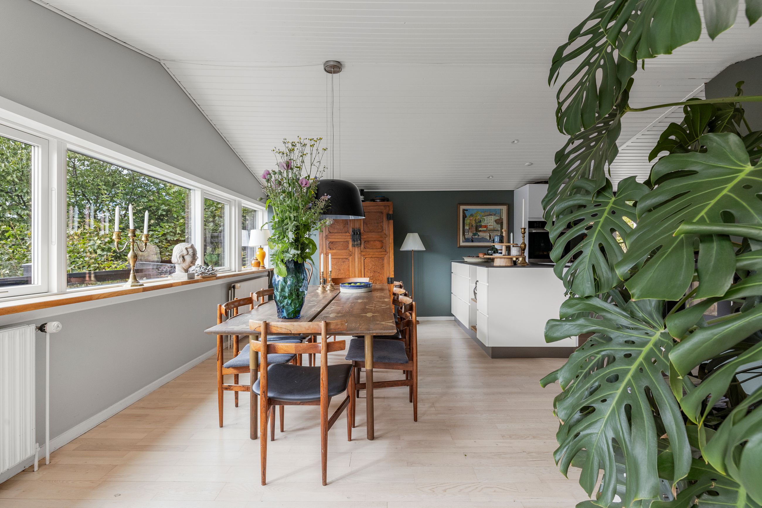 Bergmansdalsvej ligger som en lille stikvej til Søndre Strandvej. Huset i nummer 12 ligger højt i terrænet, så her er der både udsigt til vandet i Øresund, til vandtårnet i Landskrona i Sverige og masser af aftensol på terrassen. Det er et helt vidunderligt hus indrettet lækkert med lydisolerede vinduer. Ja, man kan naturligvis høre hinanden og selvfølgelig kanariefuglen, når den trækker vejret. Her er 132 m2 bolig med masser af glæde for øje og sind, her er stemning, varme og lys med en twist af sommerhus på en kæmpe terrasse mod øst, syd og vest. Invitér bare 40-50 venner til middag, der er plads til dem. Huset er oprindelig fra 1949, men det er ombygget og renoveret i bund til en moderne bolig anno 2025.