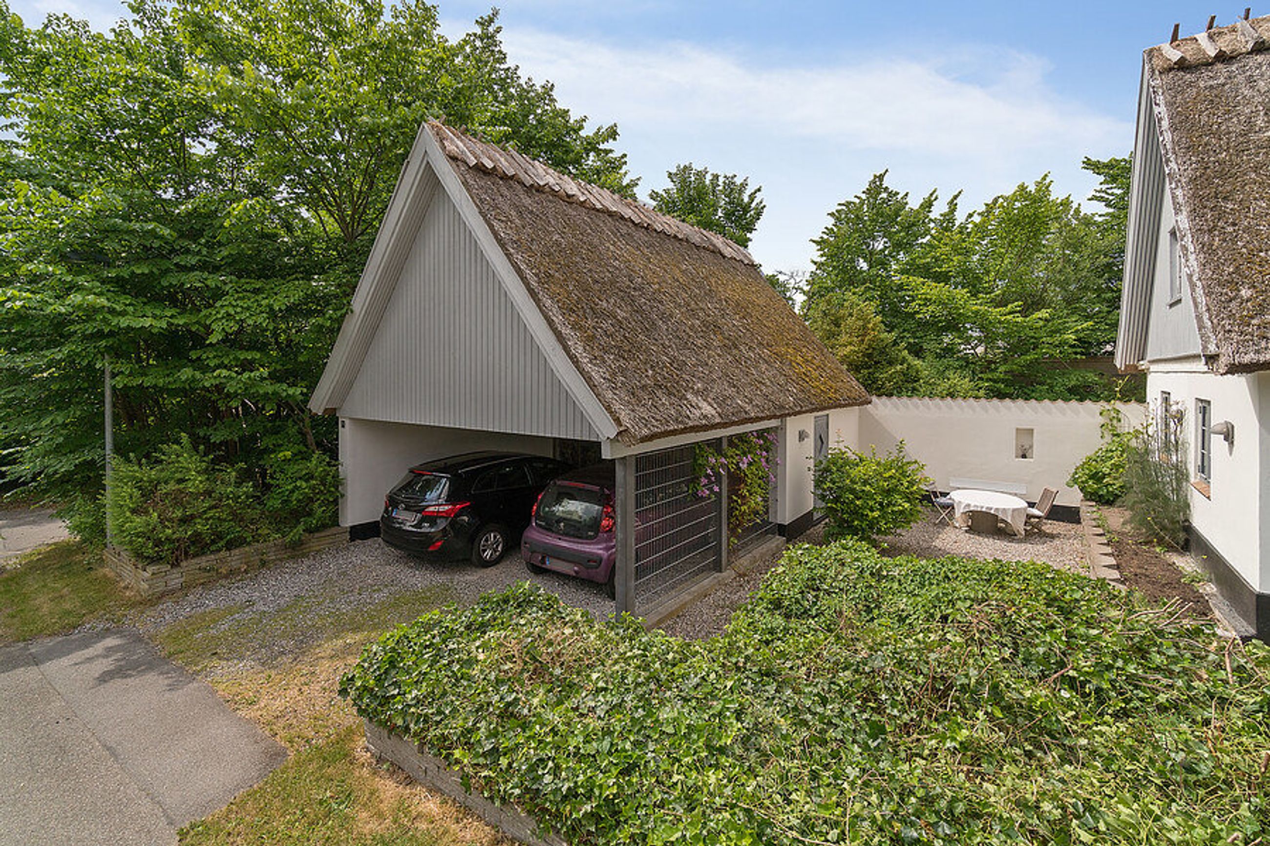 Udenfor er der en overdækket carport med plads til 2 biler, og i forlængelse et isoleret anneks.