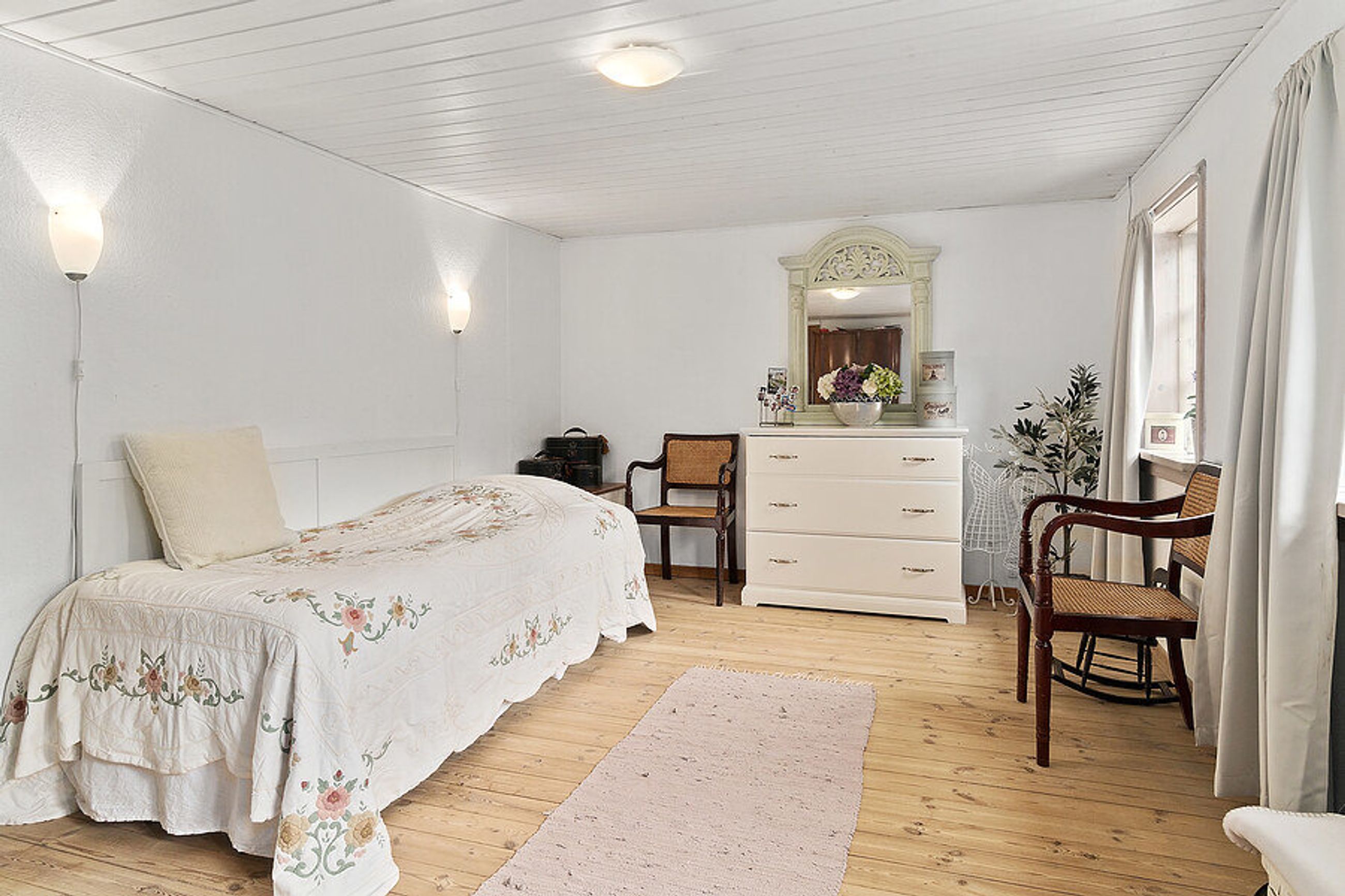 Der er også 3 fine værelser, hvor det ene værelse er lidt større end de andre, og har egen indgang. Derudover er der bryggers og badeværelse, samt et uudnyttet loftrum på ca. 100 kvm. Det beboede område er lige nu 169 m2, med det kan udvides til ca. 270 m2 hvis loftrummet laves.