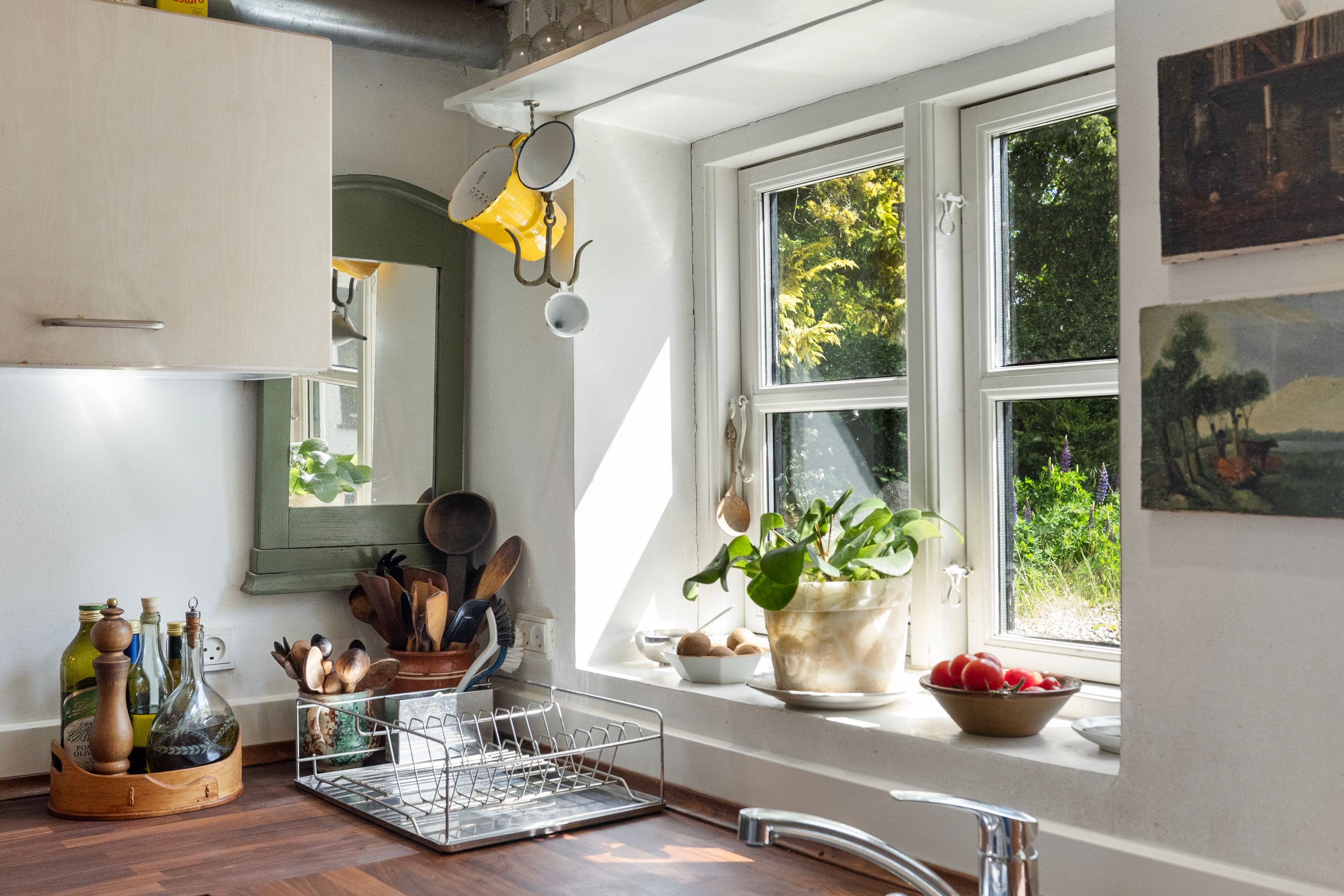 Hovedhuset på Bregnerødvej 30 har 409 m2 bolig delt i 2 lejligheder. Med 4 bokse er ejendommen ideel til familien med heste. Huset er helt perfekt til 2 generationer eller venner, der med hånden på hjertet gerne vil være naboer. Men de mange m2 er også perfekt til den store familie, der har brug for masser af plads. Det er bygget i 1850 på en lidt over 6 hektar grund i landzone med de fordele, der følger med lave ejendomskatter. Alt er velholdt, hus, have, beplantning, garager, alt. Haven er ikke parklignende, den er en park med sø, drivhus, hyggelige terrasser, bænke med lange udsigtskig, køkkenhave, nattergale, høns og masser af sol. Her er frugttræer og gamle træer med plads til en gynge, for voksne kan også godt lide at svinge sig en tur. Det hele ligger langt fra alfarvej, som man sagde i gamle dage, indkørslen er nemlig 600 meter lang, så der er langt til naboen.