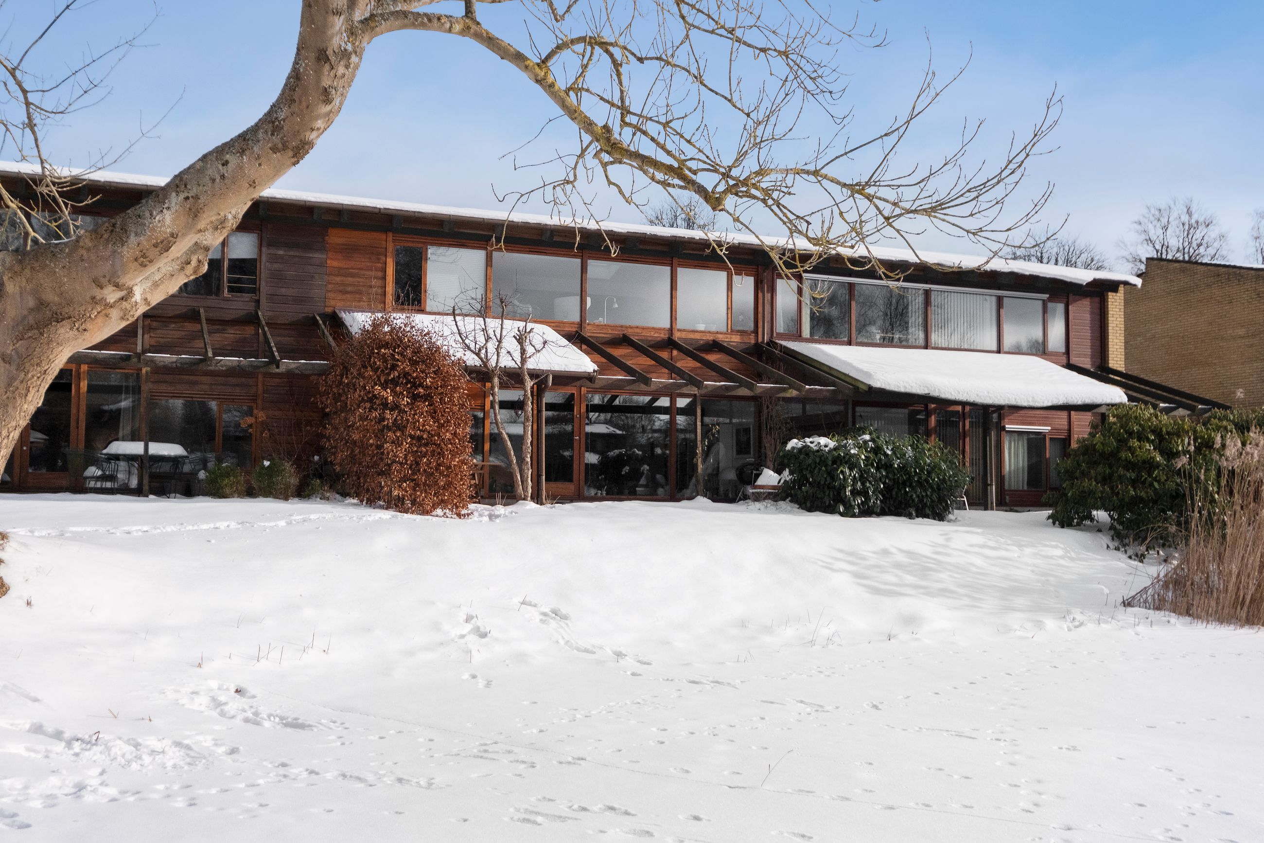 Som vi danskere er flest, kan vi nævne 3 danske arkitekter: Jørgen Utzon, Arne Jacobsen og Henning Larsen. Måske 4, som vi siger om d’Atagnan i Alexandre Dumas historie om de 3 musketerer, for Johan Kristensen har bestemt også sat sine fodaftryk på arkitekturen i Danmark. For eksempel de murede étplansvillaer og 2-plansvillaer i Carinaparken i Birkerød, hvor de 20 villaer omkring Trudeslund Sø har stor kontakt mellem stue, have og søen i bunden af haven. Det er lækkert, solidt håndværk, hvor mahogni er det dominerende udtryk. Det er jordnær modernisme med varme materialer i en menneskelig skala. Johan Kristensen havde en mahognifabrik i Malaysia, så han have styr på både produktion og kvaliteten af den mahogni, der kom til landet.