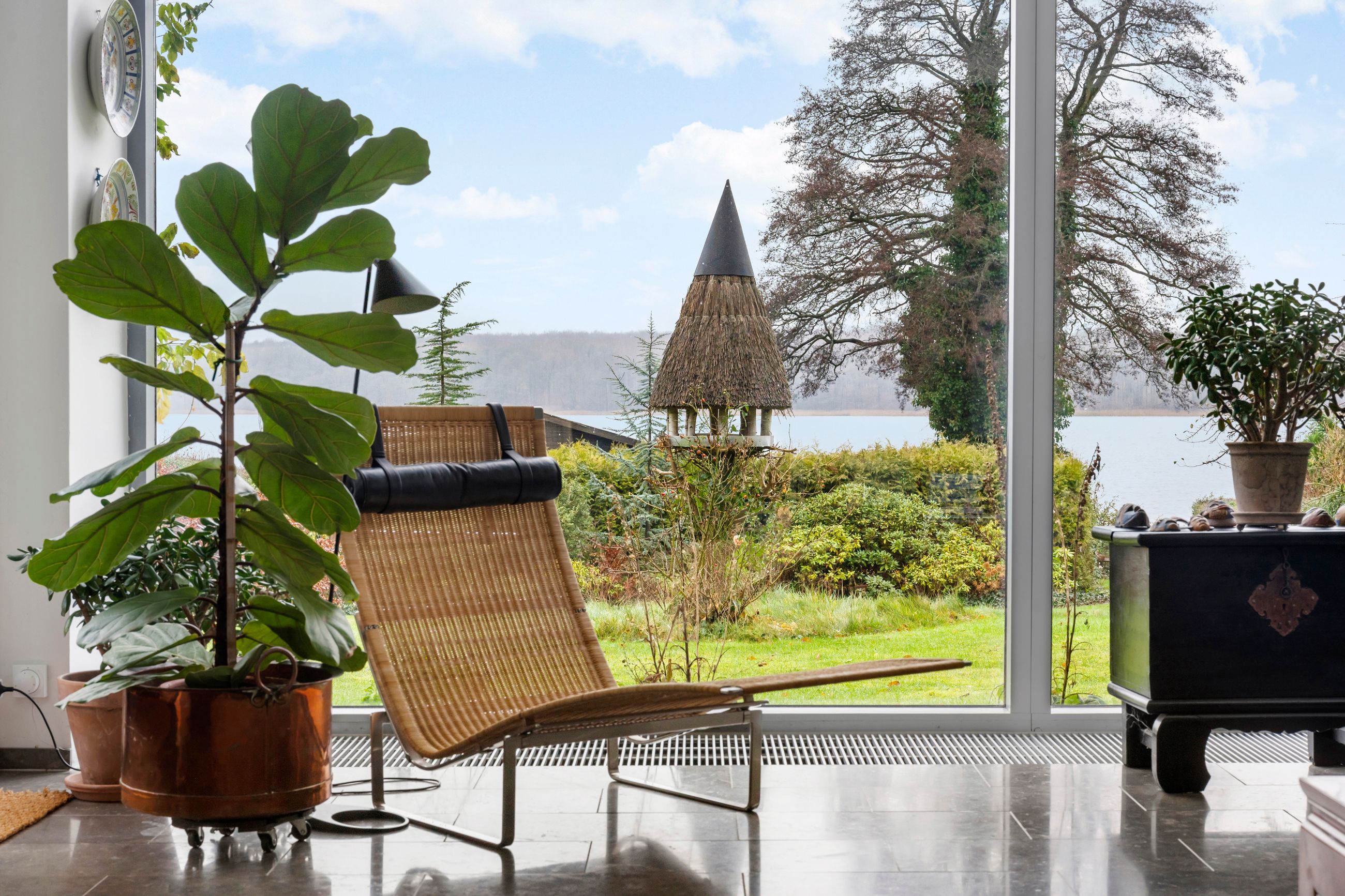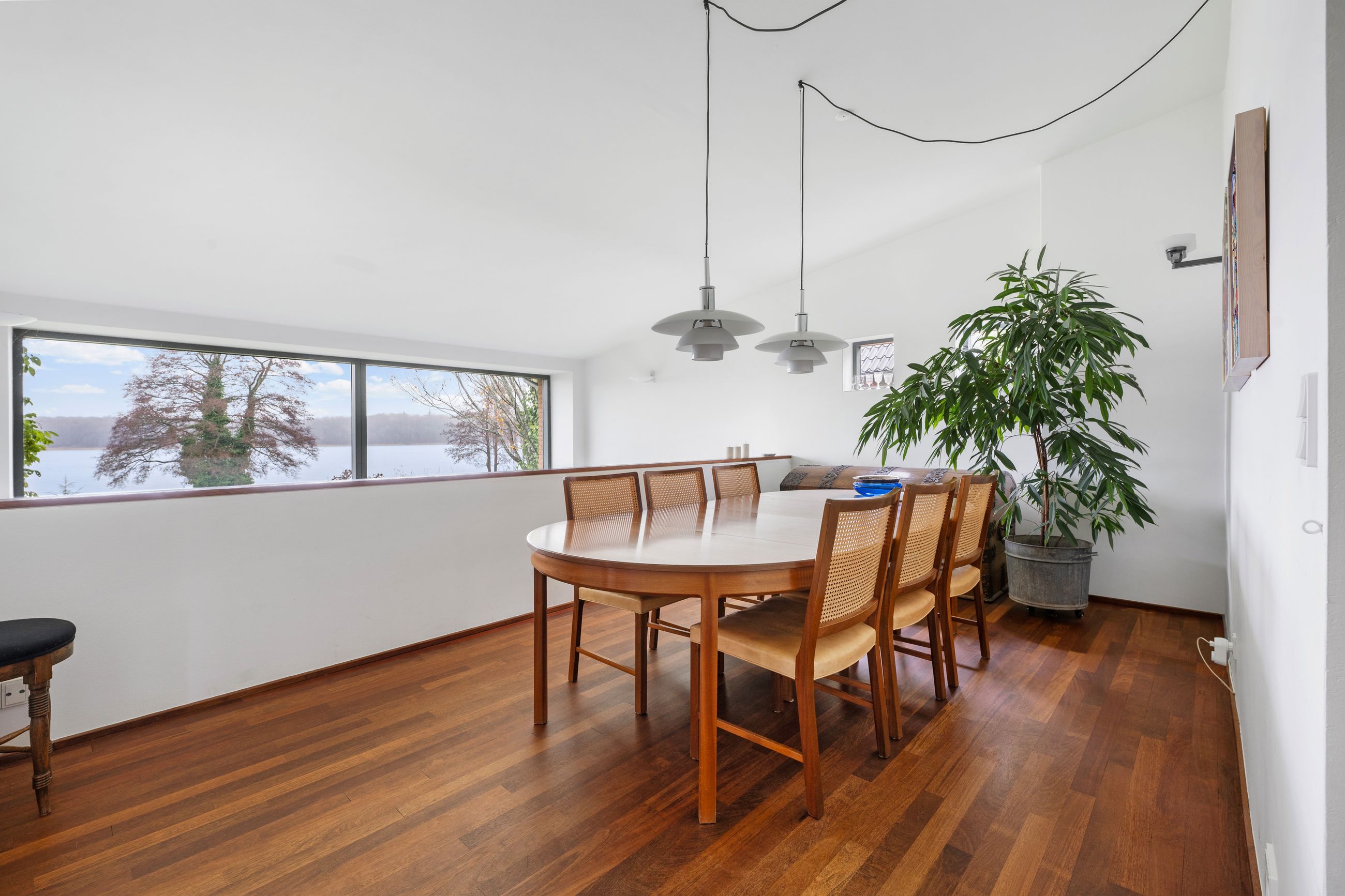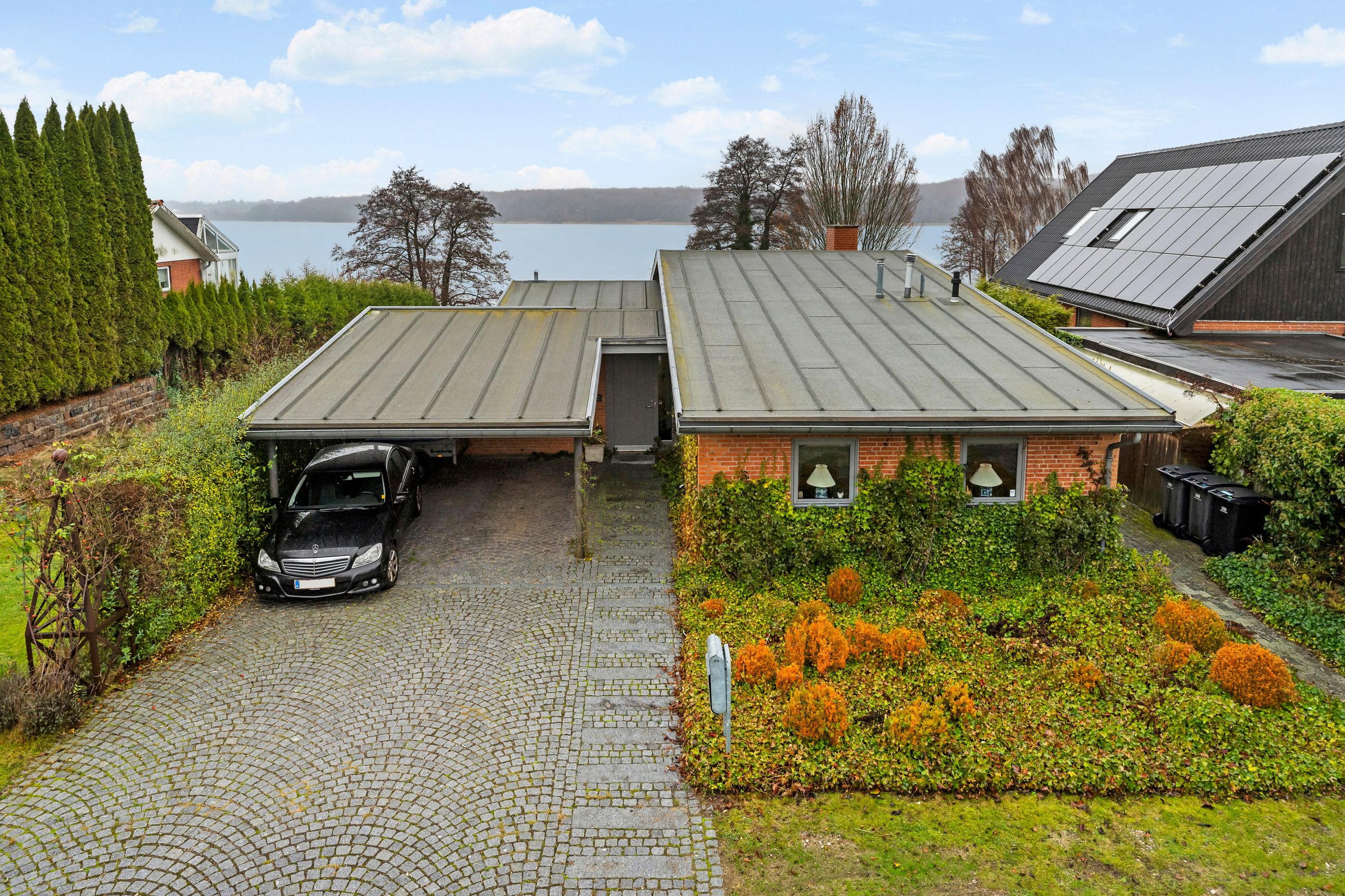 Carl Plougs Vej ligger på Ravnsnæsset syd for Sjælsø i et stille kvarter. Grunden ender bogstaveligt talt i Sjælsø. Badebroen er også terrasse og bådebro til kano og kajak. Grunden er på 1.133 m2 og skråner, så huset set fra vejen poserer som et étplanshus, mens det fra søen er et hus på 2 etager: underetage og stueetage. Her er 217 m2 inklusiv den del af underetagen, der er godkendt til beboelse. Det er altså et stort hus med masser af plads, højt til loftet og en planløsning, som tager godt imod en ny familie med børn. Huset er bygget i 1997 med store vinduer fra gulv til loft mod søvandet, masser af lys, masser at natur, meget at smile af, mere at glæde sig over. Alt er velholdt og godt passet på.