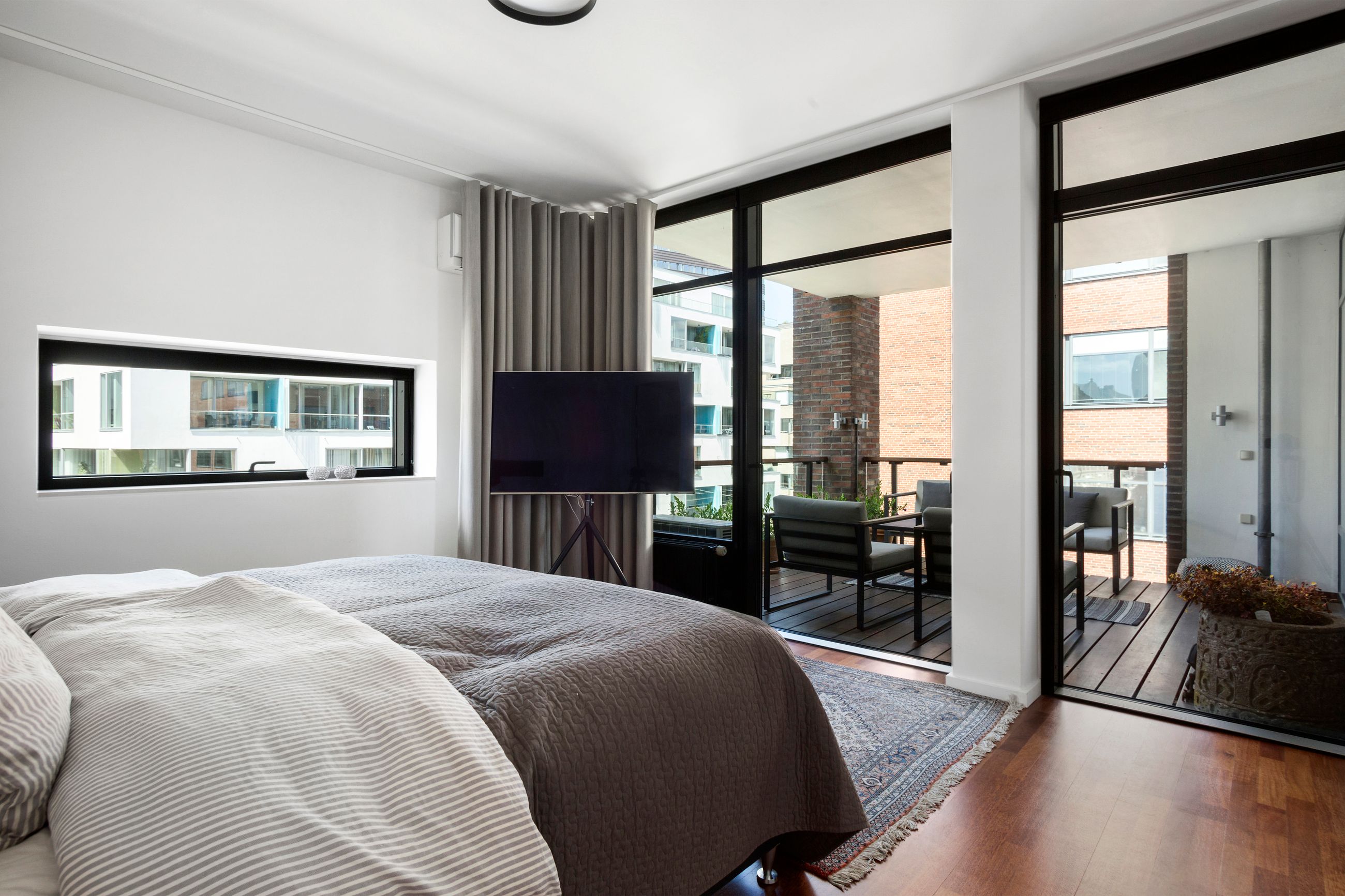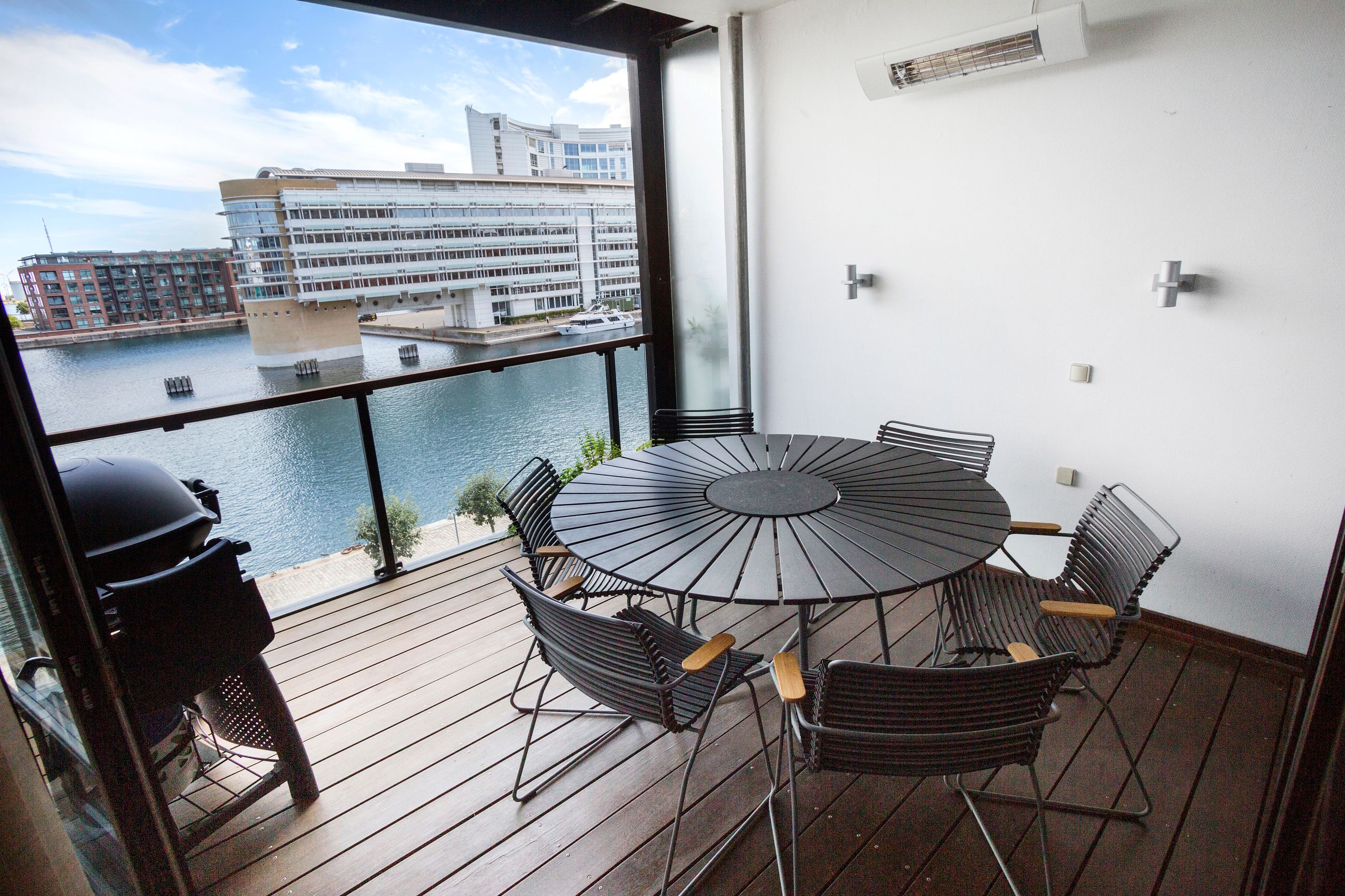 Ejendommen på Dampfærgevej er fra 2001, hvor lejligheden på 3. sal er på 165 m2. Heroppe er der masser af lys og den dybe udsigt til havnebassinet. Med 165 m2 er den en stor lejlighed med en mageløs udsigt til vandet i kanalen og den maritime natur, der kommer med en havn i en metropol. Med masser af glas mod kanalen er her masser af lys fra genskinnet i vandet. Med store rum, lange kig og vestvendt altan bliver man kun glad her. Fri parkering foran ejendommens lukkede parkeringsplads. P-plads i p-kælderen er med i prisen, orangeri og gårdhave er fælles. Og så er her fitness og selskabslokale. Trekroner og Langelinje er i udsigten fra lejlighedens store terrasse og altan. Her er stille og roligt, aftnerne er stille som en Ninja. Kvarteret har nogle af de mest eksklusive adresser i København med spektakulære udsigter. Gåafstand til kanalstranden i Nordhavn den ene vej og Kastellet det anden.