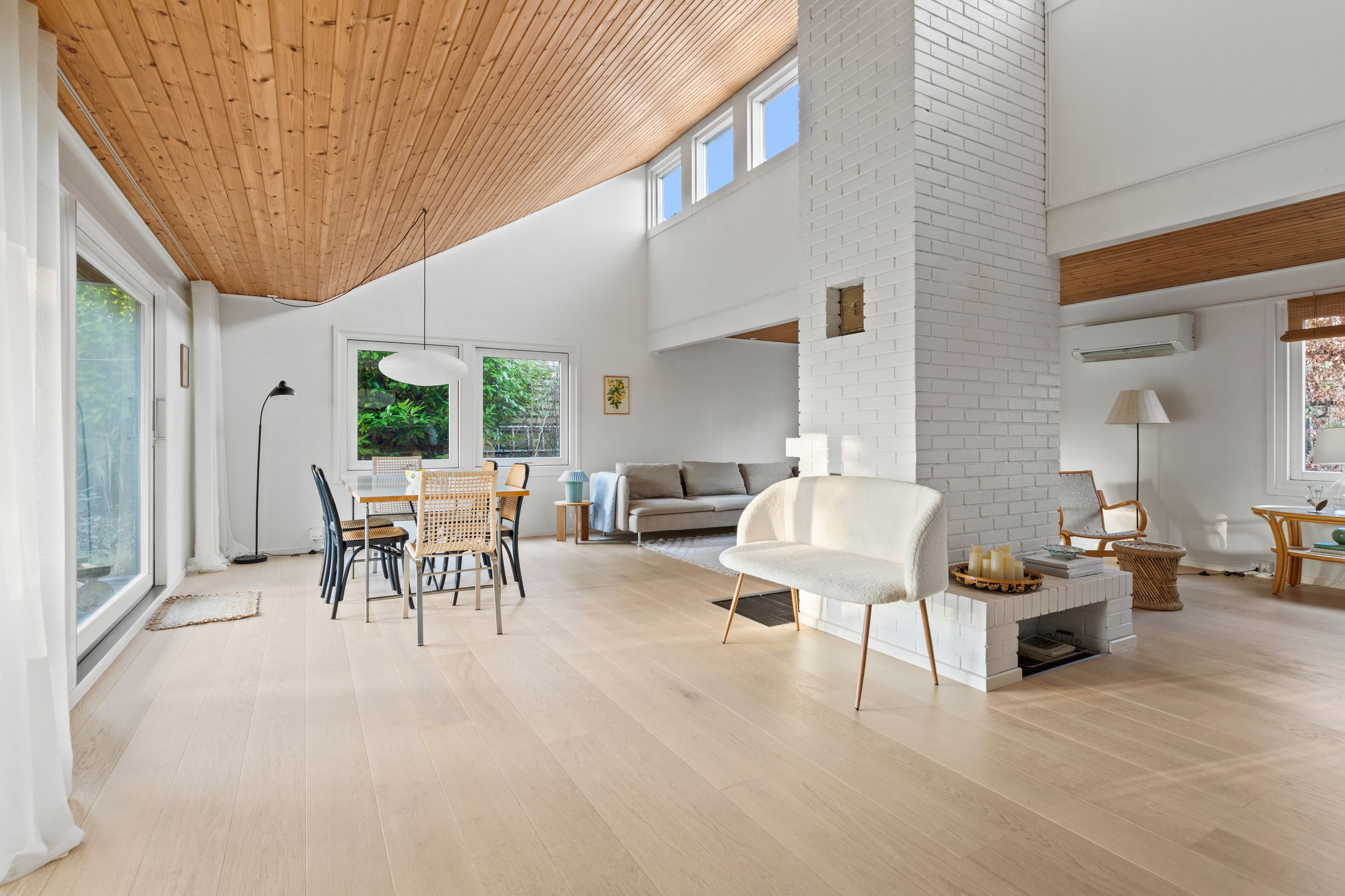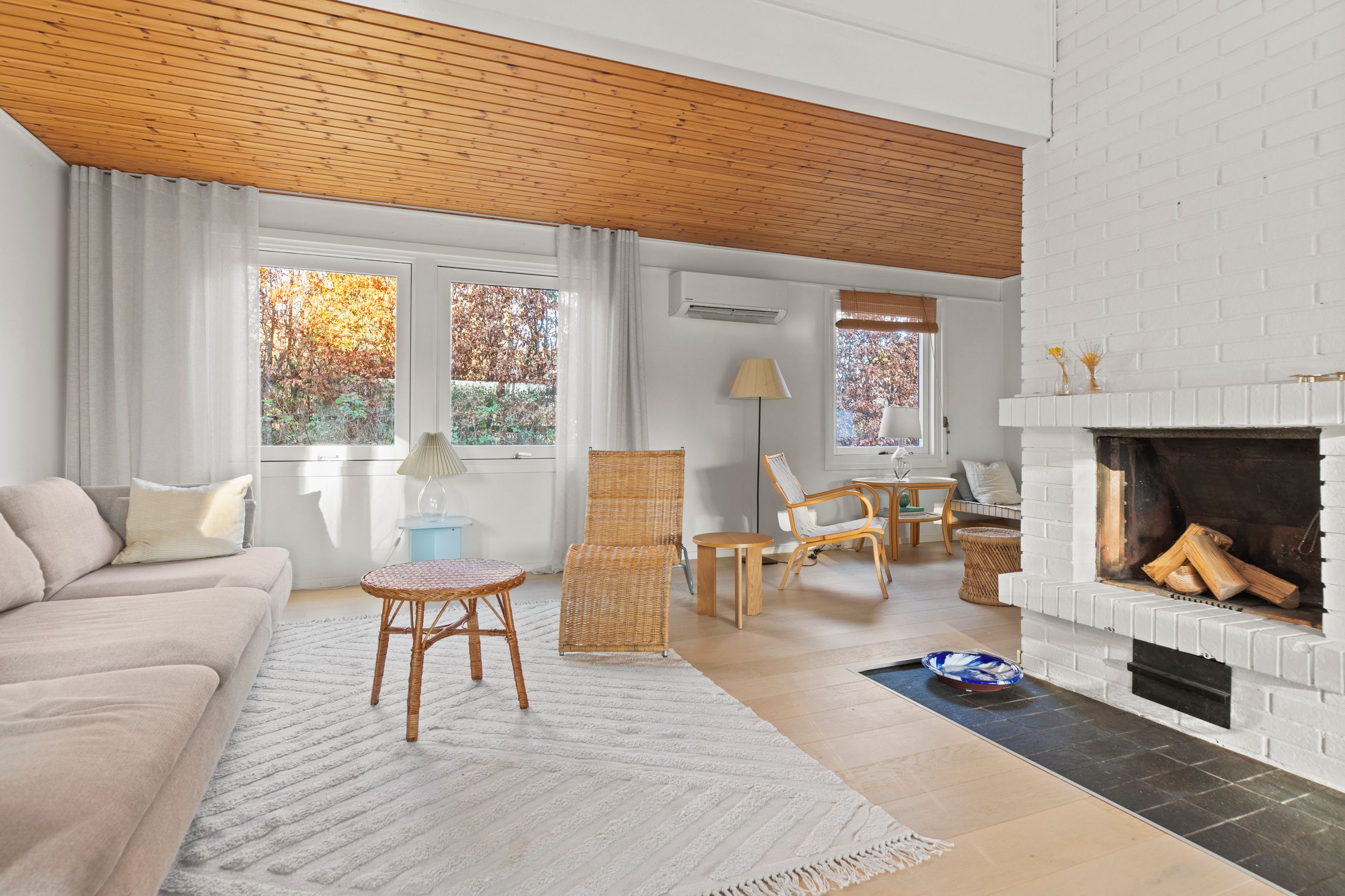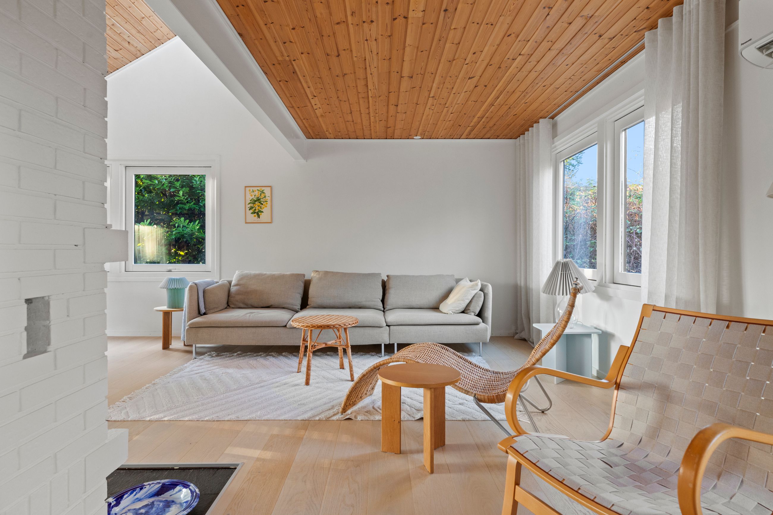 Sommerhuset på Drosselvej 27 er det synlige bevis på en arkitektkonkurrence i 1980. Det forklarer de 5 meter til loftet, himmellyset, de mange zoner i fællesrummet, pejsen som rumdeler og udnyttelsen af de 104 m2. Huset er renoveret i 2024 og lige til at flytte ind i. Grunden er på 836 m2 med sydvendt terrasse. Beliggenheden er én af de bedste i Dronningmølle. Naboen er Ruslands Bakker, altså det Rusland, hvor Rudolph Tegners Museum og Statuepark ligger. Det er et fredet landskab bevokset med lyng, enebær, fyrretræer og monumentale, dramatiske statuer. Et sælsomt syn. På en varm sommerdag kan man høre den lille drosselfugls sang som modsætning til Hornbæk og Gilleleje, hvor klipklapper og ispinde kan tælles i tusindvis.