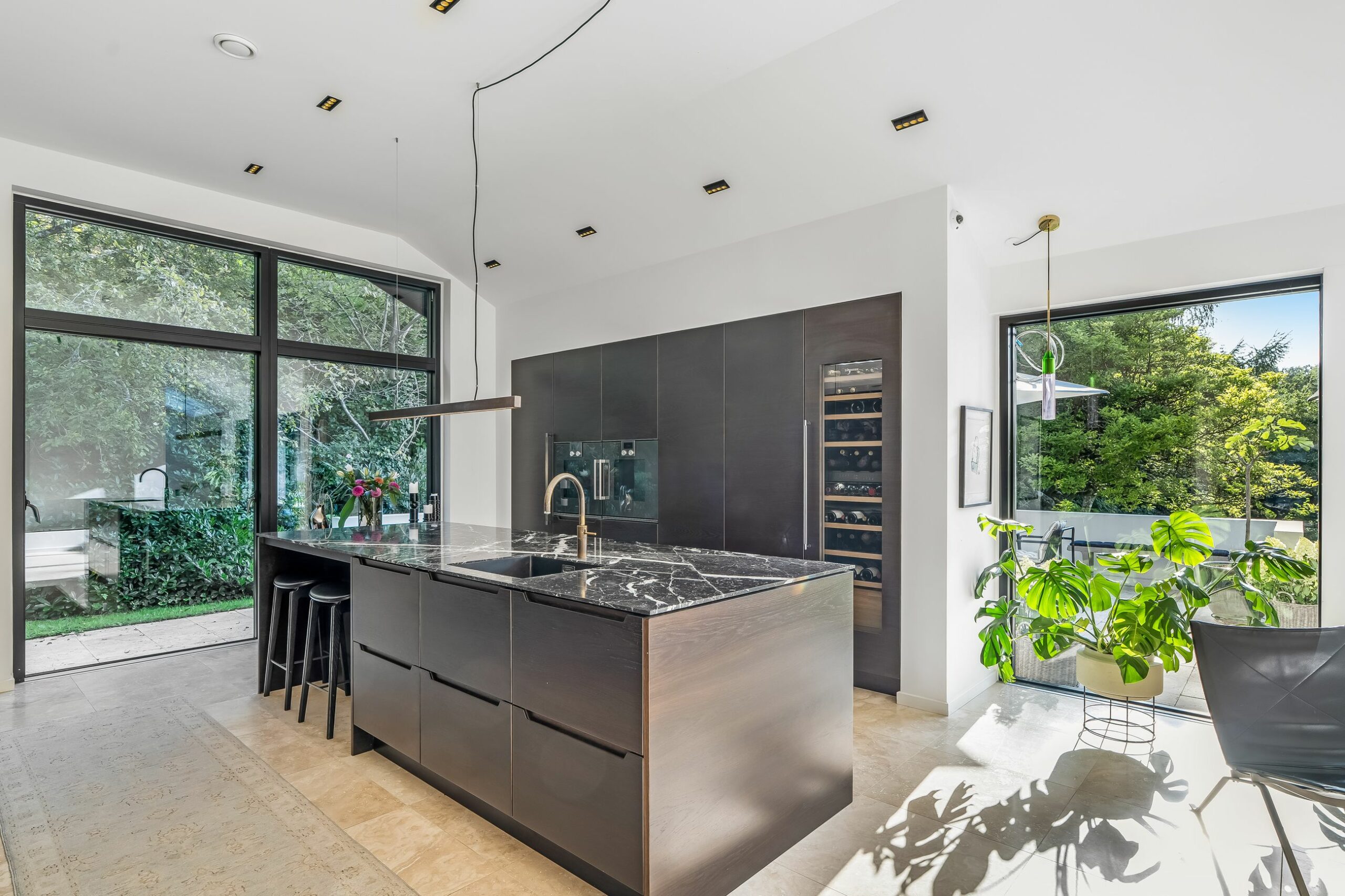 Som et af de sidste huse i den nordlige ende af Vedbæk står et arkitekttegnet hus fra 1952 bygget af arkitekt Halldor Gunnløgsson på Elmevej. Men her gør vi lige en hurtig afstikker og spoler frem til 2020, hvor huset blev bygget til, så det i dag er på 270 m2. En meget vellykket tilbygning, siger vi bare. Det ugenerede terrassemiljø er en forlængelse af køkkenalrummet, travertin på gulvet inde og ude. Naboer kan ikke kigge ind, men det kan fuglene, de smiler med det ene øje, når de flyver forbi. Det er et hus med masser af udsigt til grønt, ja, som at bo i en skov. Her er masser lys, masser af udkig til den fine have. Alt er lækkert og lige til at flytte ind i. Huset ligger højt og trukket tilbage fra Strandvejen. Der er adgang til privat strand med badebro et par hundrede meter lige om hjørnet. Grunden er på 2.758 m2.