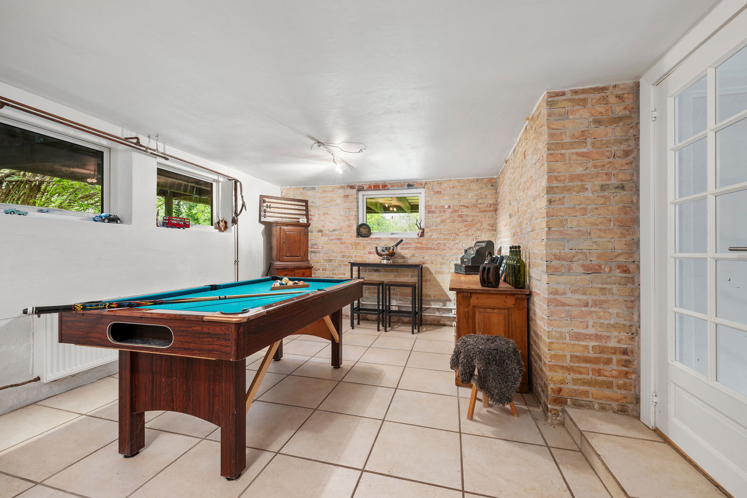 Bolbroengen ligger i baghaven til huset på Enghave 32. Nemlig, egen havelåge til den fantastiske natur, som engen er. Vejen er en stille lomme af natur og grønne drømme, der snor sig blidt mellem haver og tid. Her går tiden i tøfler, ja, den drypper lidt afsted. Det er et hus fra 1954, men det er jo bare en dåbsattest, for virkeligheden er en anden. Det er et velholdt hus, som står på den 1.207 m2 store grund. Alt er gennemført uden at ryste på hånden. Her er 255 etagemeter, hvor de 85 ligger i underetagen. Så her er der plads til familien med børn, au pair, teenageafdeling, hobby og alt i fritid. De smukkeste tennisbaner ligger desuden lige for enden af baghaven.