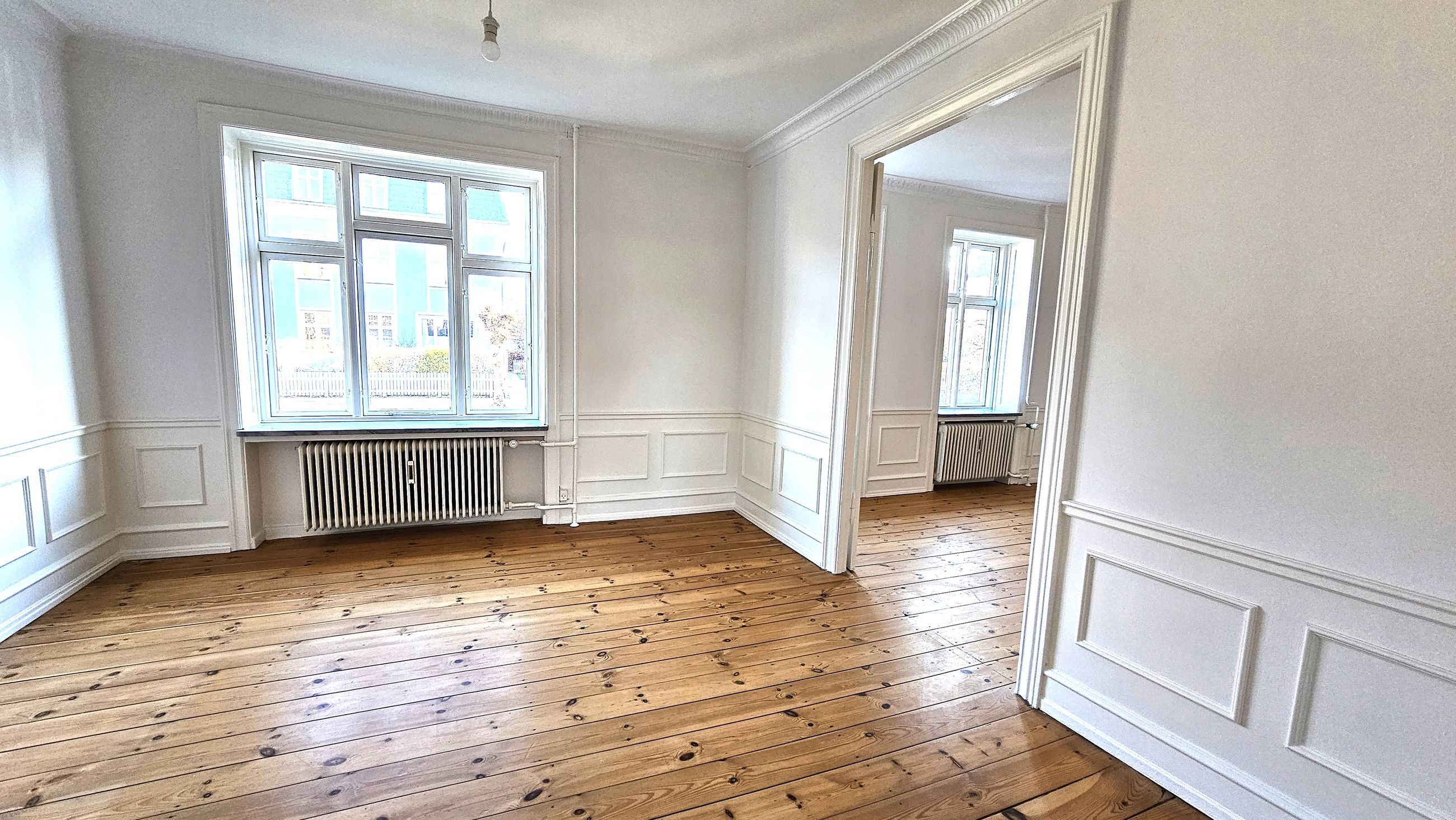 Hele lejligheden er netop nyistandsat fra A-Z med nye elinstallationer, nyt køkken med nye hvidevarer, helt nyt badeværelse med gulvvarme og separat bruseområde. Lejligheden er indrettet med høje paneler og stuk der fremhæver det herskabelige og alt fremstår nymalet og klar til overtagelse.