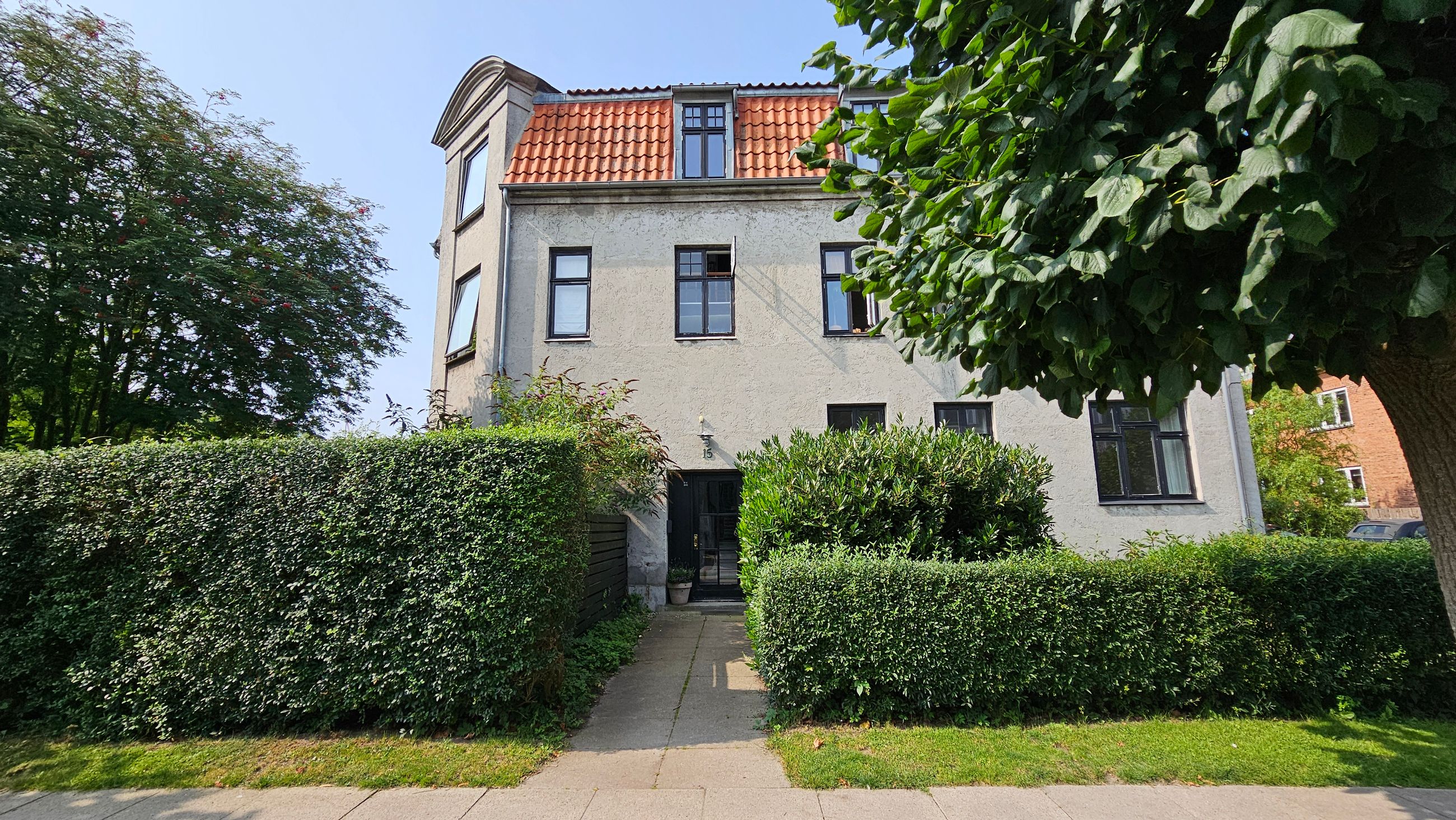 Når du er mere til hjemlig hygge, kan du slænge dig i havemøblerne i den skønne have, der deles med de øvrige beboere i ejendommen. Her kan du både nyde solen, grille en god bøf og spise middag under den overdækkede terrasse imens du nyder de flot beplantede blomsterbede.