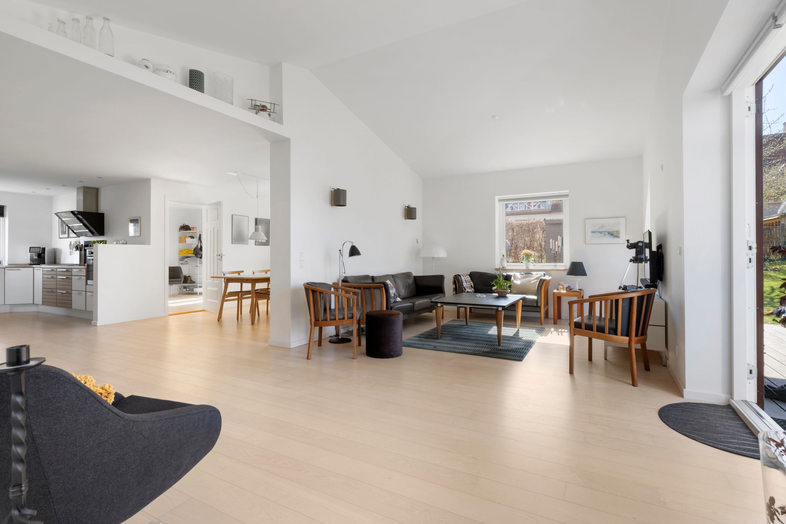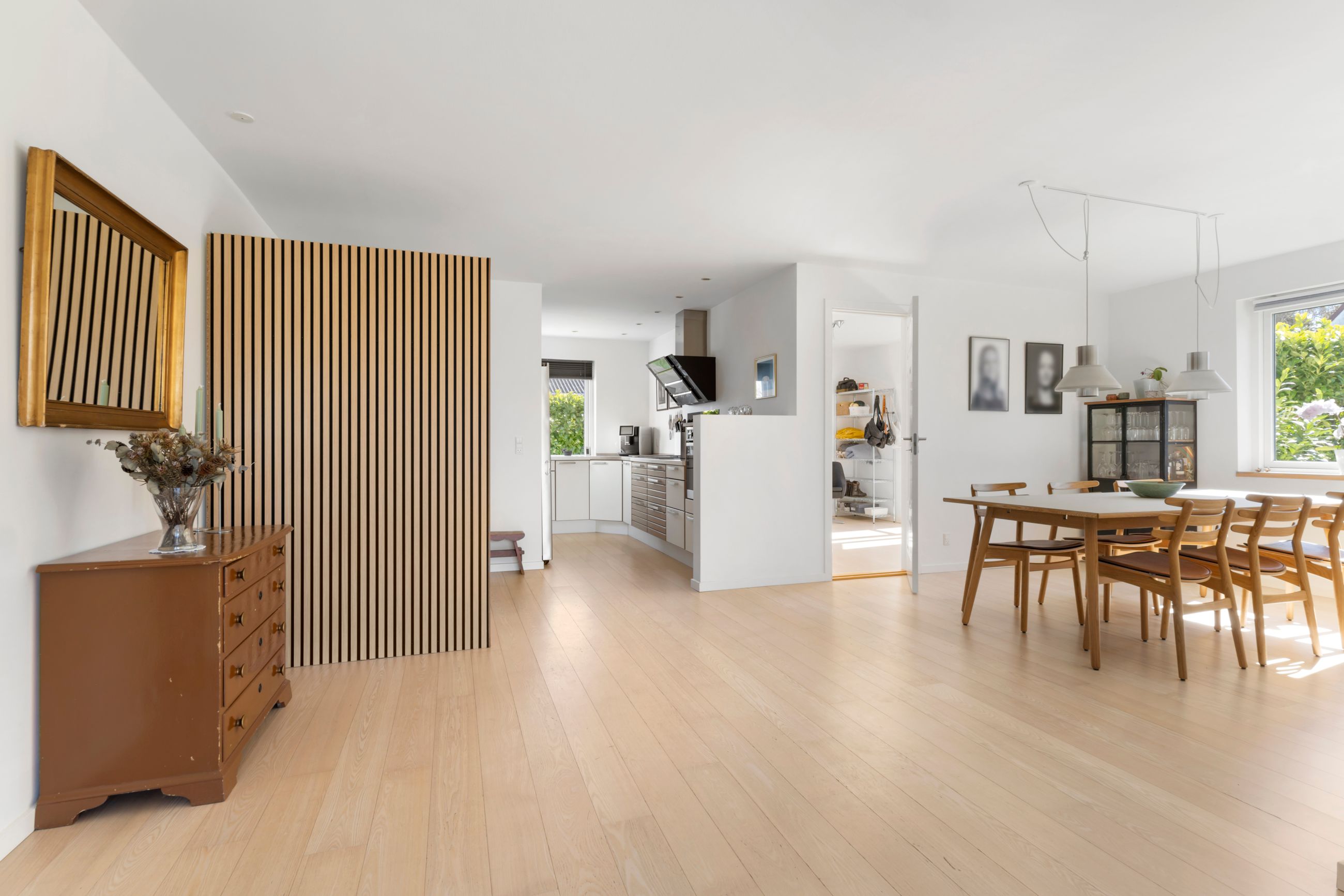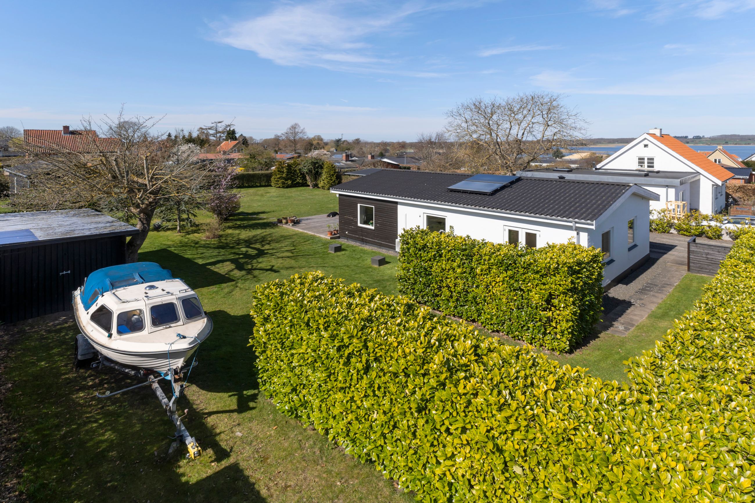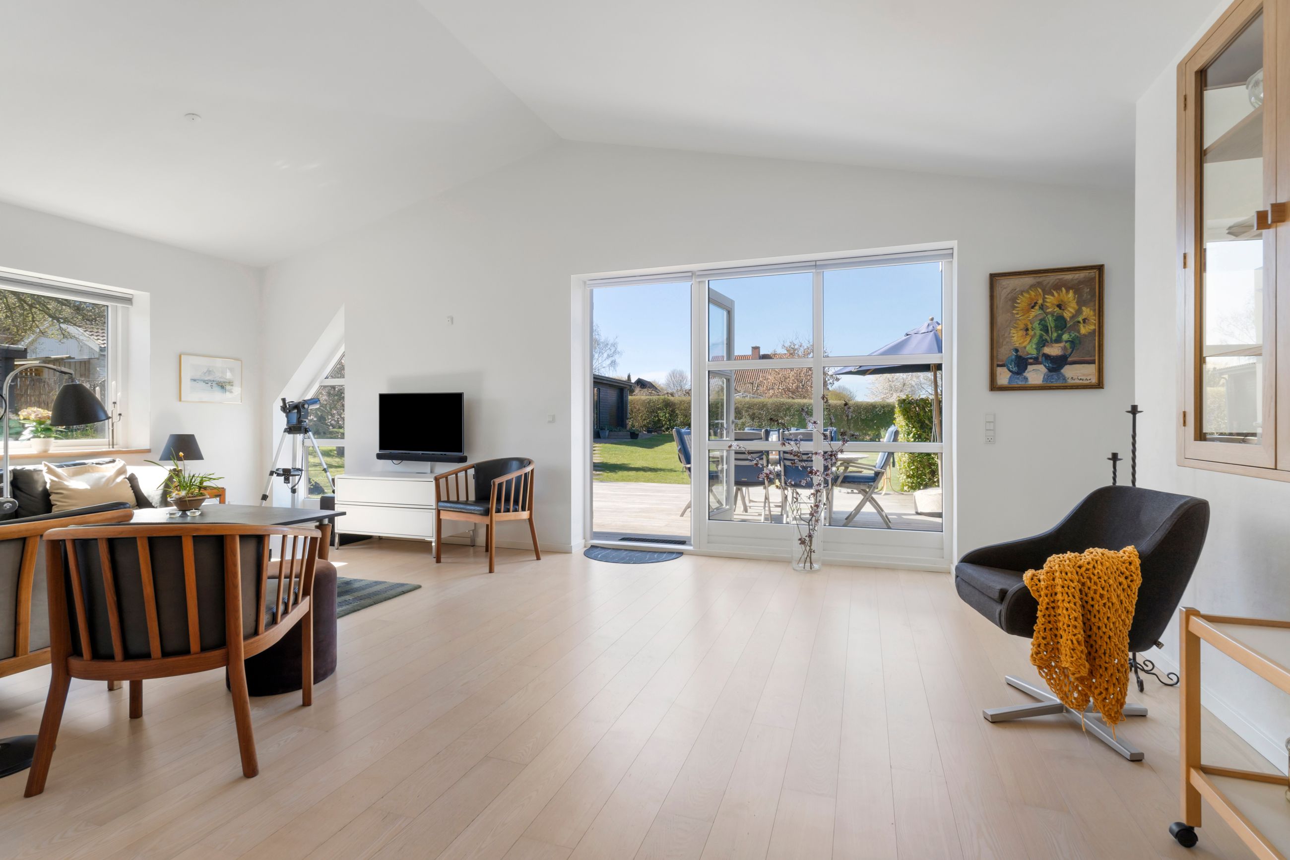 På Fr. Olsensvej 1 står et hus fra 1951 på kanten af Holbæk by, bare 100 meter fra Holbæk Fjord. Det er et charmerende hus, ombygget i 2012. Det eneste der er tilbage af det oprindelige hus, er ydermurene, som tidligere var røde mursten, men nu pudset hvide. Huset er nu en moderne bolig med gulvvarme overalt på 132 m2. Solpaneler på taget bidrager med varmt brugsvand og et blødgøringsanlæg forbedrer vandets hårdhed. Her er udsigt til fjordvandet i Holbæk Fjord, masser af lys, luft og aftensol på terrassen. I annekset er der blandt andet mulighed for havestue, atelier eller andet. Haven er nem at holde, tak for det.