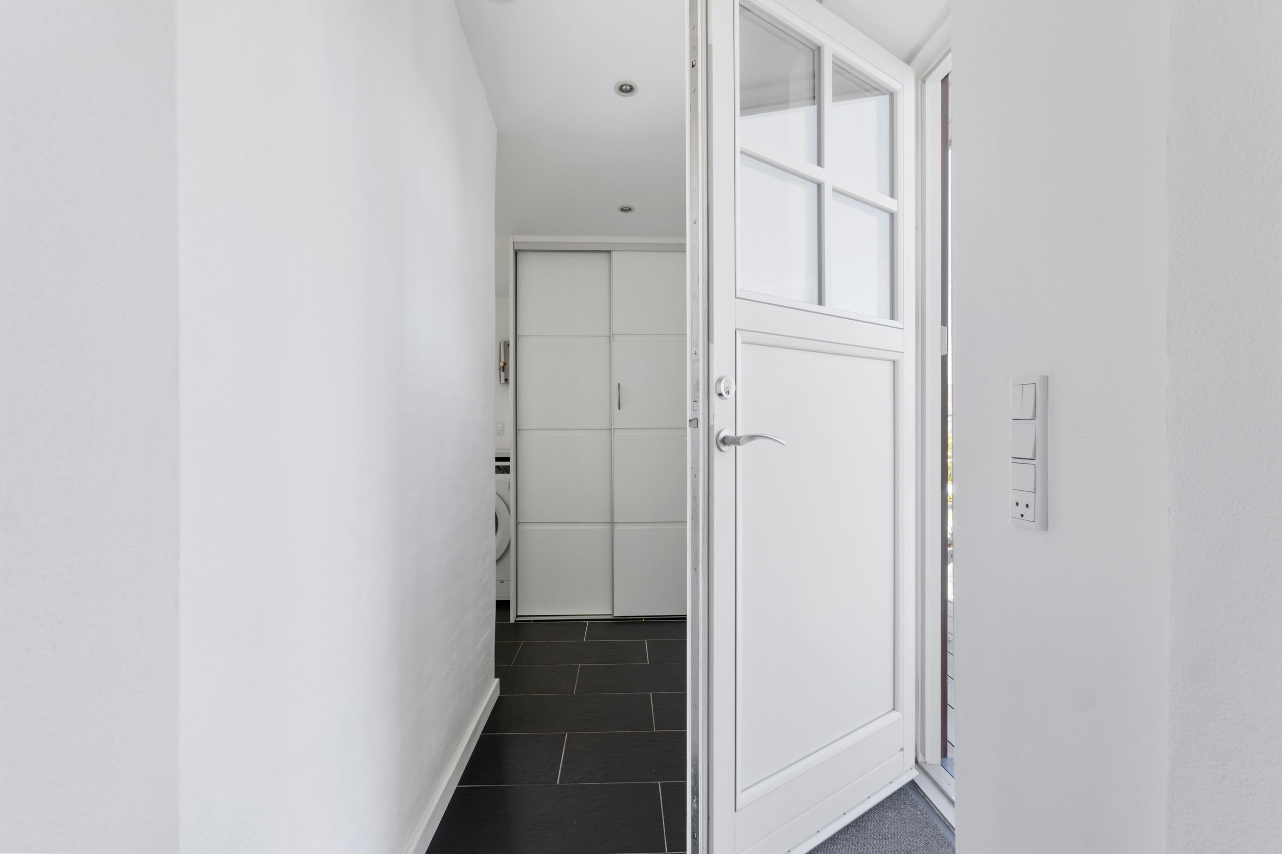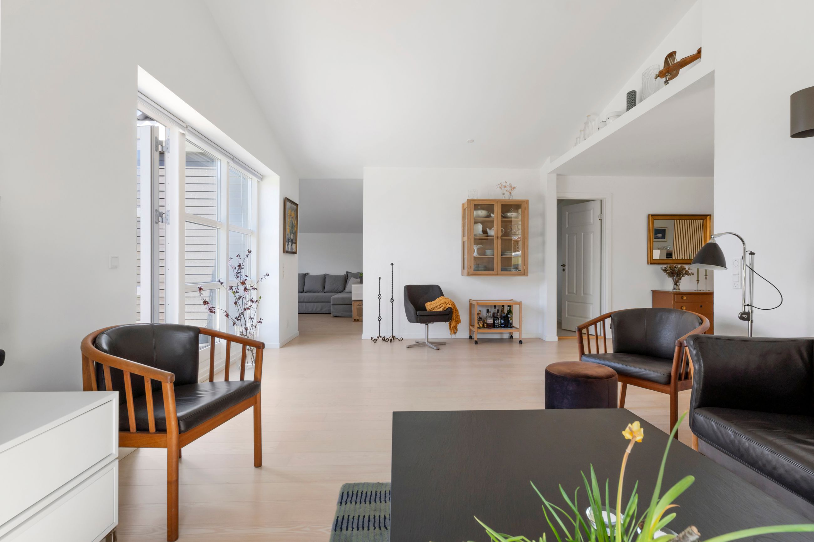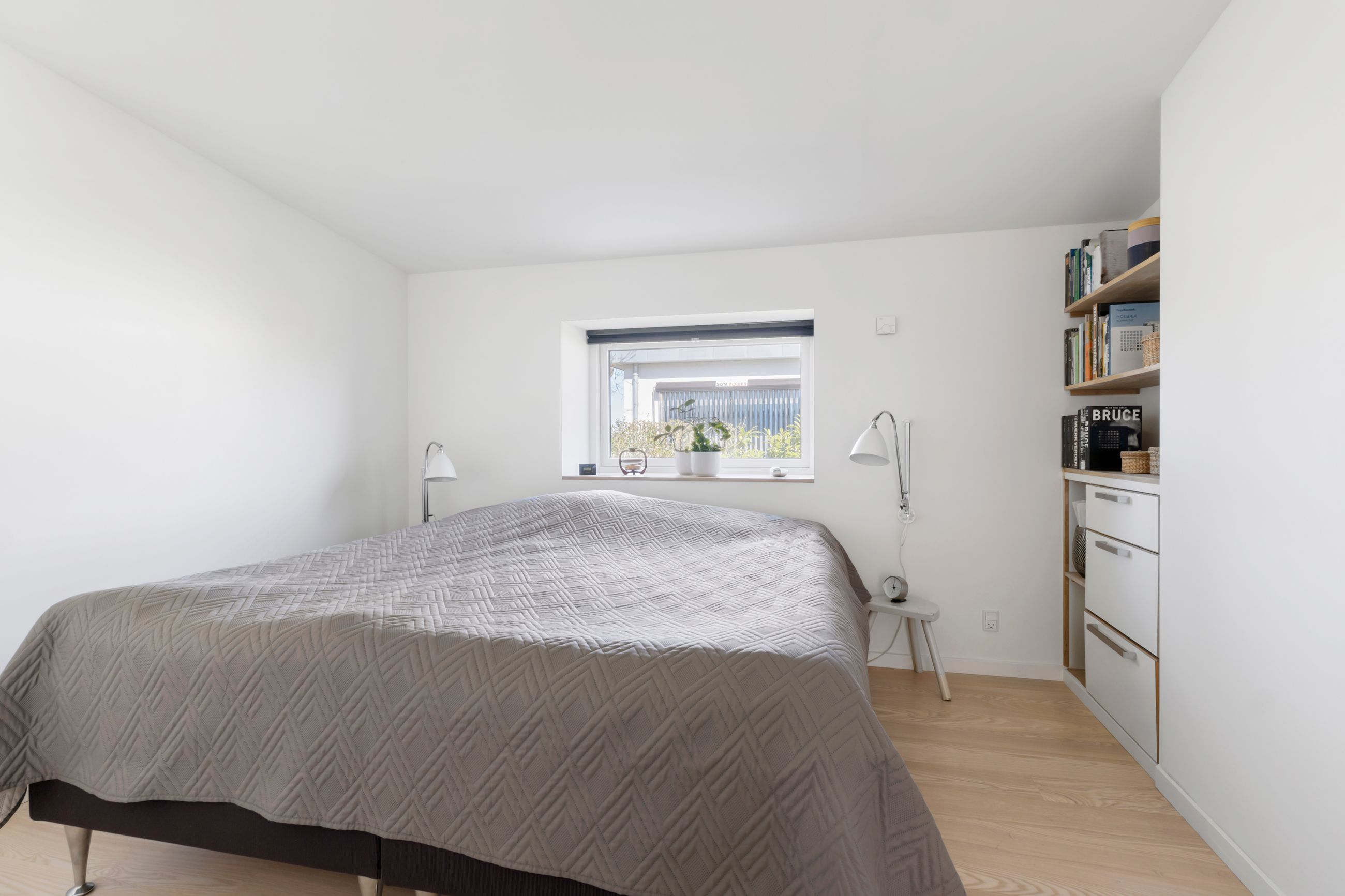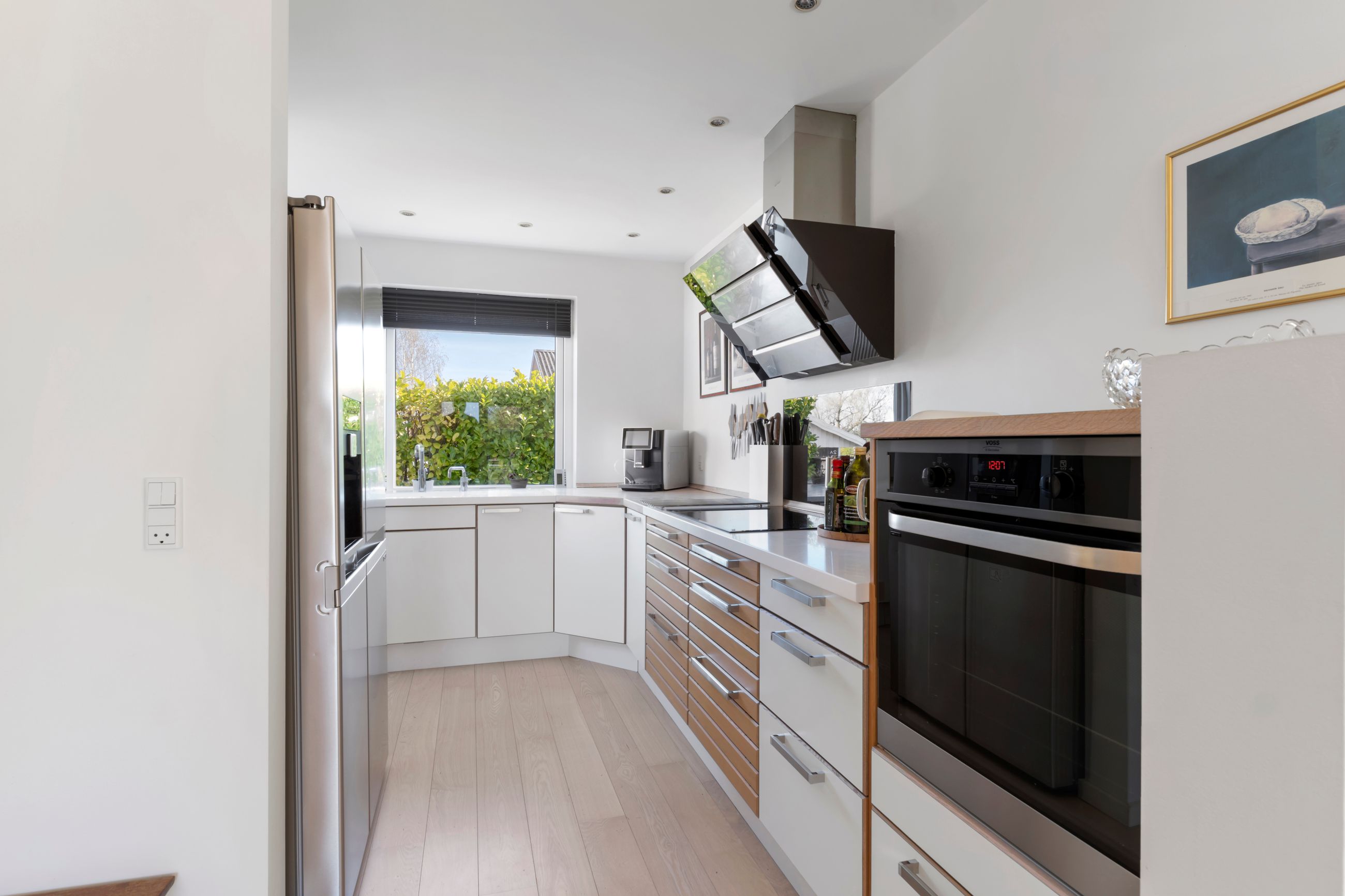 På Fr. Olsensvej 1 står et hus fra 1951 på kanten af Holbæk by, bare 100 meter fra Holbæk Fjord. Det er et charmerende hus, ombygget i 2012. Det eneste der er tilbage af det oprindelige hus, er ydermurene, som tidligere var røde mursten, men nu pudset hvide. Huset er nu en moderne bolig med gulvvarme overalt på 132 m2. Solpaneler på taget bidrager med varmt brugsvand og et blødgøringsanlæg forbedrer vandets hårdhed. Her er udsigt til fjordvandet i Holbæk Fjord, masser af lys, luft og aftensol på terrassen. I annekset er der blandt andet mulighed for havestue, atelier eller andet. Haven er nem at holde, tak for det.