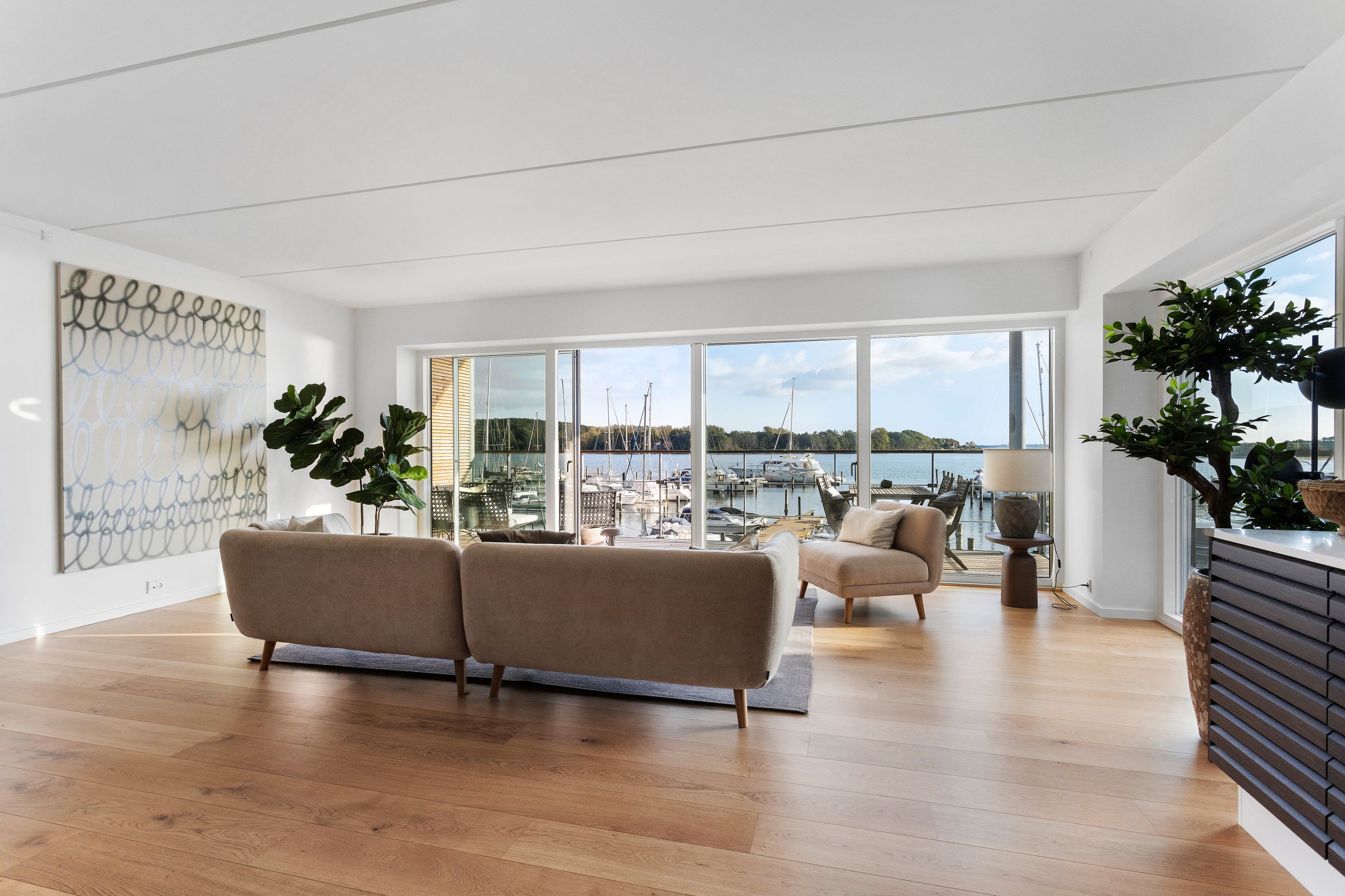 De svanemærkede boliger har størrelser fra 88 til 238 m2. Der er 7 sydvendte punkthuse i 3 etager, og de er uden bopælspligt, så de kan også bruges som et fristed i ferier og weekender. Der er privat parkeringsplads, og sejlerfolket har mulighed for at leje af bådplads i den private marina. Altså, den vildelse luksus. Som maritime fiskerhuse er facaderne beklædt med træ, her er store altaner og terrasser mod syd, og intet i udsigten vil ændre sig. Her er frit udsyn til havet, til himlen og årstiderne, der skifter. Den maritime, historiske stemning ved marinaen og den smukke beliggenhed ved Svendborg samler det bedste fra både naturen, vandet og byen.
