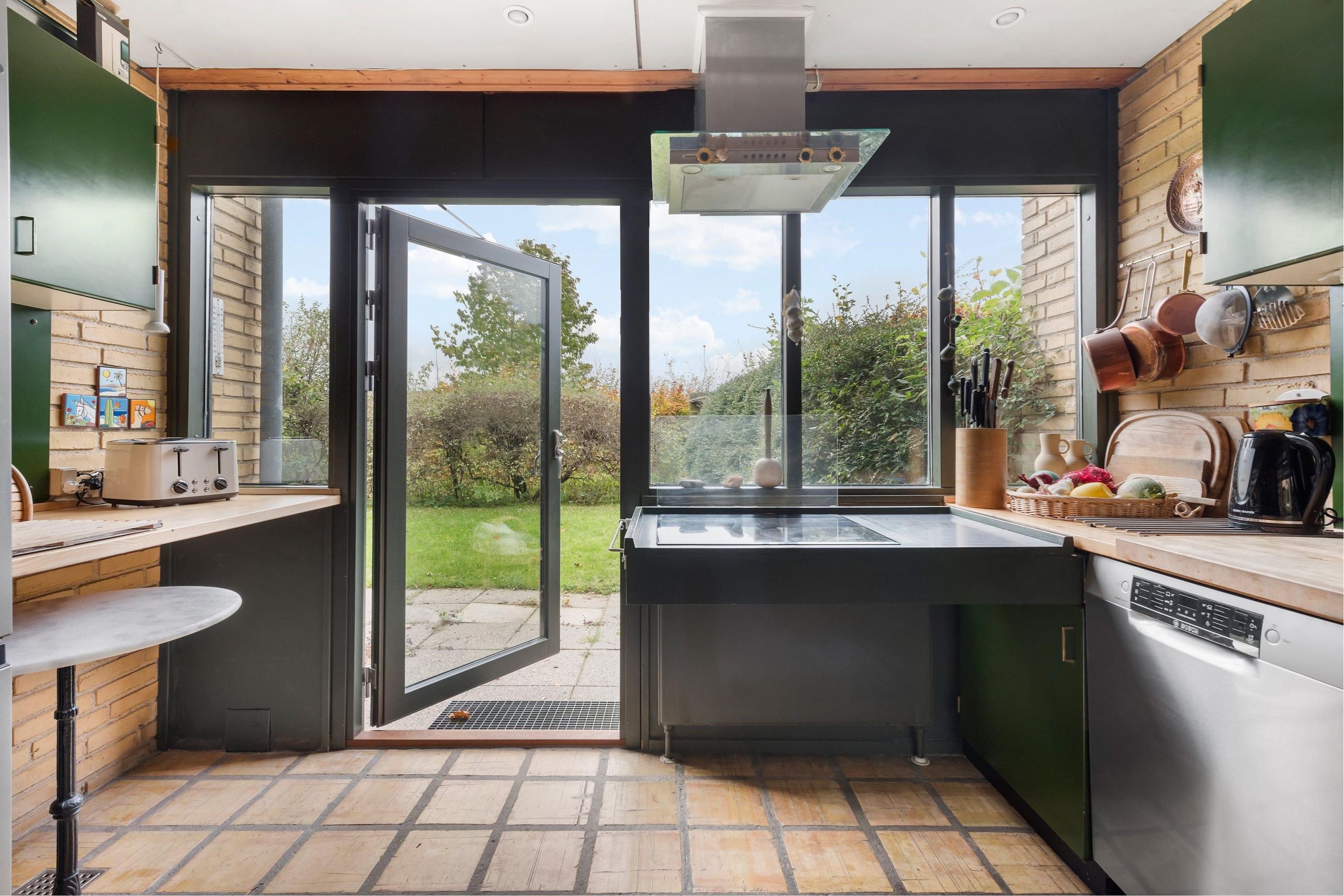 Vi er i Gassehaven, ja, godt nok et pudsigt navn. Men kvarteret var tidligere en del af nabogården Rygård, hvis aggressive gaser boede i den østlige ende. Og da Gasehaven lød underligt, blev det til Gassehaven, da rækkehusene blev bygget. Snip, snap, snude. Gassehaven er rækkehuse fra begyndelsen af 1970erne direkte ud til det naturskønne og fredede Søllerød Naturpark. Der er 107 huse i Gassehaven, og fælles for dem alle er det karakteristiske og lette glashus, der forbinder de tunge, murede huse. Rækkehuset i nummer 7 er på 143 m2 med plads til familien med børn og golfkøller. Masser af lys, alt er velholdt. Der er mange børn i kvarteret, legeplads, institutioner og skole ligger lige om hjørnet, meget lidt trafik på vejene mellem rækkehusene og petanque til store og små legebørn. Grunden er på 295 m2 med sol på terrassen.