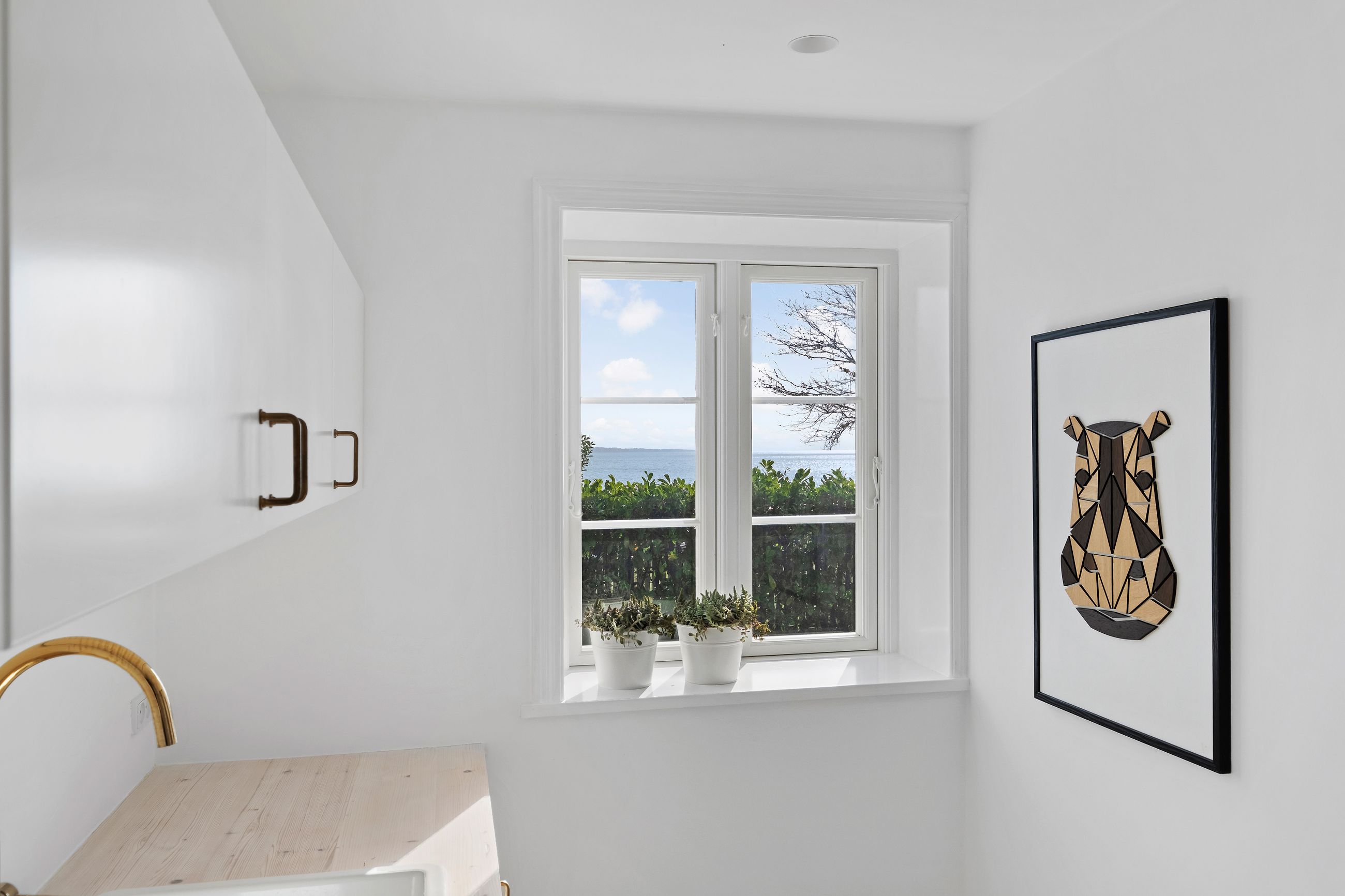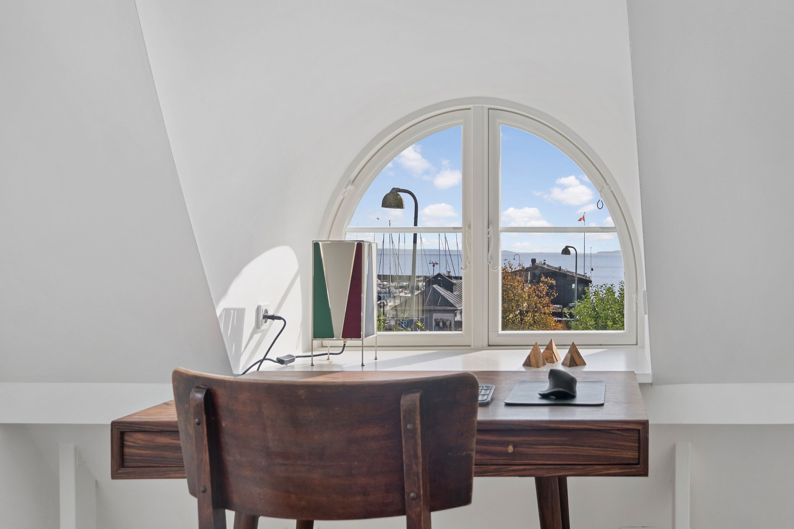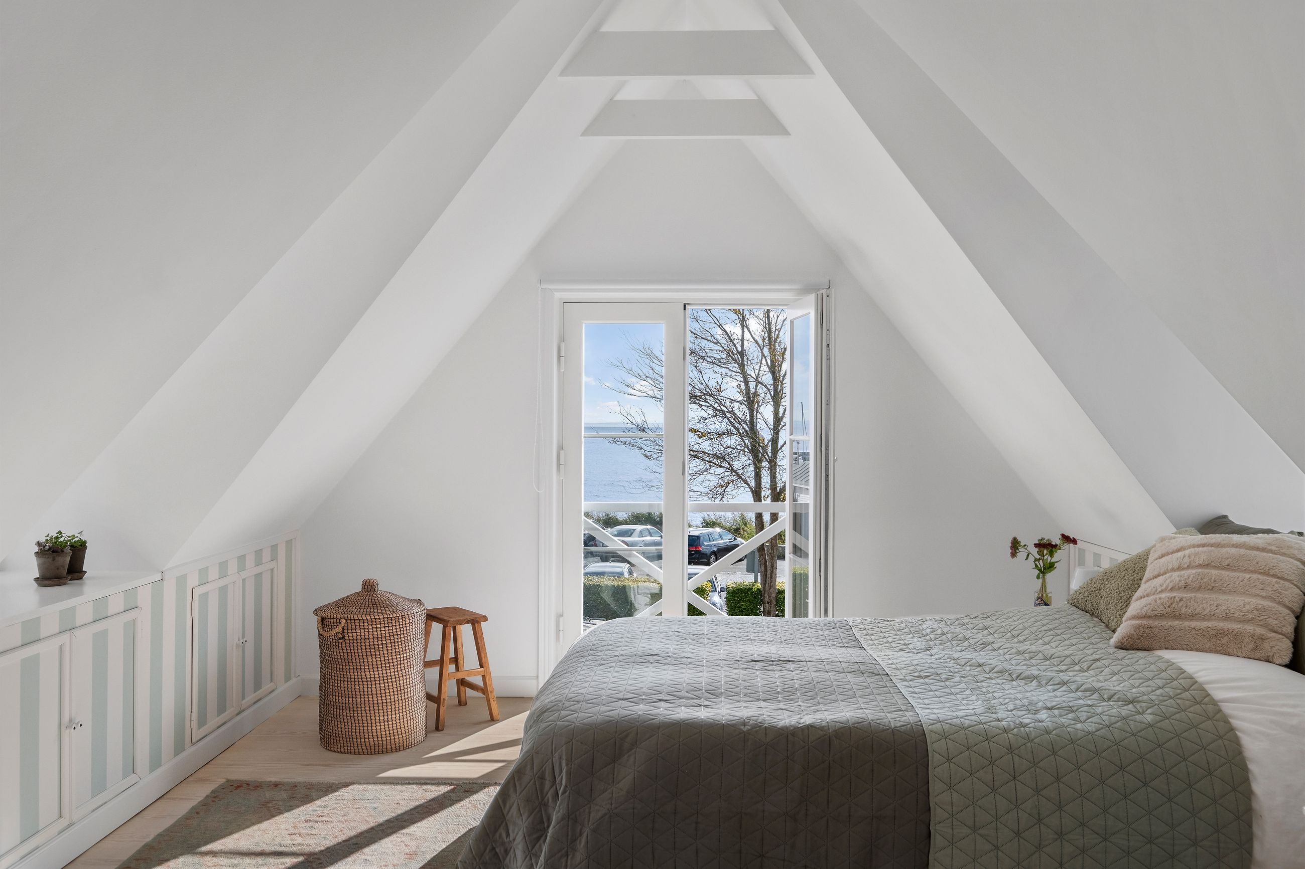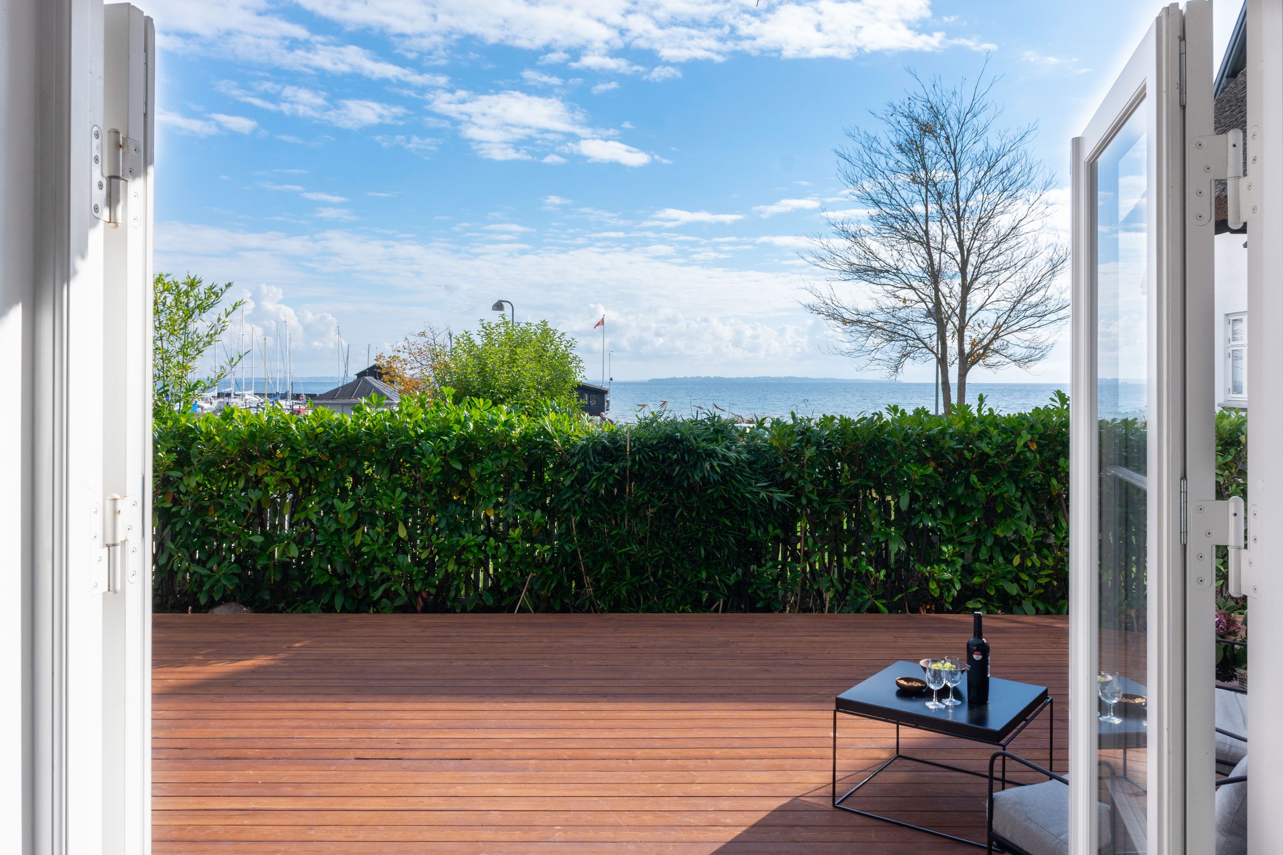 Lige ud til havnen ligger vi, der er den flotteste udsigt over vandet fra ethvert af husets rum. Her er livsbekræftende puls uden larm, vitterlig kun 60 sekunder til stranden. Tag kaffen med ud, og mærk sandet mellem tæerne. Det er så tæt på, at man ikke behøver overtøjet. Nå at se den flotteste solopgang på lufteturen med hunden om morgenen. Definitionen på nydelse.