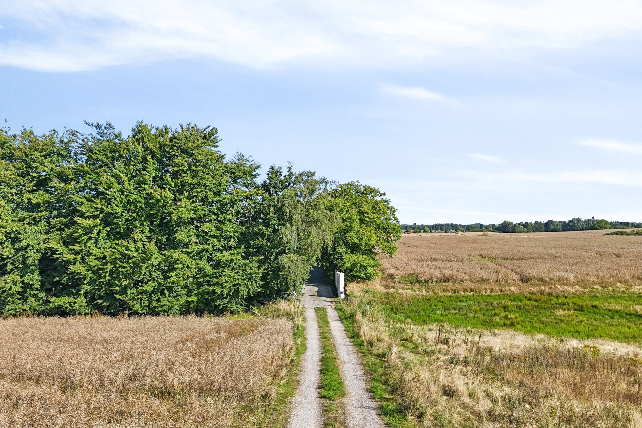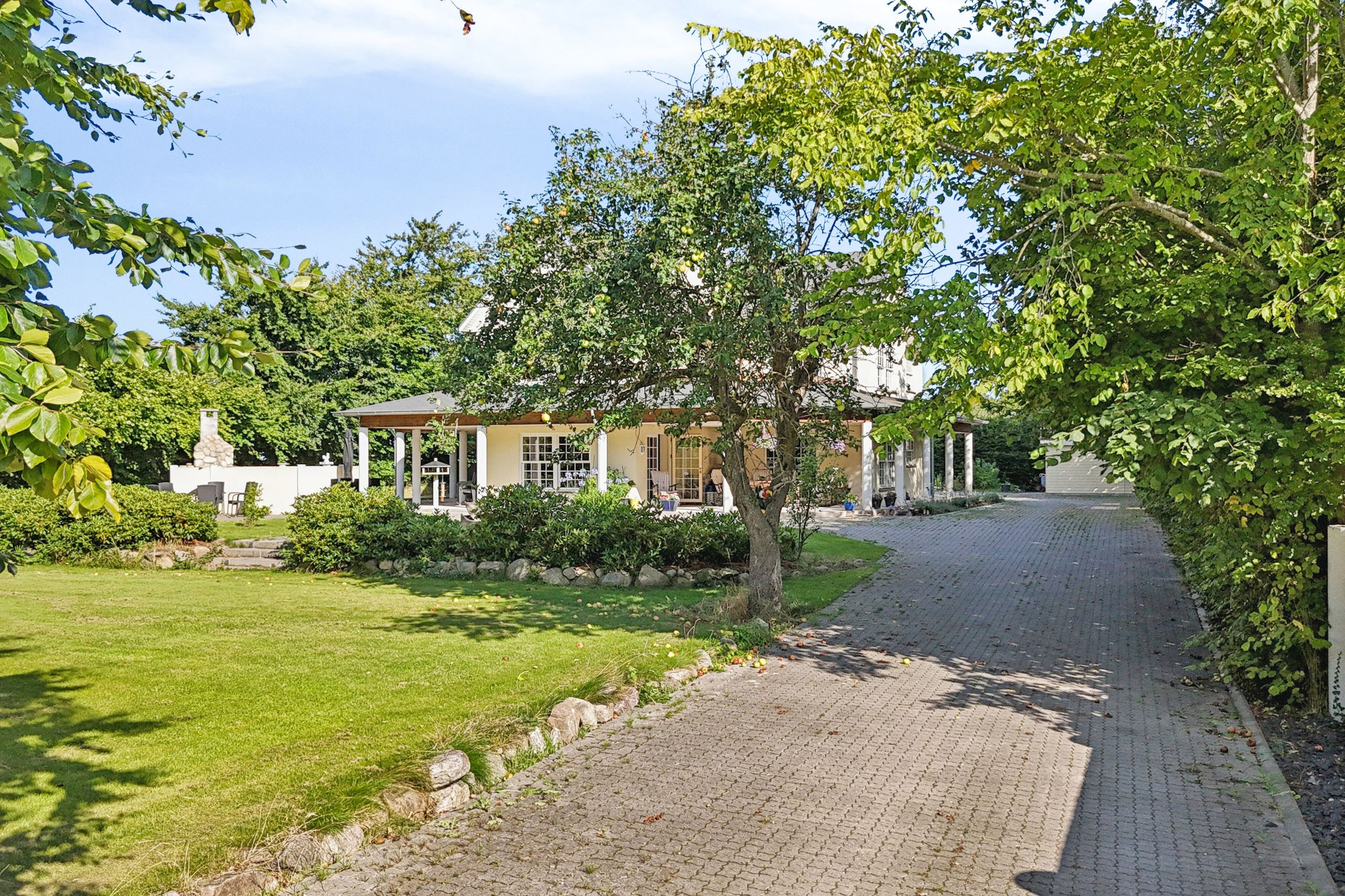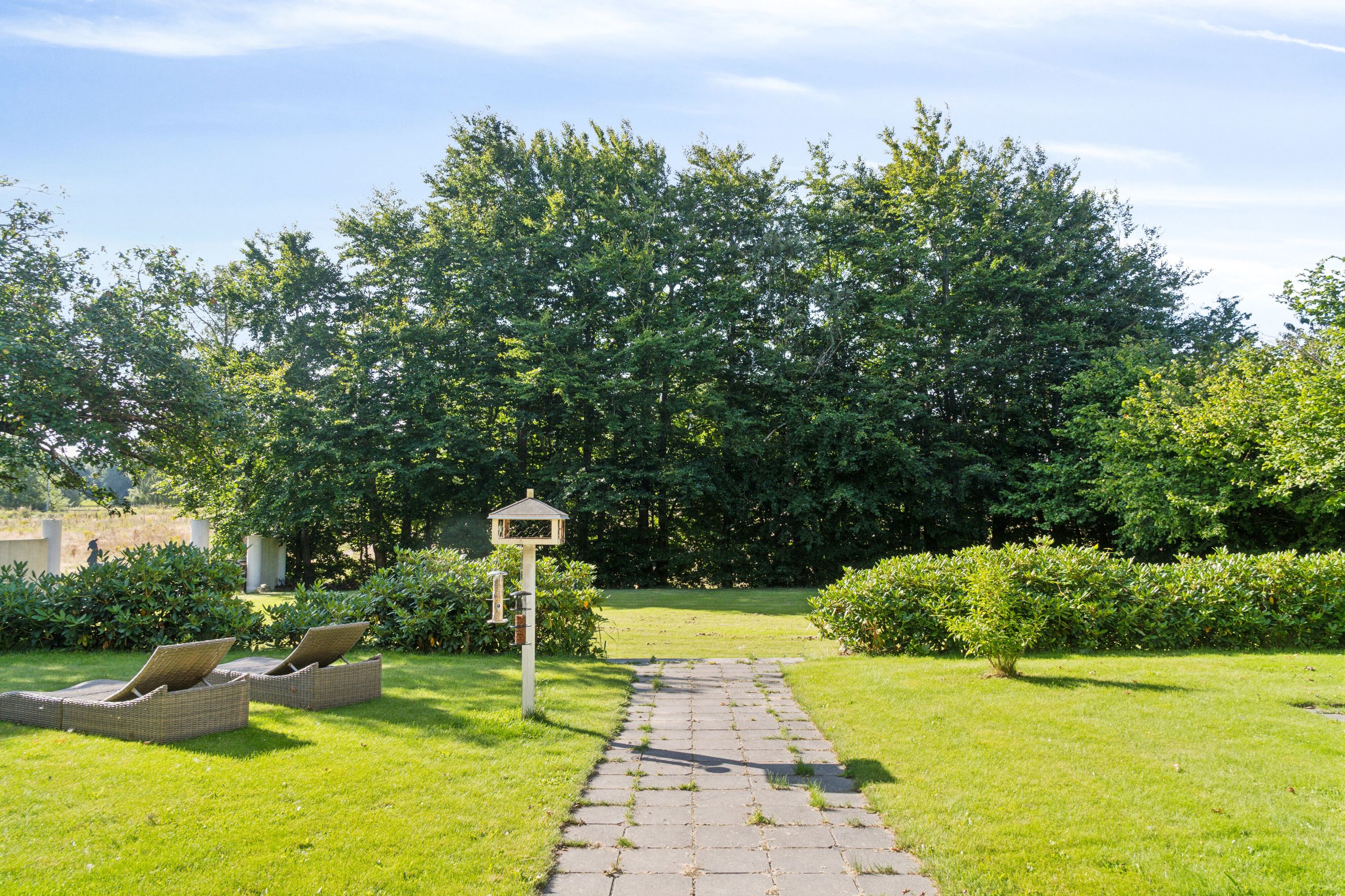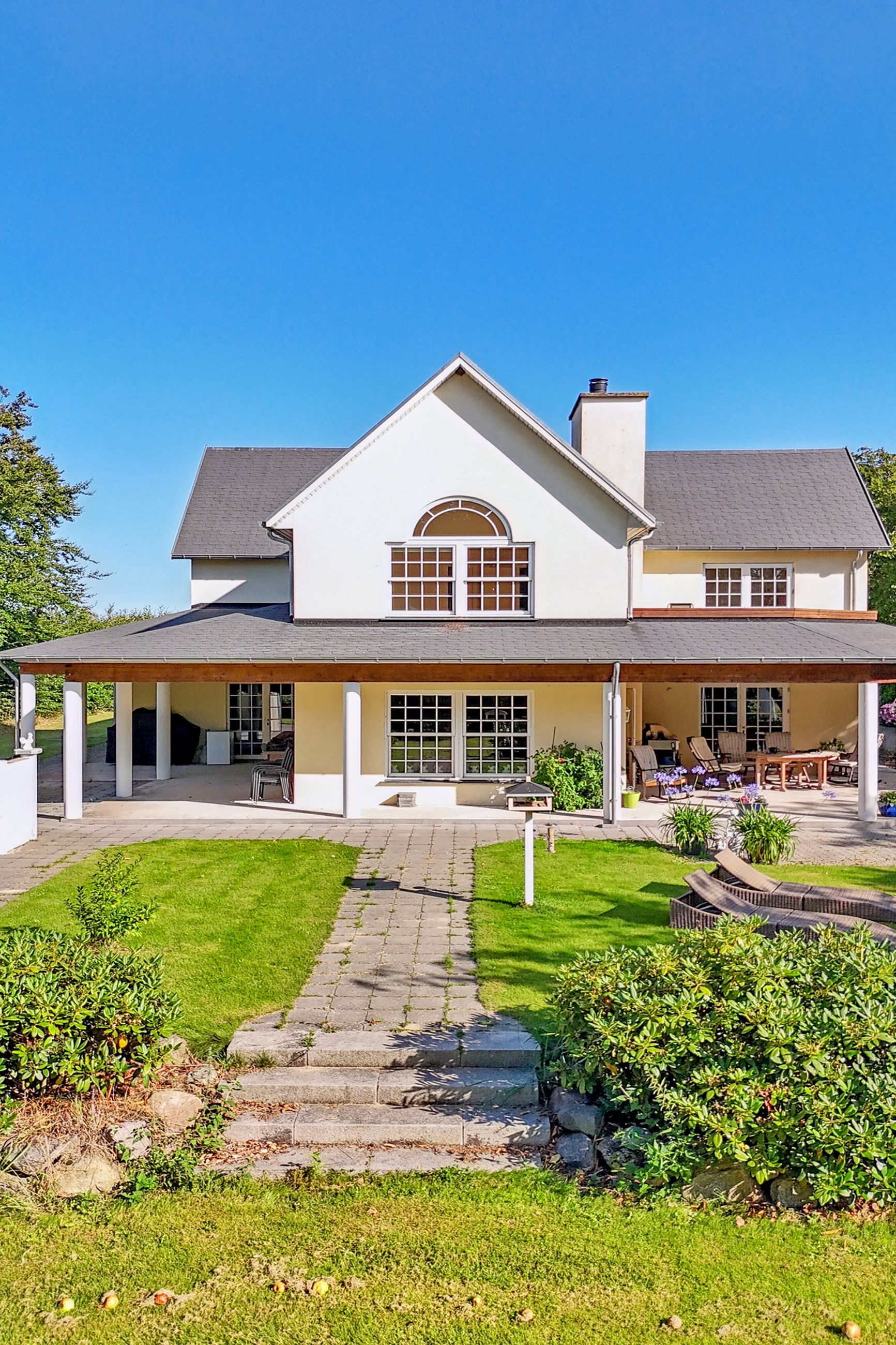 Grunden er på 2.486 m2 med udsigt til vidder og marker og Vorherres frie natur. Verandaen omfavner det meste af huset, så her kan man selv i regnvejr opleve den ro, man kun kan få på landet. Kom an, siger vi bare, med mange soveværelser og mange badeværelser er det et hus med plads til den store familie. Ikke meget vedligeholdelse de næste mange, mange år. Haven er anlagt, så den er nem at passe. Masser af sol på den store veranda, som har retningen sydvest. Altså farve på bare maver og blege kinder. Dobbeltgarage integreret under villaens tag, mens et udhus med flere anvendelsesmuligheder står bagerst på den store grund. Mange tak for det.