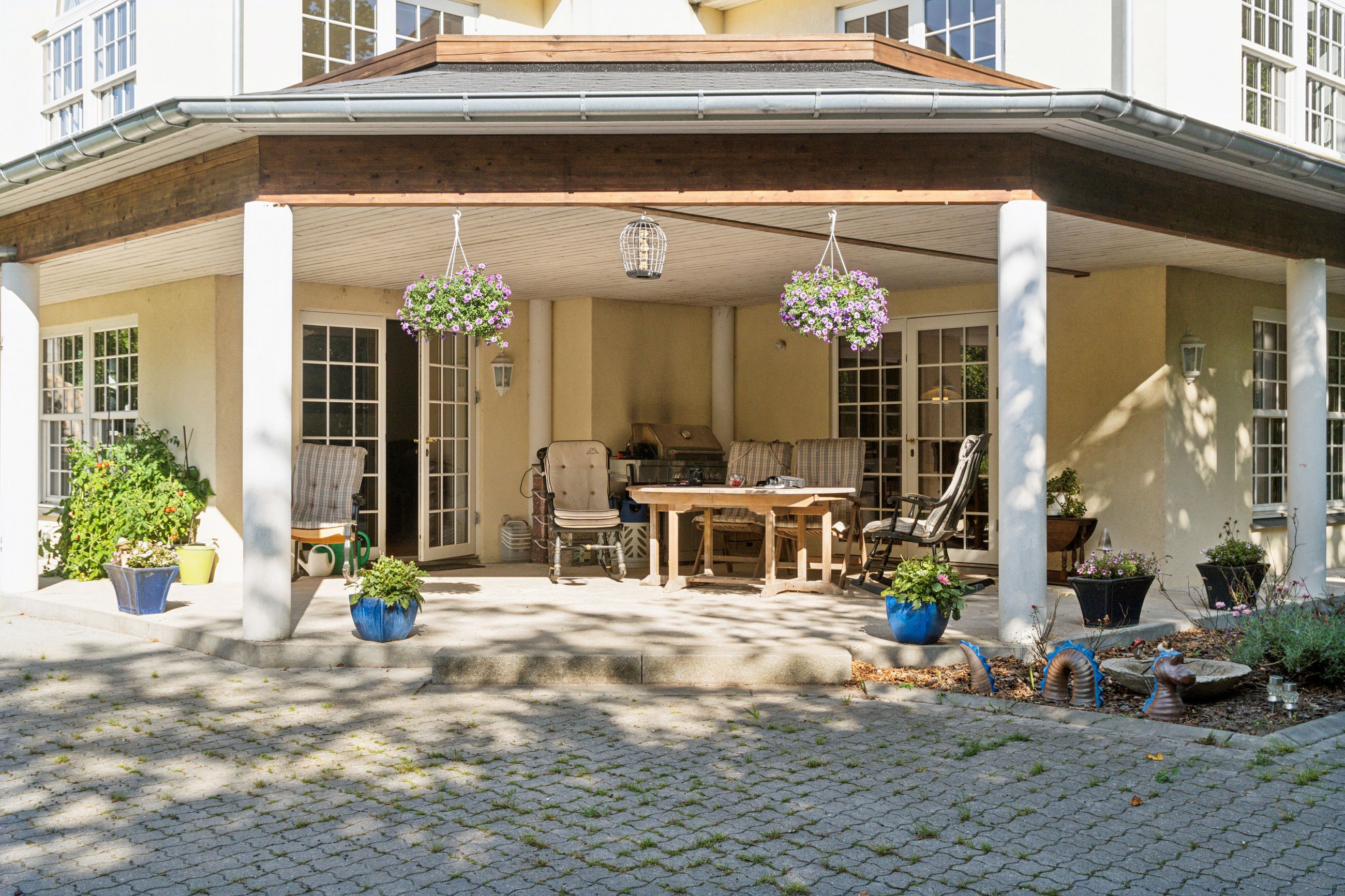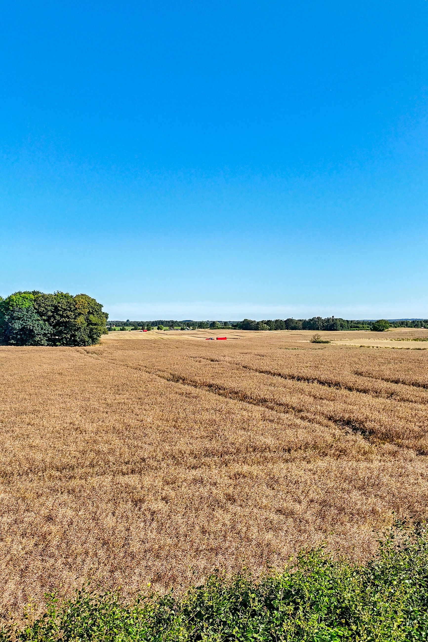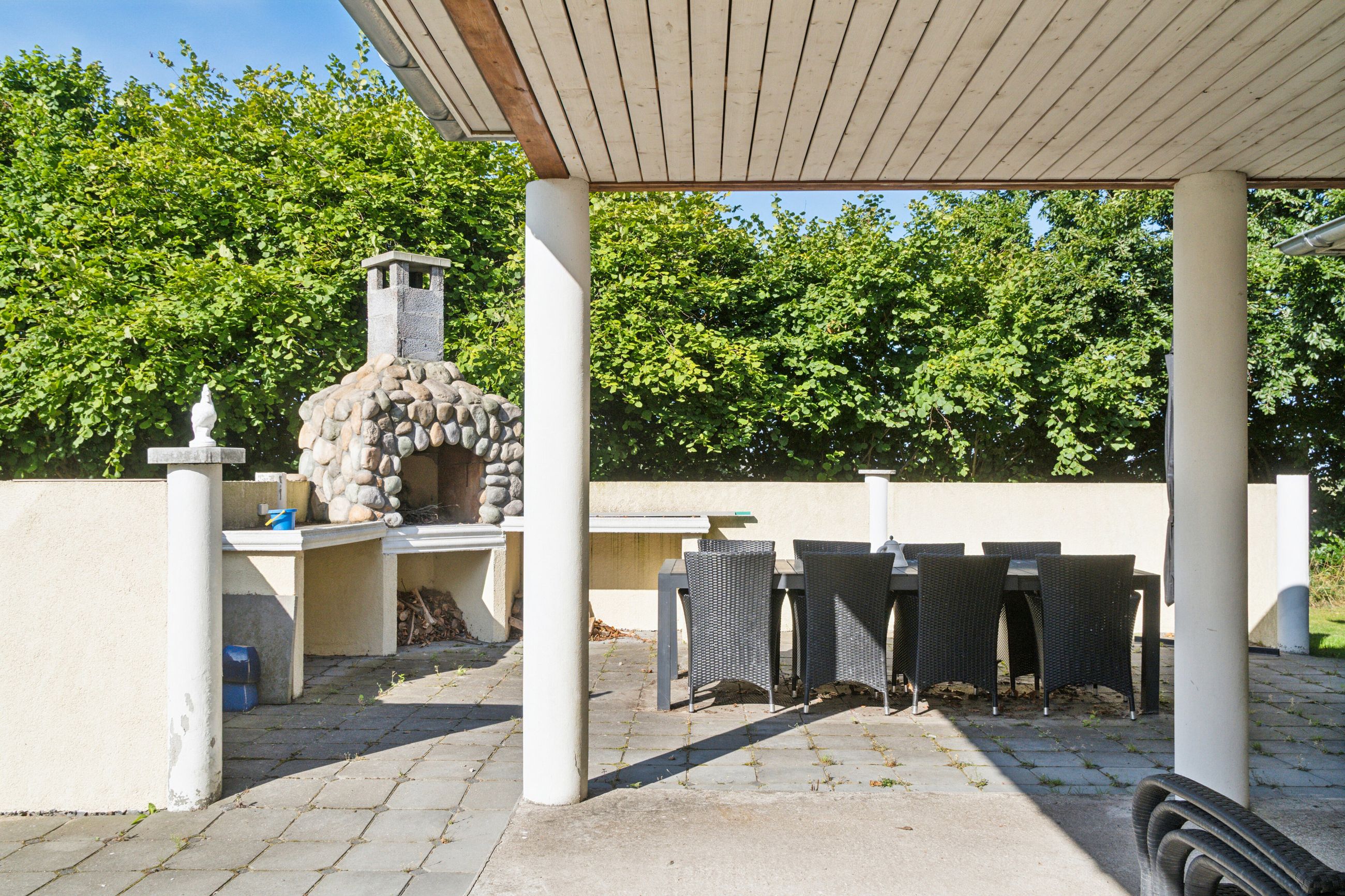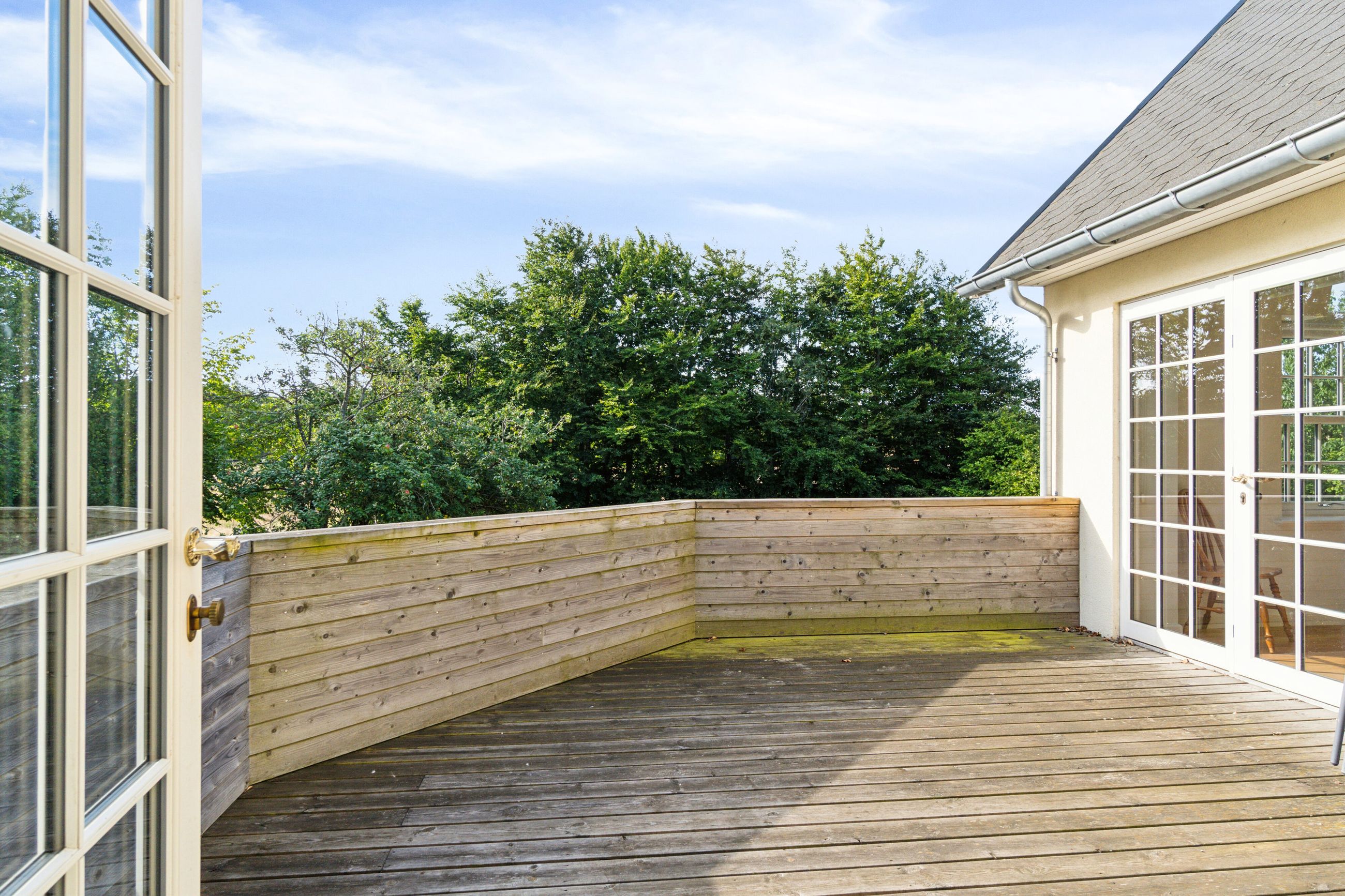 Grunden er på 2.486 m2 med udsigt til vidder og marker og Vorherres frie natur. Verandaen omfavner det meste af huset, så her kan man selv i regnvejr opleve den ro, man kun kan få på landet. Kom an, siger vi bare, med mange soveværelser og mange badeværelser er det et hus med plads til den store familie. Ikke meget vedligeholdelse de næste mange, mange år. Haven er anlagt, så den er nem at passe. Masser af sol på den store veranda, som har retningen sydvest. Altså farve på bare maver og blege kinder. Dobbeltgarage integreret under villaens tag, mens et udhus med flere anvendelsesmuligheder står bagerst på den store grund. Mange tak for det.