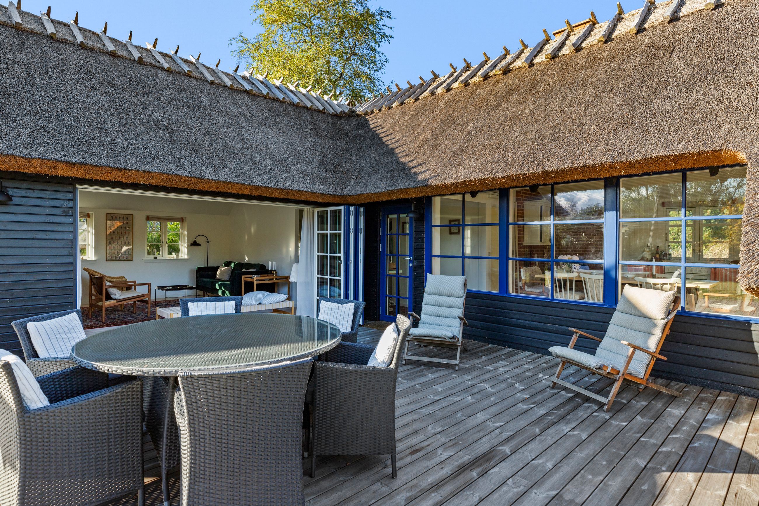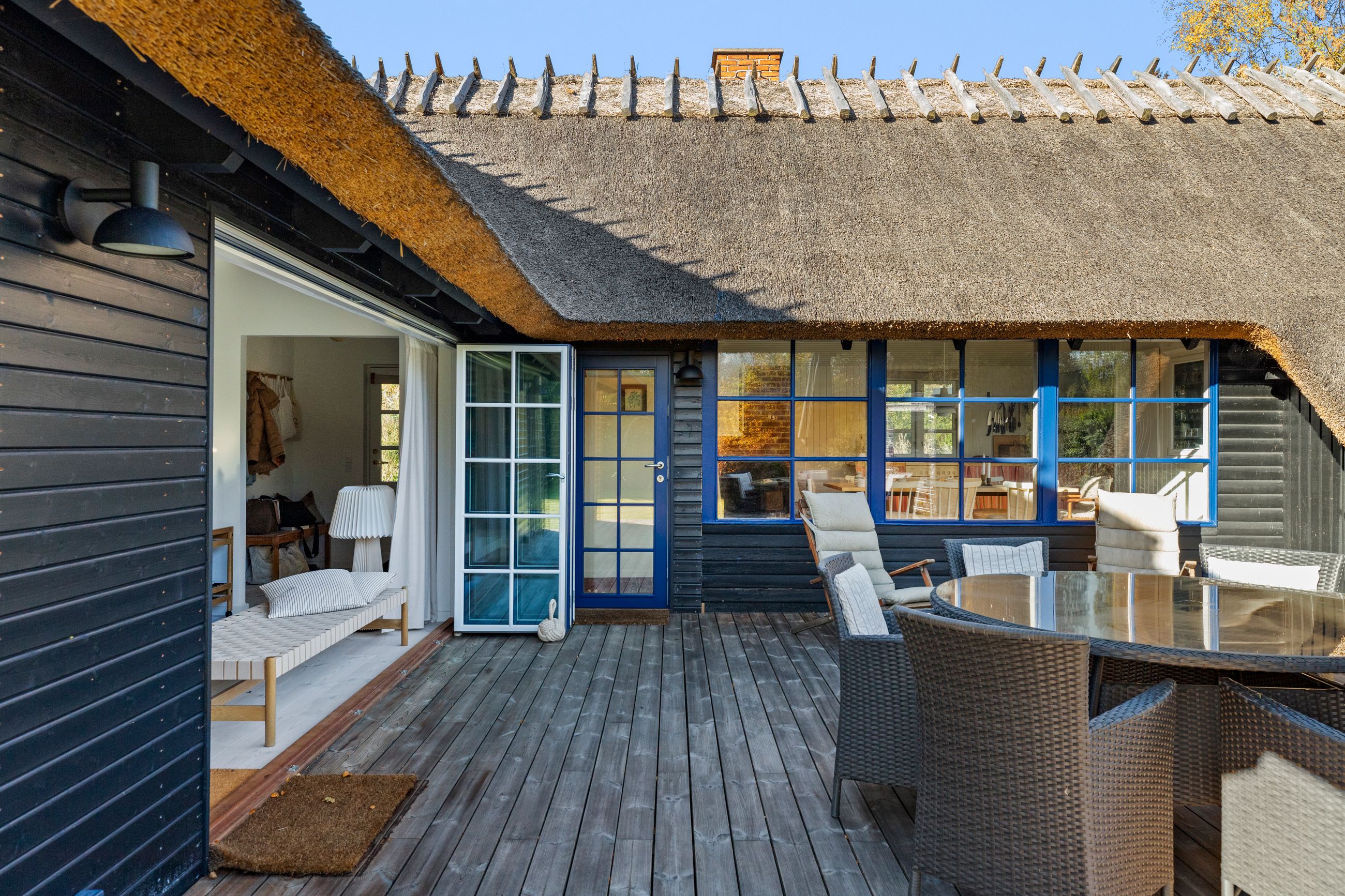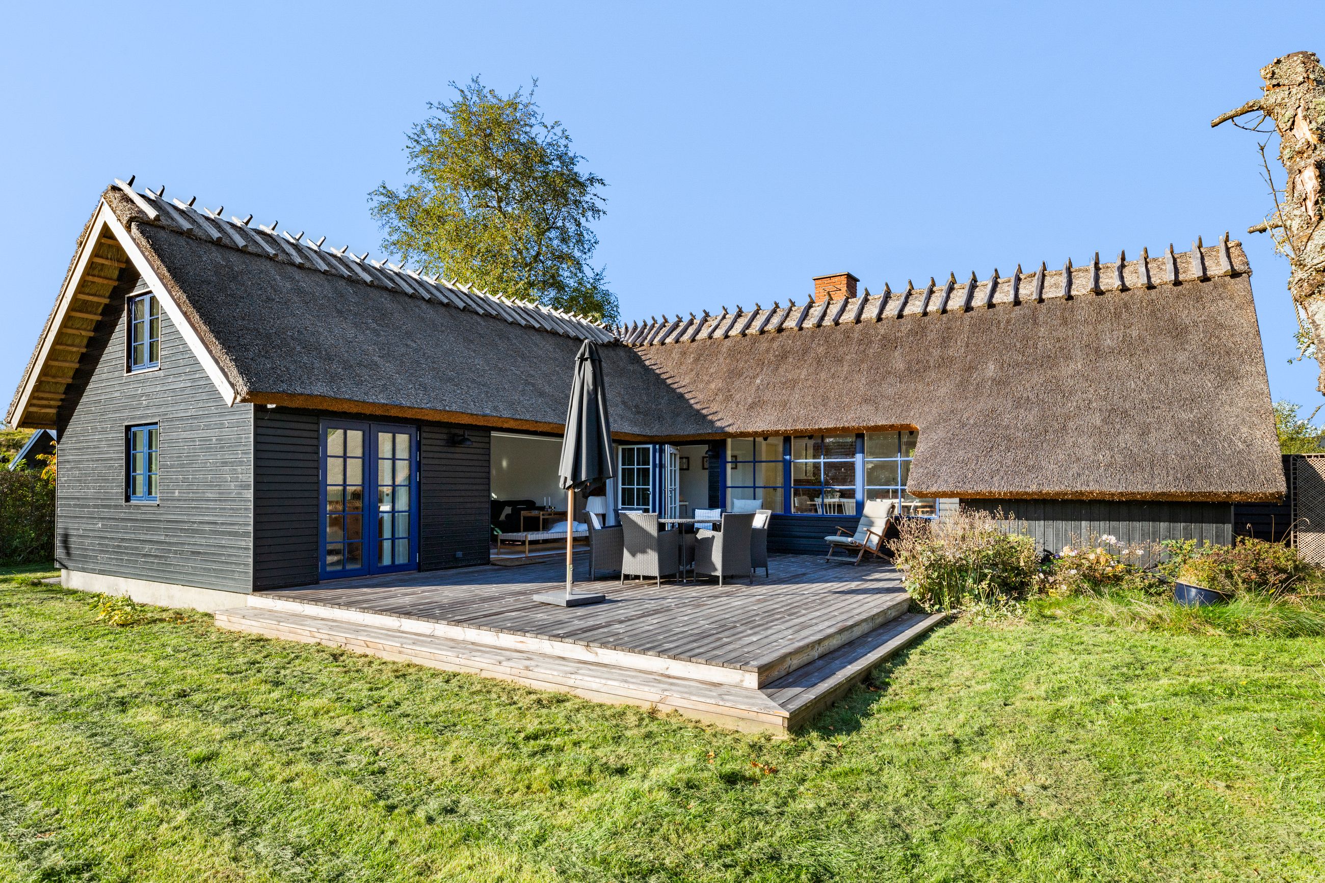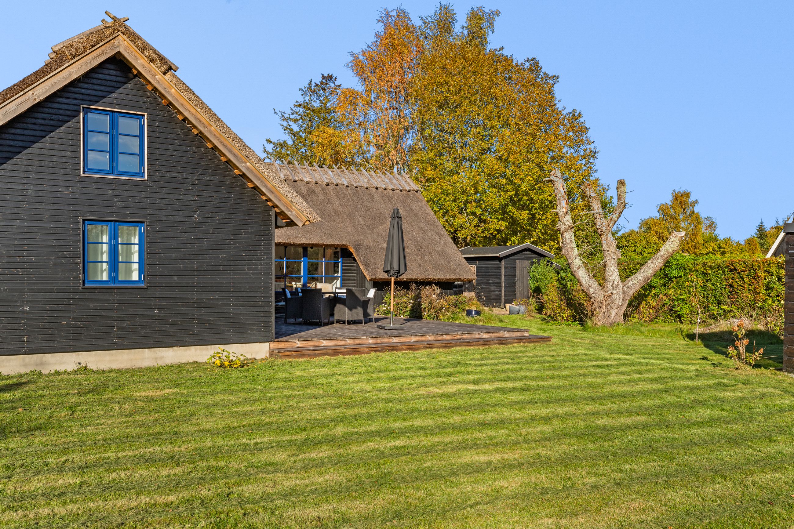 Kun nogle få fugleveje adskiller sommerhuset på Hejrevej 40 i pip-pip-kvarteret fra Ruslands Bakker. Det er et klassisk, sort træhussommerhus med det fineste stråtag fra 2023. Det er bygget i 1965, men stort set alle 92 m2 er renoveret de sidste par år. Med flere soveværelser, anneks og sauna med udsigt er her plads til familien med børn og venner på besøg. Hejrevej er en stille og rolig sommerhusvej, huset ligger som det sidste hus før svinget til endnu en fugl, Lærkevej. Grunden er på 1.212 m2 med en syd- og sydvendt terrasse, sol hele dagen. Haven? Ja, stor, som robotten ikke har noget imod at holde. Huset er godt isoleret parat til vinterbesøg. Altid læ på terrassen, ingen gadebelysning, her er mørkt, stille, mange stjerner. Glem ikke novemberlyset med de smukkeste lilla og orange farver.