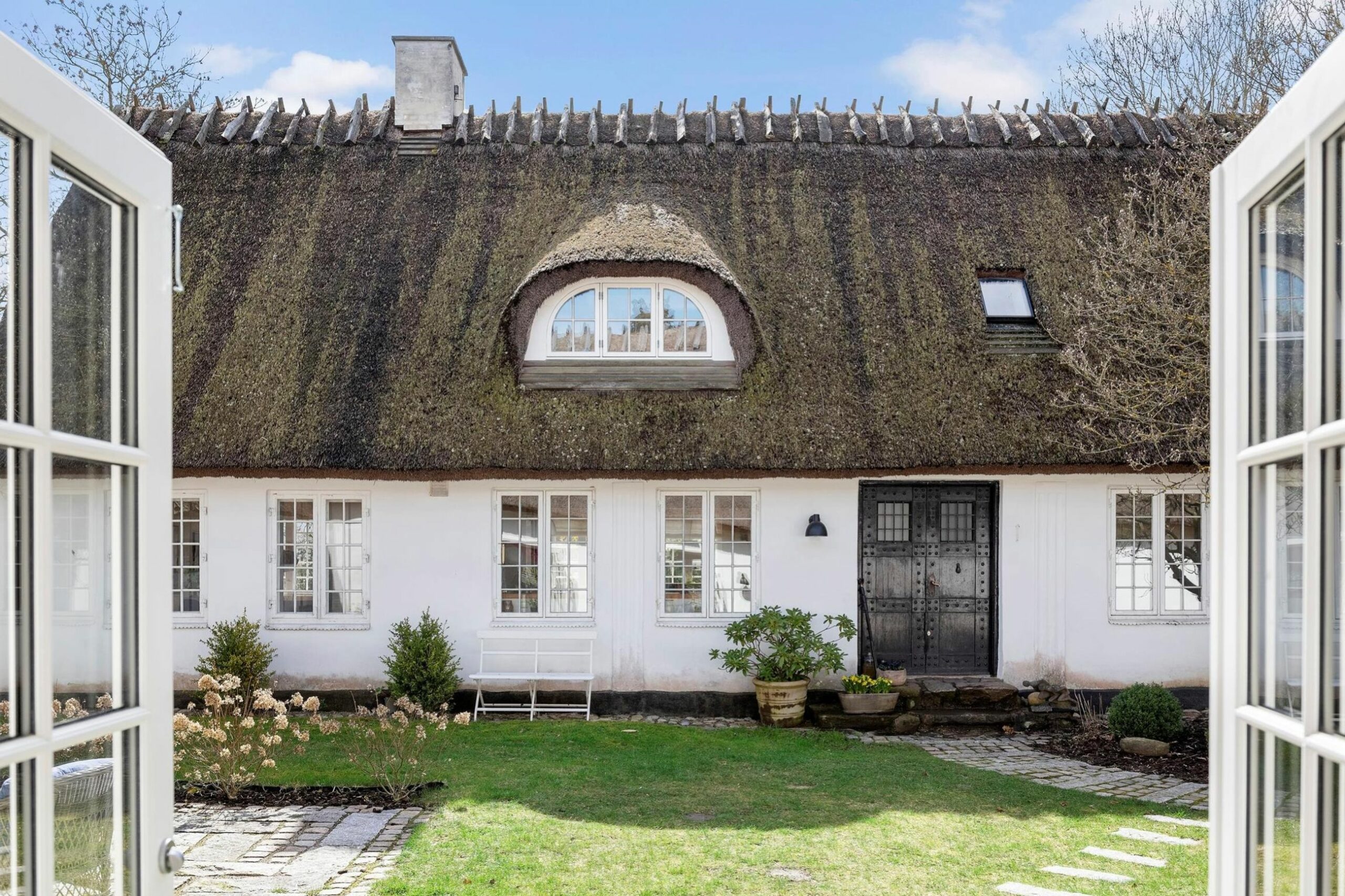 Firlængede gårde er der ikke mange tilbage af på Sjælland, og slet, slet ikke så tæt på København. Stort set alt er så sjælfuldt renoveret, som kun et hjerte og levende øjne kan renovere. Flere generationer kan bo her, eller måske lejere, men den børnerige familie kan bestemt også fylde hele gården med liv og ny energi. Med poesi, skævheder og charme, med ildsteder, sprossevinduer, det bedste indeklima under stråtaget og smukke buekviste er det i dag en lystgård, fordi man bor her for lystens og fornøjelsens skyld. Det er et spændende og inspirerende hus at vandre rundt i. Haven har en anelse af bondehusidyl, men flise-, brostens- og bordurestensbelægningen er hentet fra den civiliserede bykultur. Hyggelig, lukket gårdmiljø mellem bygningerne. Og så ligger terrassen helt rigtigt på den 2.200 m2 store grund. Mod syd og vest, naturligvis. Nå ja, og så ligger hul 12 i Søllerød Golfklub på den anden side af vejen.