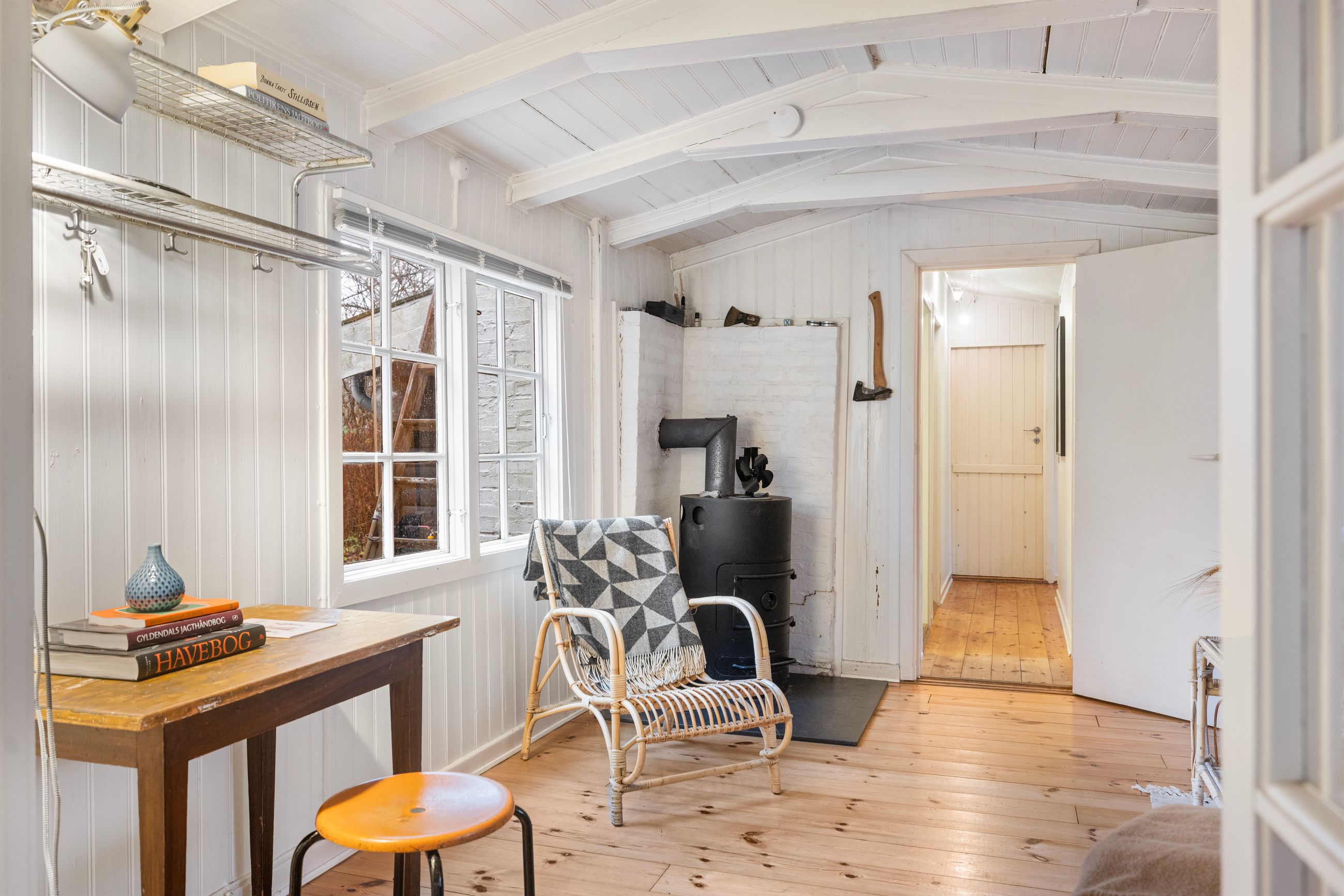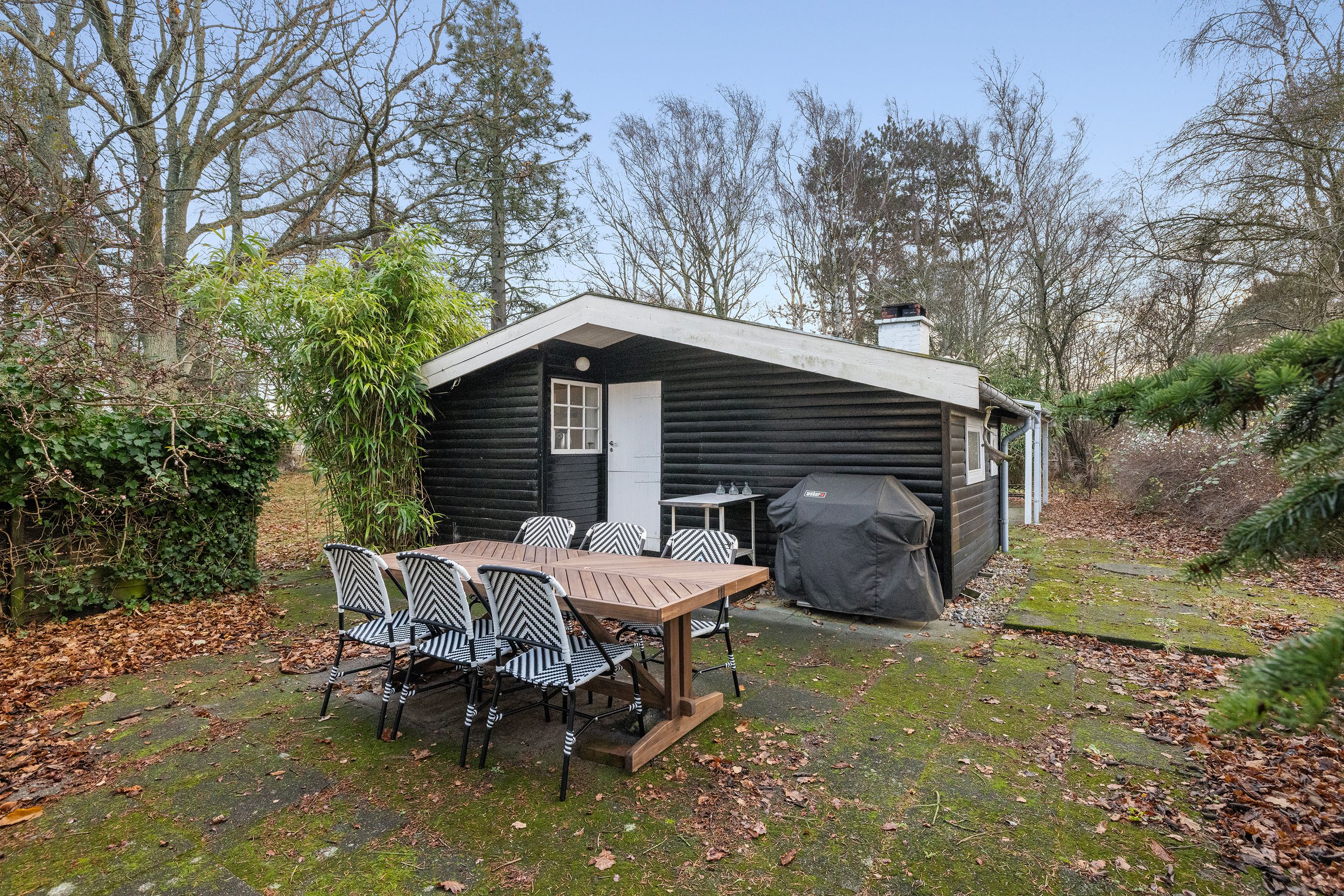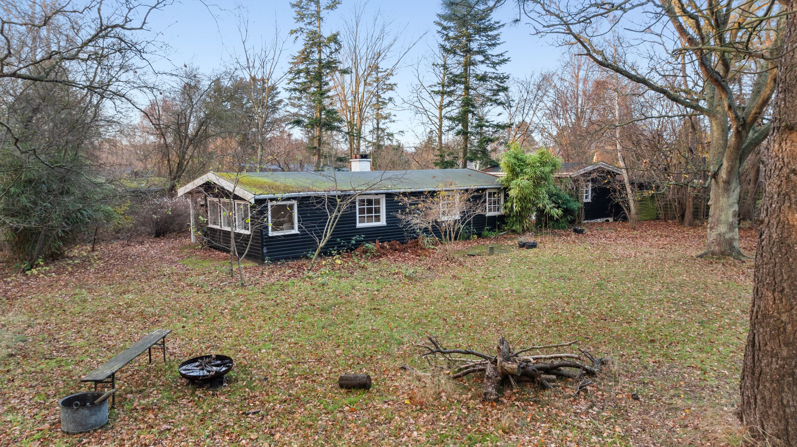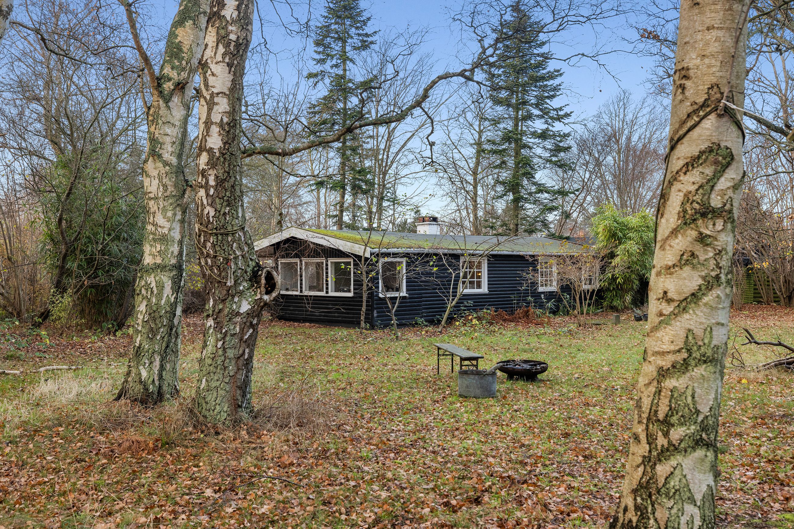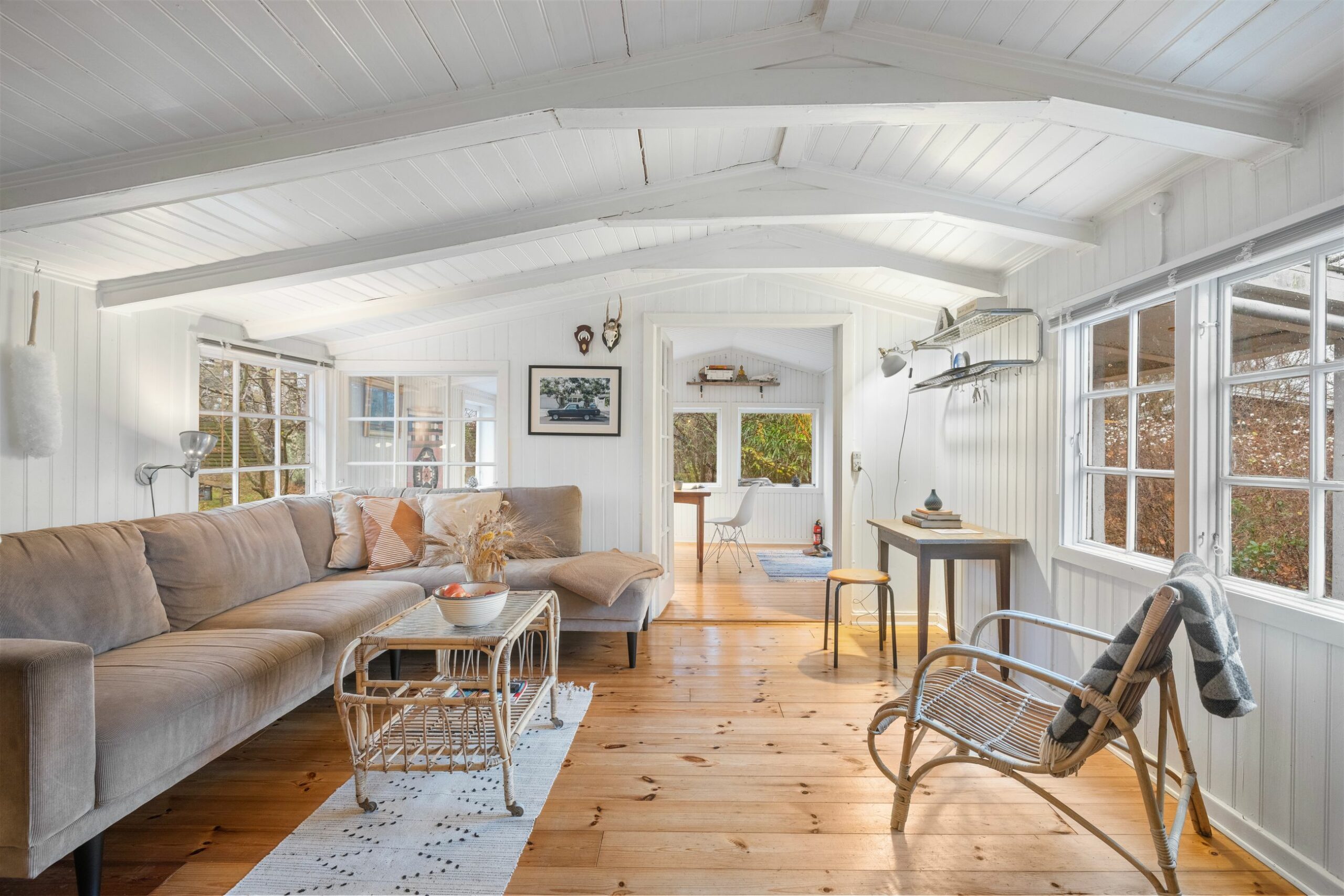 På Holløselund Strandvej 87 står et sort, klassisk sommerhus med hvide sprossevinduer fra 1946. Hyggeligt og charmerende er det med sine 54 m2. Ikke verdens største, men med det fine anneks er her alligevel plads til familien med børn og venner på besøg. Grunden er på 1.791 m2 med en have, der lever sit eget liv. Altså vild med vilje, som man siger. Store træer, høje græsser, mange rum til aktiviteter, bålplads. Masser af sol og lys ude og inde. Alt er velholdt, alt er passet godt på.