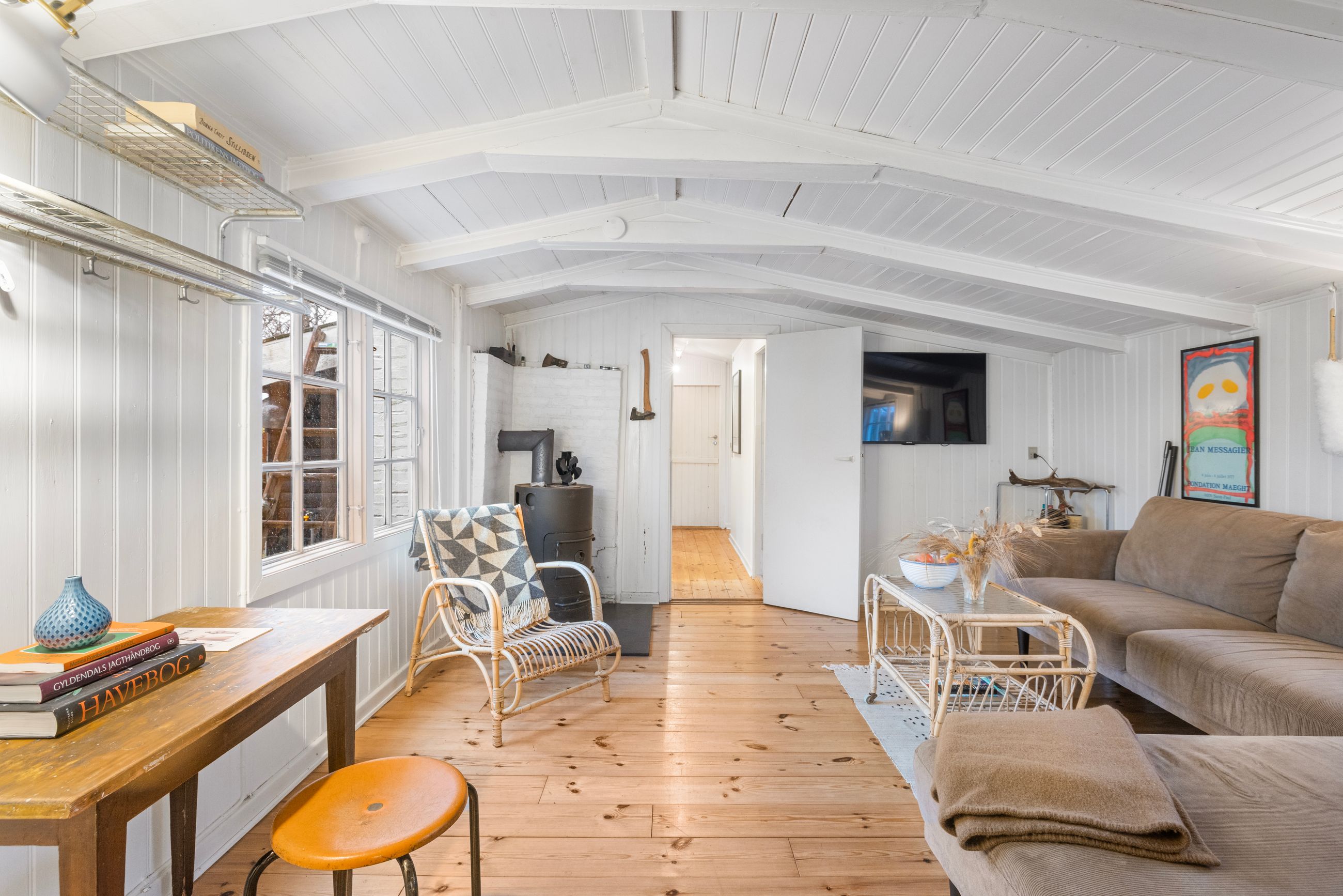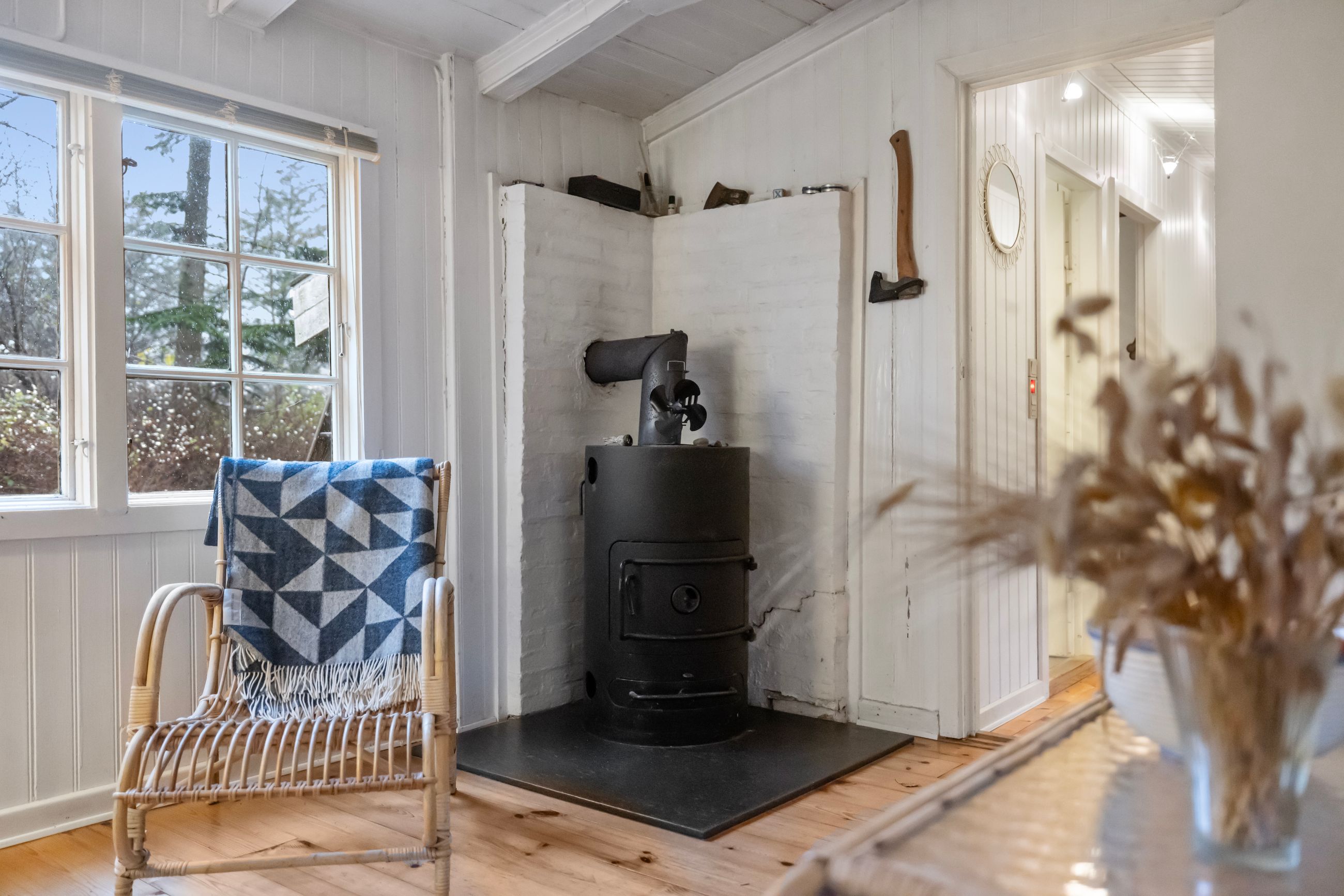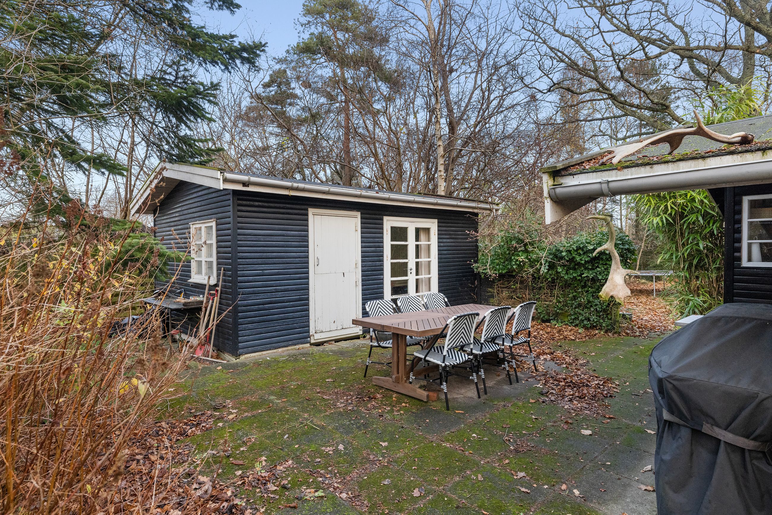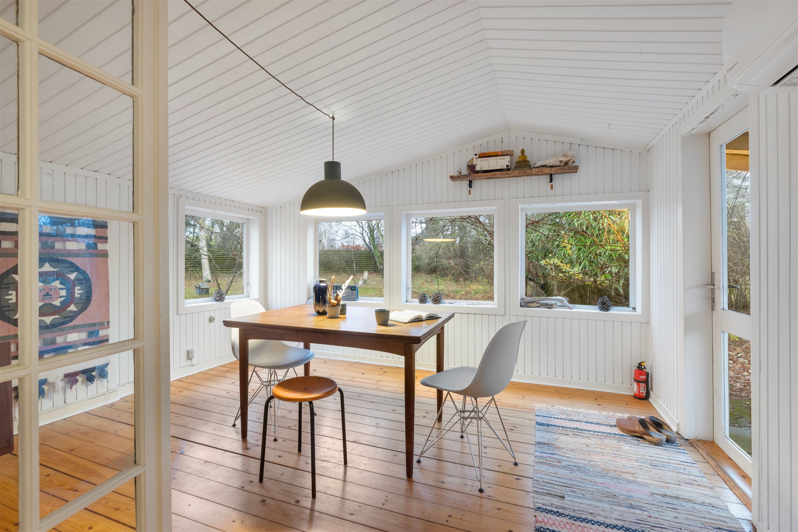 På Holløselund Strandvej 87 står et sort, klassisk sommerhus med hvide sprossevinduer fra 1946. Hyggeligt og charmerende er det med sine 54 m2. Ikke verdens største, men med det fine anneks er her alligevel plads til familien med børn og venner på besøg. Grunden er på 1.791 m2 med en have, der lever sit eget liv. Altså vild med vilje, som man siger. Store træer, høje græsser, mange rum til aktiviteter, bålplads. Masser af sol og lys ude og inde. Alt er velholdt, alt er passet godt på.