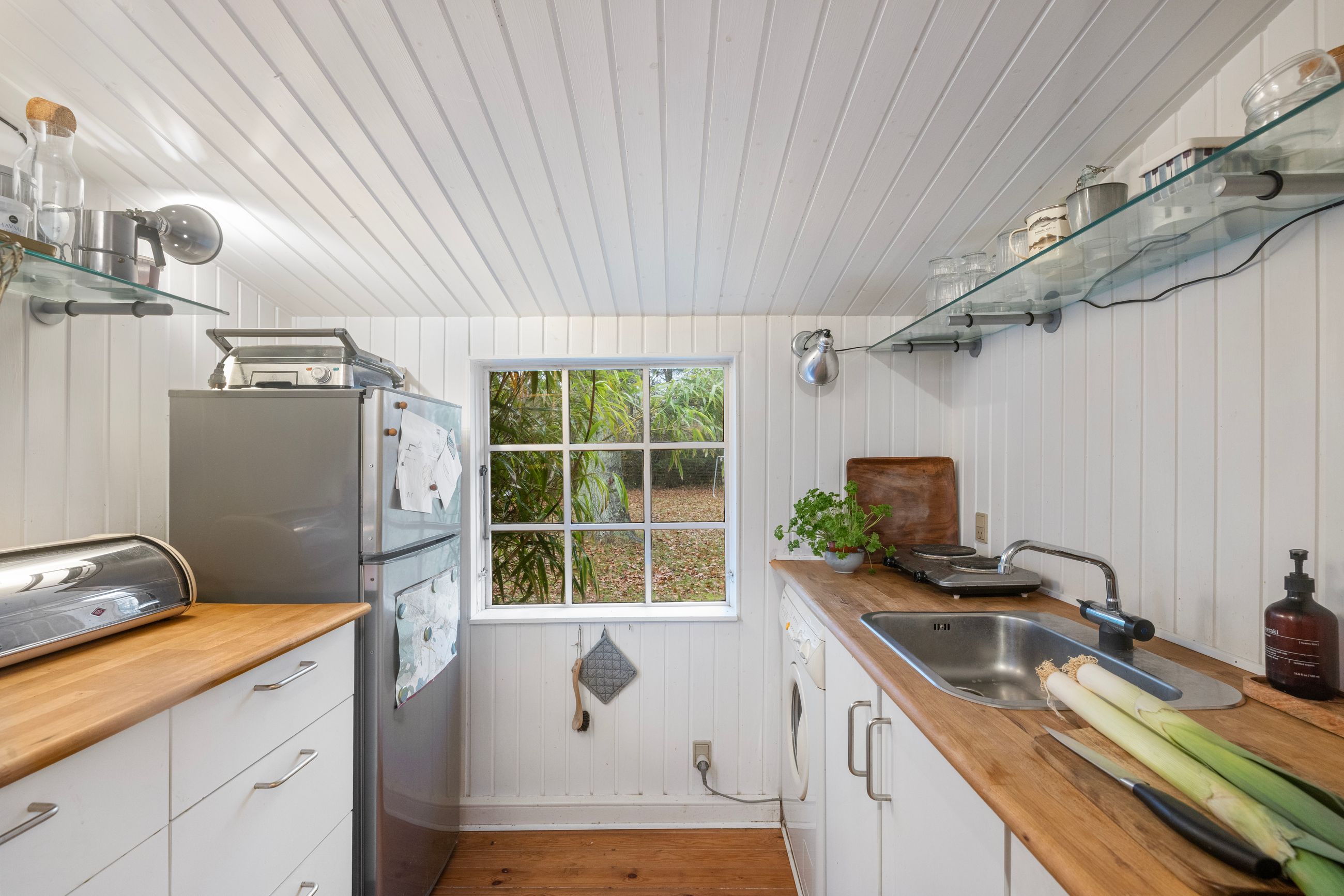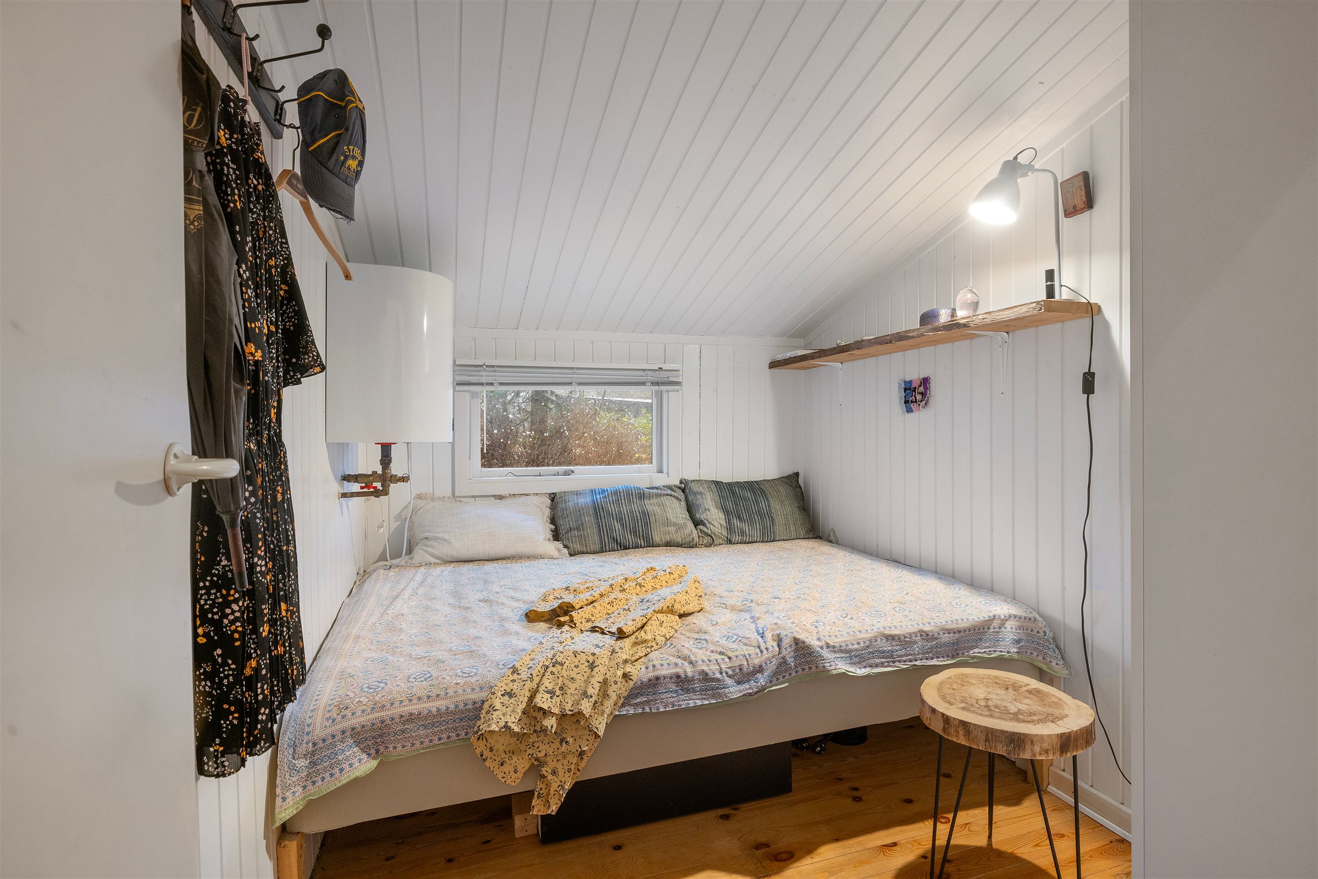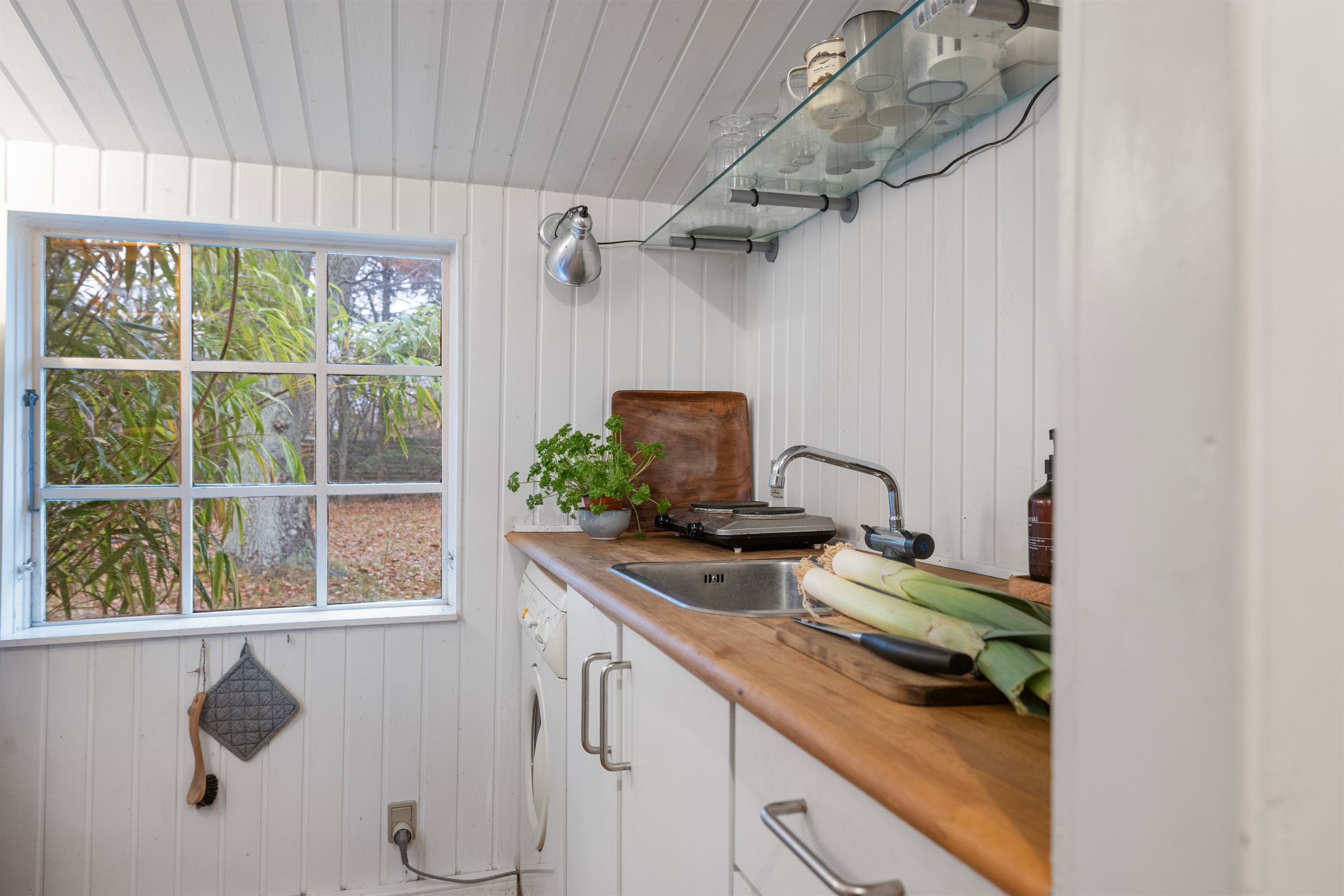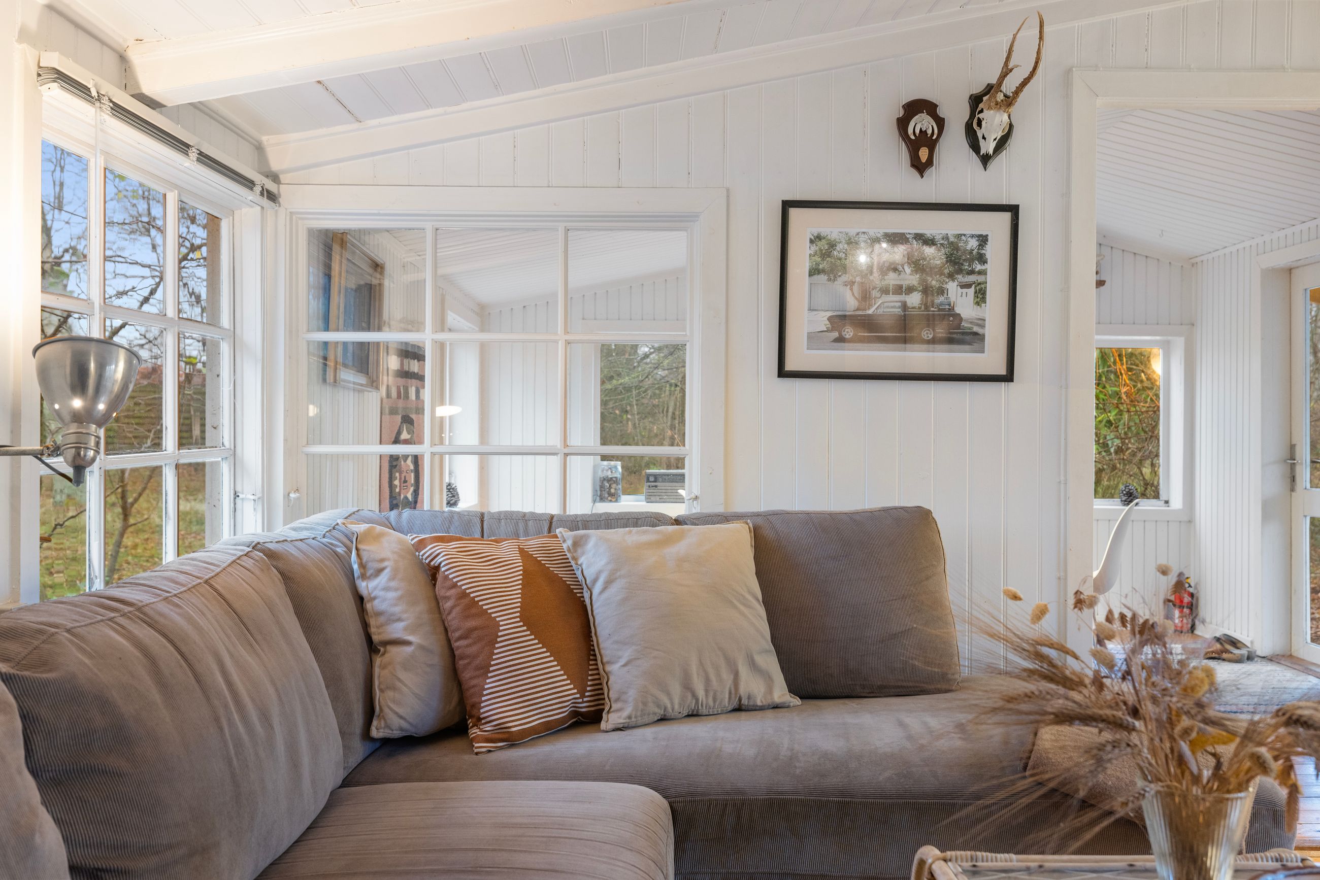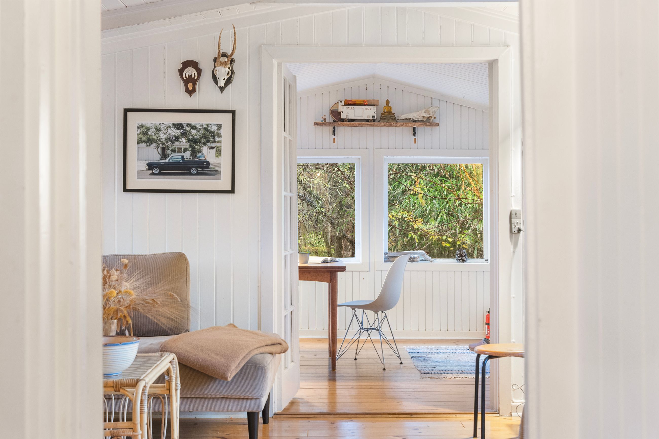 På Holløselund Strandvej 87 står et sort, klassisk sommerhus med hvide sprossevinduer fra 1946. Hyggeligt og charmerende er det med sine 54 m2. Ikke verdens største, men med det fine anneks er her alligevel plads til familien med børn og venner på besøg. Grunden er på 1.791 m2 med en have, der lever sit eget liv. Altså vild med vilje, som man siger. Store træer, høje græsser, mange rum til aktiviteter, bålplads. Masser af sol og lys ude og inde. Alt er velholdt, alt er passet godt på.