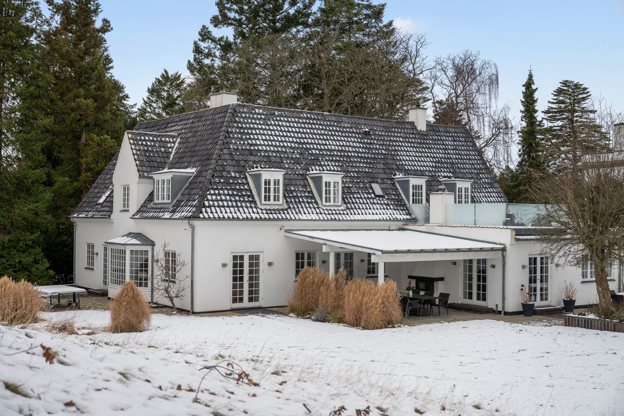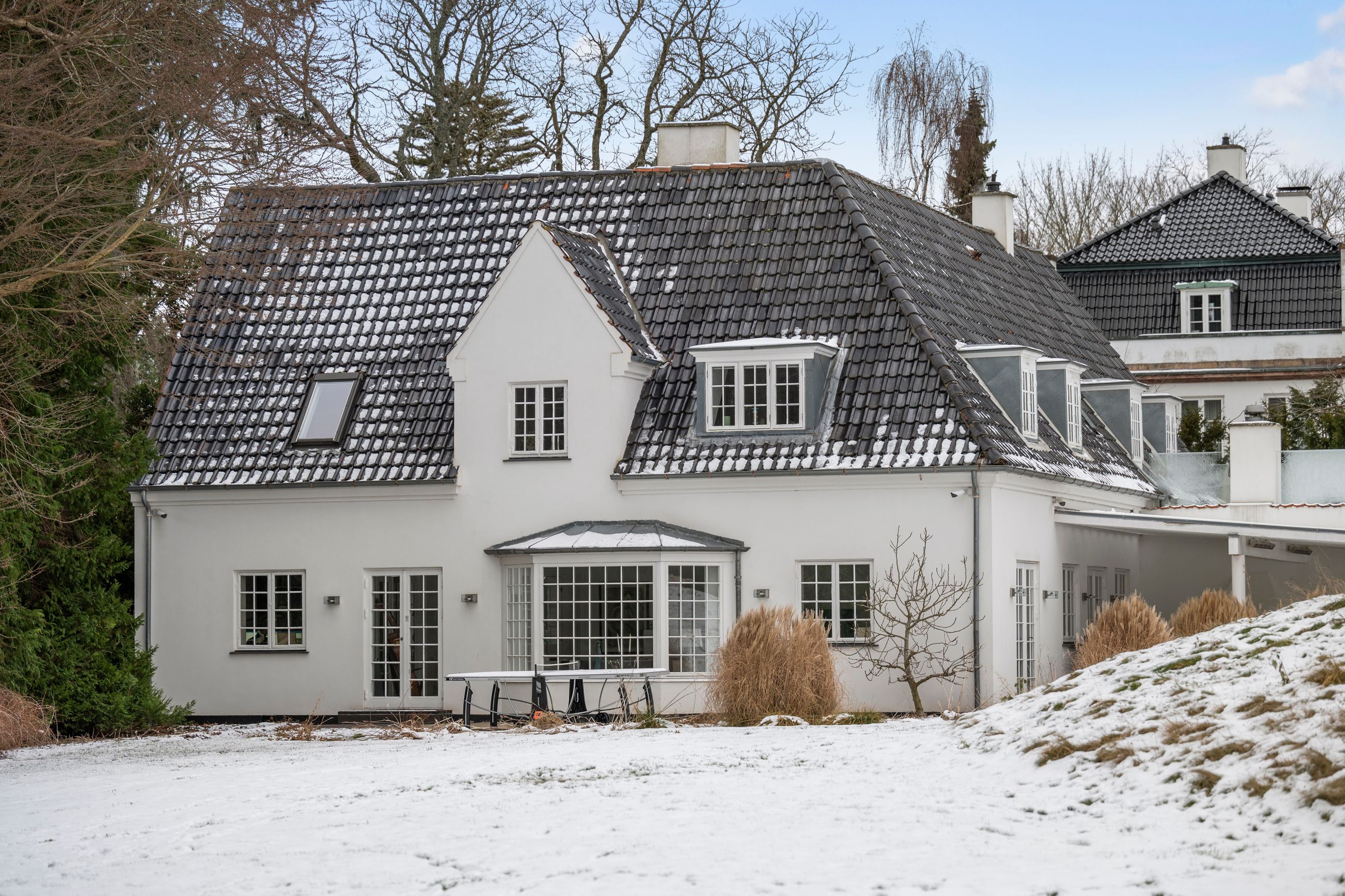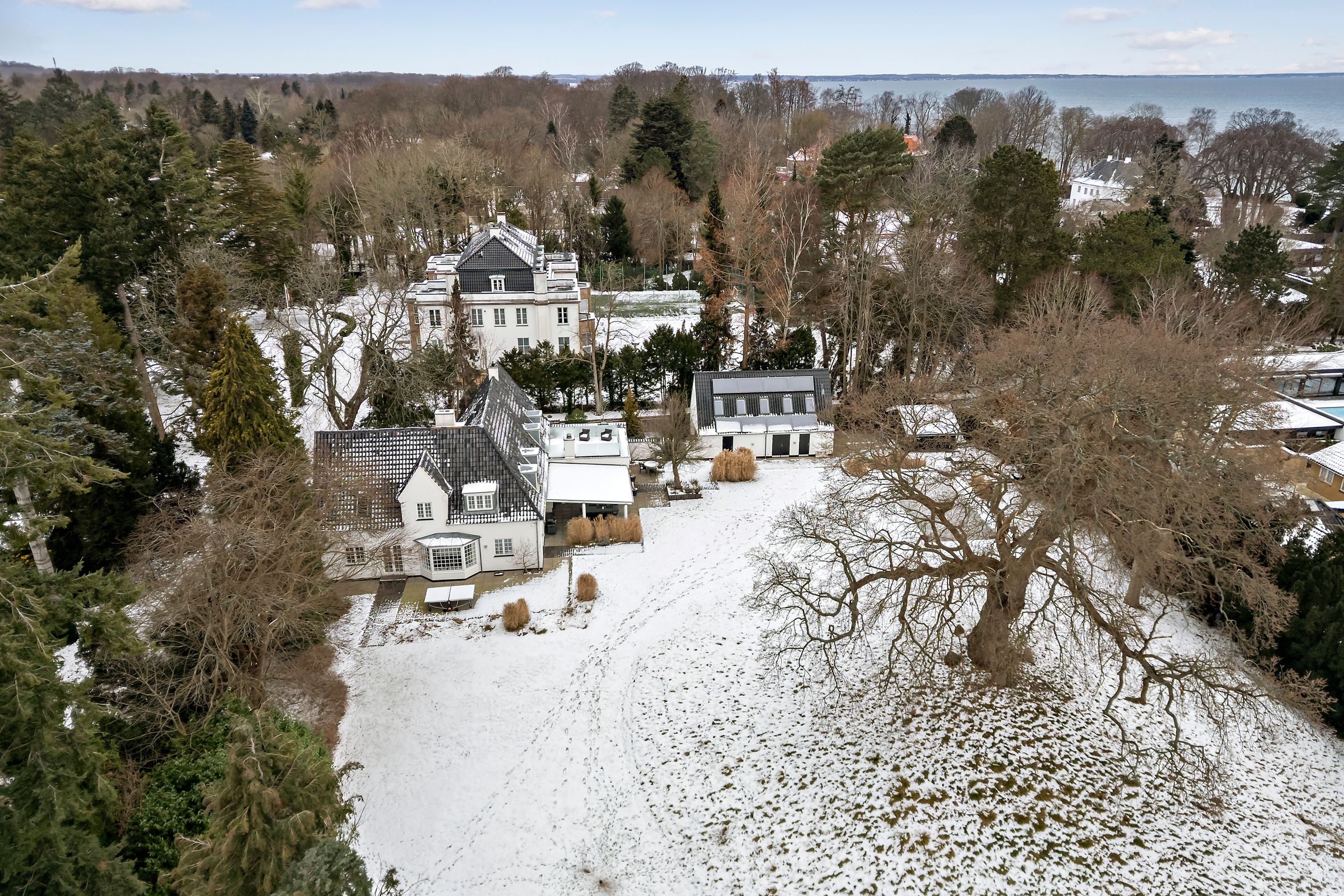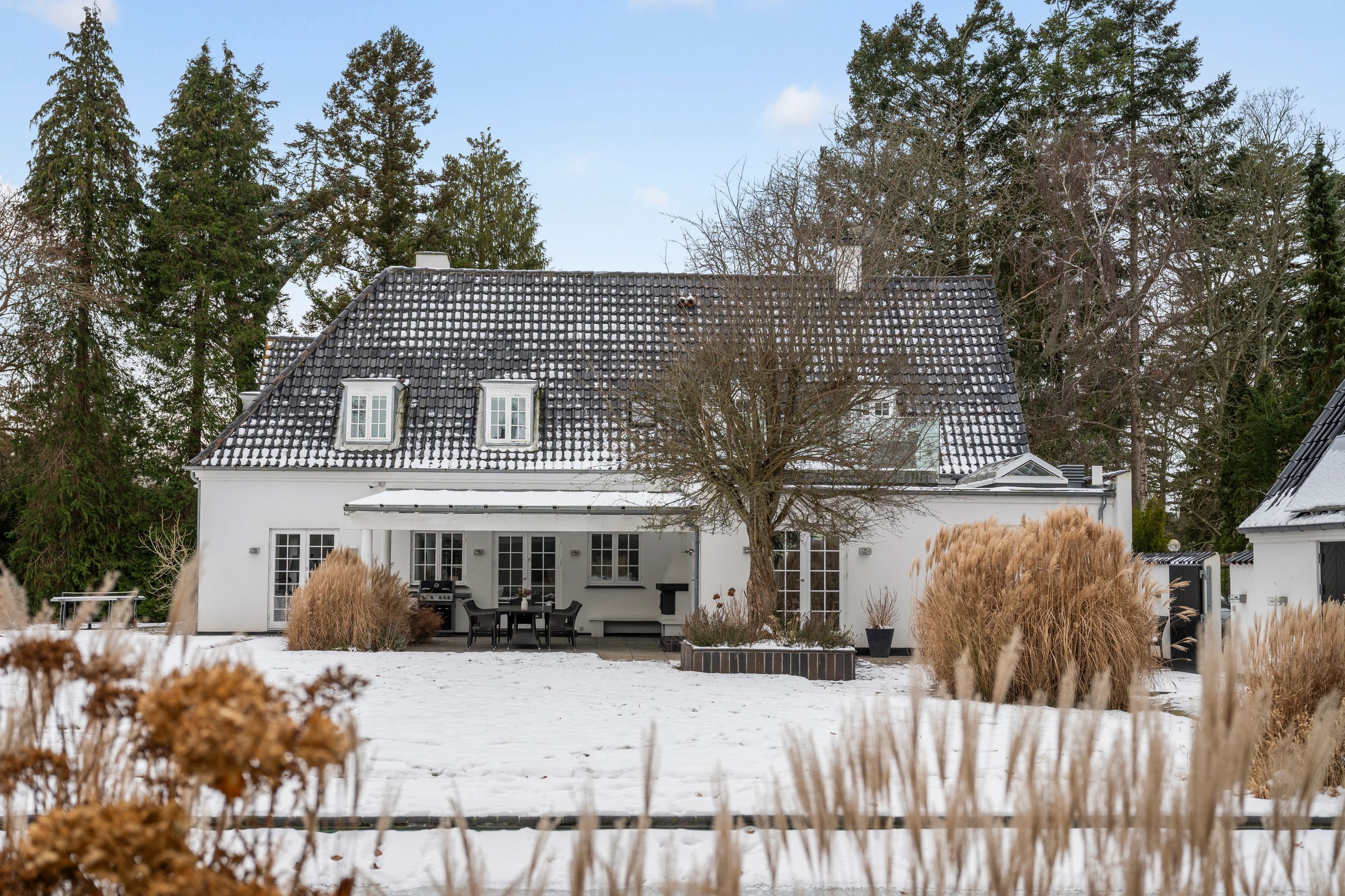 Og sikken beliggenhed, det rene paradis, og det var det også i begyndelsen af 1900-tallet, da tidens adel, prinser og velhavere valgte de blinde og stille kvarterer i Vedbæk til deres slotte og landsteder. Meget har selvfølgelig ændret sig, men ikke alt. Grunden på Immortellevej 15 er stadig stor, i dag er den fredet. Med 5.083 m2 er her rigelig plads til både garage, anneks, pool, bjælkehussauna og tennisbane, et kultiveret haveanlæg med de smukkeste og sjældneste planter og træer. Ja, og midt i haven står en gravhøj med et egetræ på toppen så stort, hult og rynket som det, H.C. Andersen skrev om i Fyrtøjet.