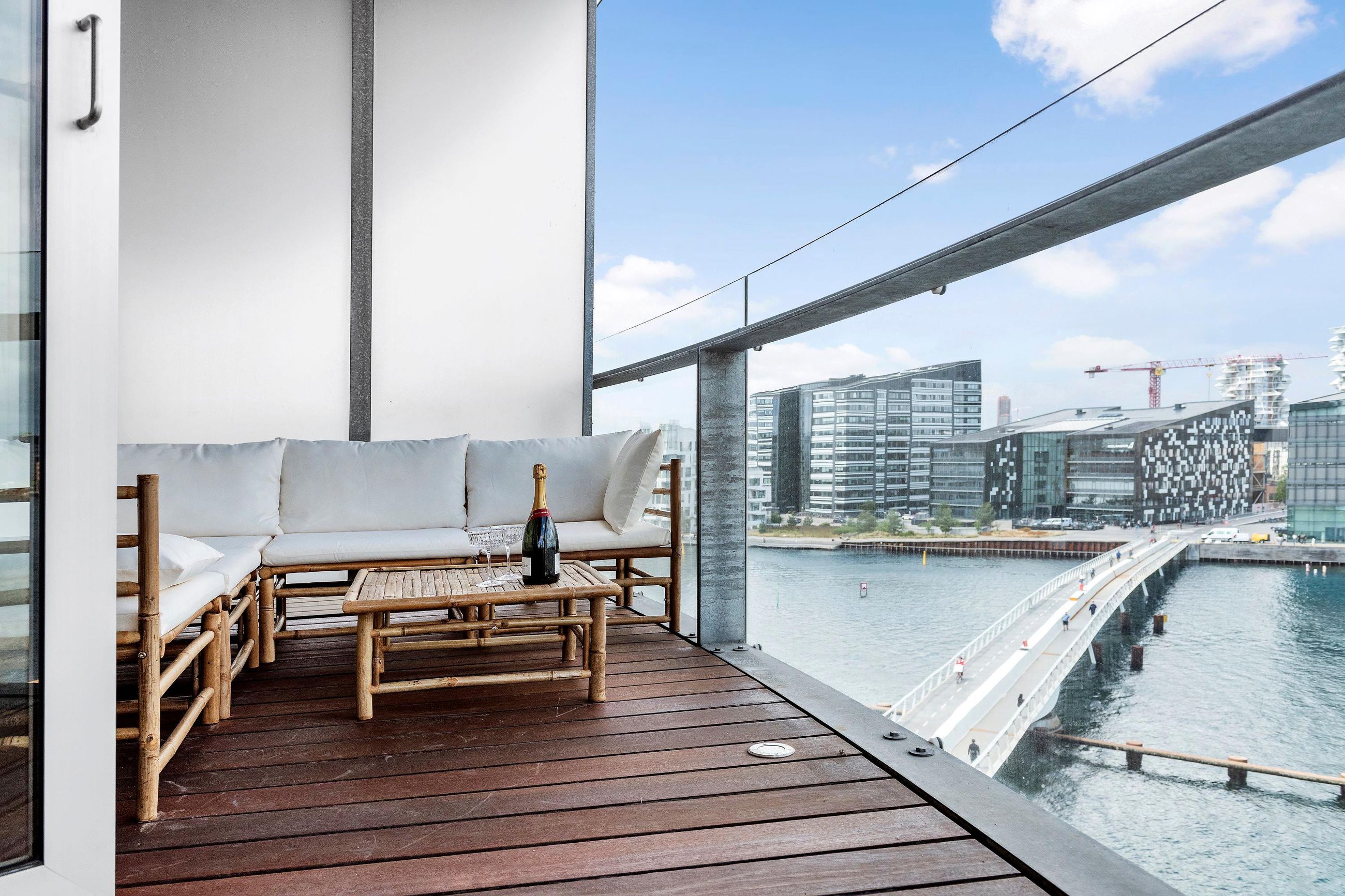 This unique apartment is located in one of the two iconic silos at Islands Brygge; The exclusive Gemini Residence. Here you have 143 square meters of living space and approx. 55 square meters of terrace, 4 exits to the terrace from the apartment, with a magnificent view of Copenhagen Harbor.