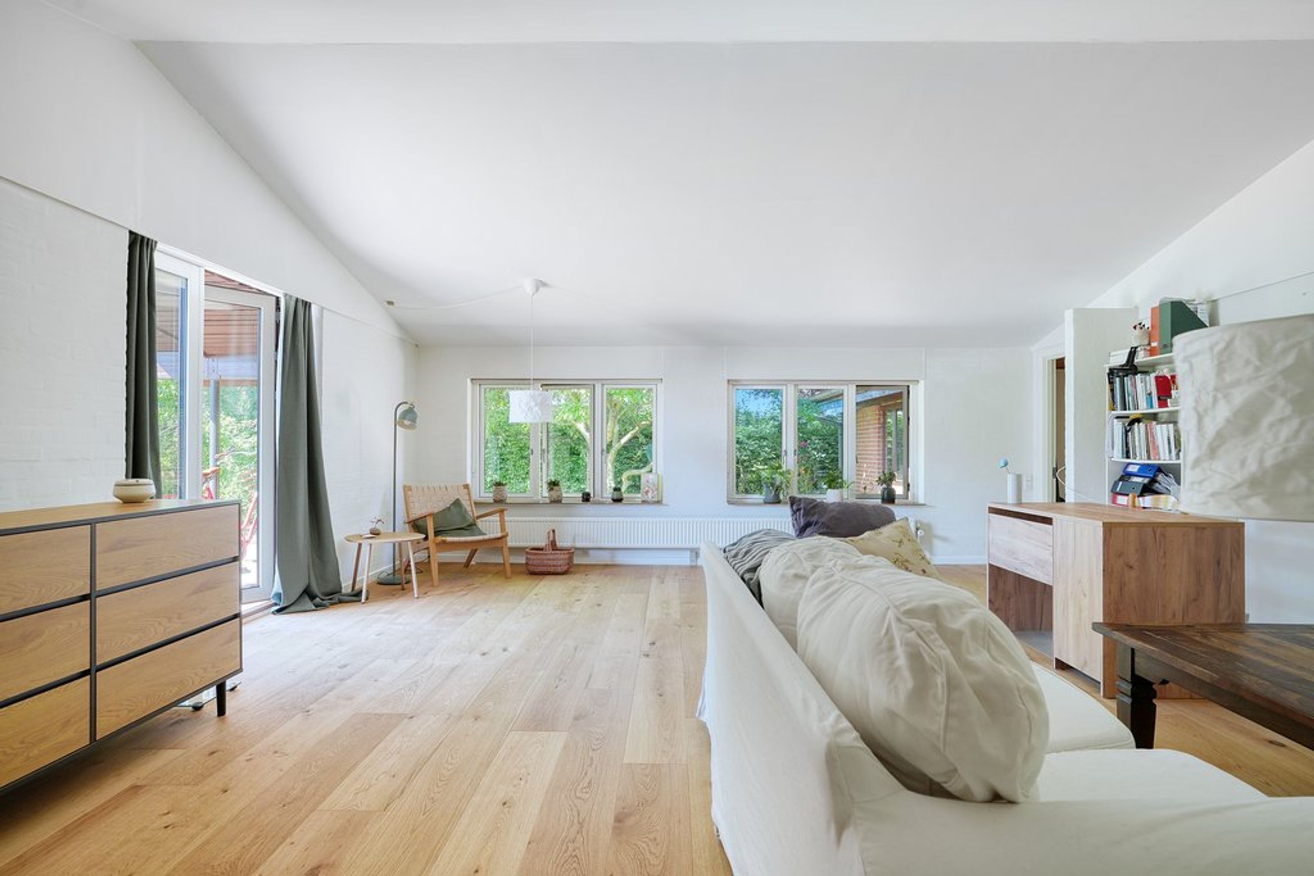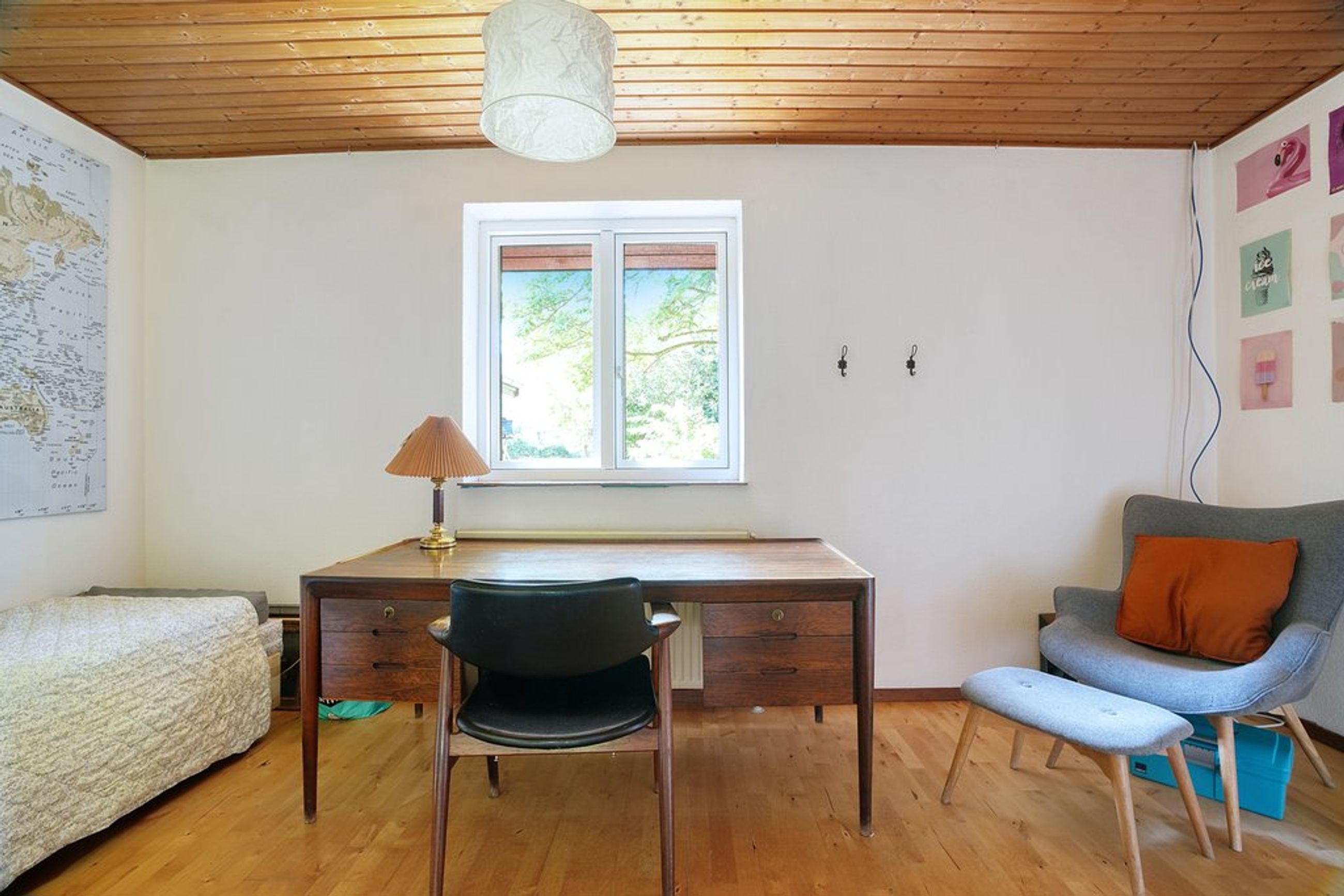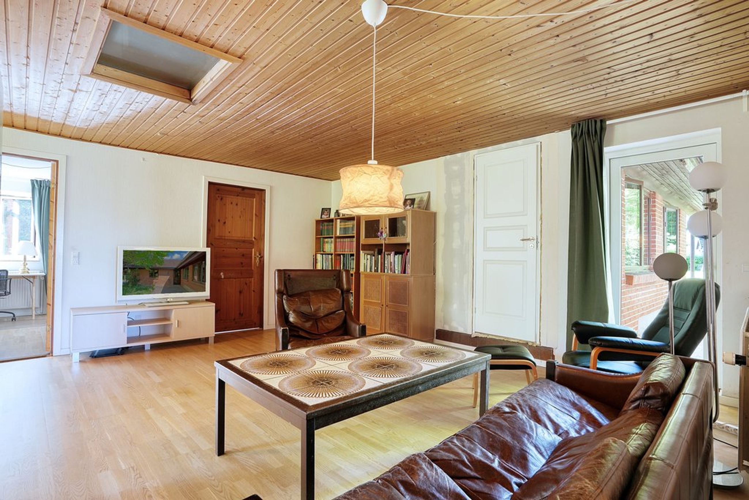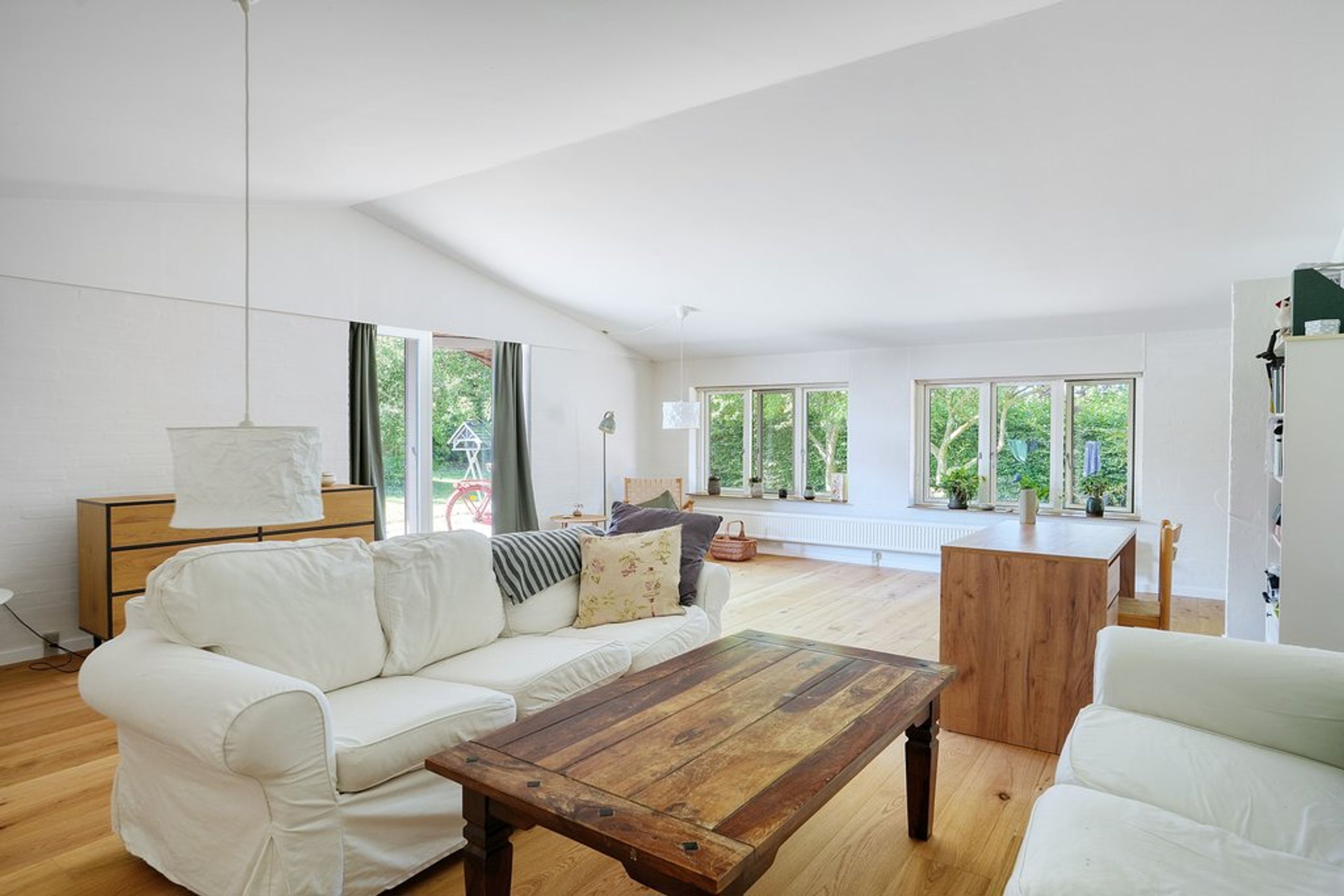 Huset er på 180 m2, har 4 soveværelser, masser af lys, et skønt køkkenalrum, loft til kip og højt til loftet. Institutioner, skoler, gymnasier, badeanstalt og golfbane er tæt på. Og så tager det under 5 minutter at nå motorvejen til København, 60 kilometer derudad, så er man der. Grunden er på 744 m2.