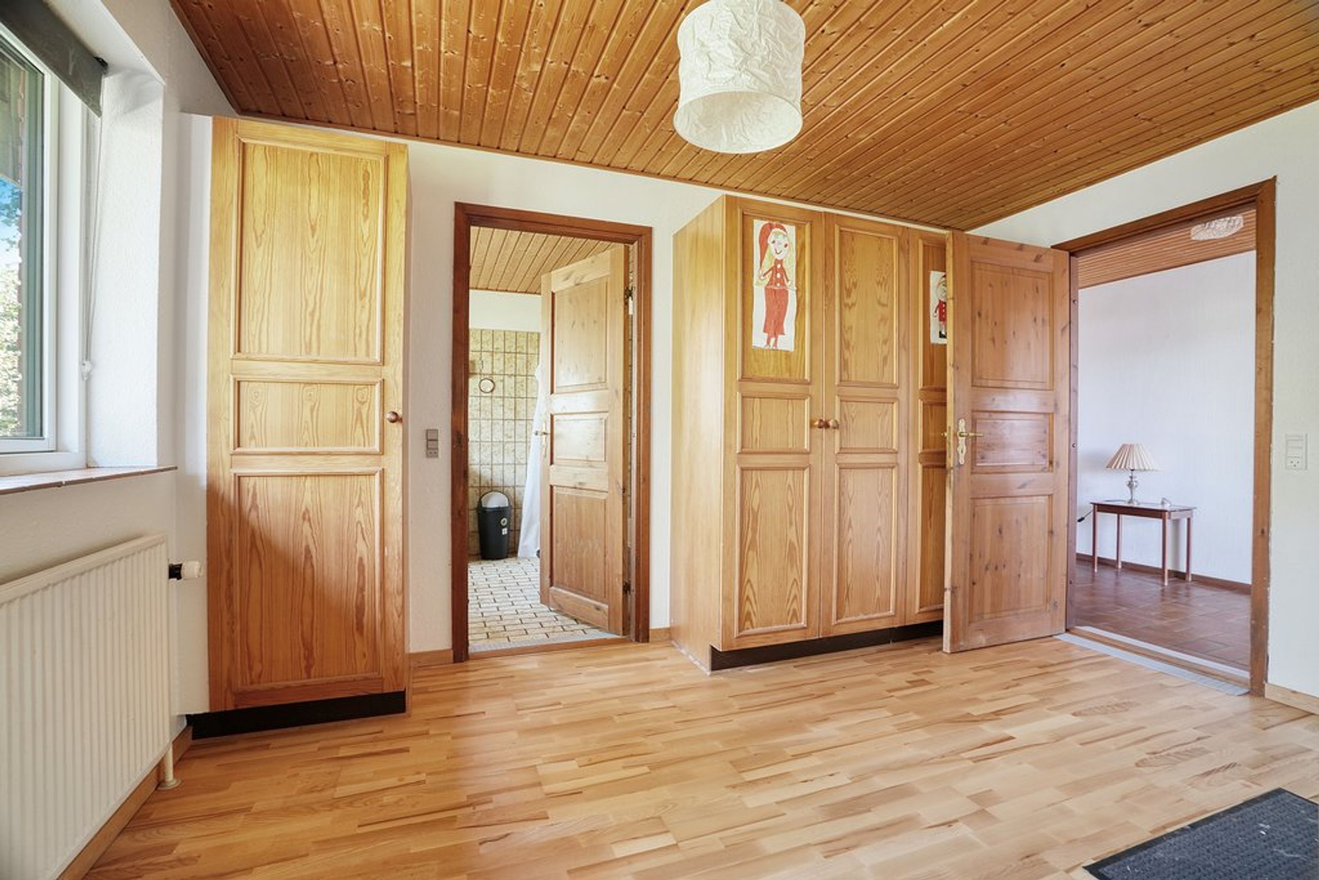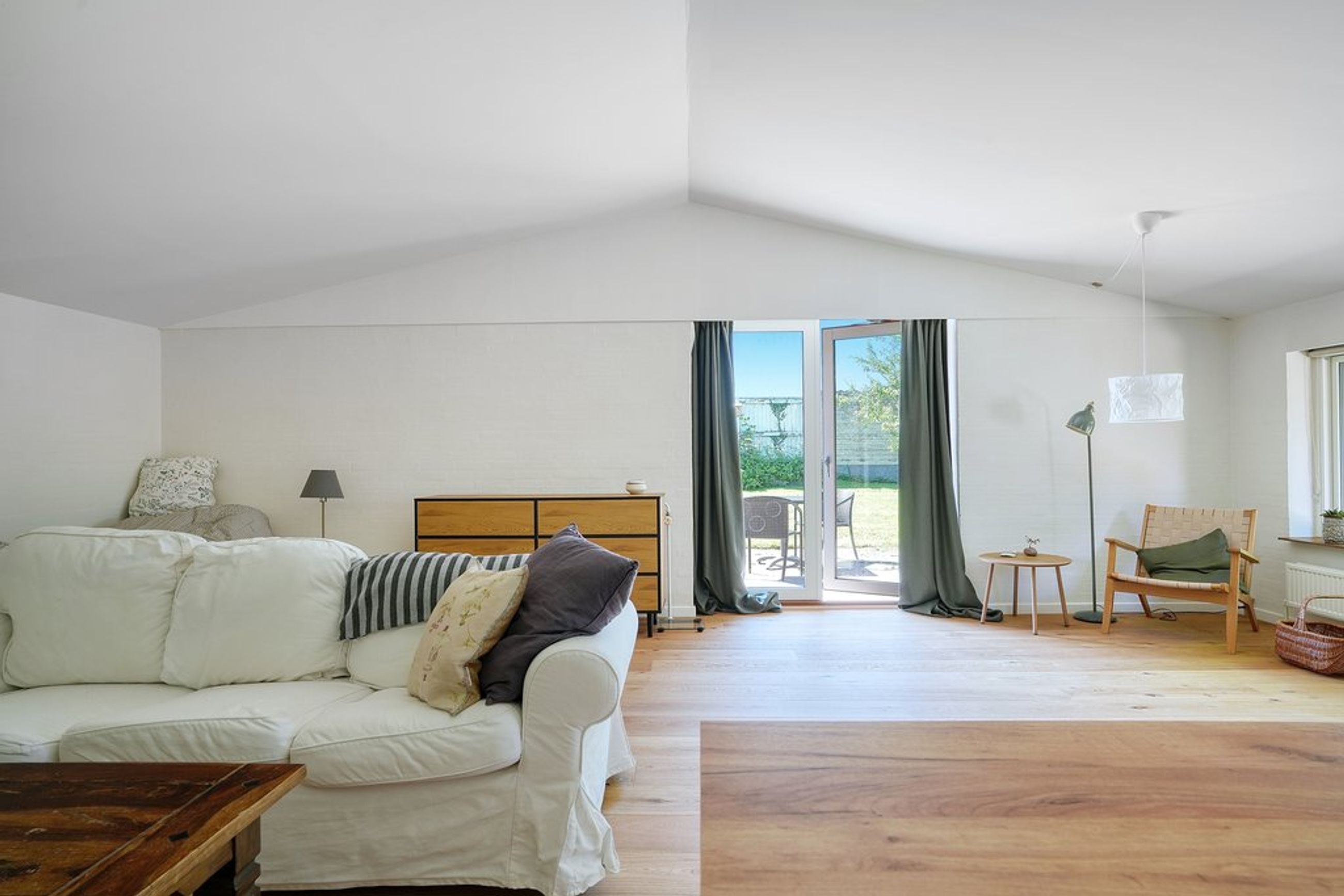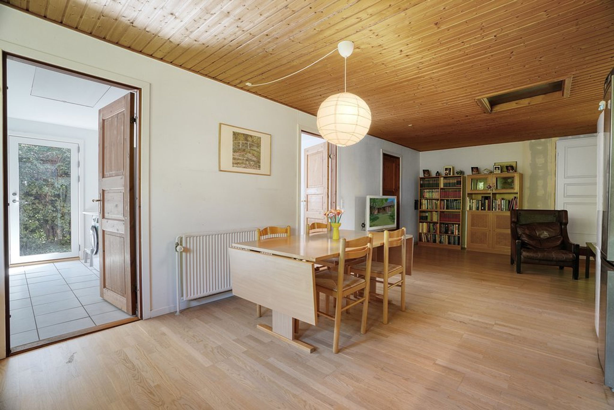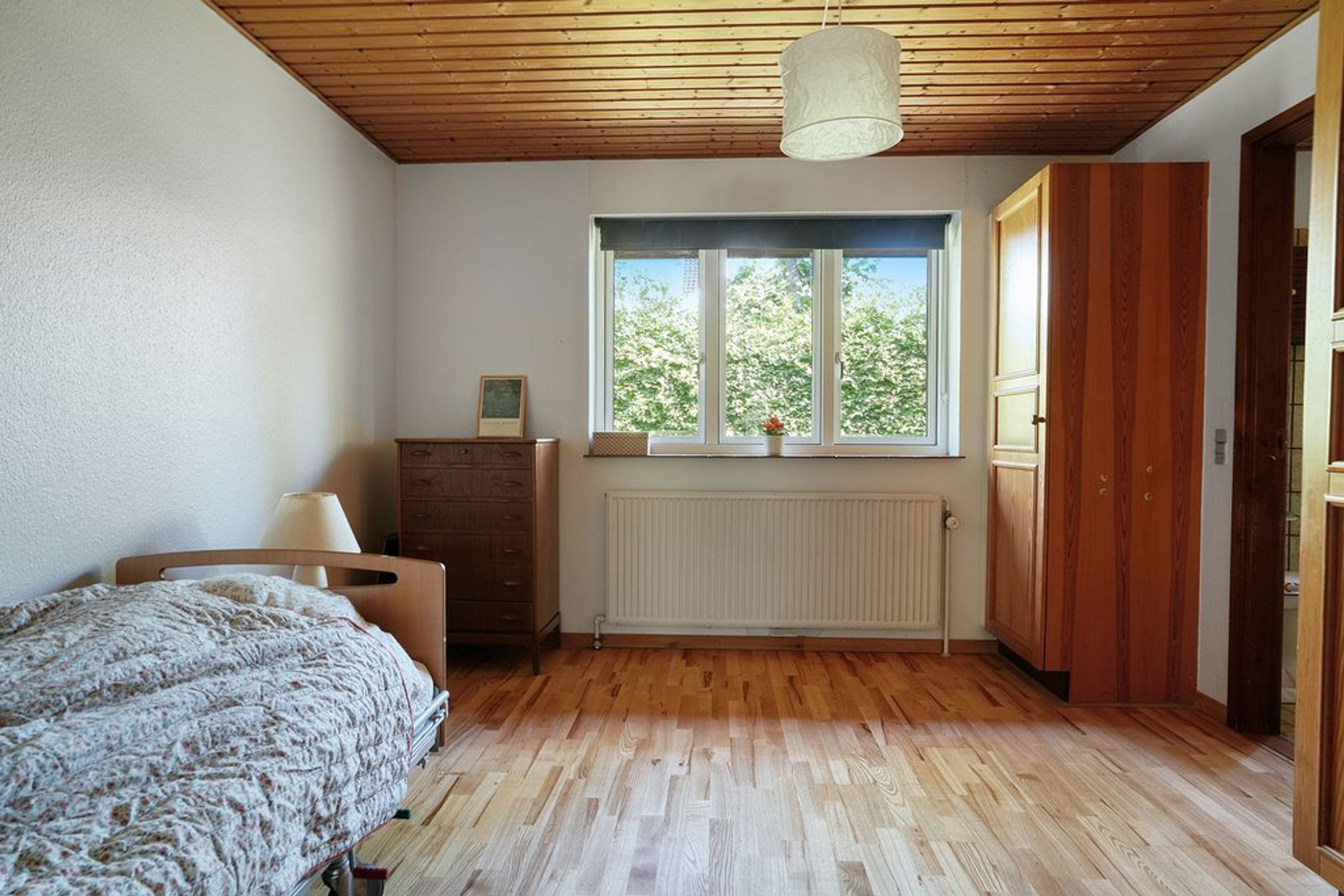 Huset er på 180 m2, har 4 soveværelser, masser af lys, et skønt køkkenalrum, loft til kip og højt til loftet. Institutioner, skoler, gymnasier, badeanstalt og golfbane er tæt på. Og så tager det under 5 minutter at nå motorvejen til København, 60 kilometer derudad, så er man der. Grunden er på 744 m2.