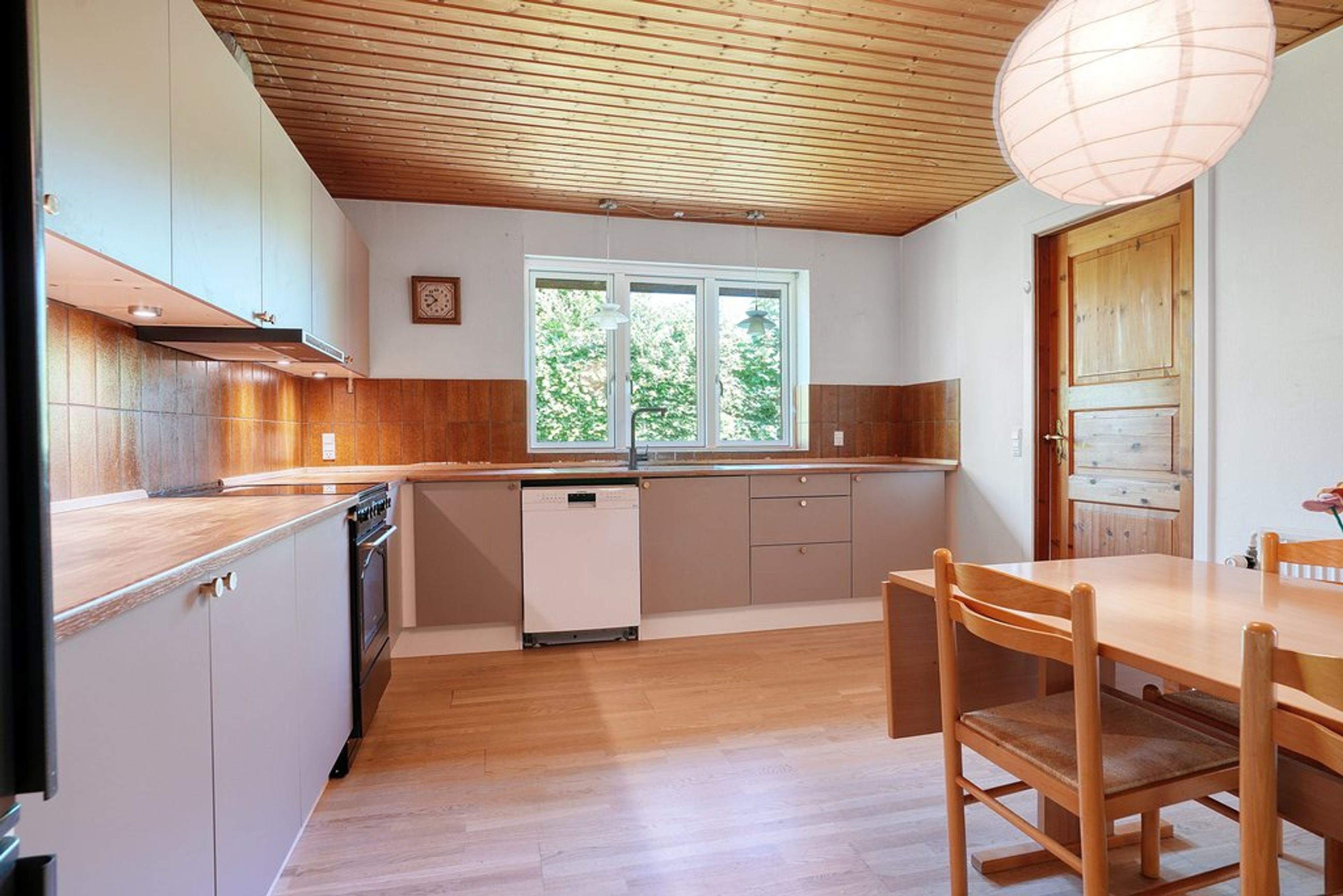 Når det blæser fra nord, når vinden står lige på, så er der salt og vand i luften her på den lille stikvej Kalundborgvej 140A. Ja, som om byen husker, at her på matriklerne var der en gang en gletsjer, der smeltede forbi. Vi er på den sydlige del af Holbæk Fjord i den vestlige del af Holbæk. Huset er bygget i 1979 og ligger få minutter fra strandstien. Til venstre kan man cykle hele vejen til Tuse Næs, til højre tager cykelturen til downtown Holbæk ikke mere end 8-10 minutter.