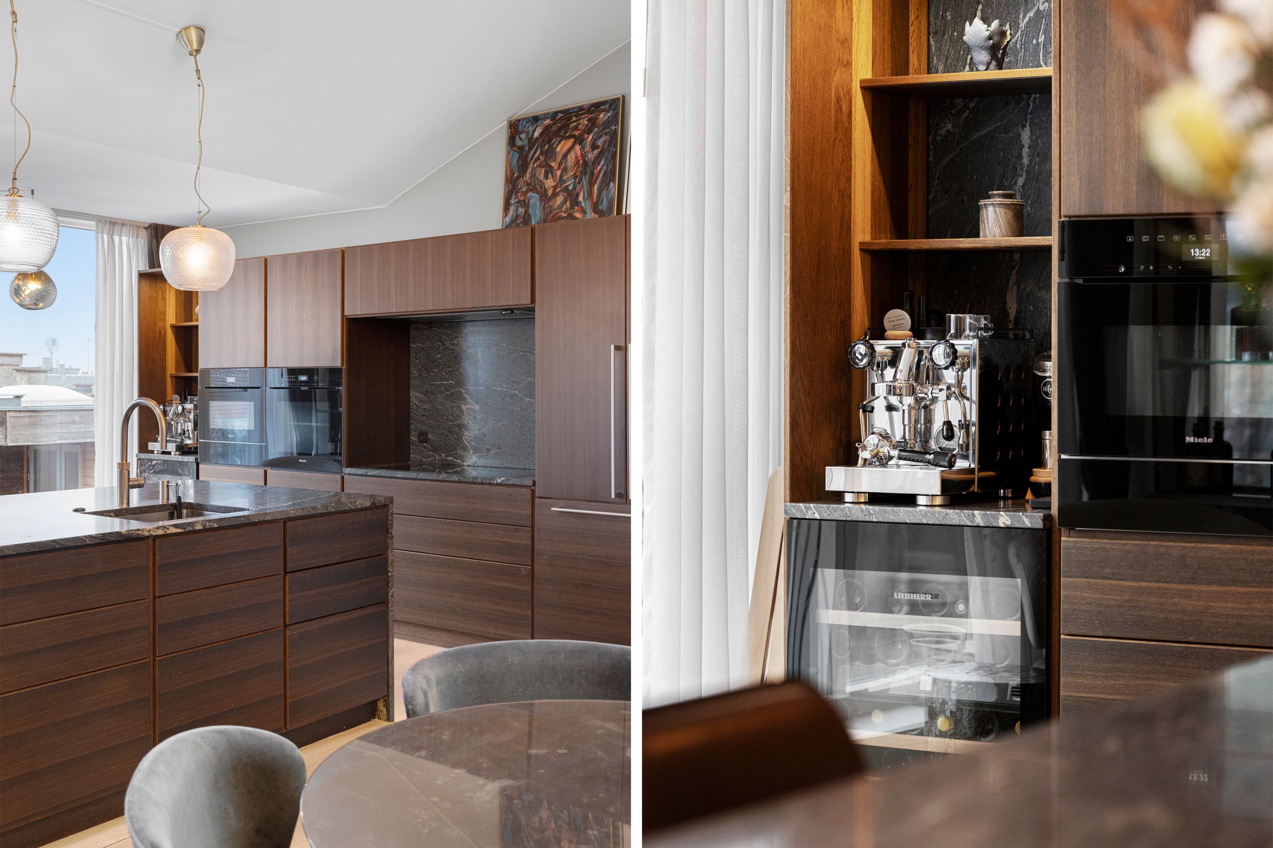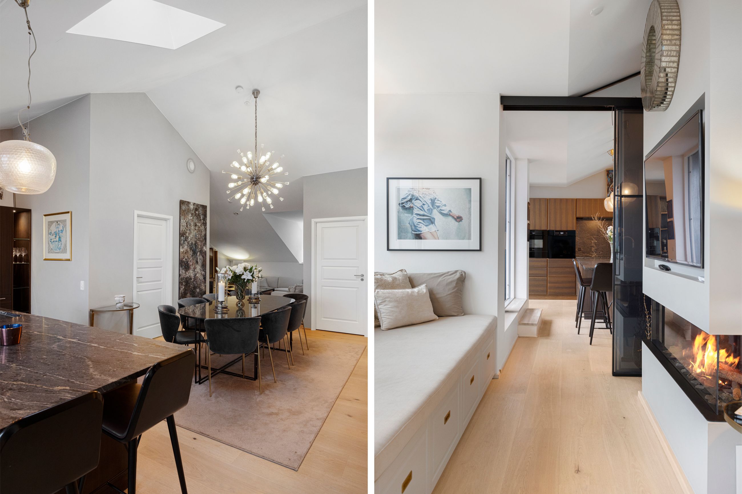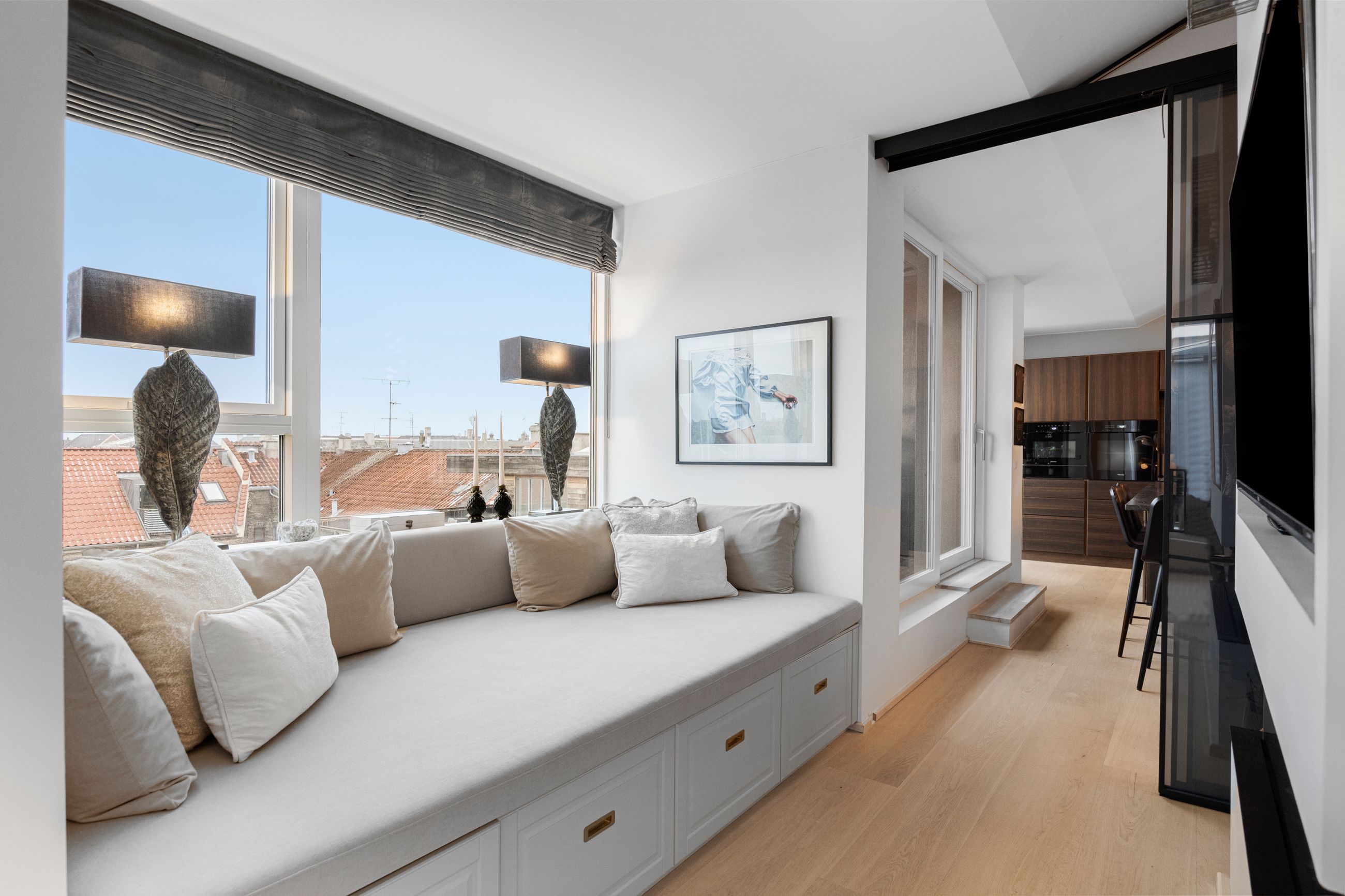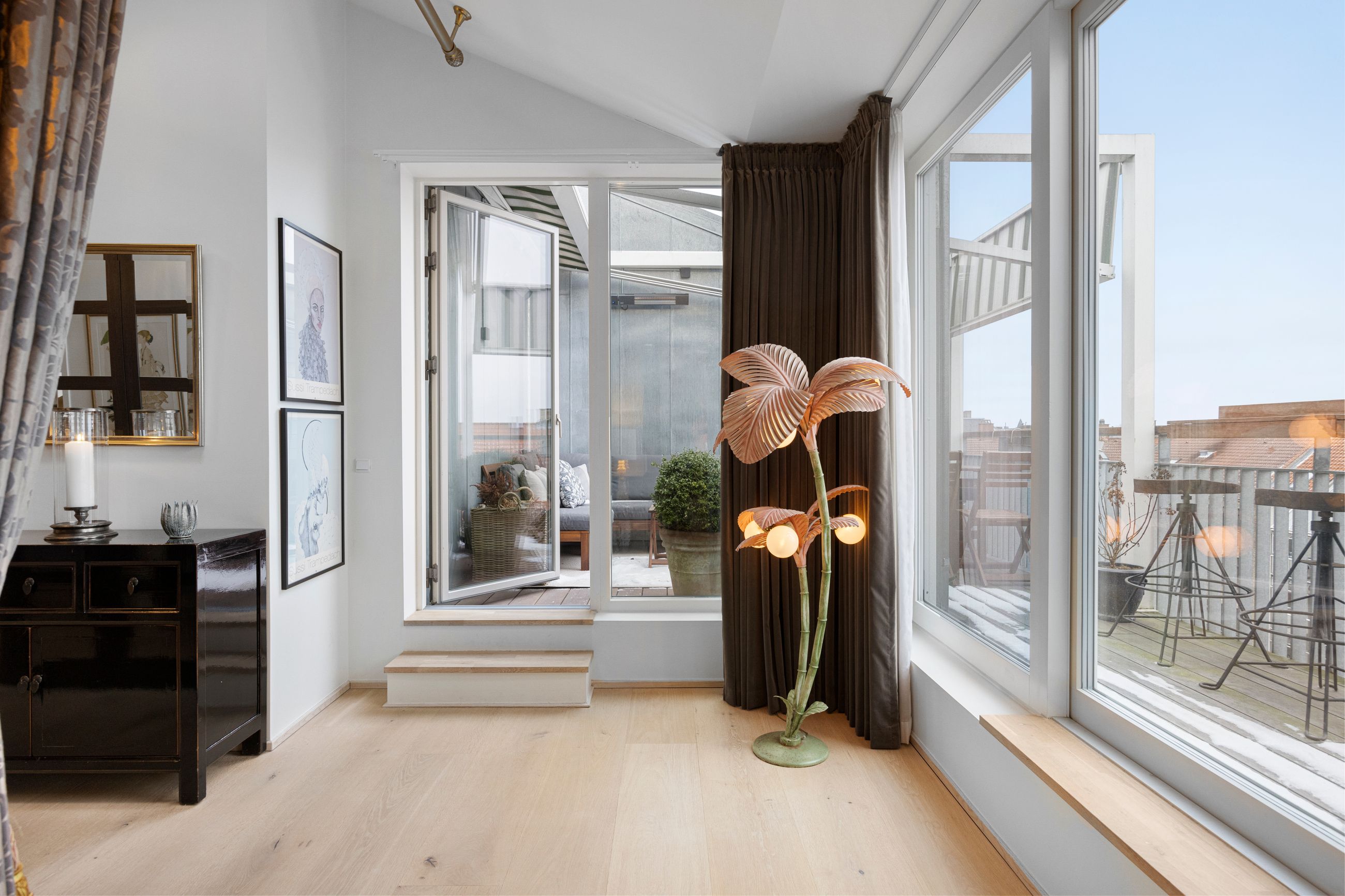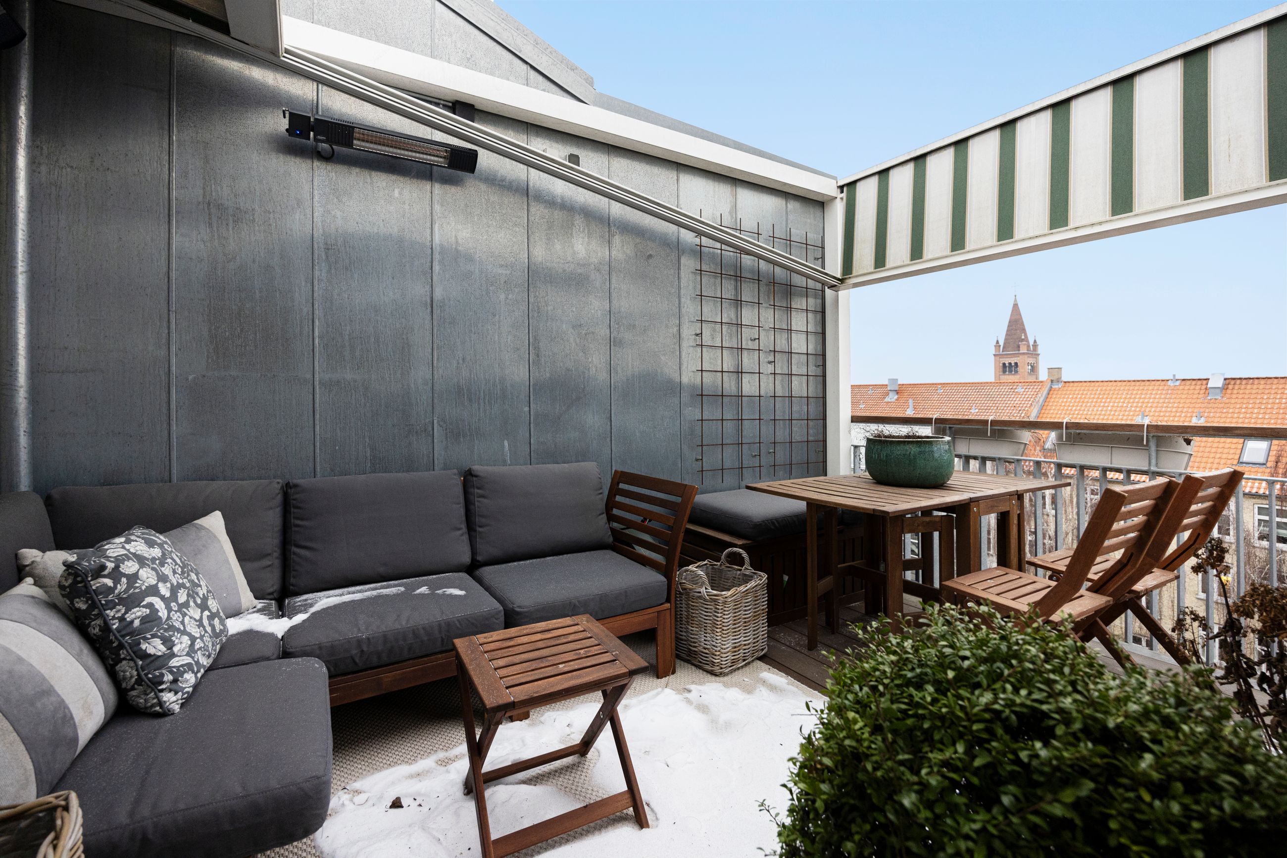 Salomons Palæ, hedder den fredede ejendom i Klerkegade, som i 2017 var igennem en foryngelseskur til 49 spitzenklasse ejerlejligheder. Én af dem ligger på 3. sal oppe under taget med højt til loftet og interessante skæve vinkler. Elevator lige til hoveddøren. Tak. Arkitekturen er livlig med et anerkendende og kærligt tyveri fra den ægyptiske kunst, fra antikken, gotikken, renæssancen og barokken. Det er bygget i 1868 i den historicistiske periode, fællesbetegnelsen for den europæiske arkitekturstrømning. Her er altan ud fra køkkenet og tagterrassen er privat, kun de byfugle, der flyver rundt som små direktører i grå jakkesæt, kan kigge med. En væg i stuen kan nemt flyttes til mere rum og plads. Er det en lejlighed med karaktér og parkeringsplads man leder efter på en af de bedste beliggenheder i Indre By, så finder man næppe noget, der er mere interessant i den bedste del af København.