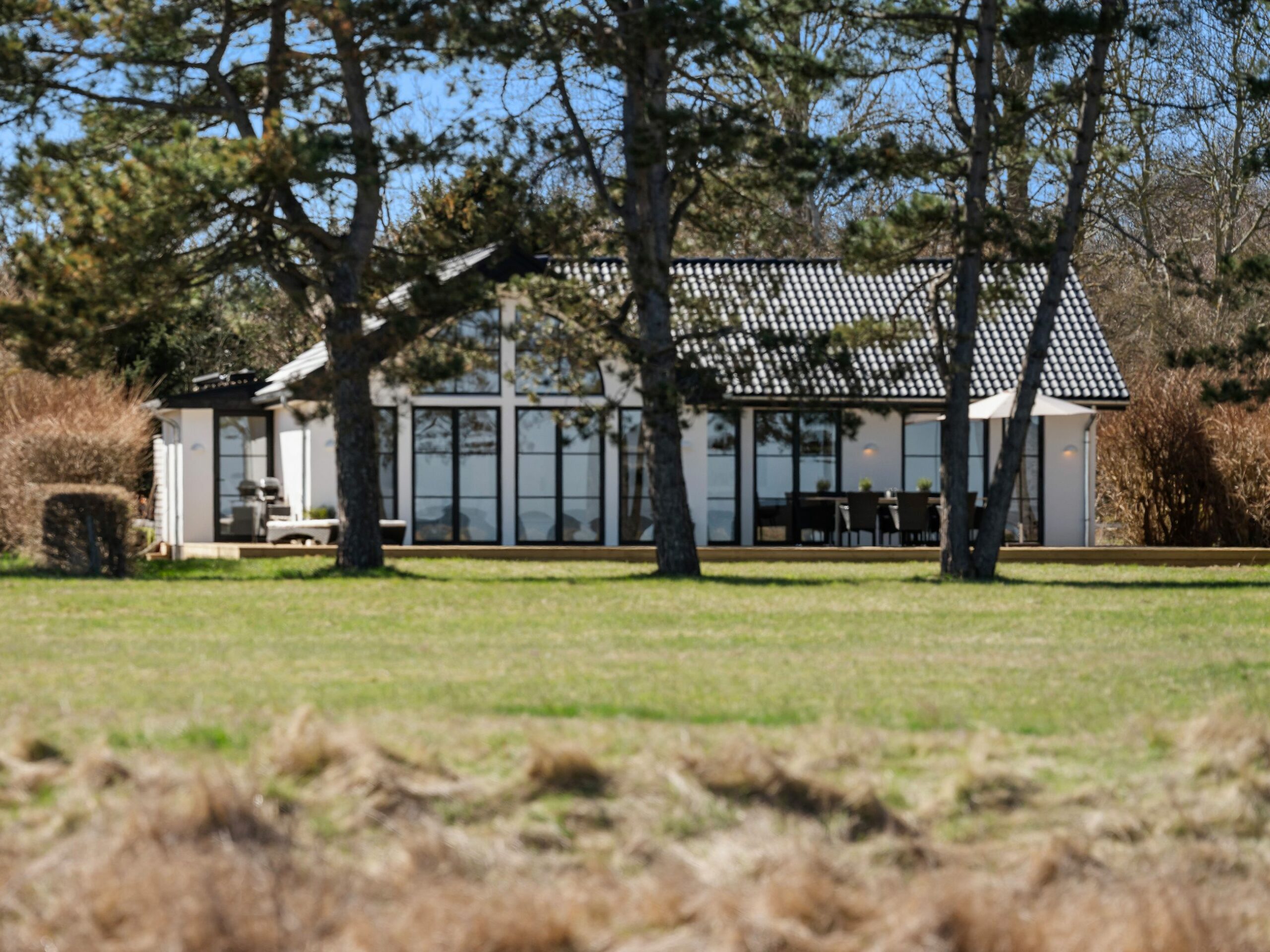 Sommerhuset på Klintvej 90 ligger i 1. række til bugten, og hør så lige: det er så nyt som fra 2025. Altså ikke meget vedligeholdelse de næste mange år. Med gulvvarme über alles, med loft til kip, med ditto vinduer, og med hvide vægge og lyse gulve er her det smukkeste lys fra genskinnet i havet og himlen over og bag trætoppene. Udsigten over Kattegat inde og ude er mageløs, naturen er mageløs, alt er mageløst på den 942 m2 store matrikel. Naturen er stor, her er ingen offentlighed, alt på matriklen ligger ugeneret, her kan man slikke sol i haven og på terrassen i det bare ingenting, hvis det er det, man vil. Kun fuglene pifter og blinker med det ene øje, når de flyver forbi. Indkøb er en tur til Lumsås.