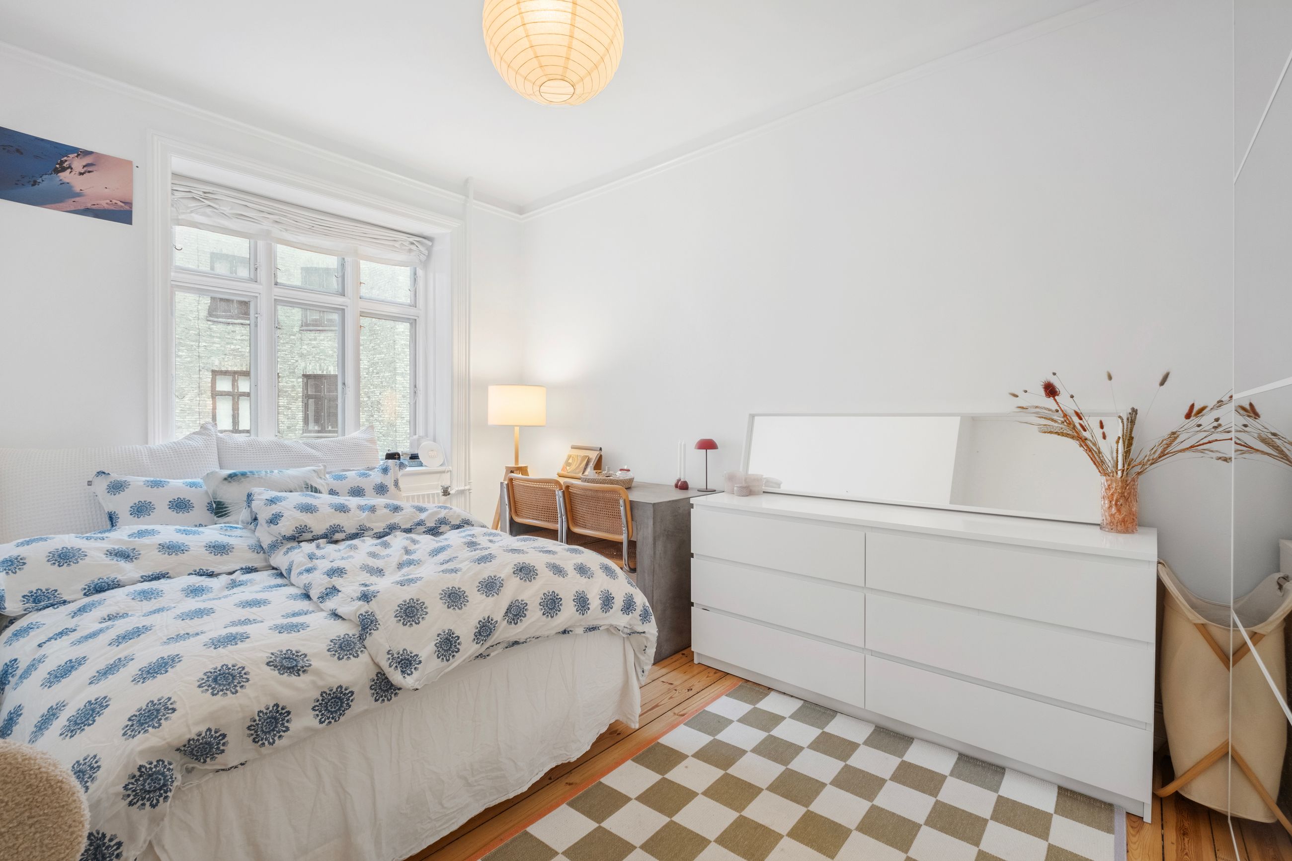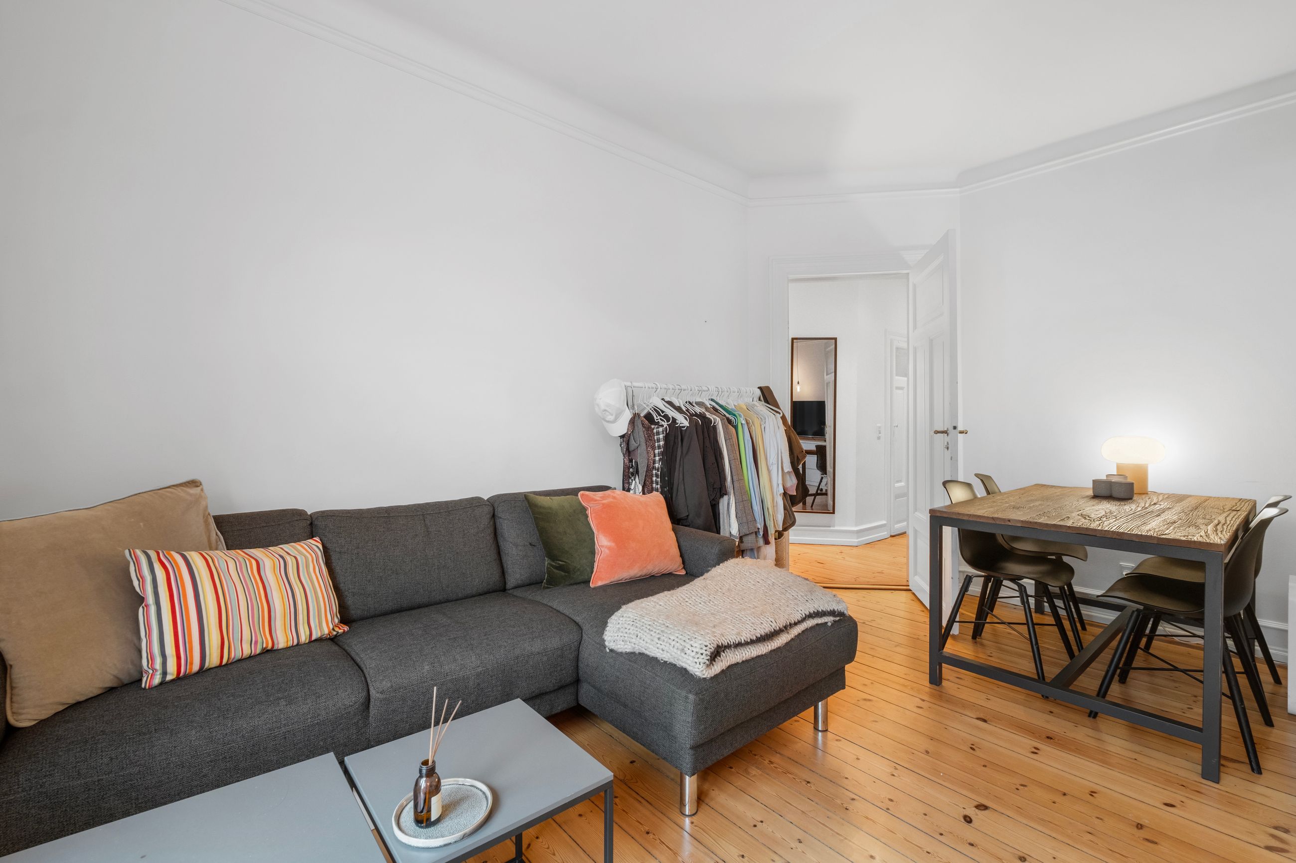 Forældrekøb. Lejligheden i ejendommen Koldinggade 37 er en I/S-lejlighed på 57 m2. Gaden er en stille og rolig gade, den råber ikke, den hvisker. Ejendommen er bygget i 1913 med tydelige nationalromantiske træk, typisk for sin tid på Østerbro. Skønt køkken, lækkert badeværelse, altan mod gaden, et oplagt forældrekøb lige til at flytte ind i. Med et enkelt soveværelse er den en klassisk 2-værelses lejlighed til studieliv, delelejlighed eller bohemeri. Beliggenheden bliver ikke bedre på Østerbro.