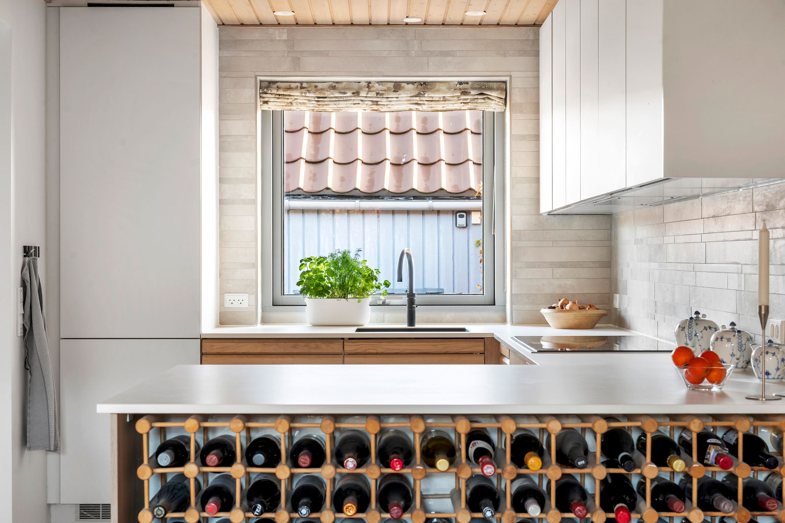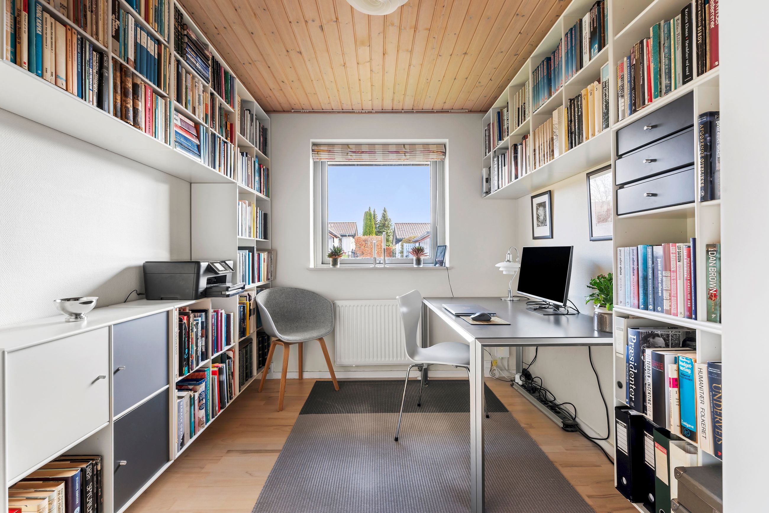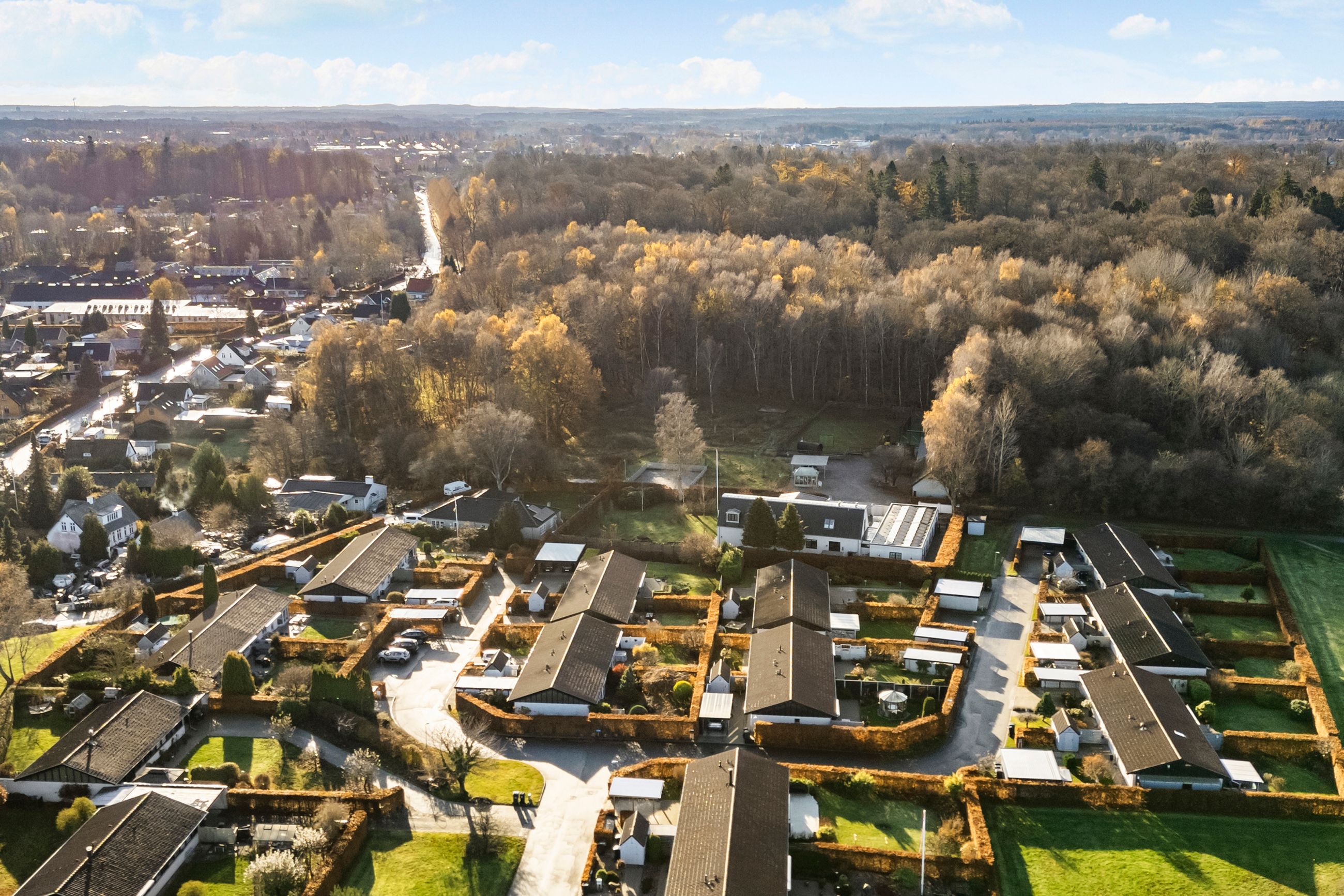 Man bliver næppe mere nabo til slotsparken til Fredensborg Slot end huset på Kovangen 125B. Inden man når tanken om en gå tur i parken, 40 meter, vupti, så er man der. Vang er gammeldansk og betyder græsmark eller eng, og med det vejnavn har kongehuset selvfølgelig haft sine royale køer græssende i kvarteret. Det gør de så ikke mere, køerne, nu hedder vejen i kvarteret Kovangen, og det er nok den vej i Danmark, som ender blindt flest steder. Med 17 små, blinde veje er det til gengæld et stille og roligt kvarter. Her kan man høre fuglene trække vejret.