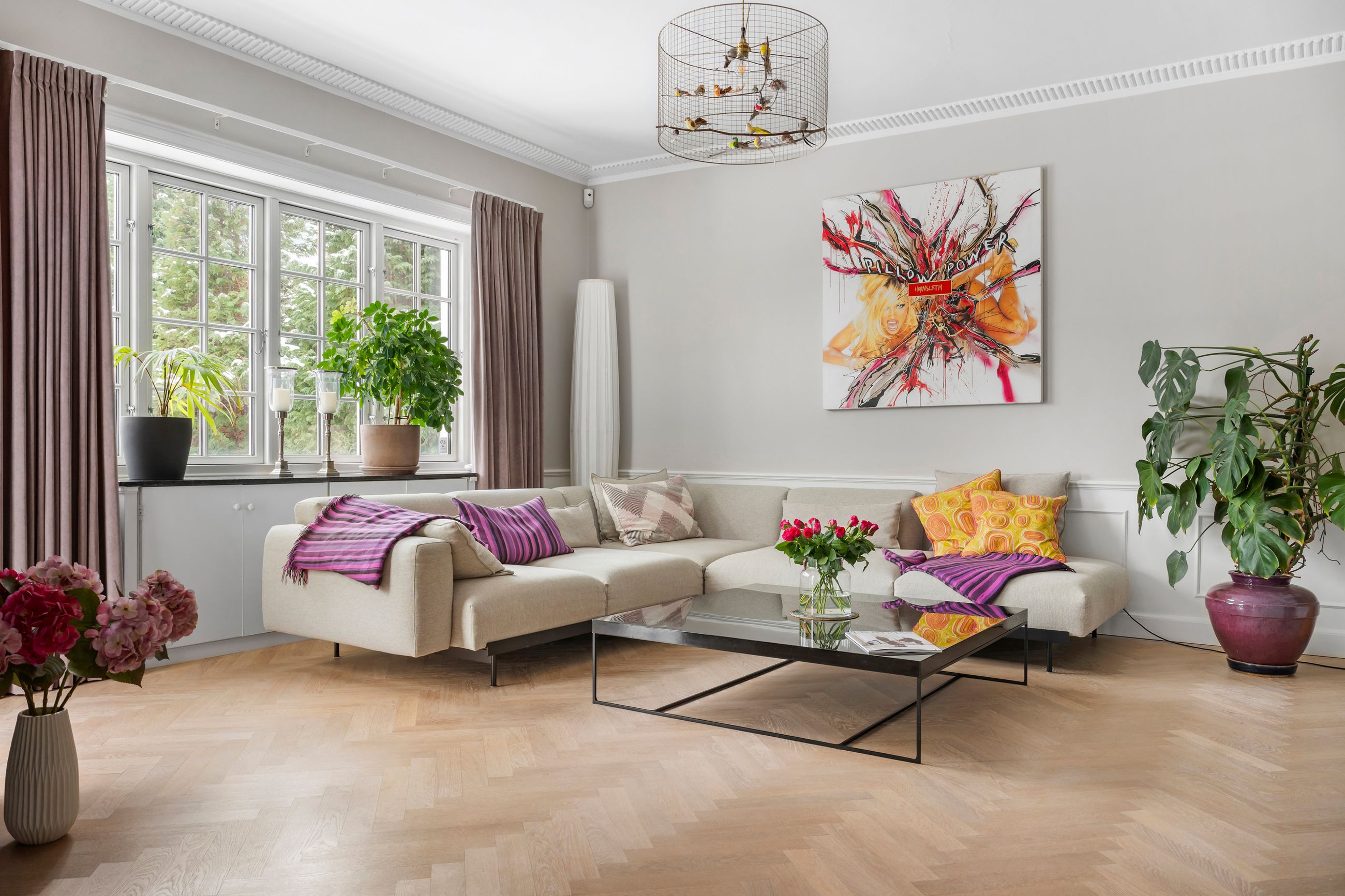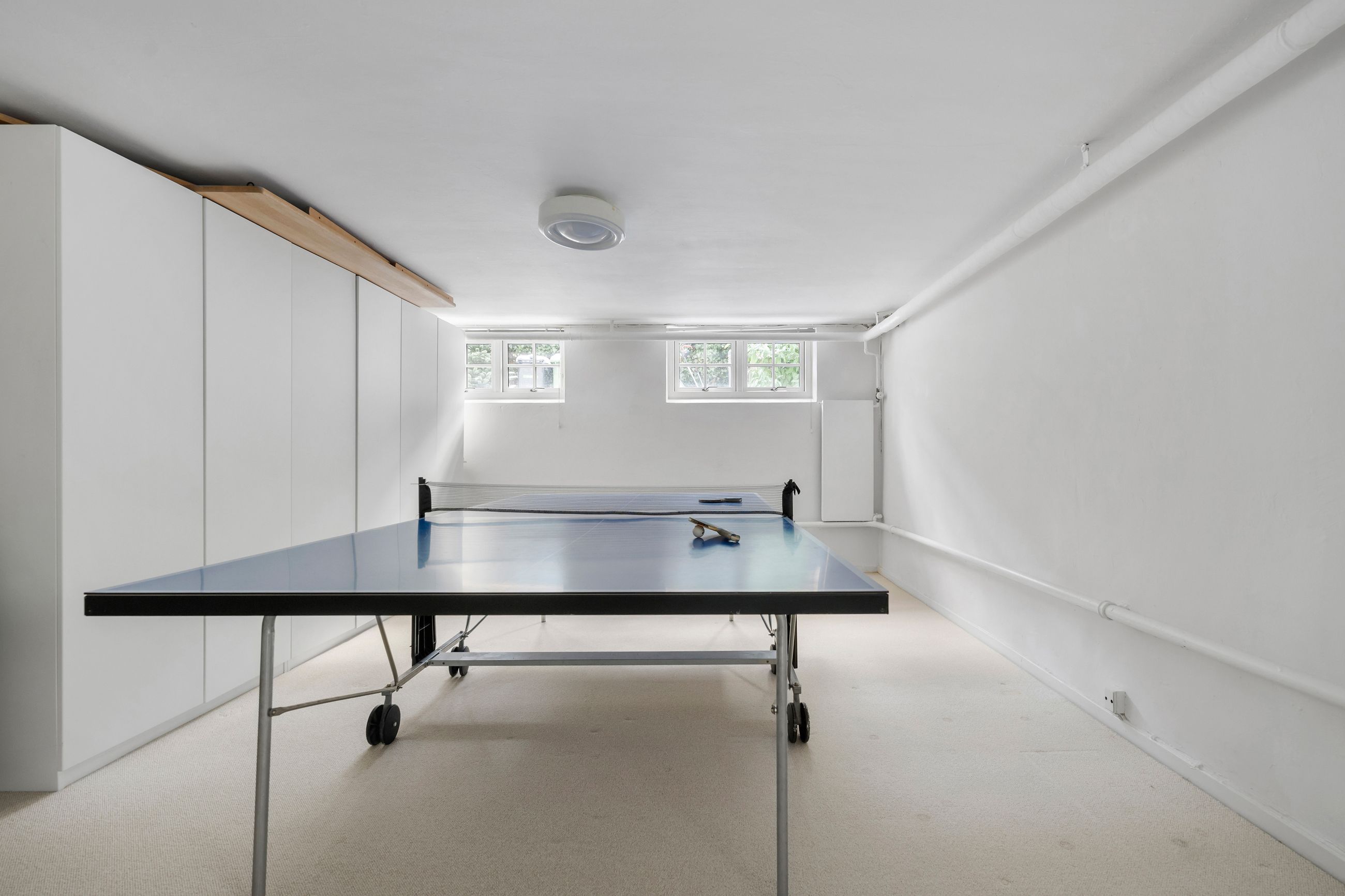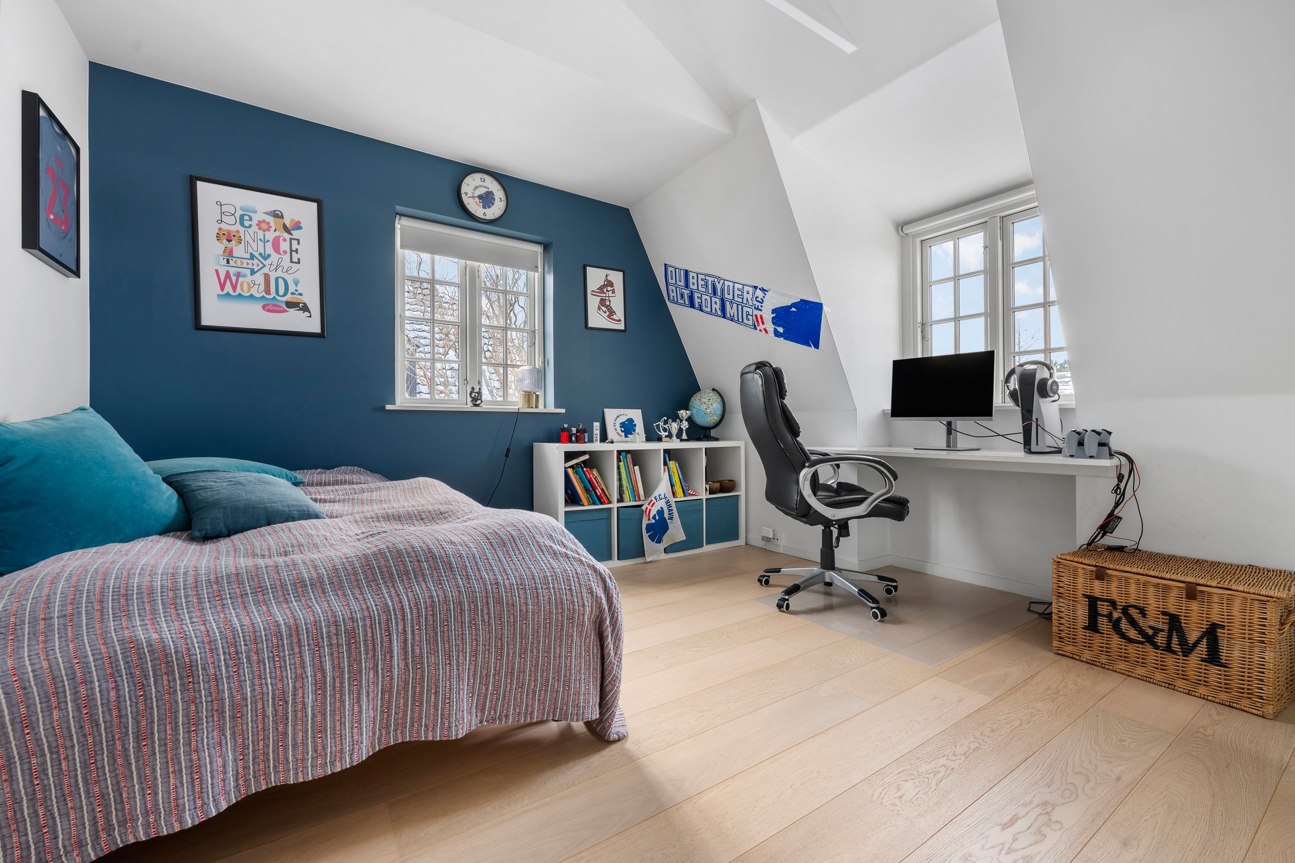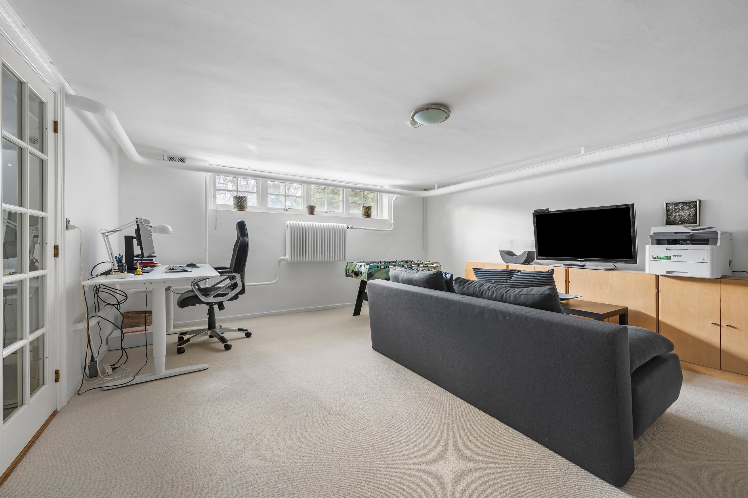 Boligen byder velkommen i entré med adgang til husets opholdsrum. Spisestuen har god plads til både hverdagsbrug og gæster, og dagligstuen har et behageligt og naturligt lysindfald. Der er udgang til østvendt terrasse i stueplan samt vestvendt fransk altan på 1. sal. I stueetagen er der massive egetræsgulve lagt i sildebensmønster, og der er gulvvarme i både stueetage og på 1. sal, hvilket sikrer høj komfort året rundt. Kælderen er tør og anvendelig og har fået etableret omfangsdræn i 2024. Den fremstår varm og indbydende og egner sig særdeles godt som teenageafdeling eller au pair-afdeling, komplet med badeværelse. Grunden udgør 809 m², og ejendommen har lave ejerudgifter.