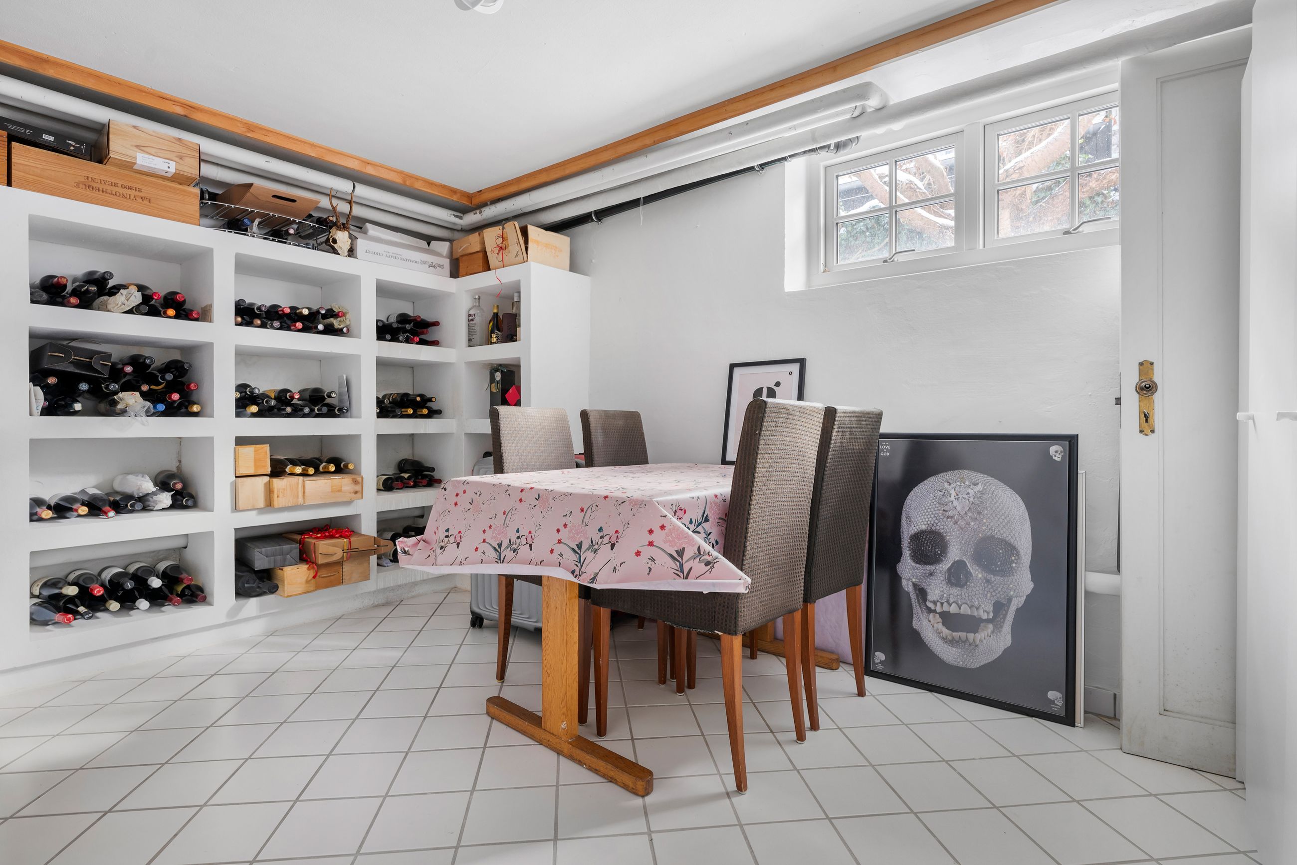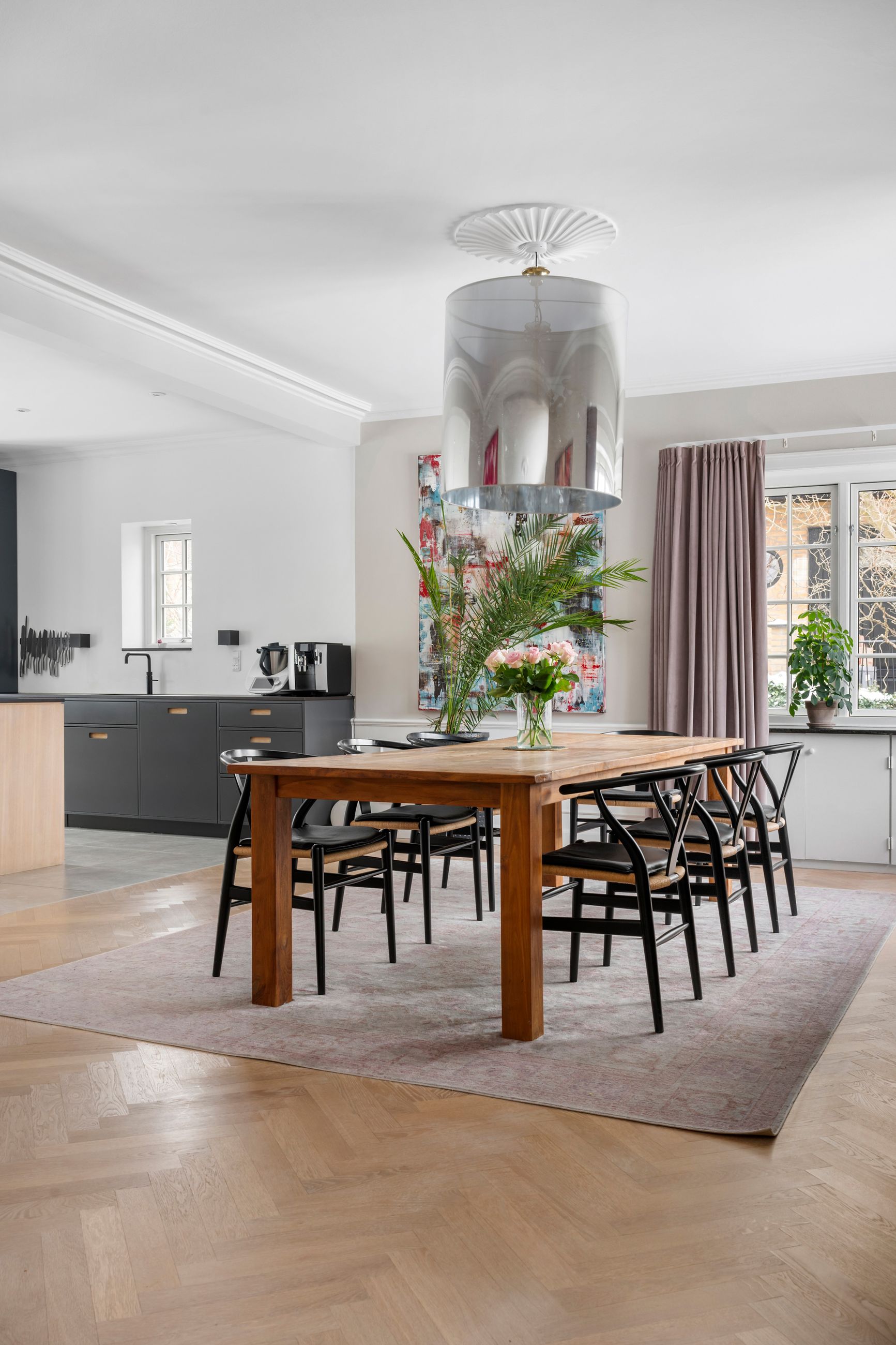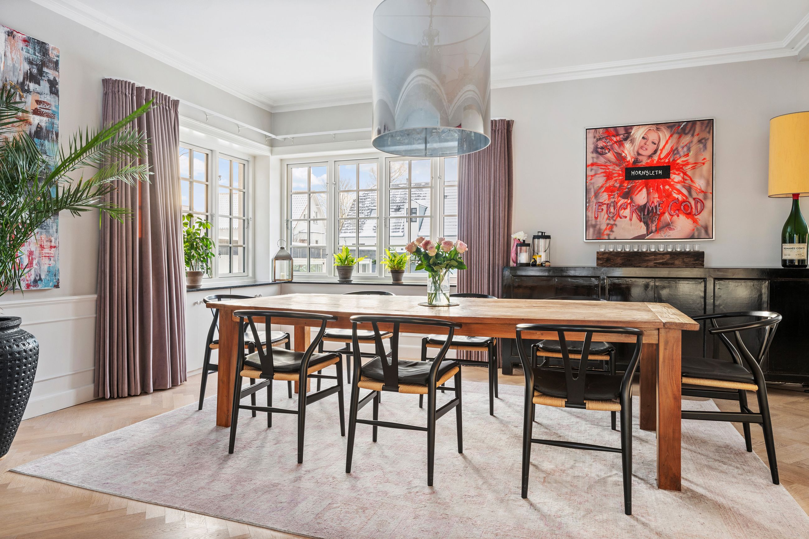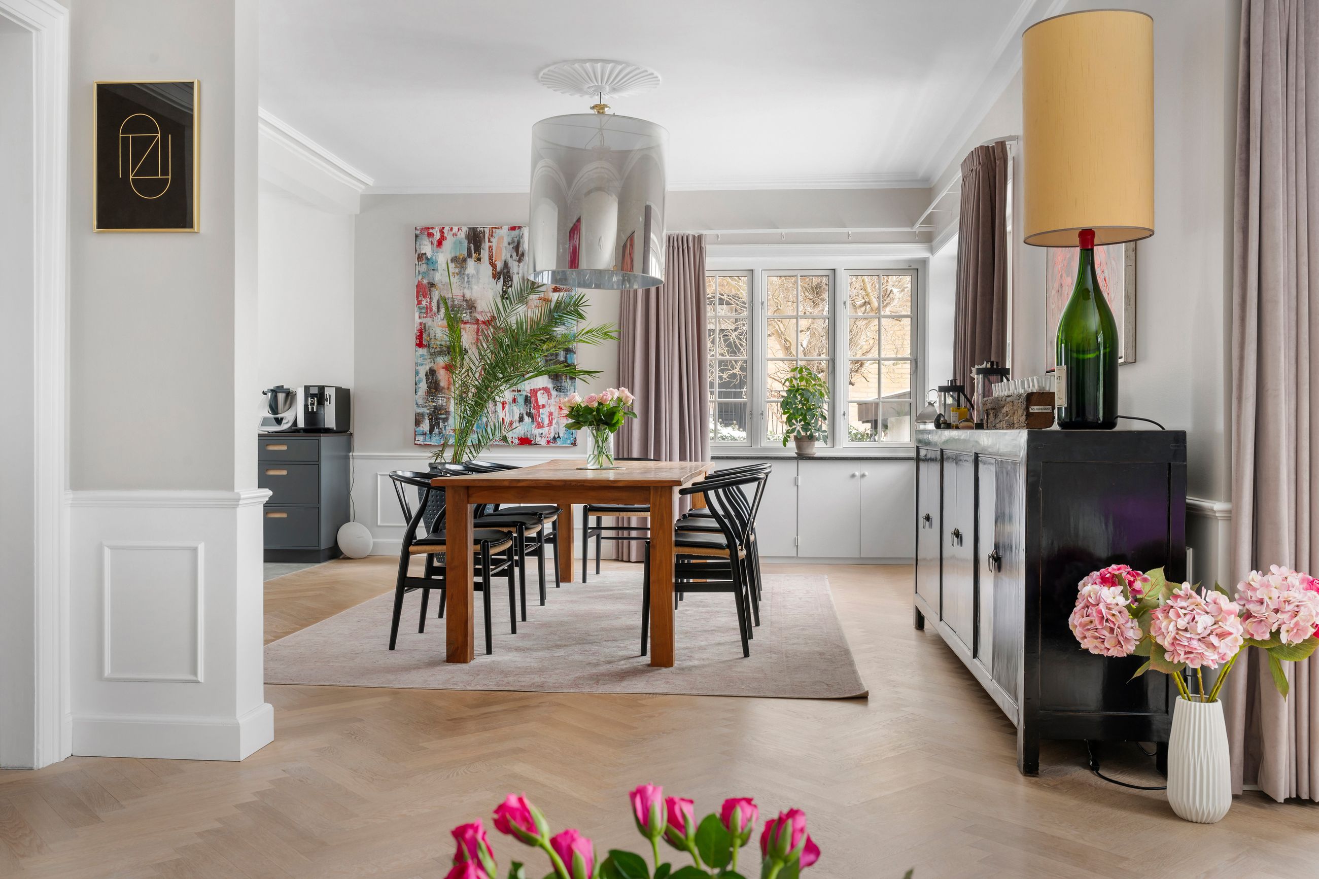 Boligen byder velkommen i entré med adgang til husets opholdsrum. Spisestuen har god plads til både hverdagsbrug og gæster, og dagligstuen har et behageligt og naturligt lysindfald. Der er udgang til østvendt terrasse i stueplan samt vestvendt fransk altan på 1. sal. I stueetagen er der massive egetræsgulve lagt i sildebensmønster, og der er gulvvarme i både stueetage og på 1. sal, hvilket sikrer høj komfort året rundt. Kælderen er tør og anvendelig og har fået etableret omfangsdræn i 2024. Den fremstår varm og indbydende og egner sig særdeles godt som teenageafdeling eller au pair-afdeling, komplet med badeværelse. Grunden udgør 809 m², og ejendommen har lave ejerudgifter.