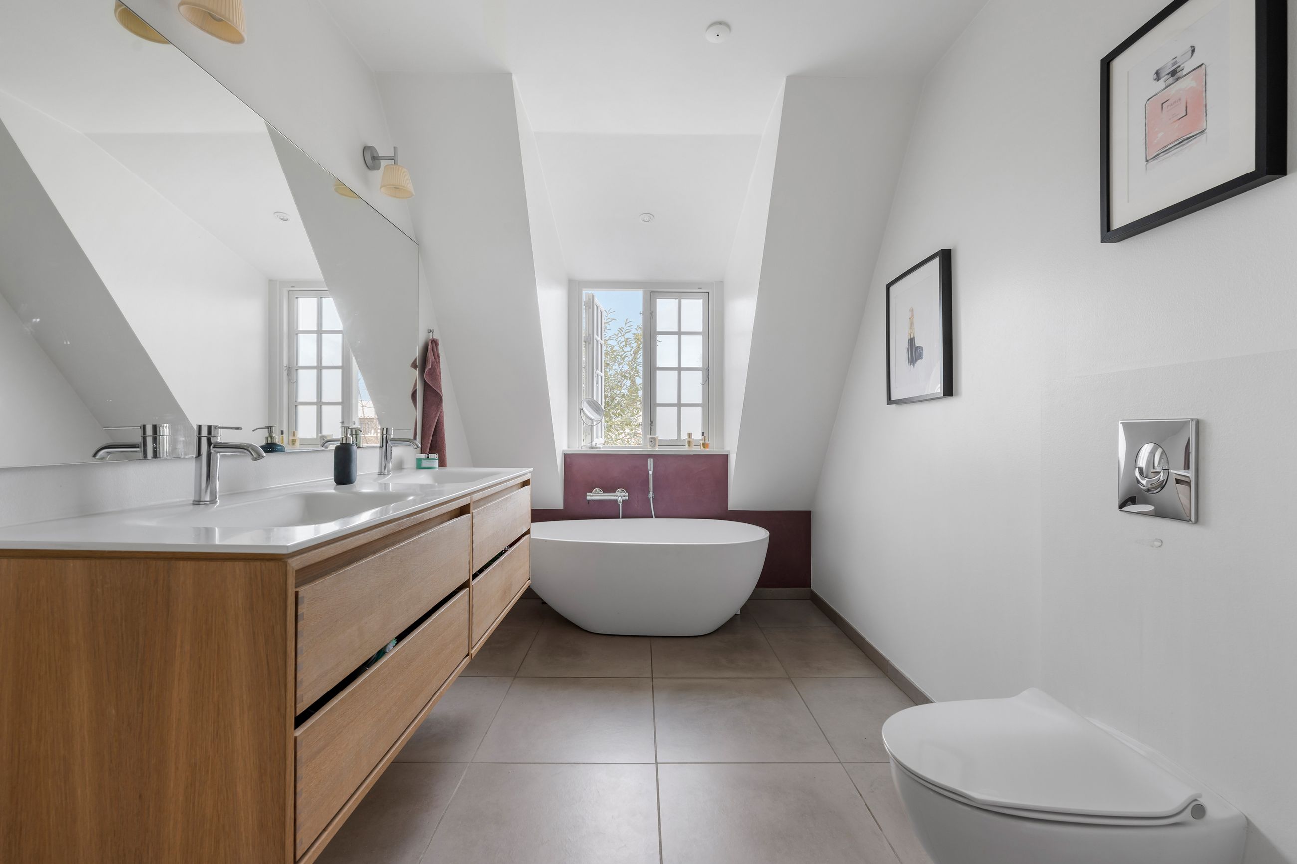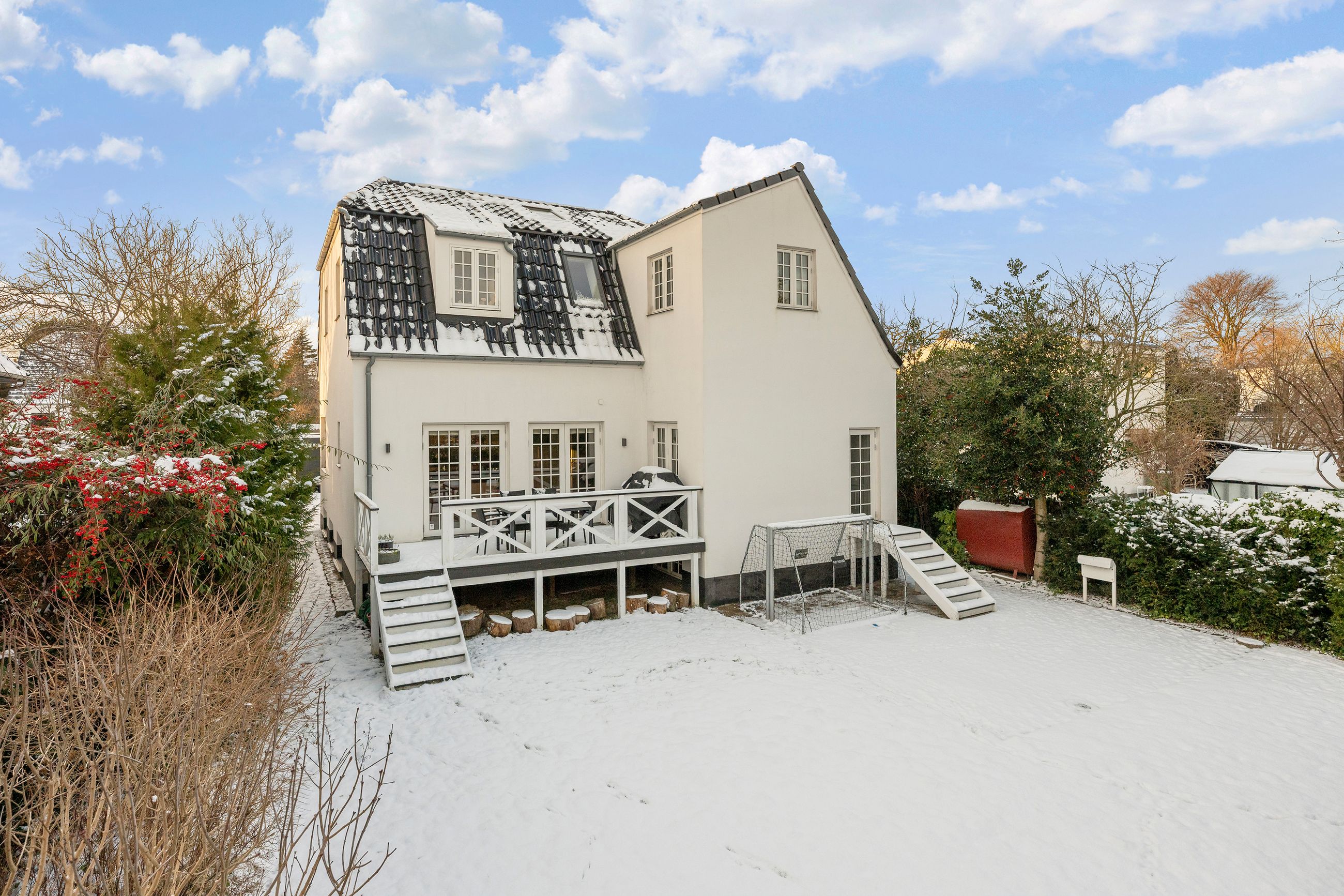 På en af Klampenborgs mest attraktive og rolige veje – Krøyersvej – ligger denne særdeles velholdte og indflytningsklare villa, blot få minutters gang fra Skovshoved Havn og Skovshoved Idrætsforening. Krøyersvej løber parallelt med den gamle Strandvej, som igen følger den nye Strandvej mod vandet, og beliggenheden kombinerer hav, natur og by på fornem vis. Ejendommen er opført i 1933 og har sortglaseret tegltag. Boligarealet udgør 202 m², og dertil kommer 110 m² kælder. 1. salen er nybygget i 2018 og opført med respekt for ejendommens oprindelige arkitektur. I forbindelse hermed er der etableret nyt tag, og alle vinduer i ejendommen er udskiftet. Køkken og badeværelsesmøbler er snedkerlavede fra 2021. Hårde hvidevarer er fra Miele, suppleret af eksklusiv kogeplade med integreret emhætte fra Bora. Bordplade er udført i Dekton. Boligen er ideelt indrettet til familien og rummer fire soveværelser på 1. sal, hvoraf to af børneværelserne har indbyggede hemse, samt i alt fire badeværelser. Ejendommen fremstår velholdt og kan fremvise en flot tilstandsrapport.