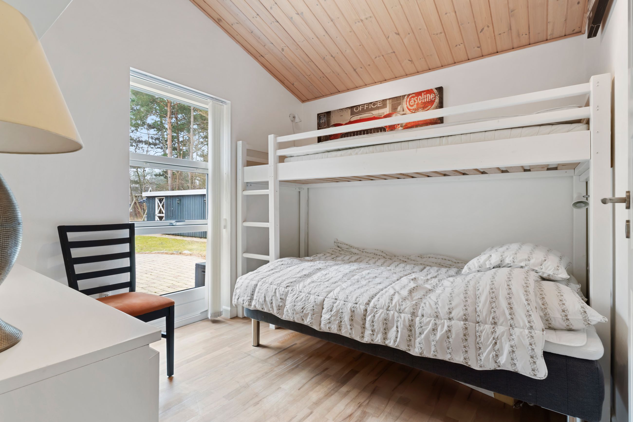 Velkommen: Sommerhuset på Læhegnet 7 er et af dem, der siger velkommen til den store familie. Her er saunaland og badeland. Masser af plads på 125 m2 plus anneks. Masser af rum og lys med loft til kip og ovenlysvinduer, masser af sol på den 180 m2 store terrasse dagen lang, og masser af ’danish hygge’, som resten af verden misunder os. Det er bygget i 1974, men fik sin renaissance, sin genfødsel i 2008 med en renovering fra himmel til fundament. I dag er det et asyl, et fristed, en refugium til familien, som også gerne vil have venner på besøg. Grunden er på 1.250 m2 plads til gynger og karruseller, gemmelege og boldspil.