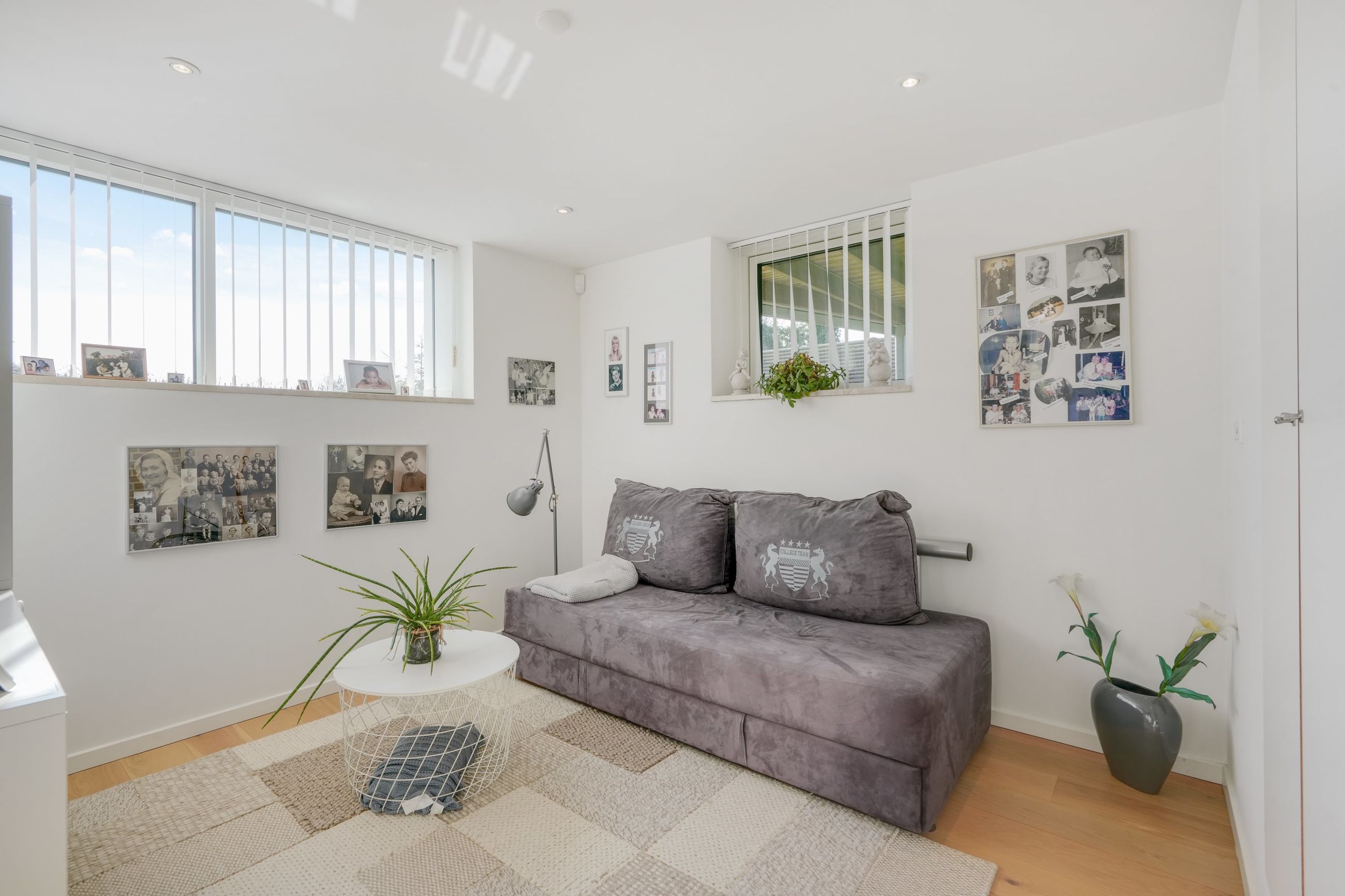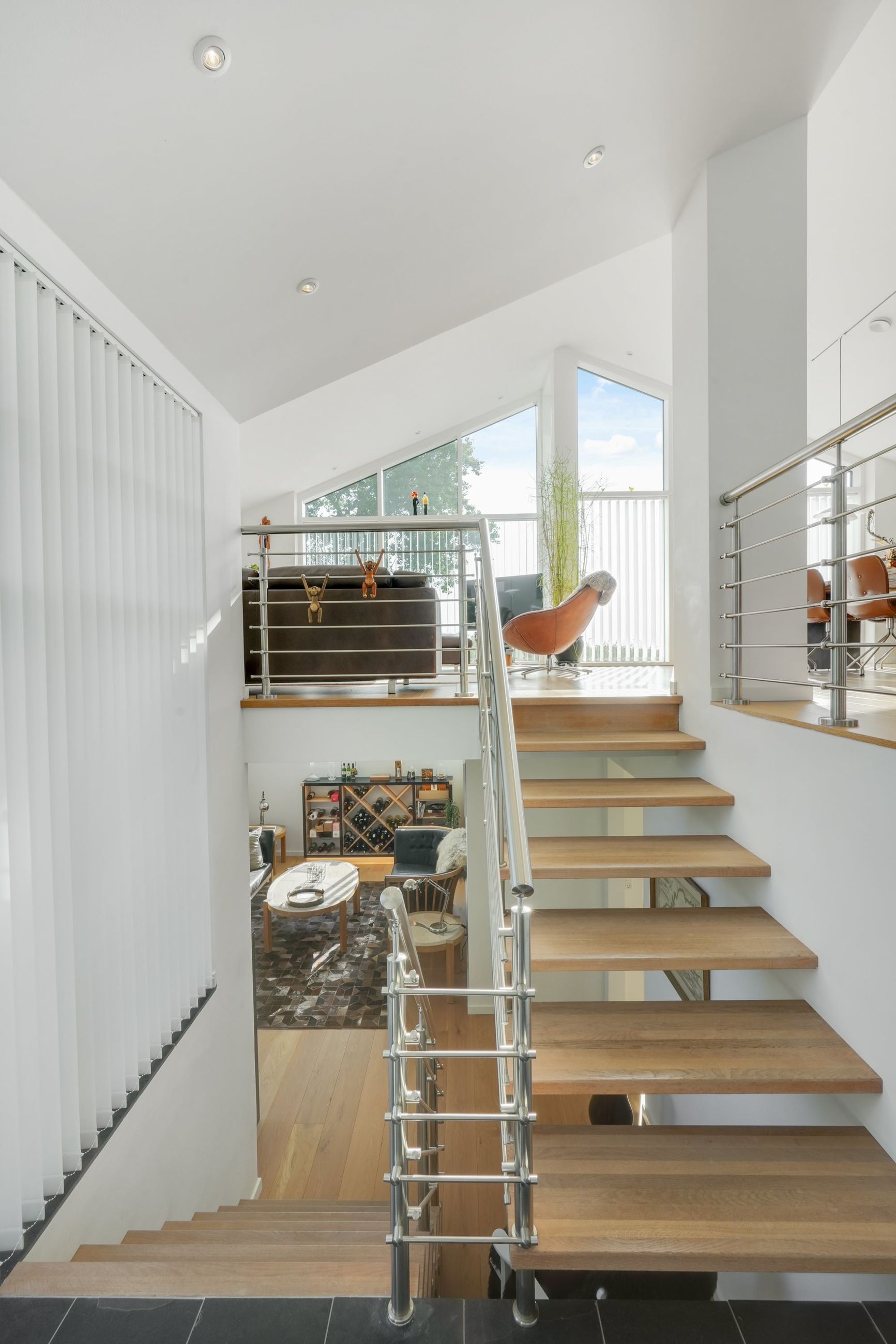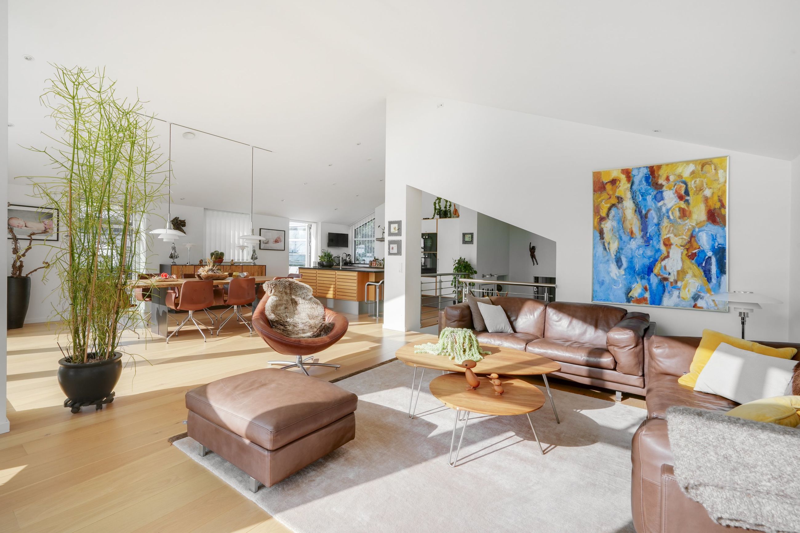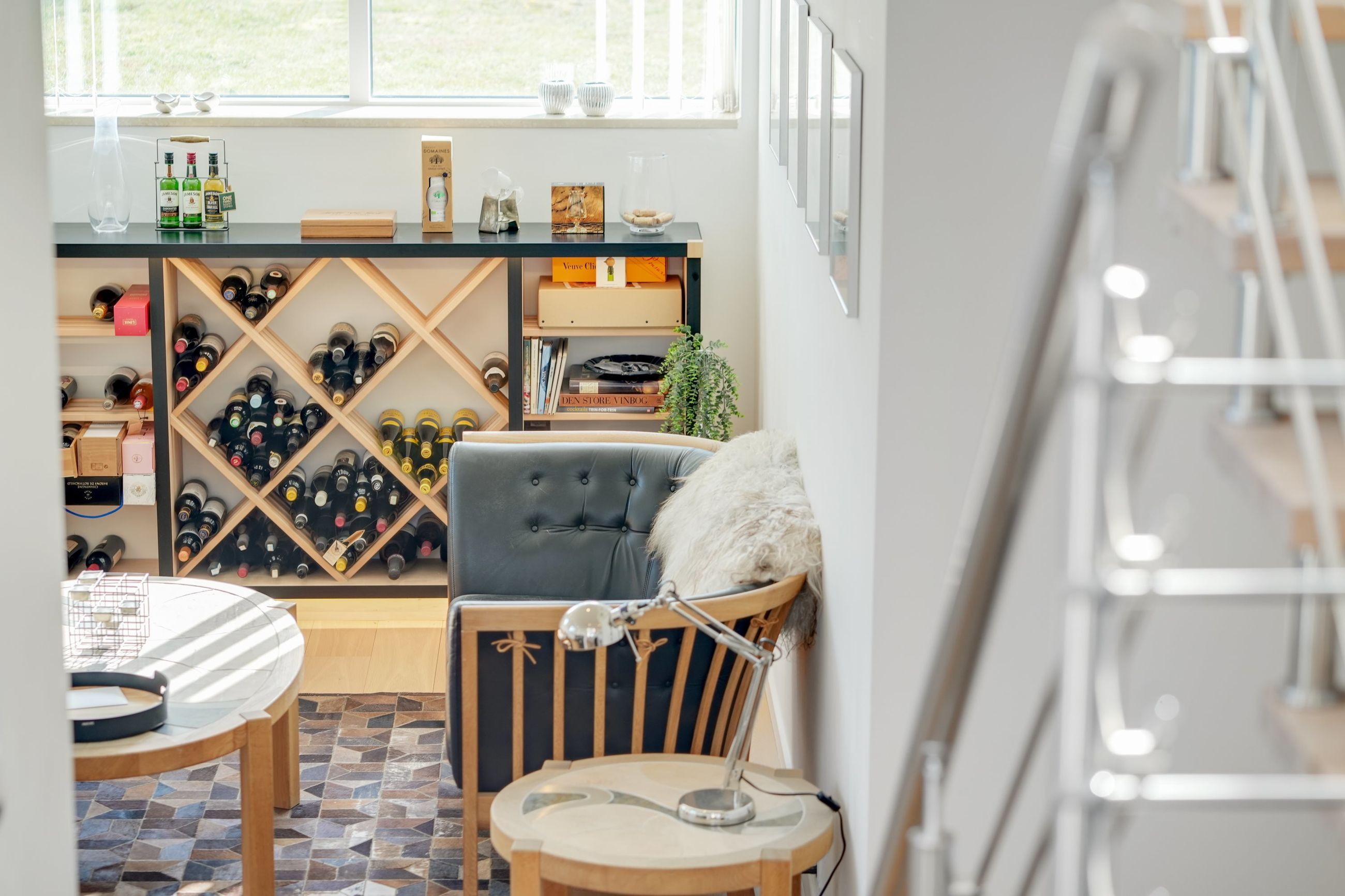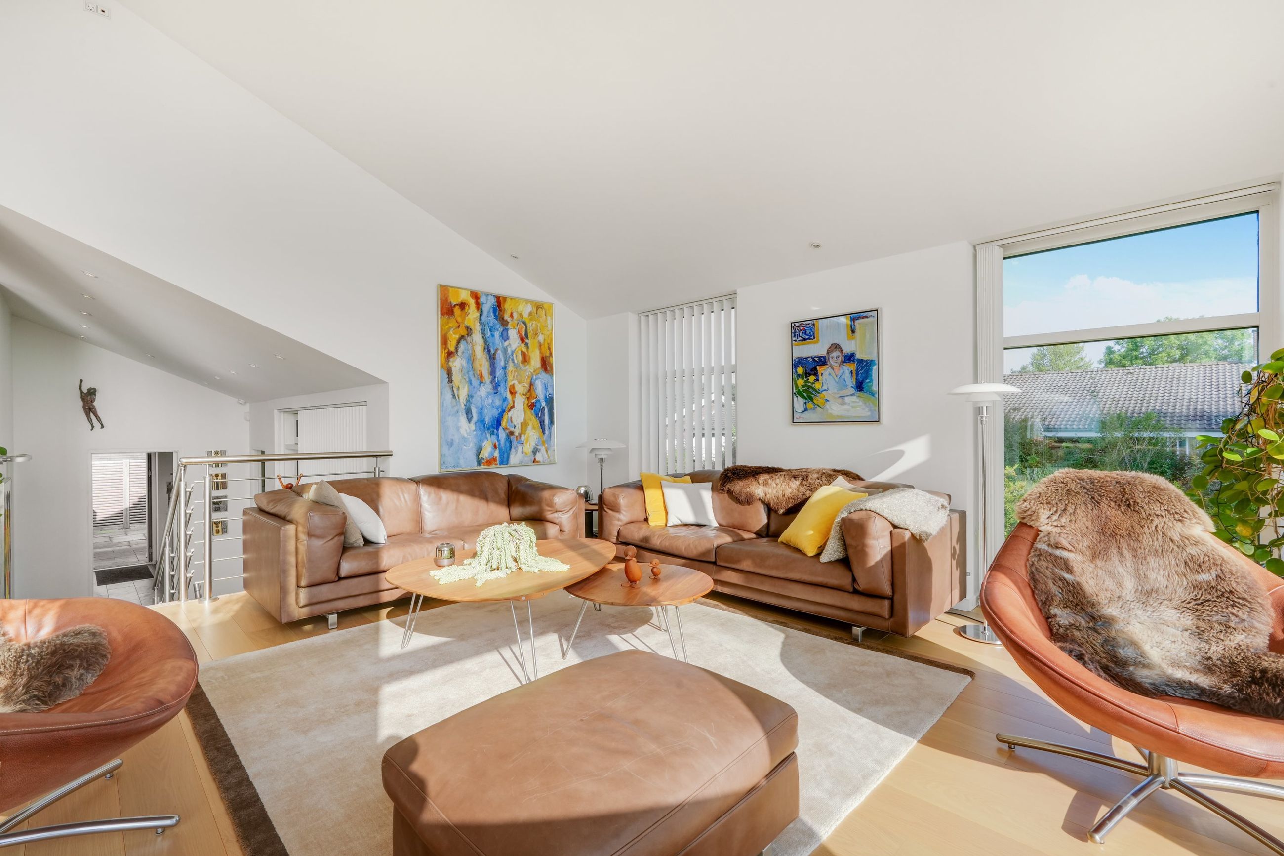 Huset er nærmest vedligeholdelsesfrit og bygget som et lavenergihjem med solceller og genvex-anlæg, der sørger for et sundt og behageligt indeklima året rundt. Gennem rummene breder massive egetræsplanker, marmor og fliser i natursten sig som et roligt bagtæppe for livet, og lyset bevæger sig let mellem planene. Den lyse entré åbner sig mod trappen og de forskudte niveauer – her mærker man straks den arkitektoniske tanke. Øverst udfolder husets hjerte sig i et stort leverum med lofter til kip, ovenlys og vinduer fra gulv til kip, hvor himmel og hav føles som en del af indretningen. Her er luft, højde og en enestående udsigt mod det blå. Sofaen finder naturligt sin plads i roen, mens langbordet samler familie og venner omkring sig – til hyggelige middage og lange snakke. Det elegante Unoform-køkken står som et samlingspunkt med smukke detaljer og luksushvidevarer fra Gaggenau. Ved den frie køkkenø er der plads til samtalerne, mens maden simrer og dagens tempo sænkes. Måske et glas vin i hånden, måske morgenkaffen, mens havet glimter i baggrunden. Forældreafdelingen er skabt til ro og nærvær – soveværelse med walk-in, eget badeværelse og direkte udgang til haven, hvor morgenbrisen står frisk gennem døren. Badeværelset er udført i Unoform-design med fritstående vask og stor bruseniche. Et ekstra værelse giver fleksibilitet – perfekt til gæster, børn eller hjemmearbejde. Syv trin fører til underetagen, som på papiret kaldes kælder, men som føles som en naturlig forlængelse af boligen. Her fortsætter de samme smukke gulve og det bløde lysindfald fra vinduerne. Et badeværelse i samme luksuriøse stil og tre disponible rum giver plads til teenageafdeling, hjemmekontor, alrum eller kreative projekter – mulighederne er mange.