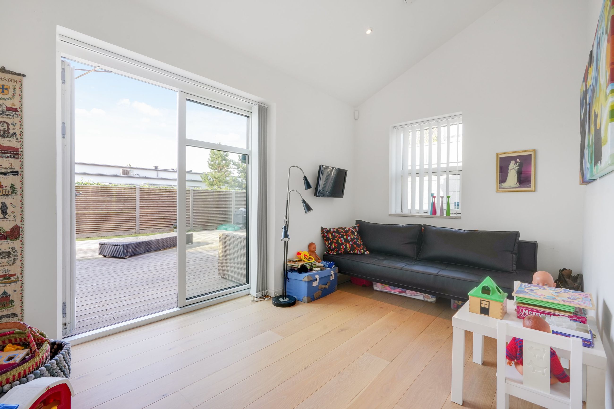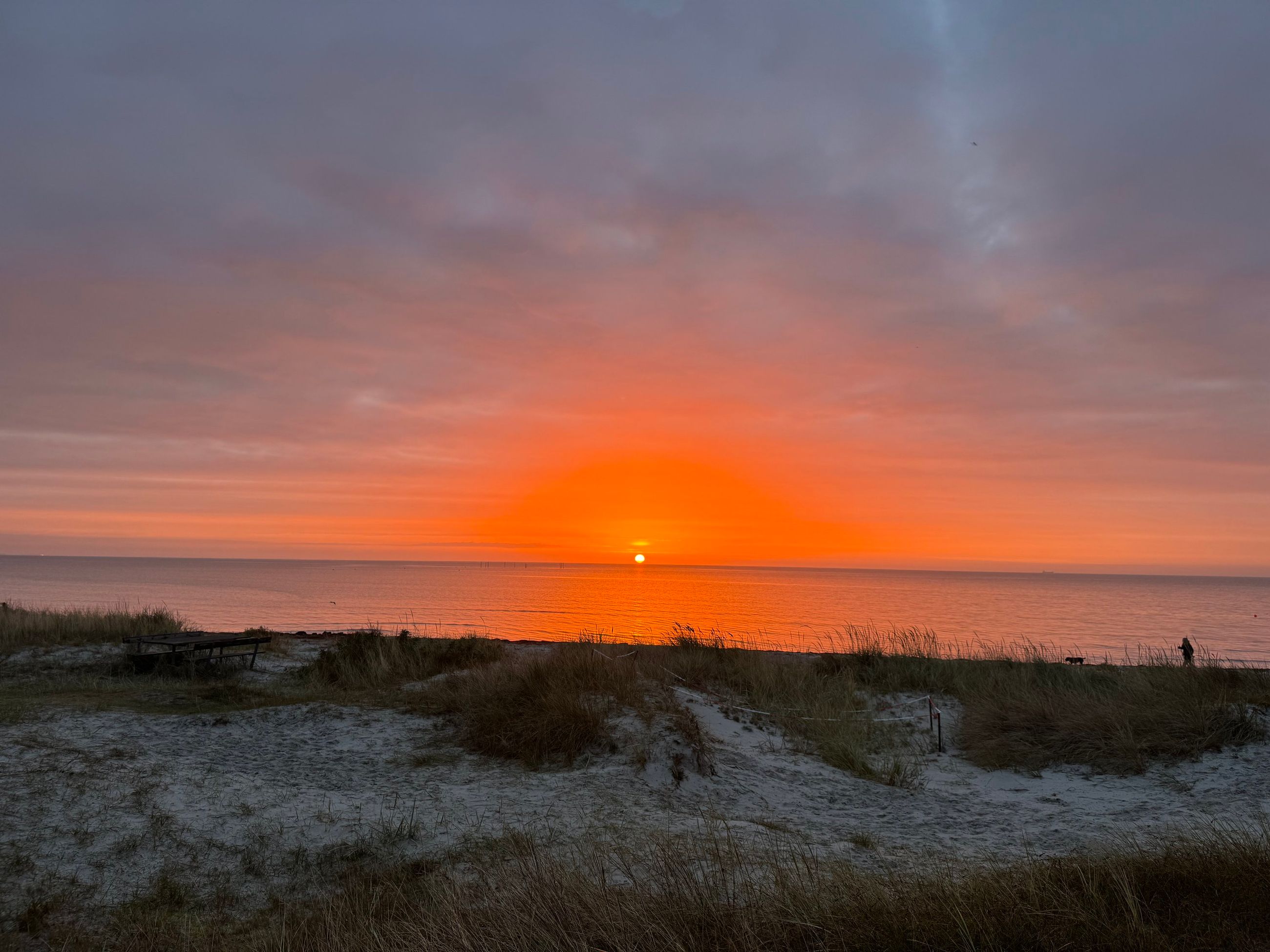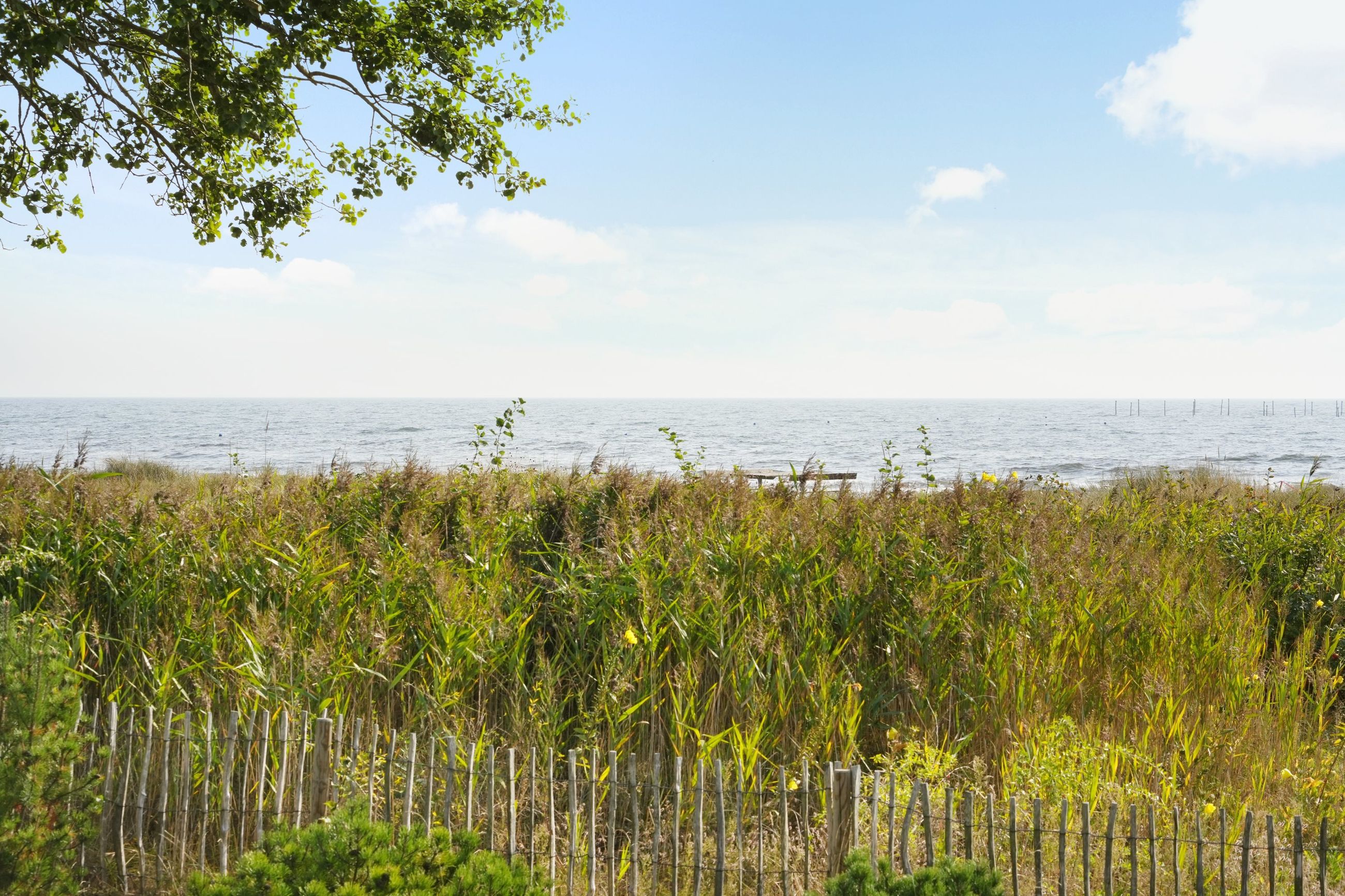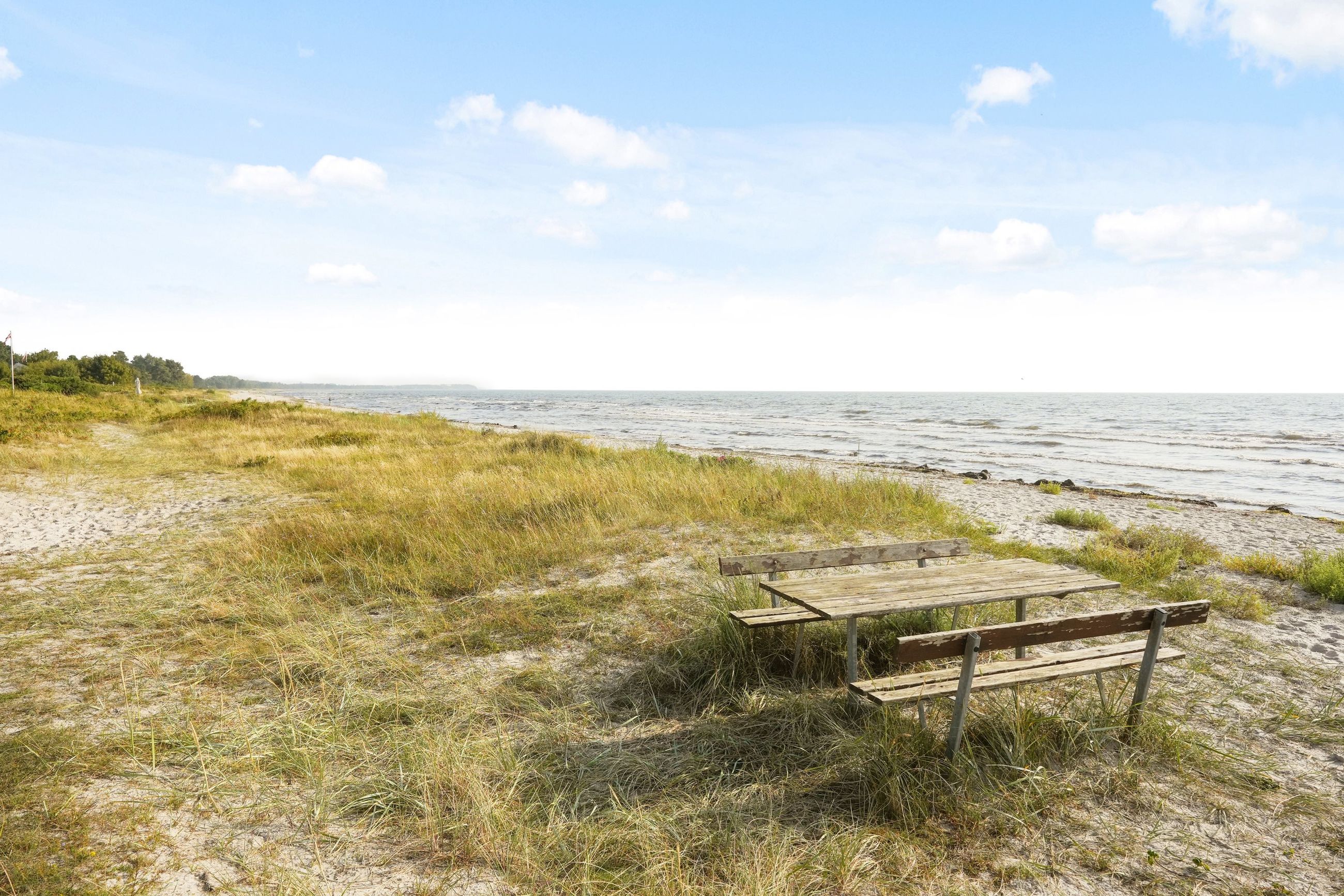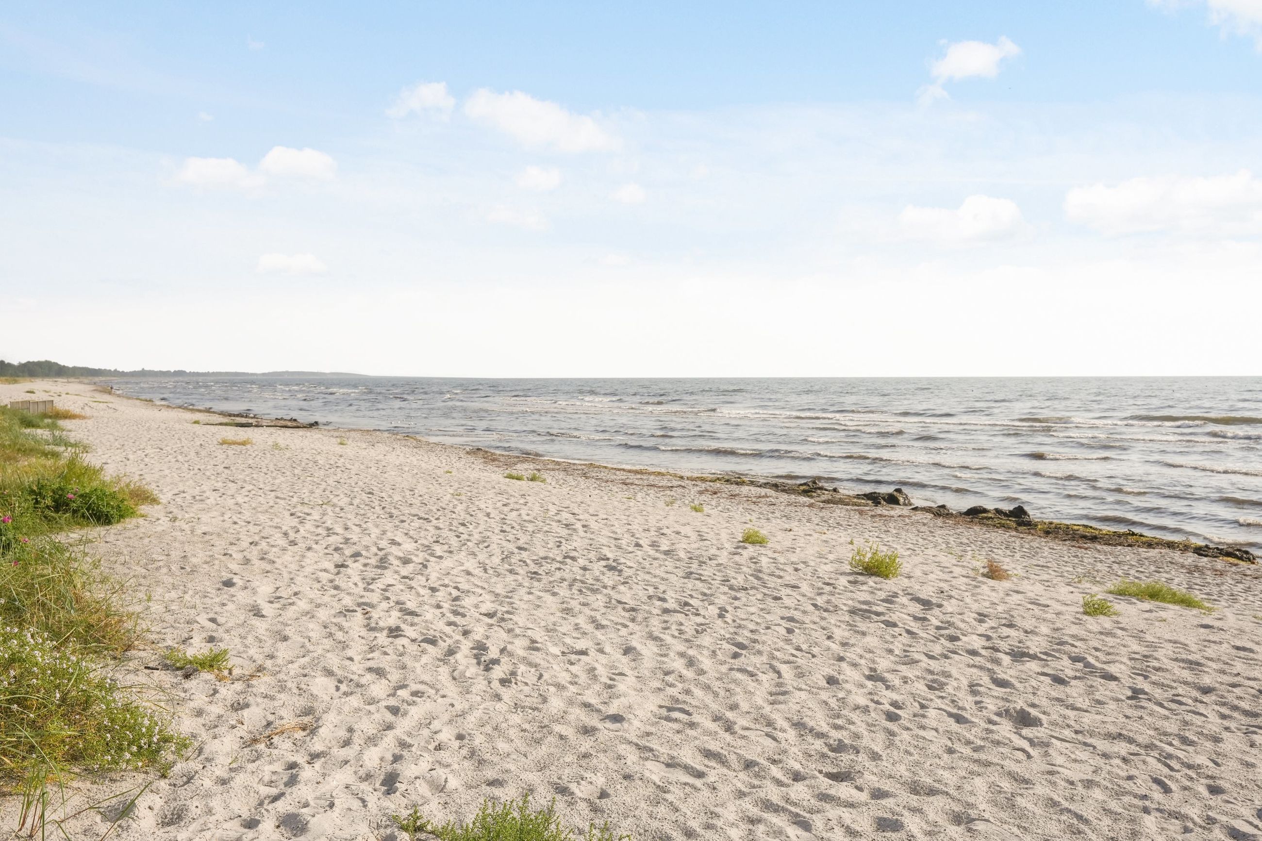 Fra terrassen møder blikket horisonten – udsigten strækker sig fra Københavns tårne i nord til bøgeskoven i syd, og midt imellem ligger havet, åbent og uforstyrret. Her, på den bedste badestrand langs bugten, er sandet fint og vandet klart, og du kan tage morgendukkerten direkte fra stranden eller glide ud på paddleboardet, mens solen står op over vandet. Naturgrunden flyder ud i det fredede strandareal, hvor marehalm, strandgræs og sand tager over. Den store sydvendte terrasse i Keybony – et bæredygtigt, varmebehandlet træ med gylden glød – strækker sig mod det åbne blå. Et uderum skabt til både sol og læ og hvor duften af saltvandet hænger i luften. Plads til liggestole, lounge og de lange middage under himlen. Duften af saltvand blander sig med lyden af bølger, mens aftensolen maler himlen gylden. Her findes også udekøkken og udendørsbruser med varmt og koldt vand – luksus på den mest naturlige måde. Flotte naturfliser i forhaven og den murede garage med værksted giver god plads til bilen og en ordentlig plads til alt det praktiske – og en ankomst, der føles rolig, ordnet og harmonisk.